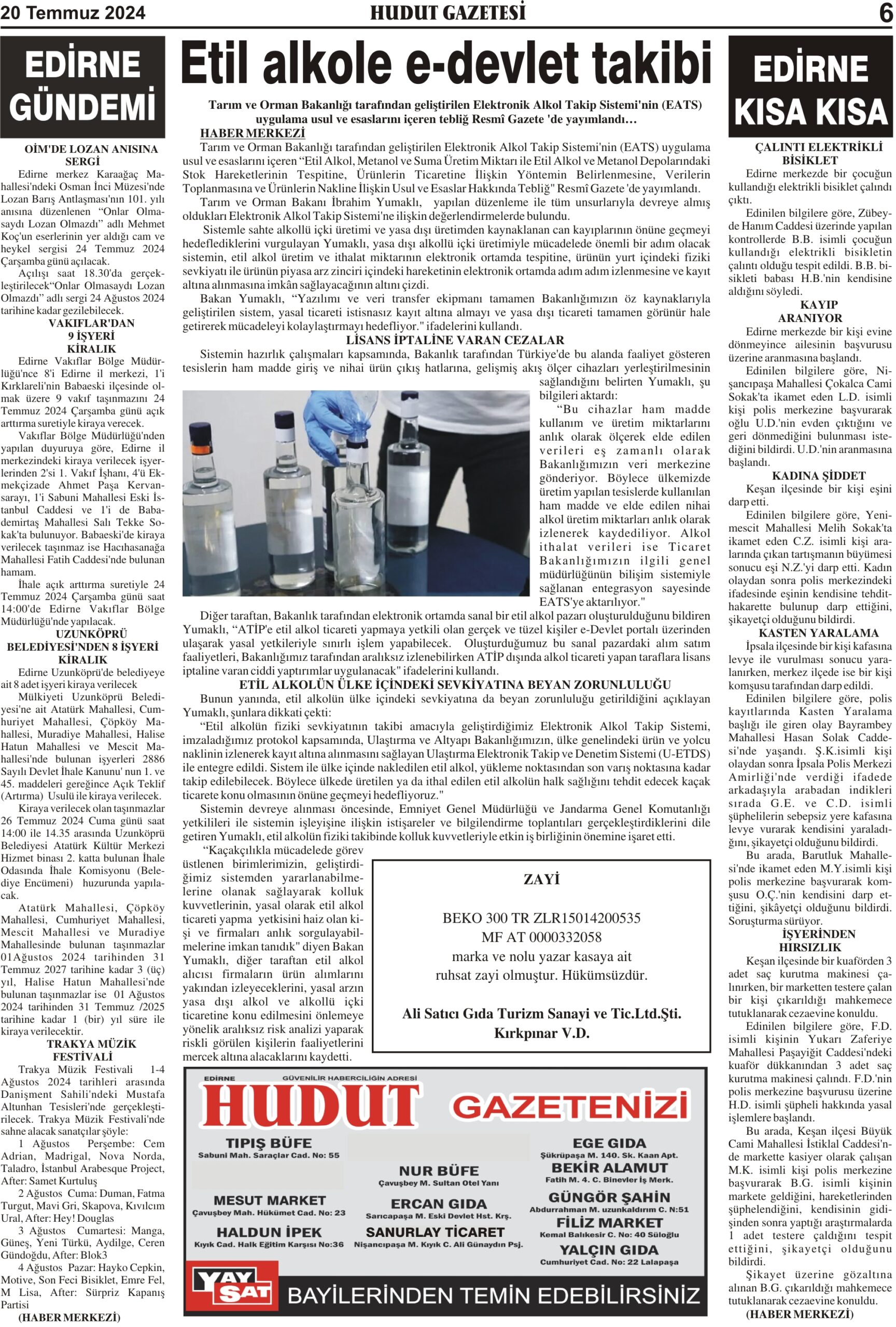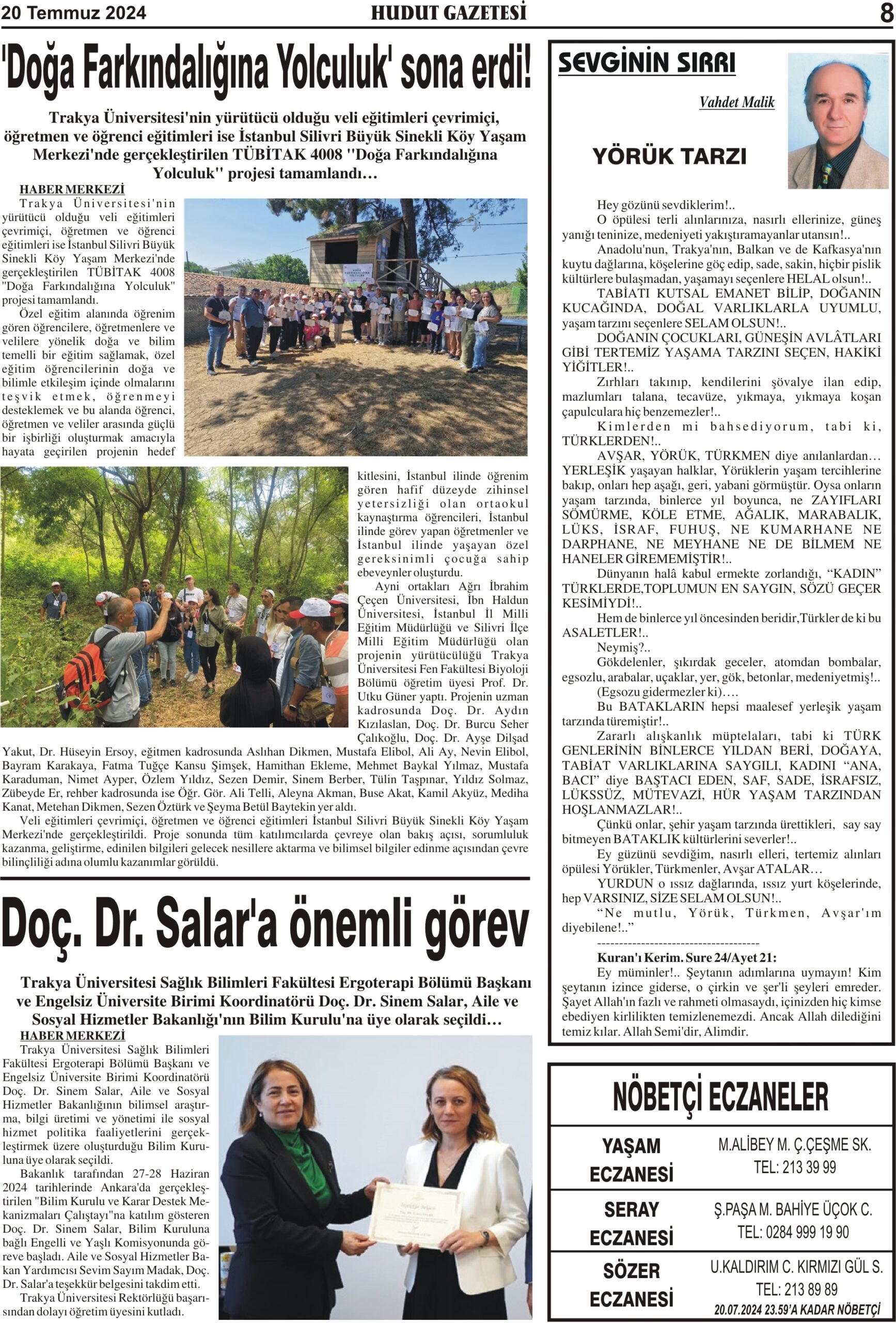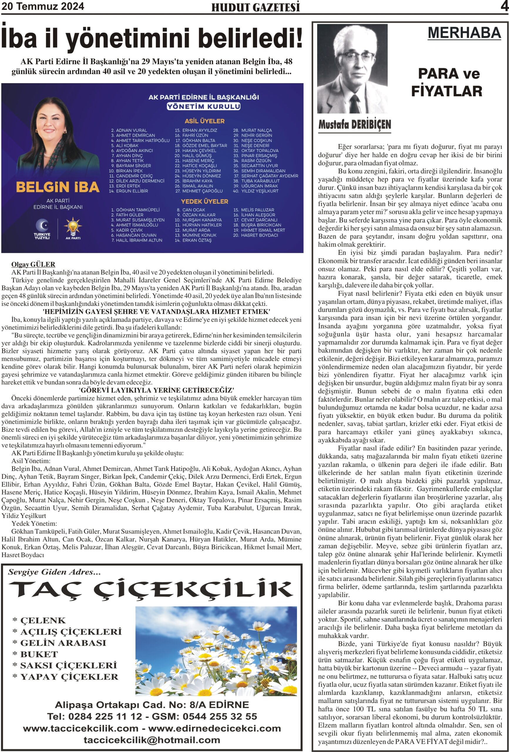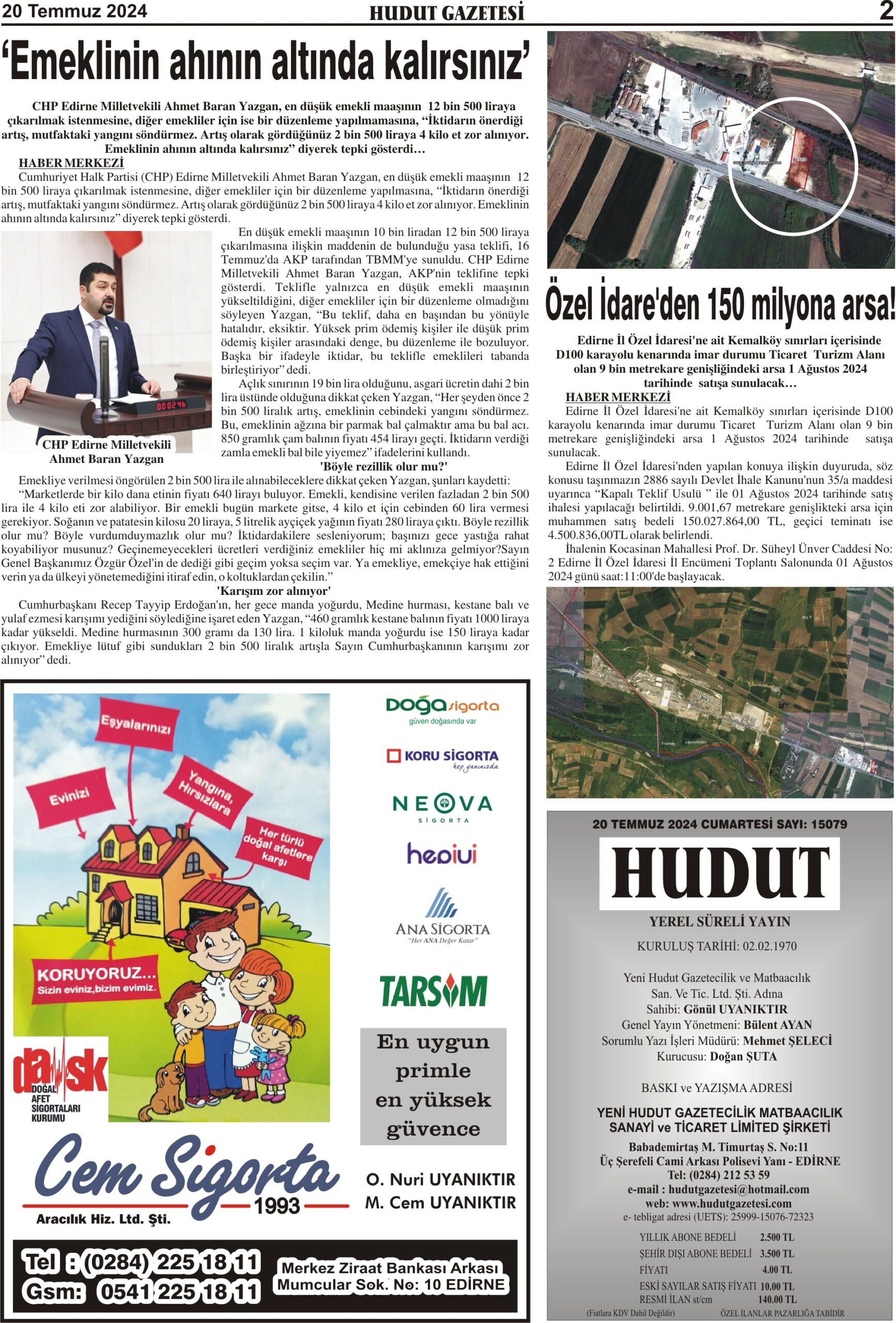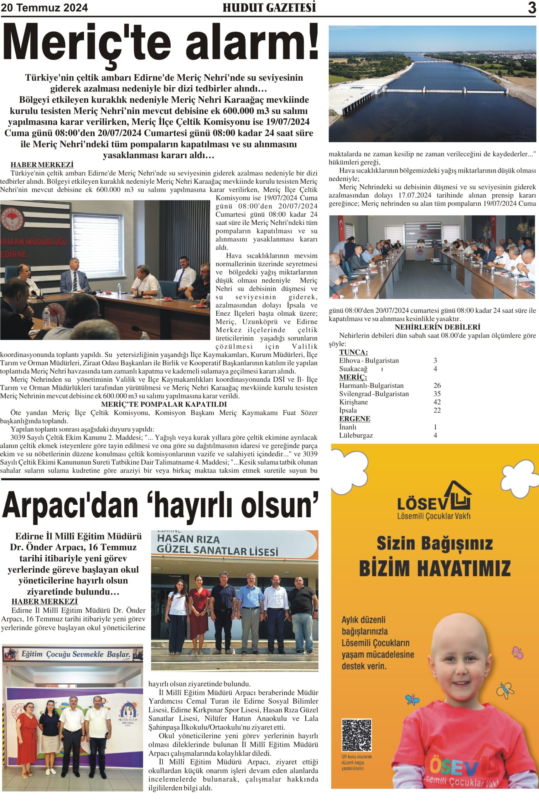 20 Temmuz 2024 Cumartesi Hudut Gazetesi