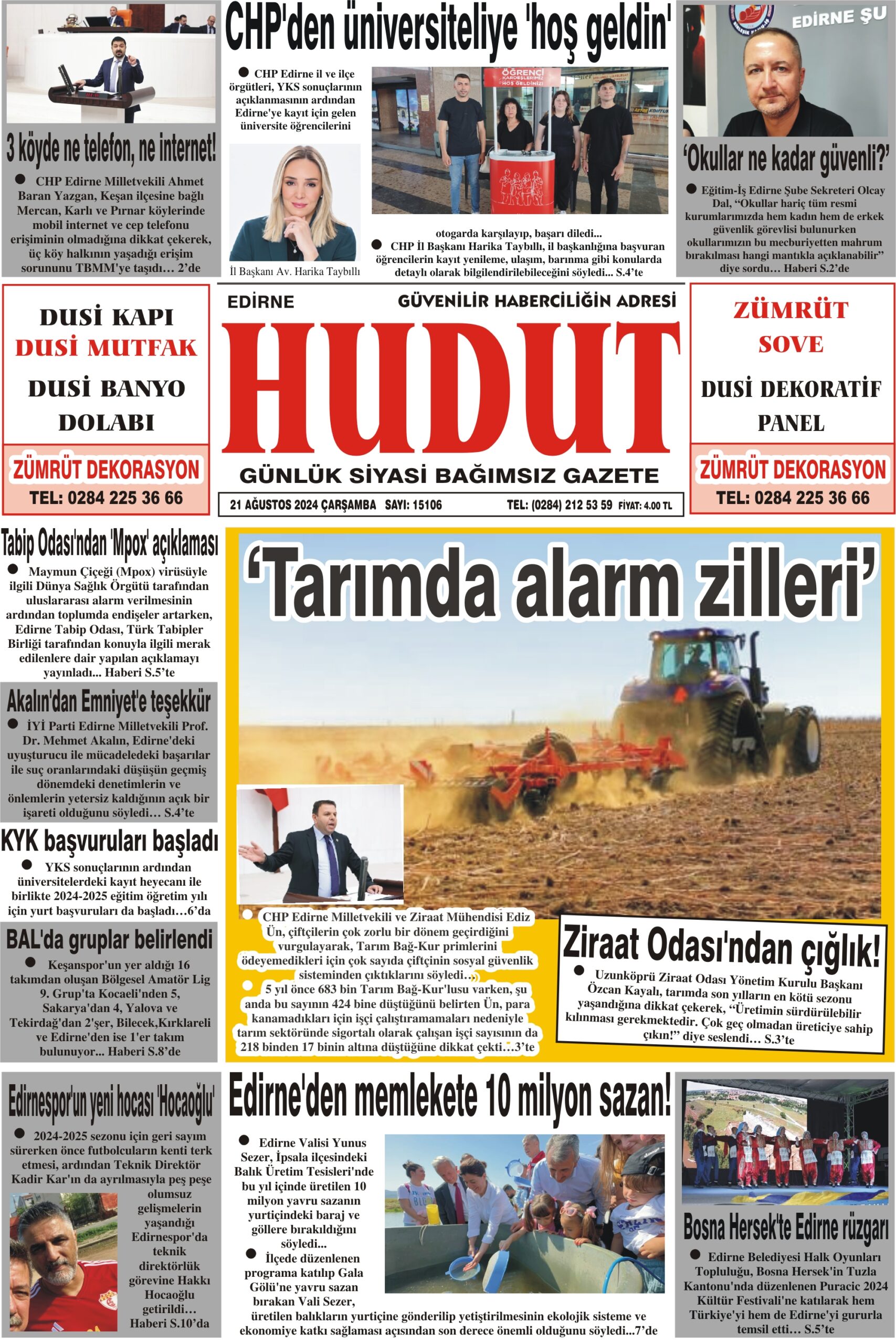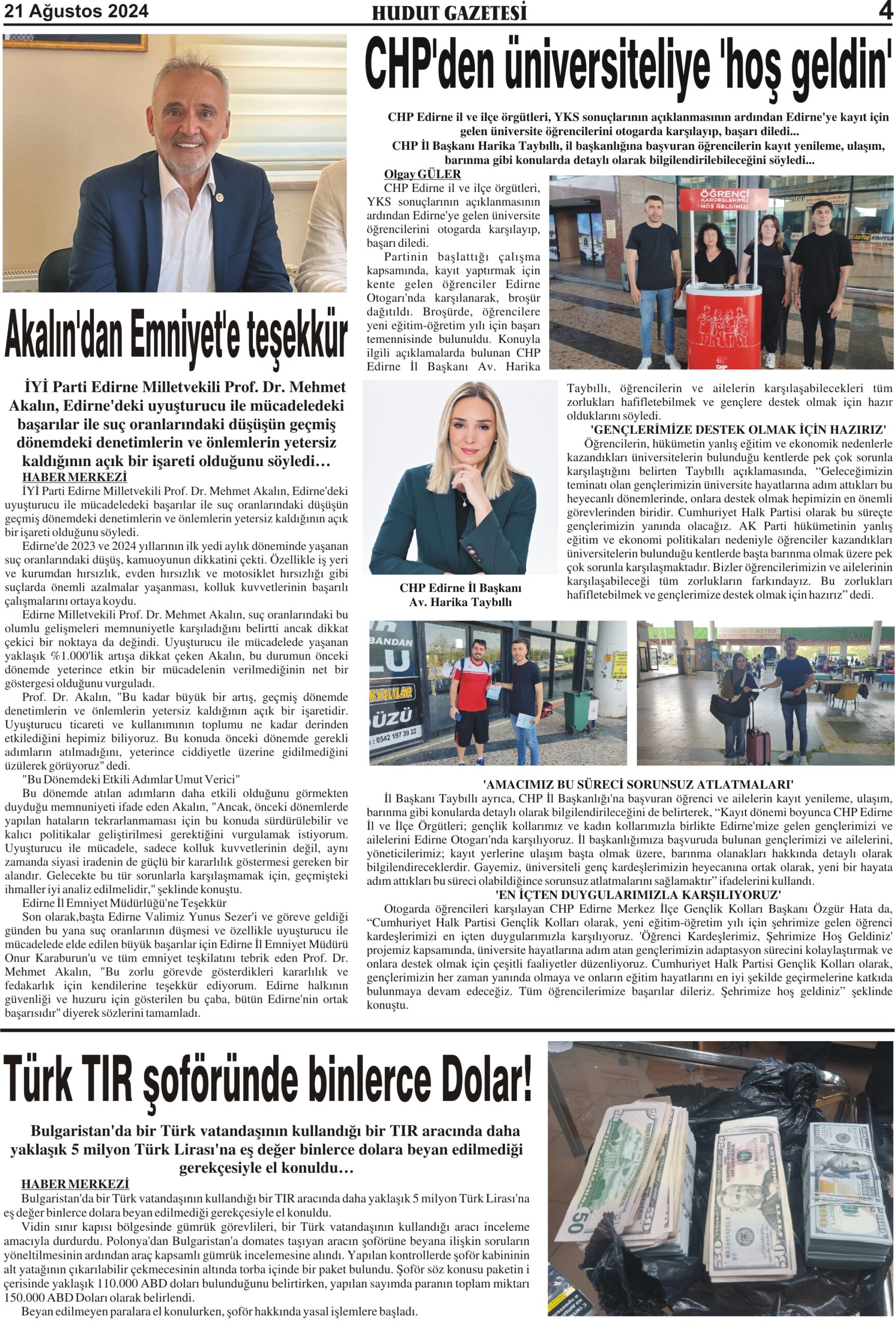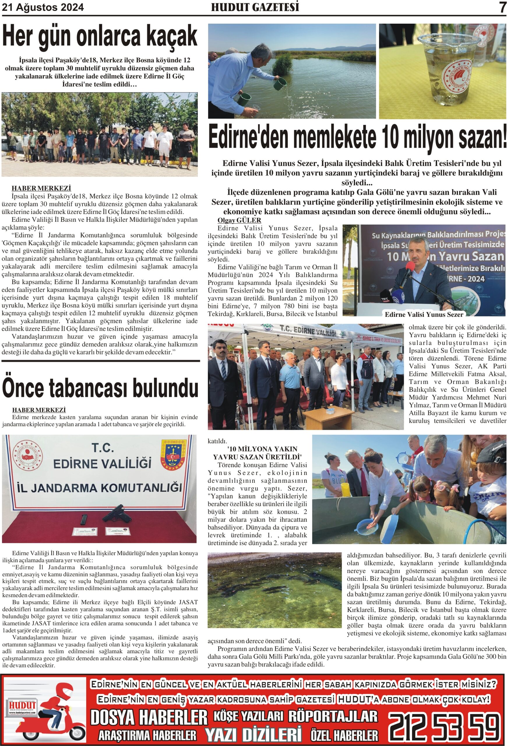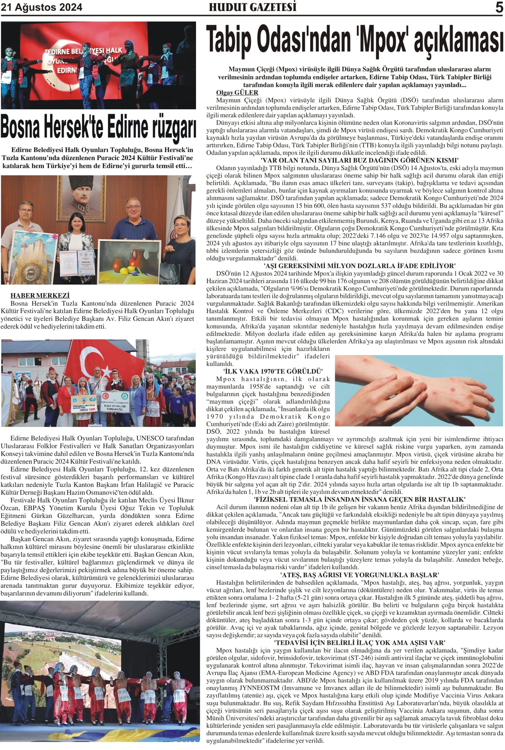 21 Ağustos 2024 Çarşamba Hudut Gazetesi