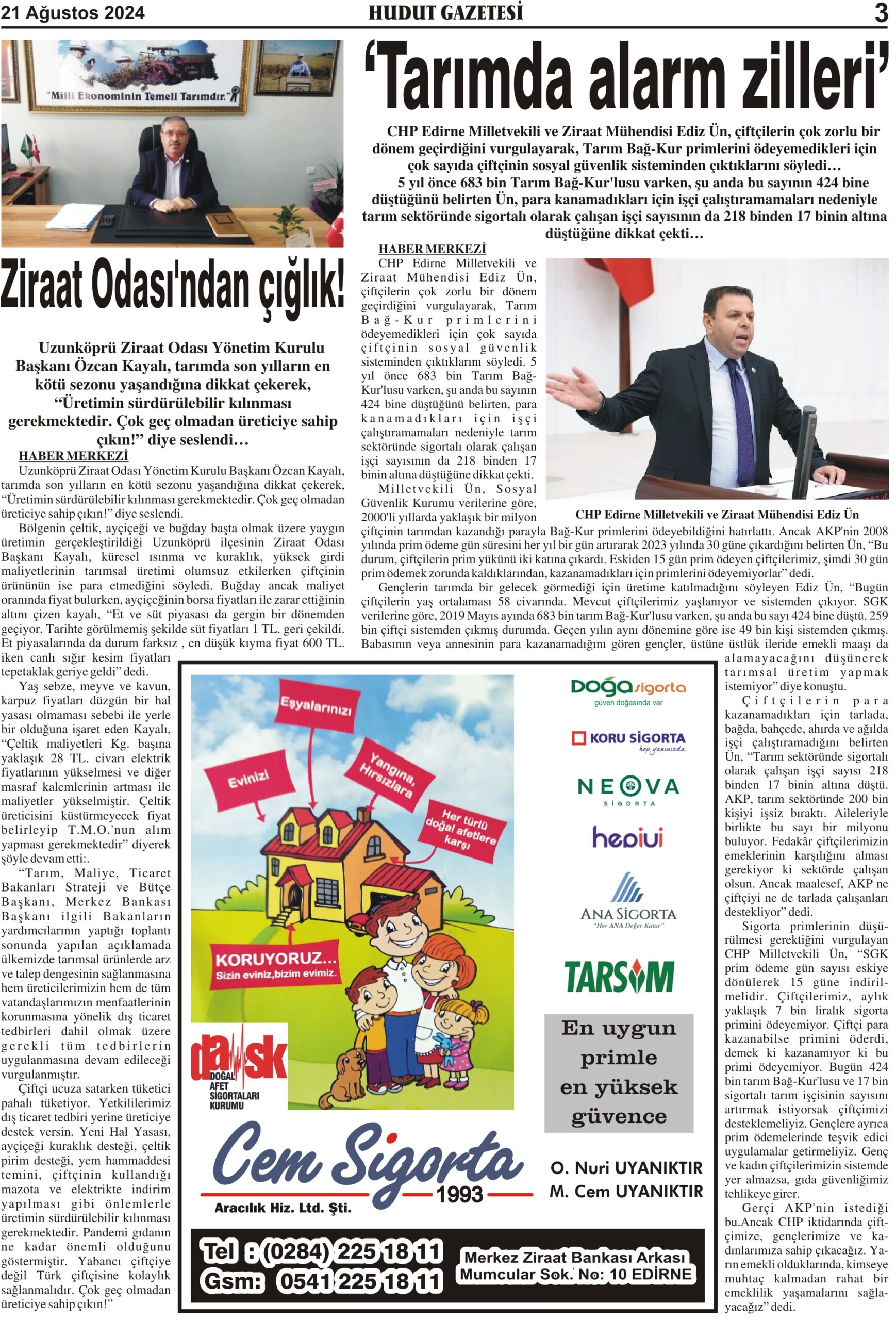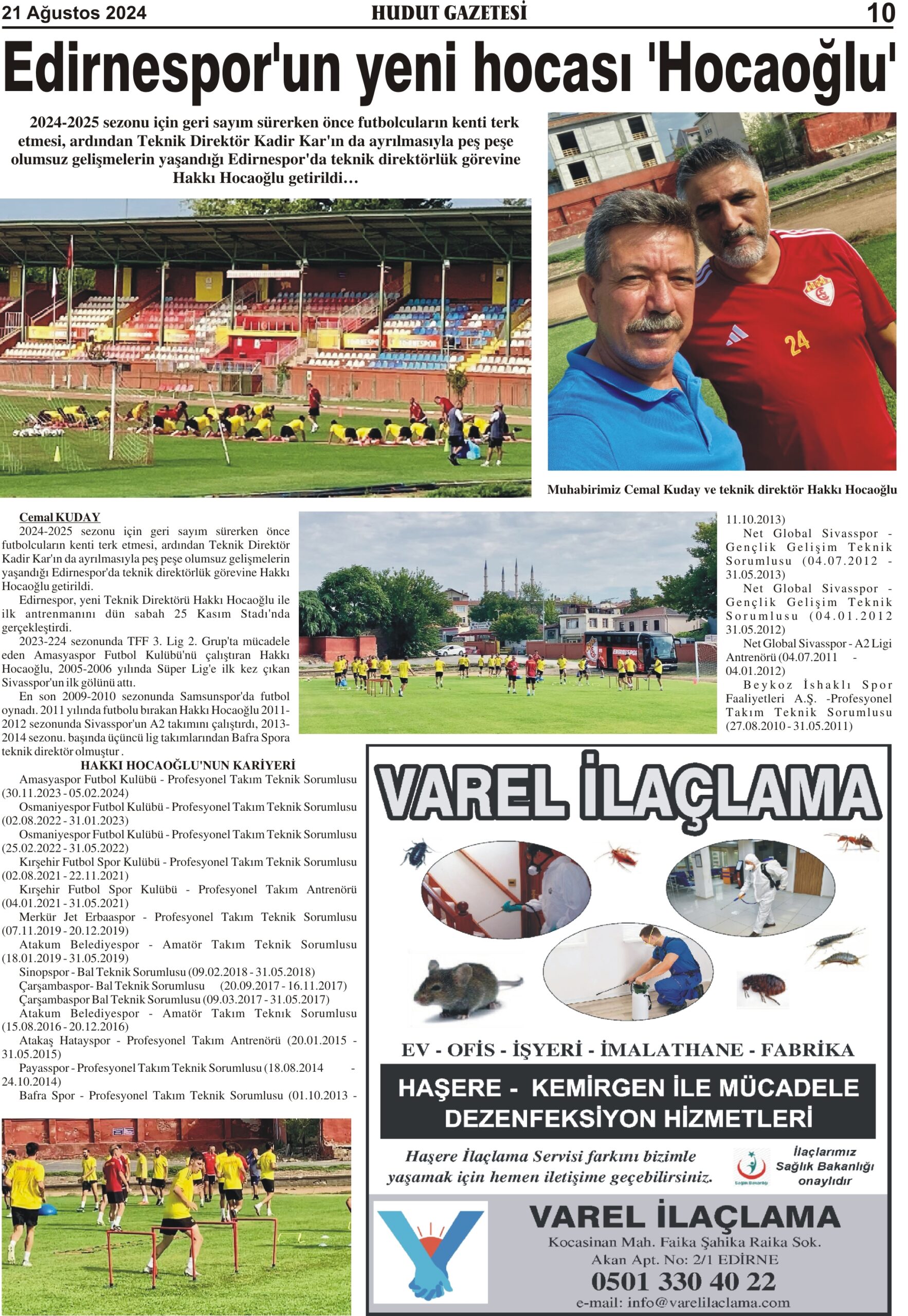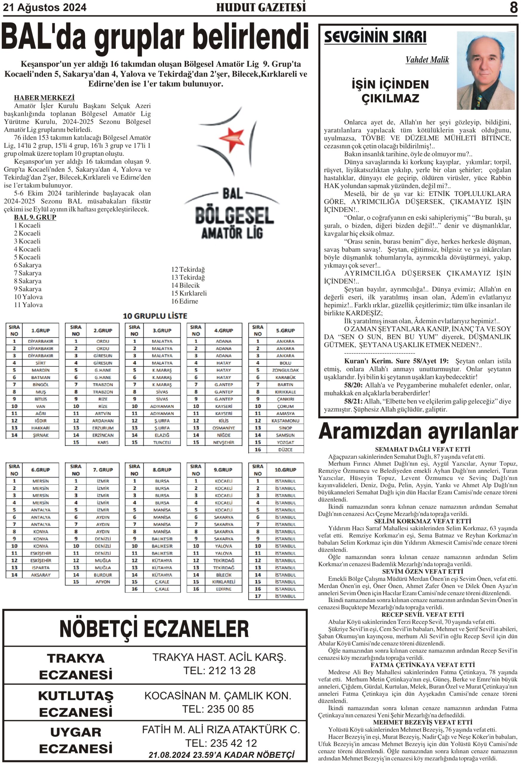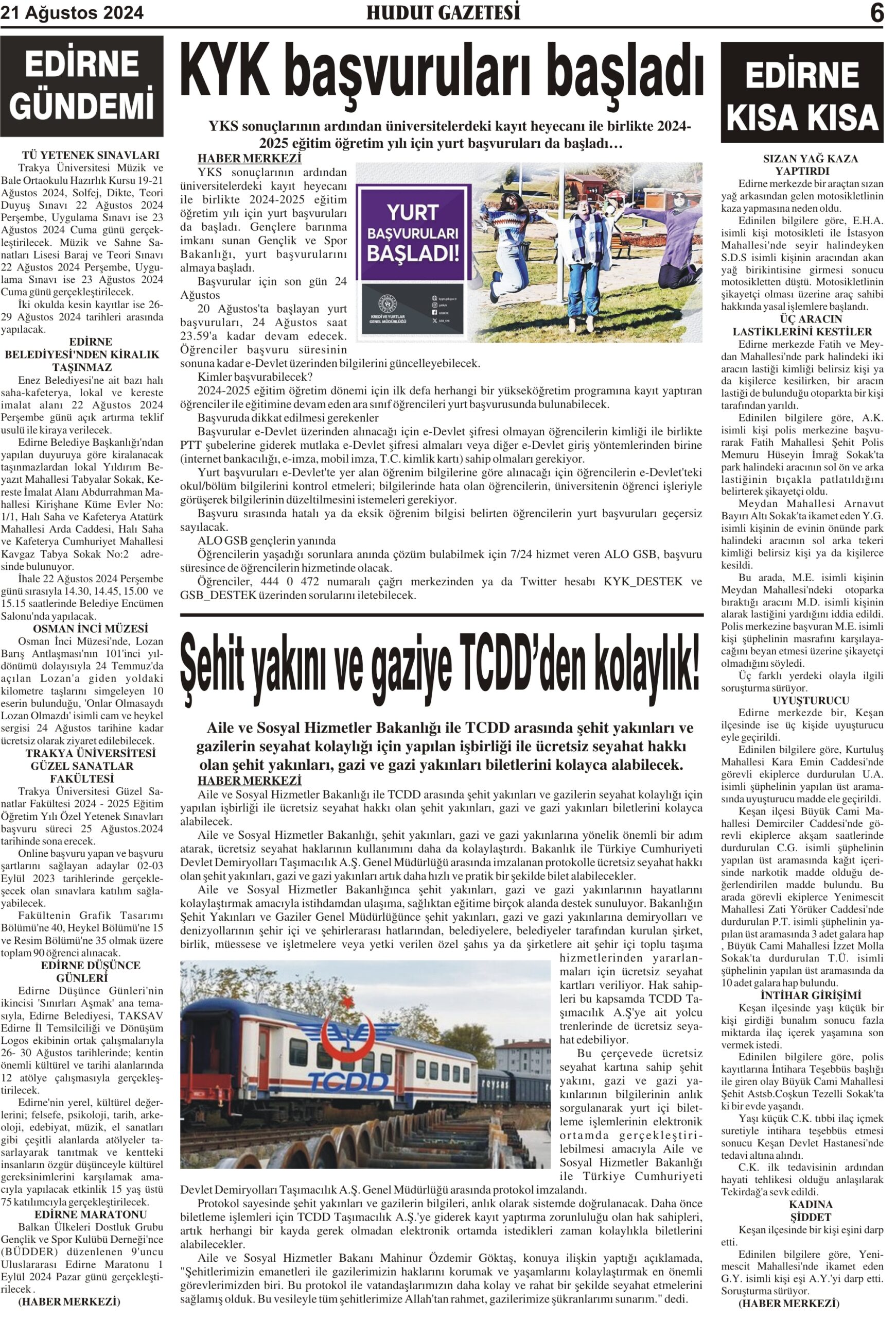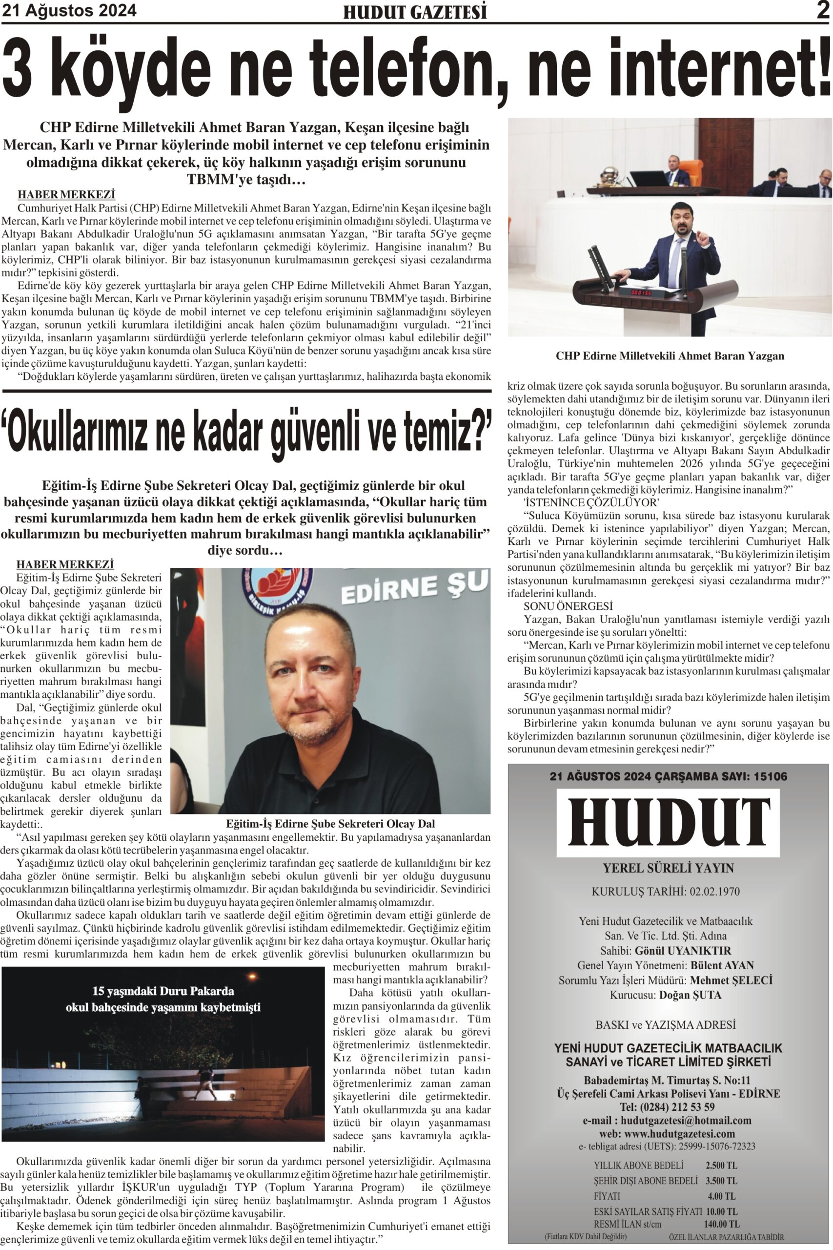 21 Ağustos 2024 Çarşamba Hudut Gazetesi