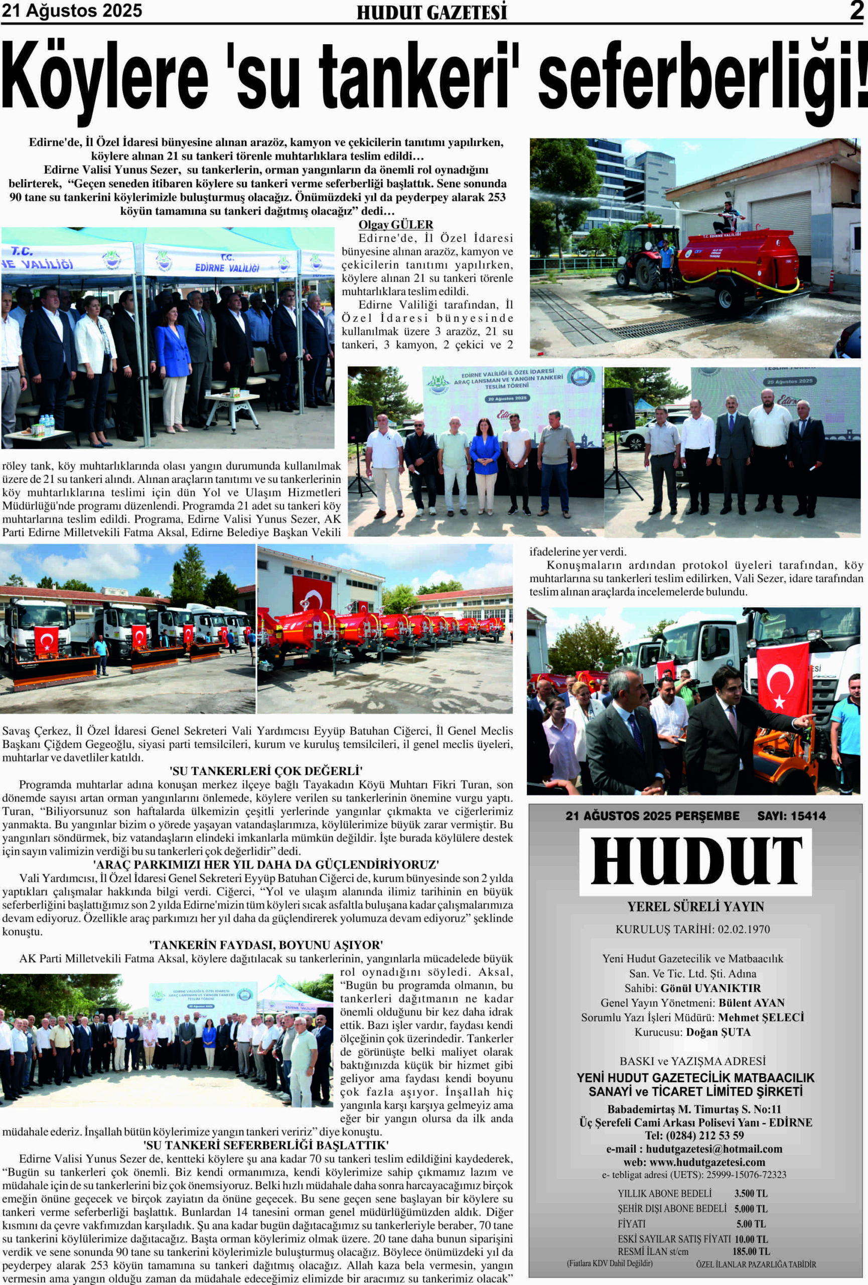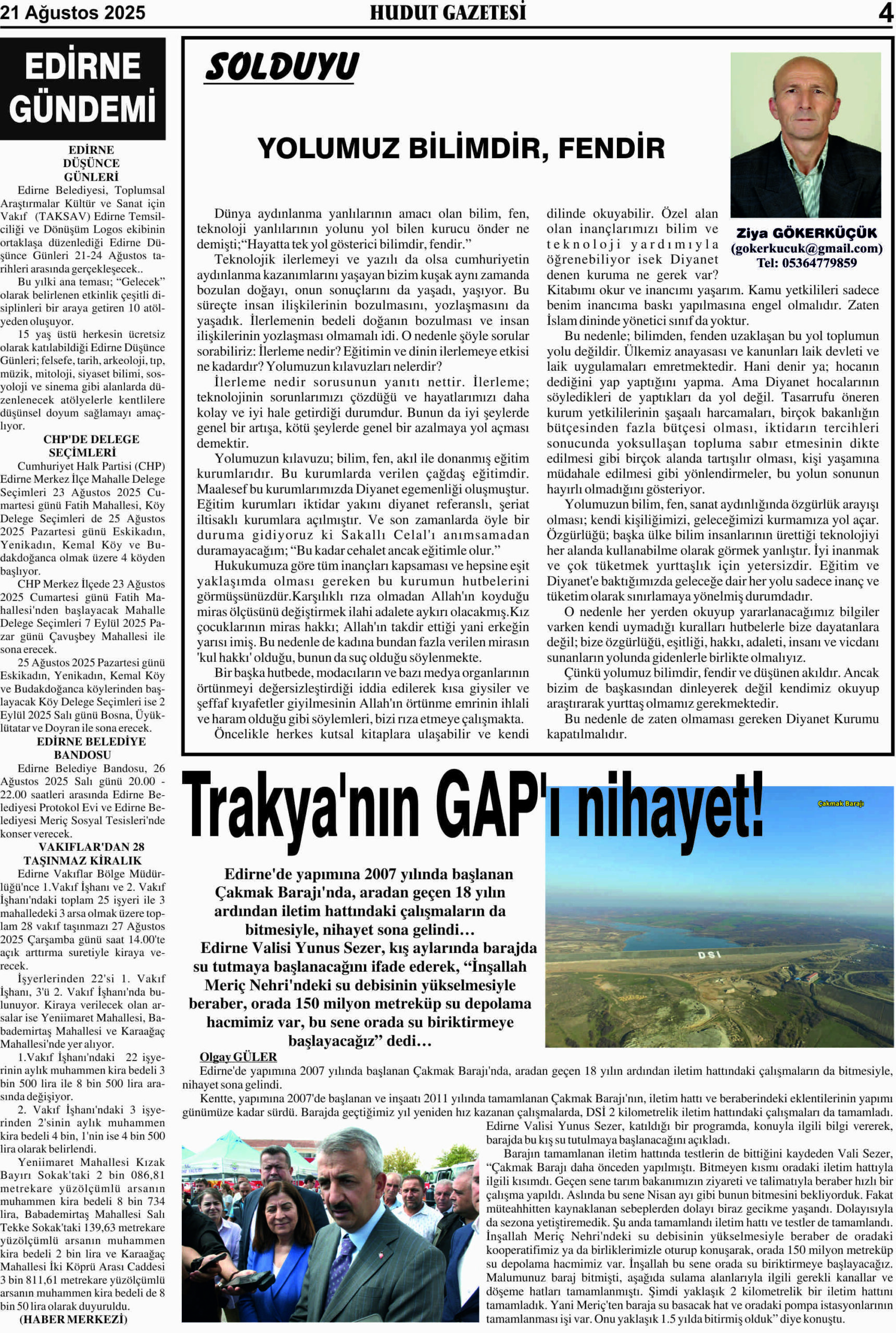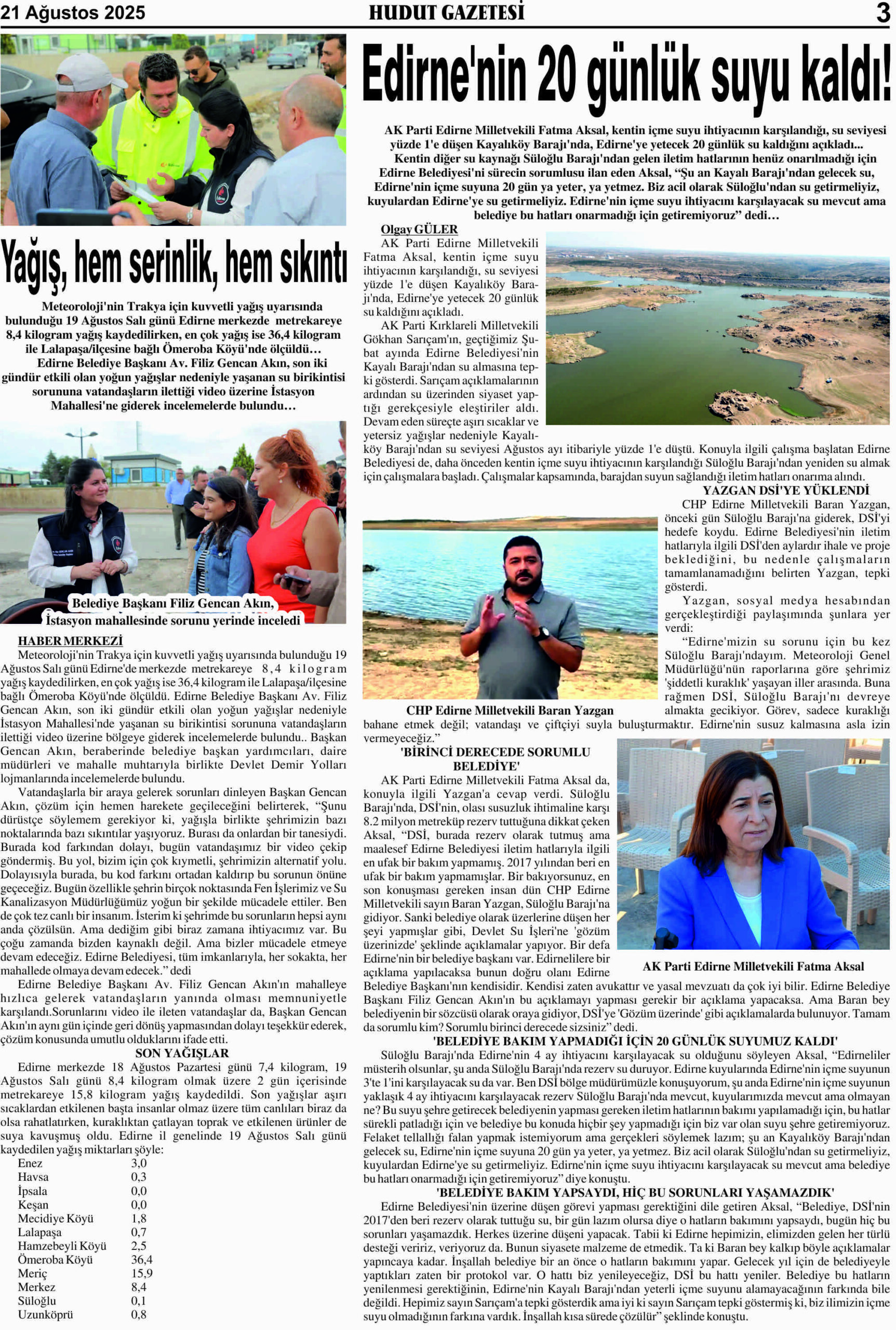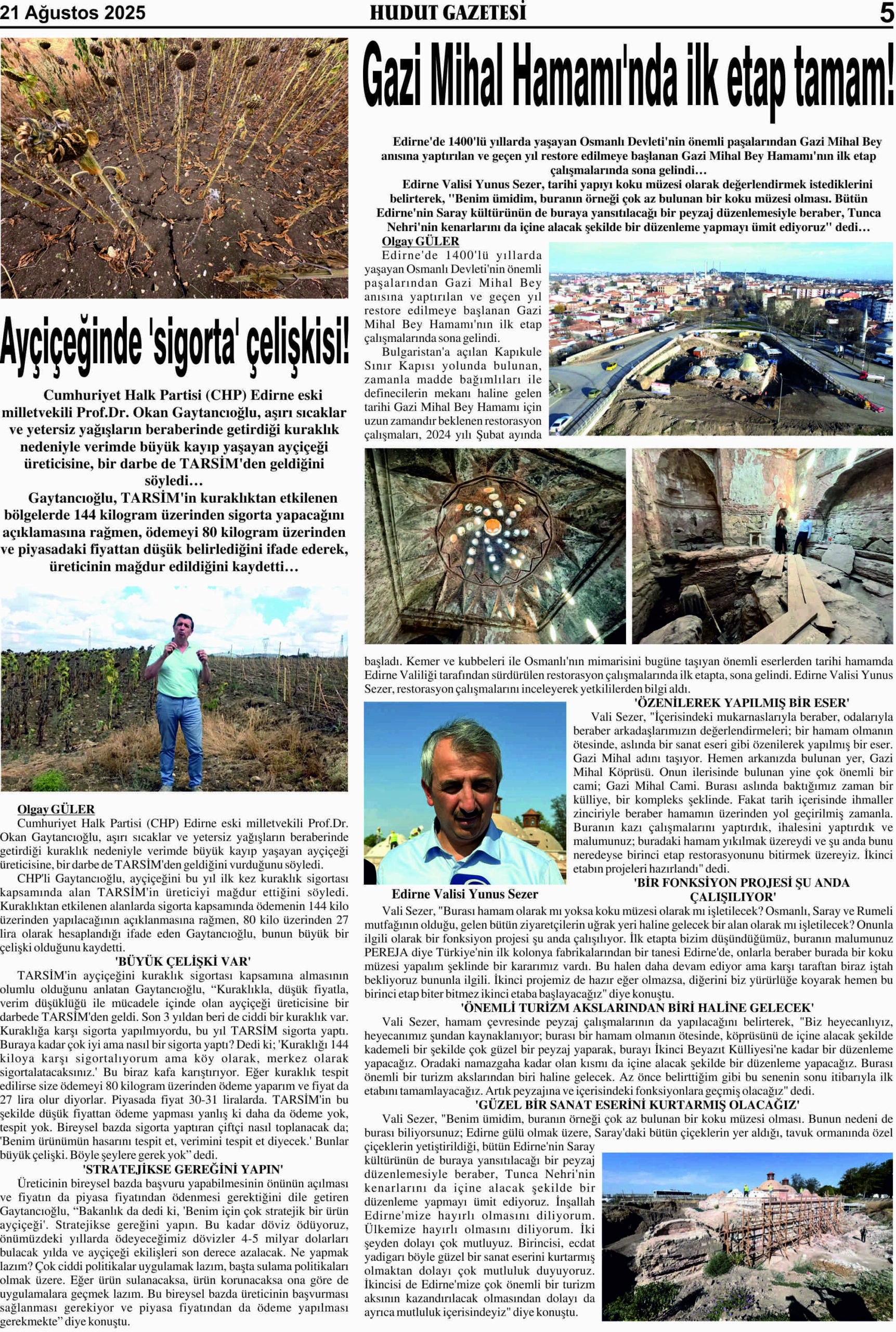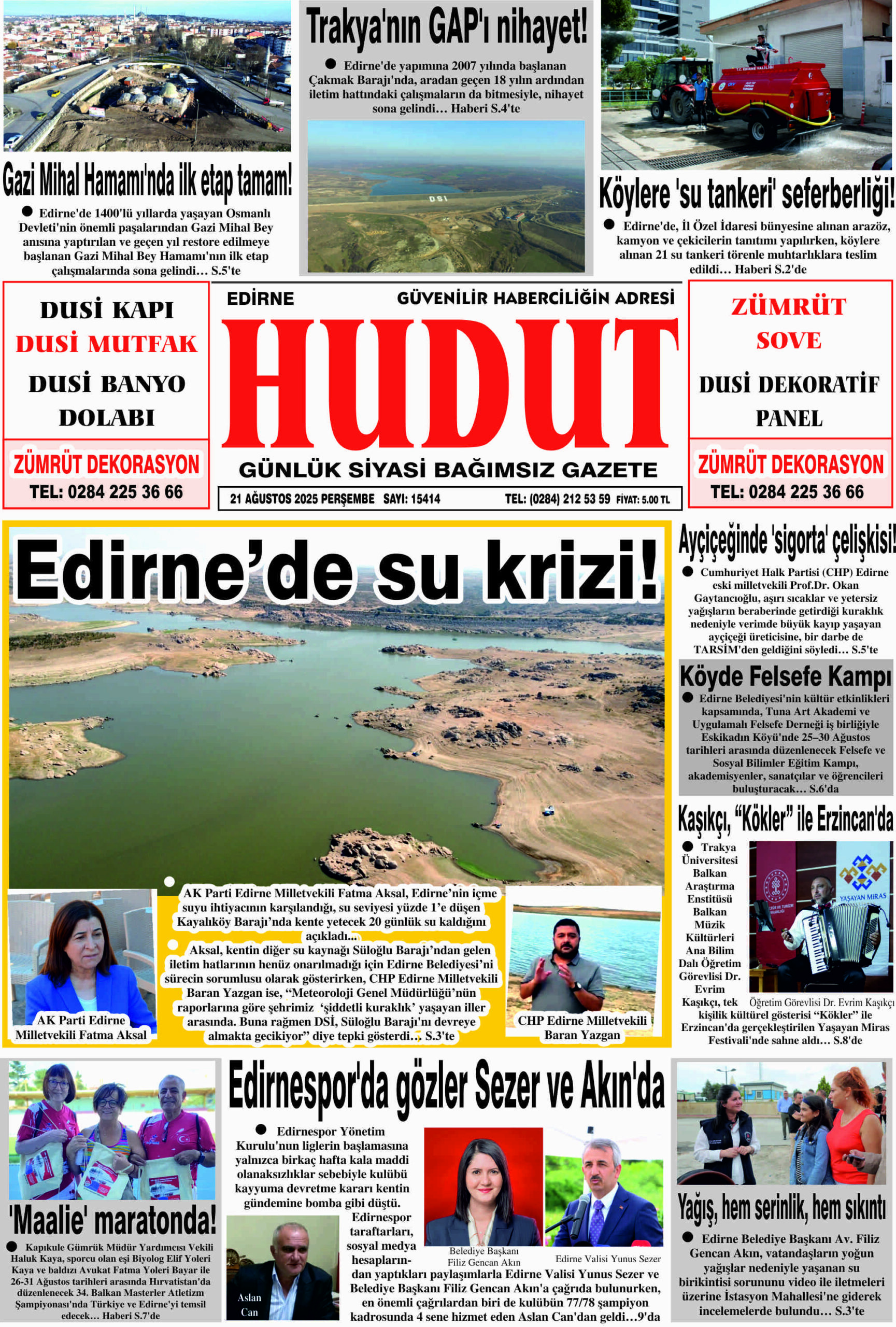 21 Ağustos 2025 Perşembe Hudut Gazetesi