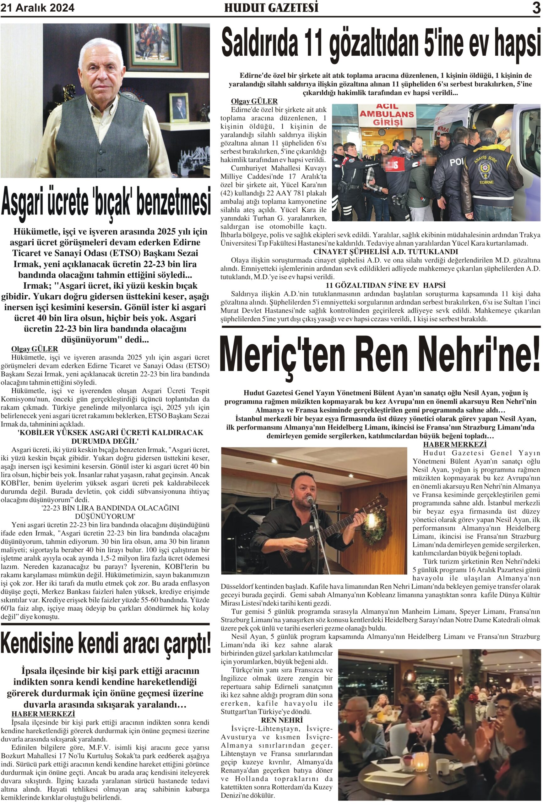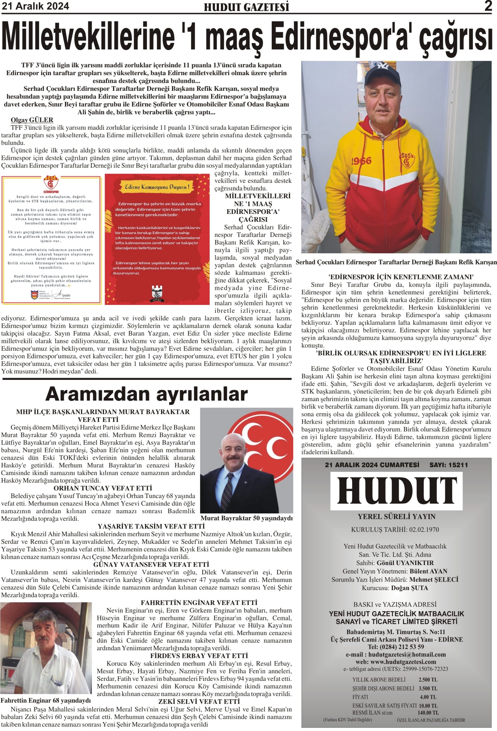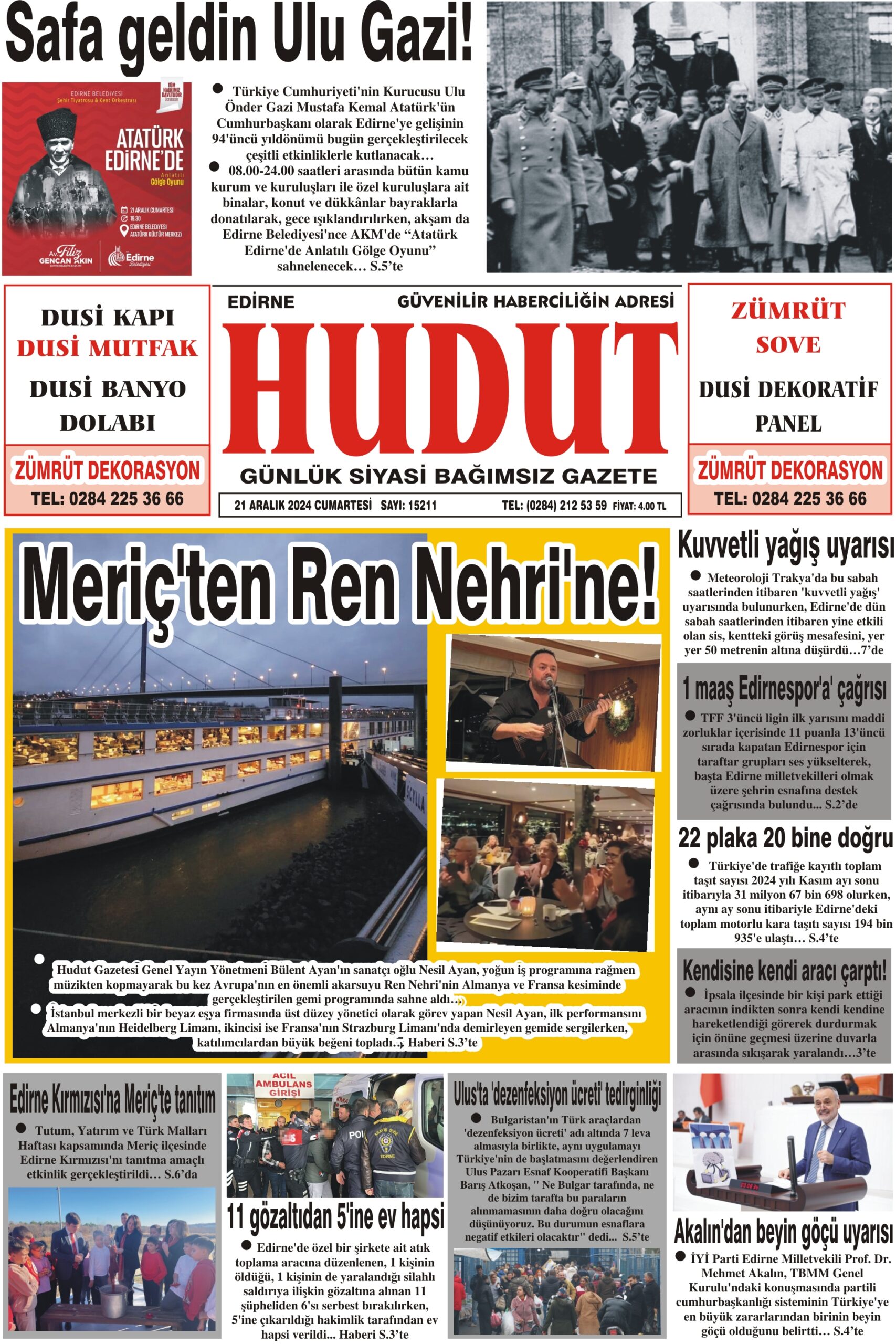 21 Aralık 2024 Cumartesi Hudut Gazetesi