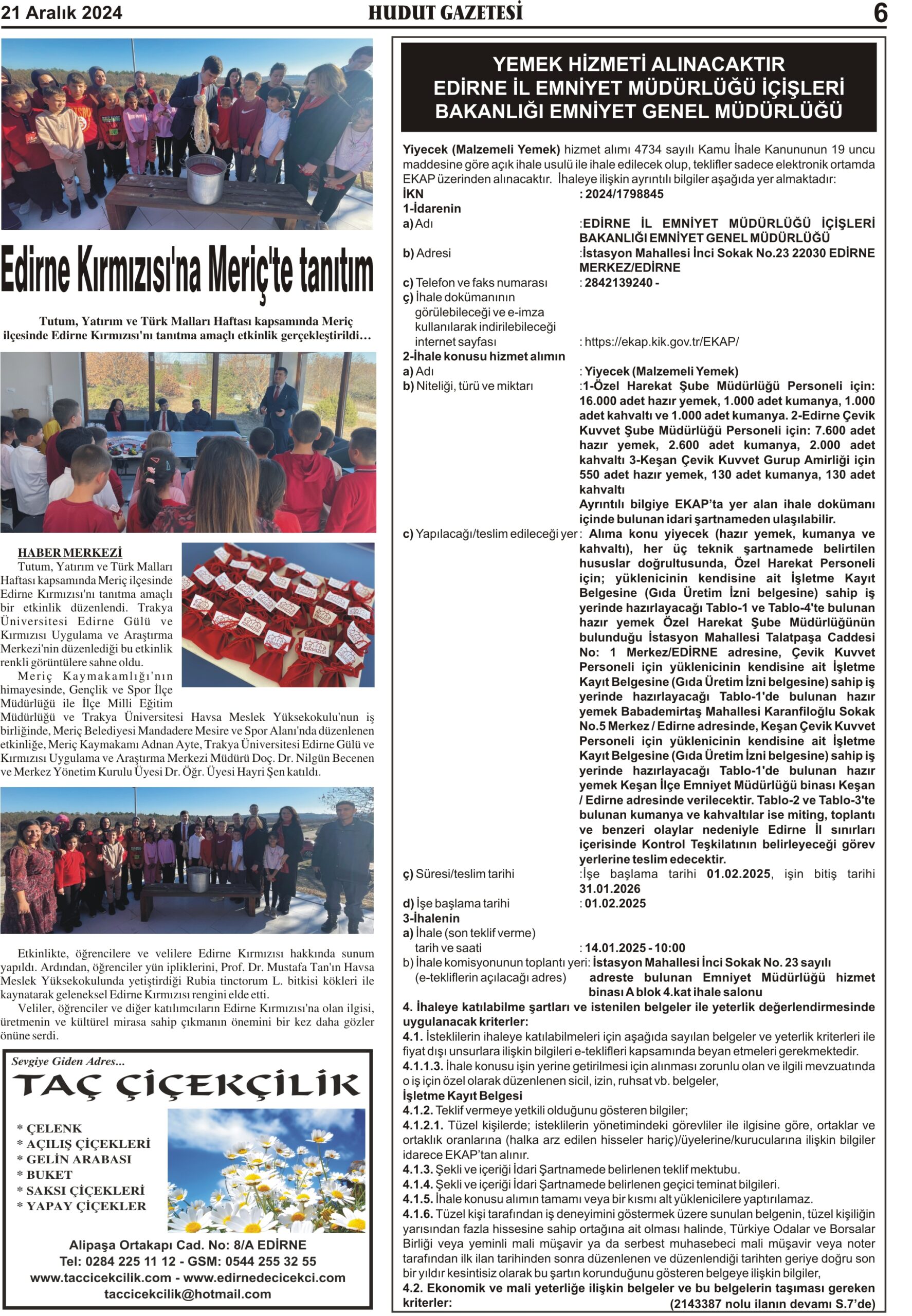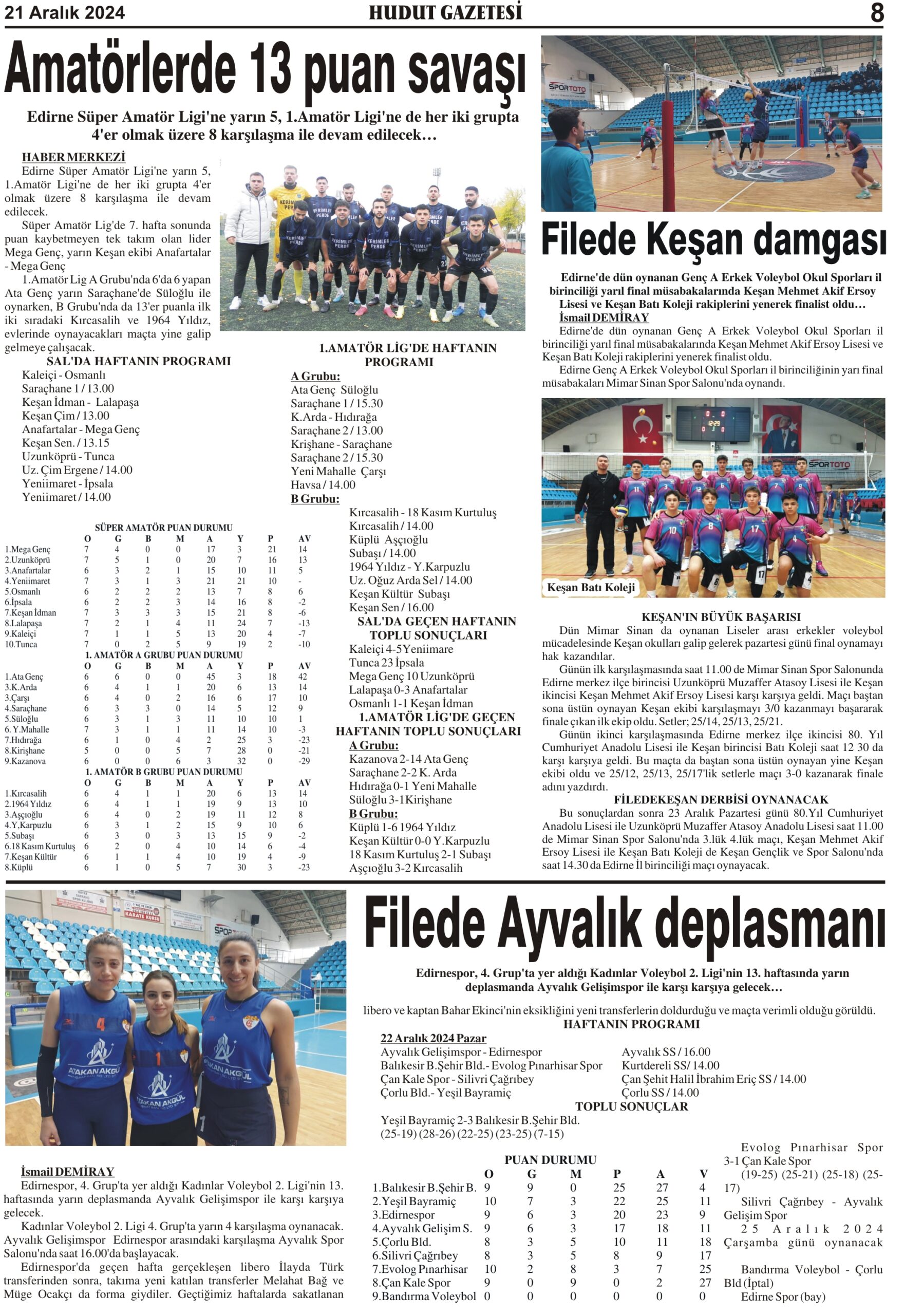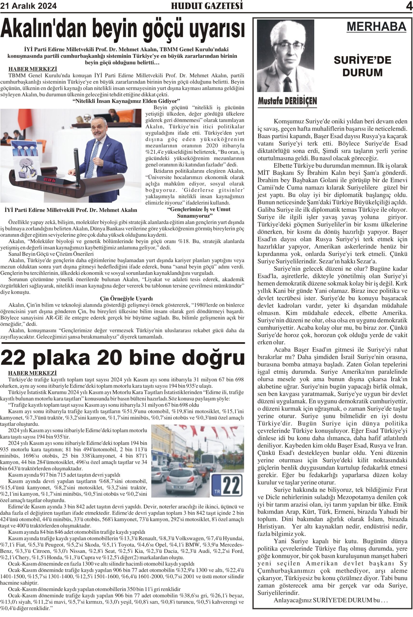 21 Aralık 2024 Cumartesi Hudut Gazetesi