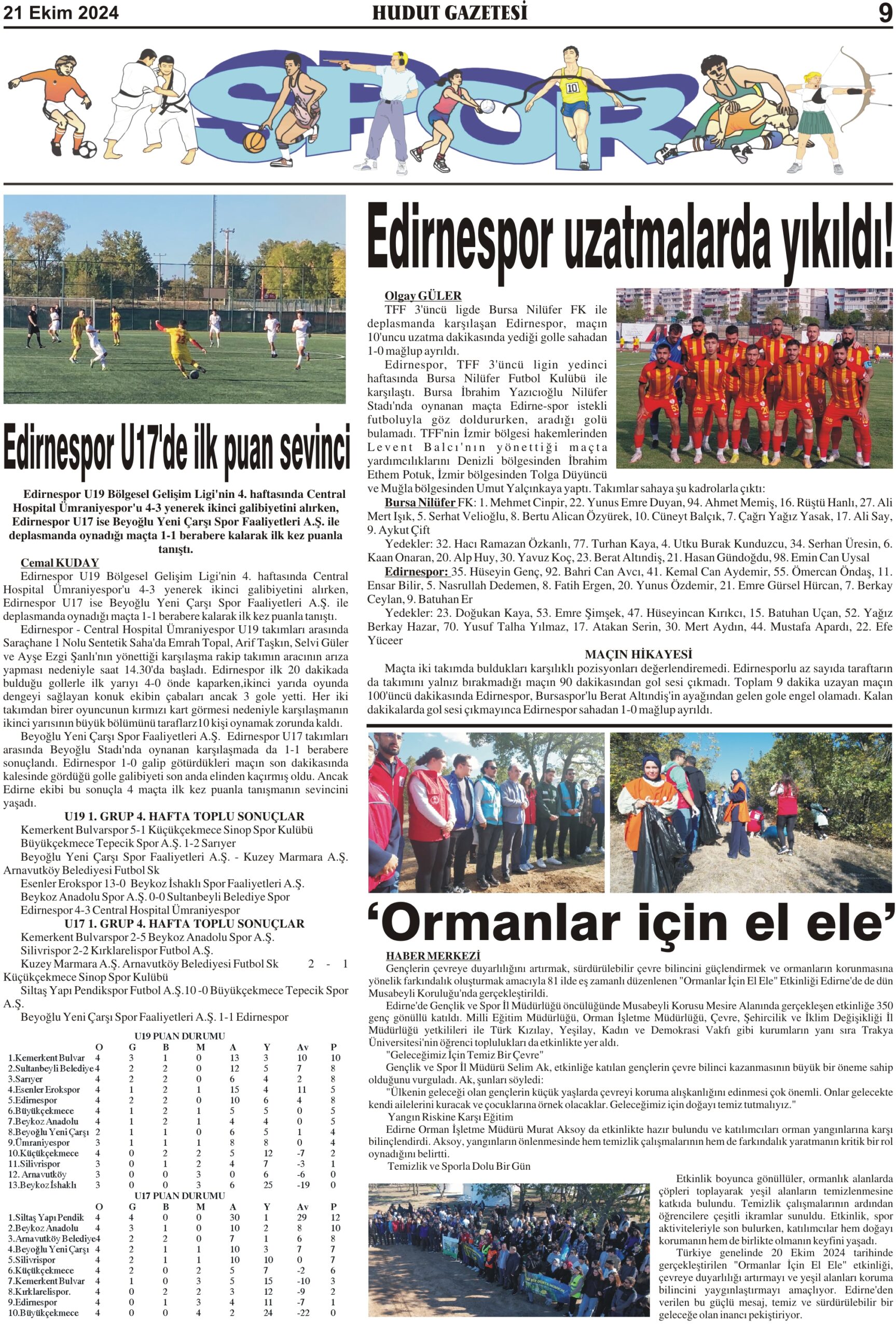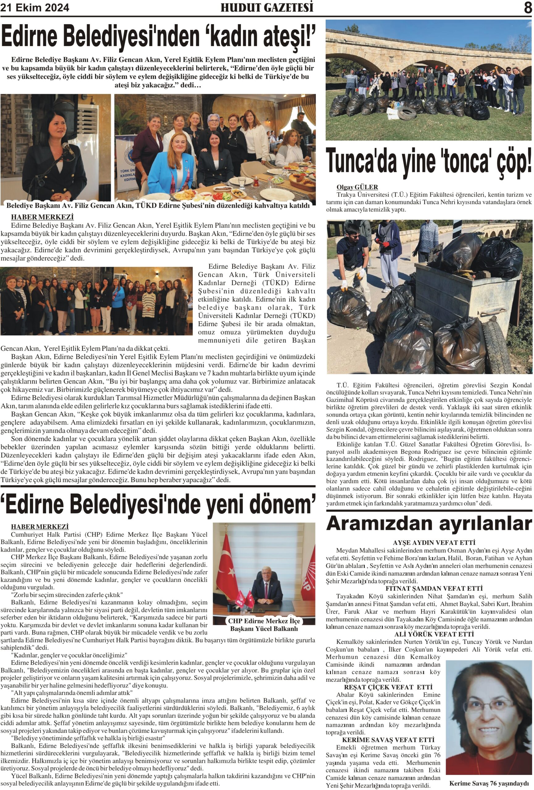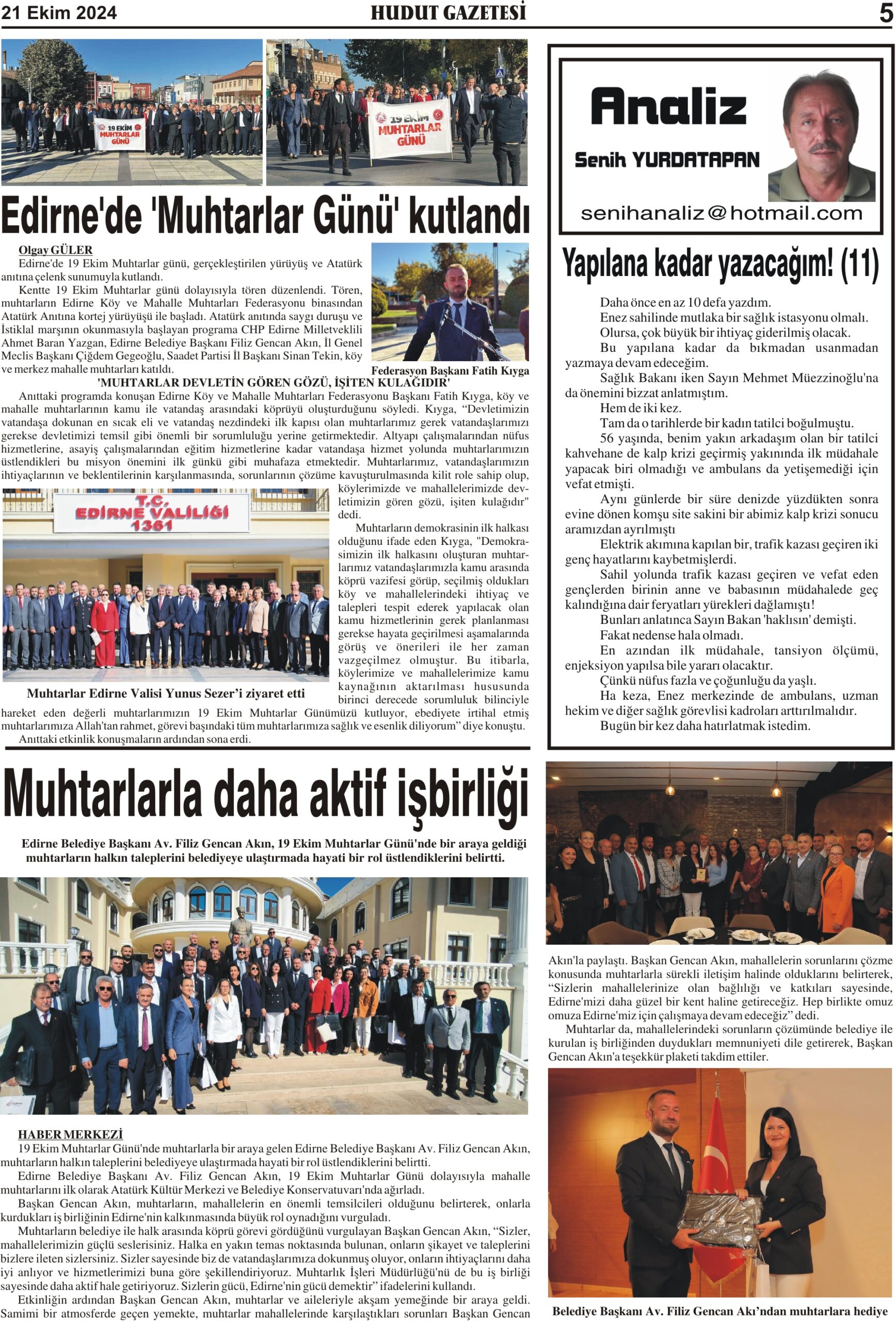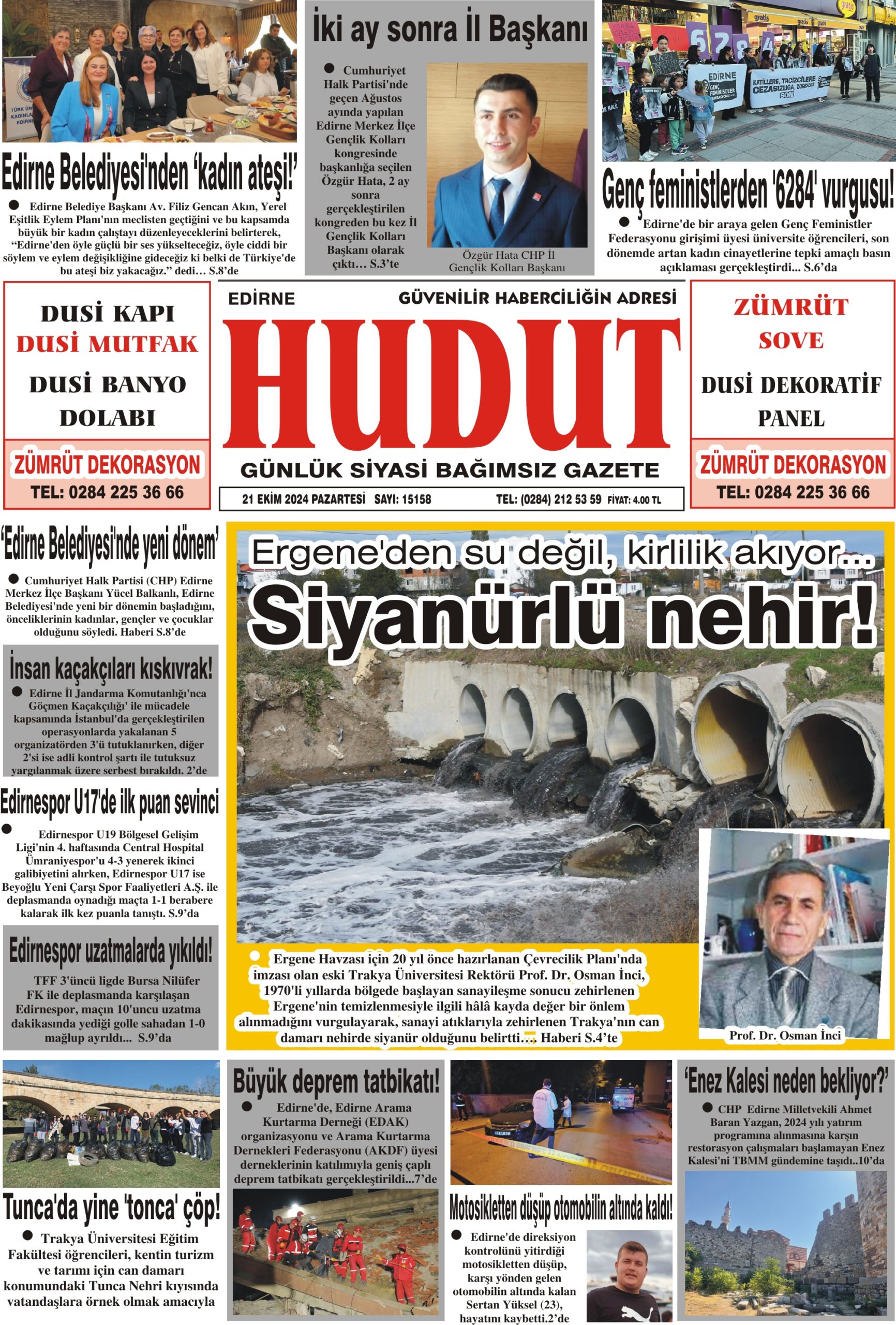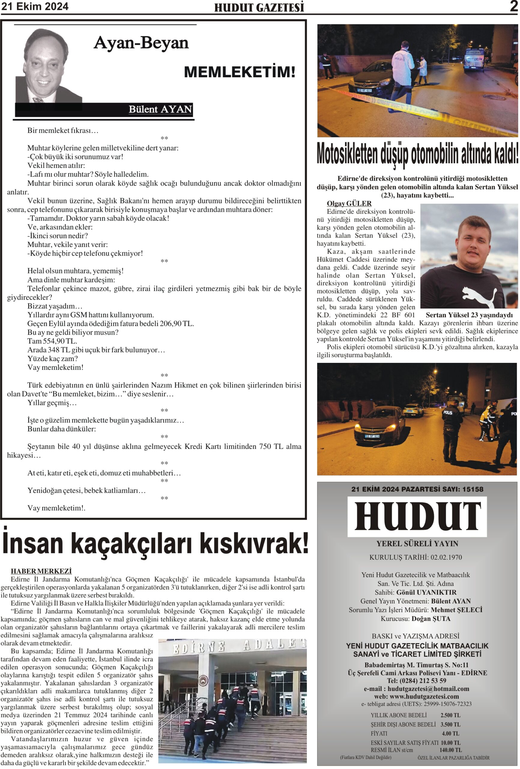 21 Ekim 2024 Pazartesi Hudut Gazetesi