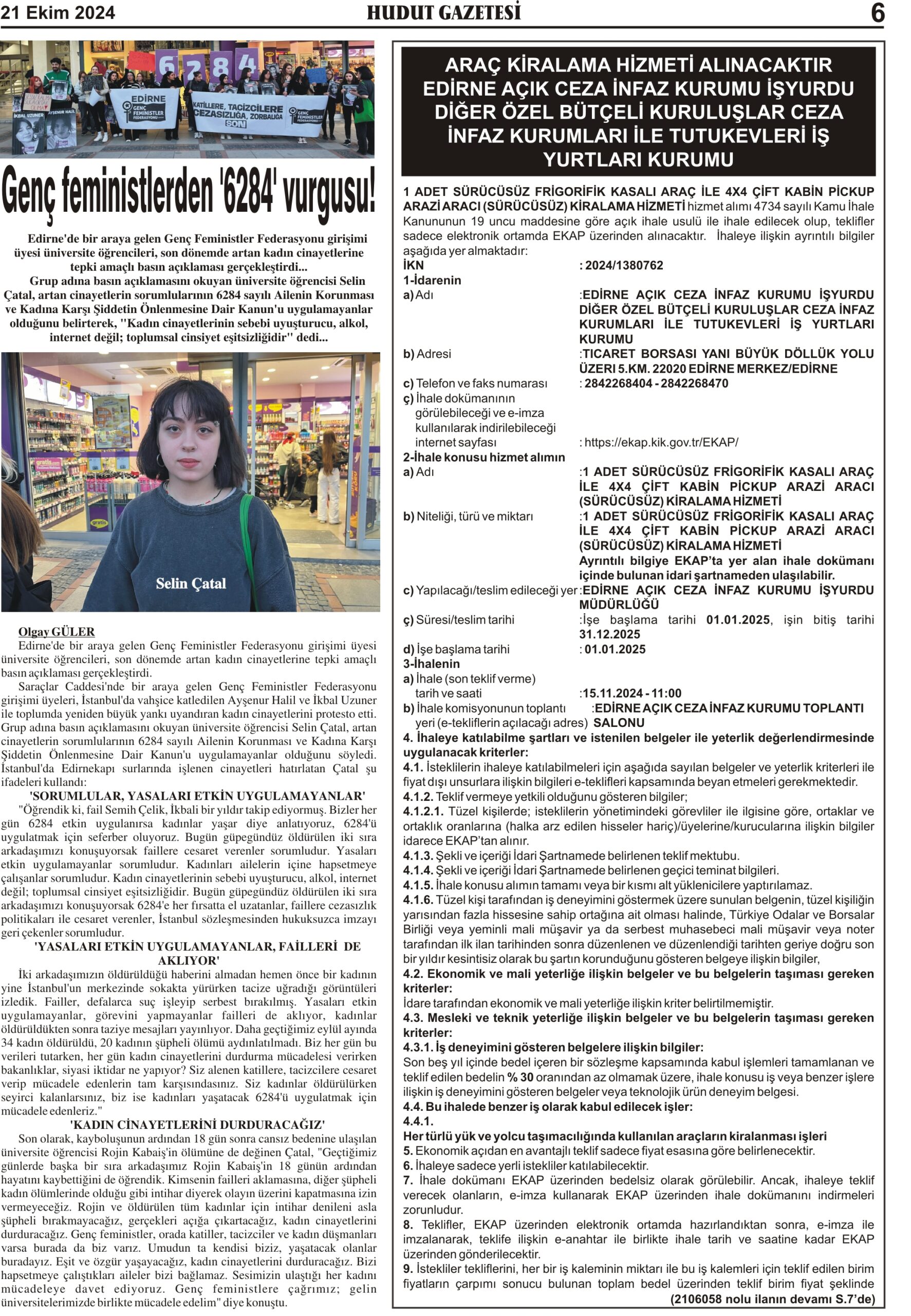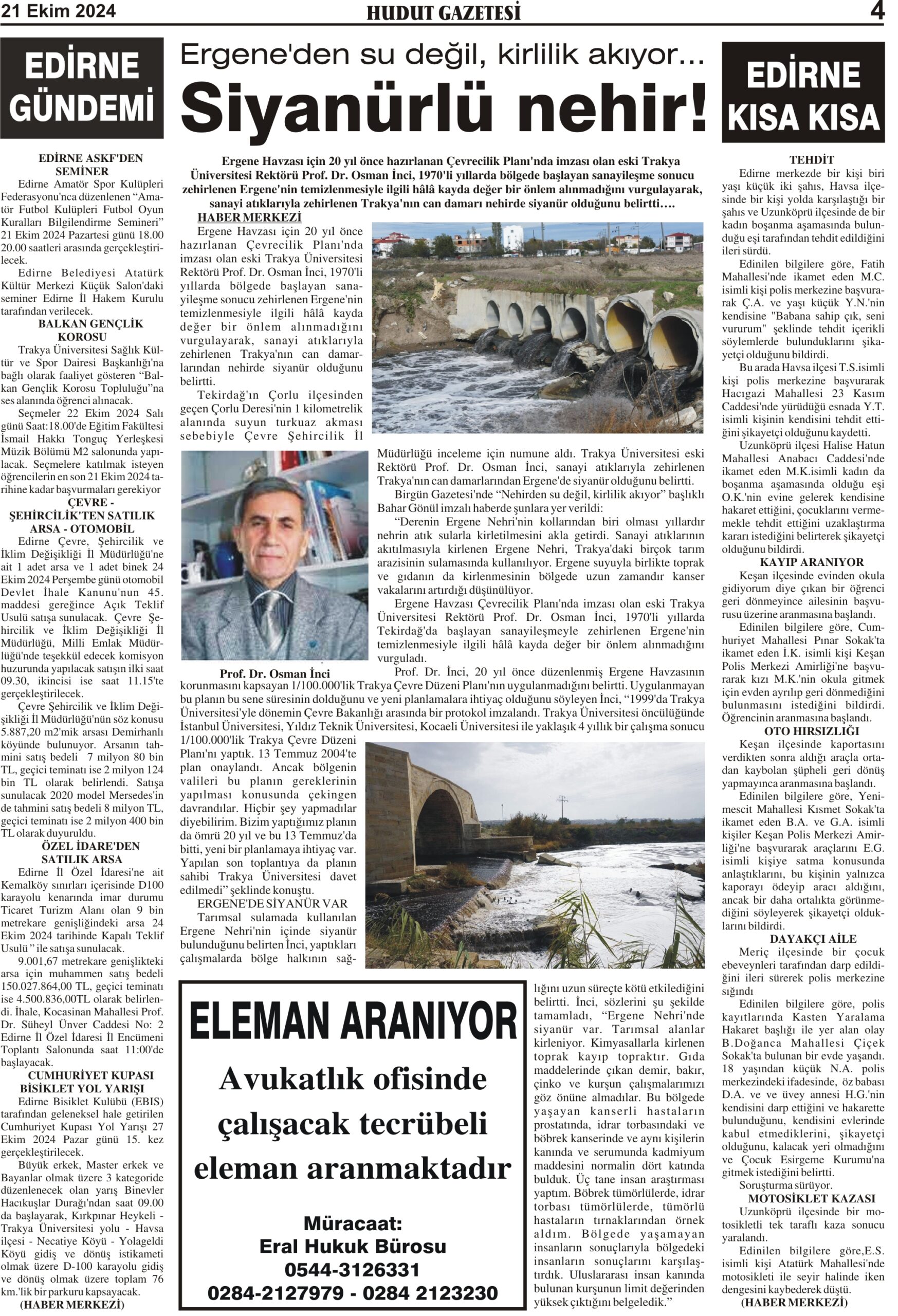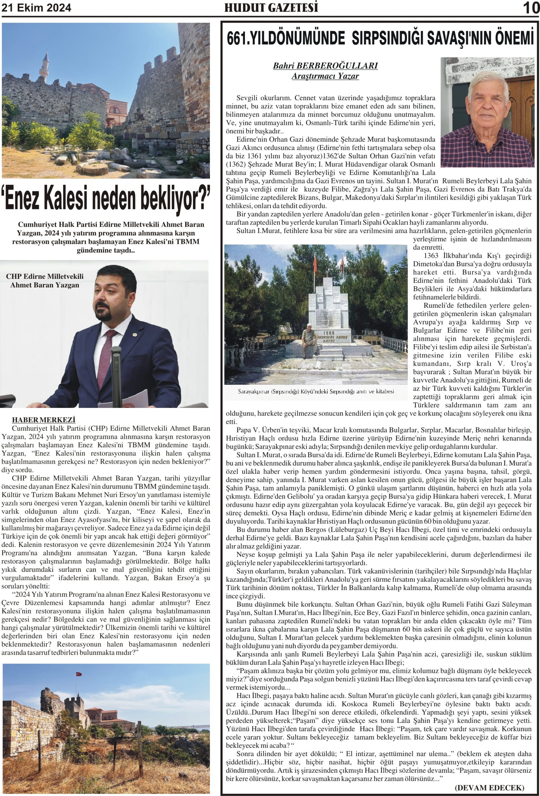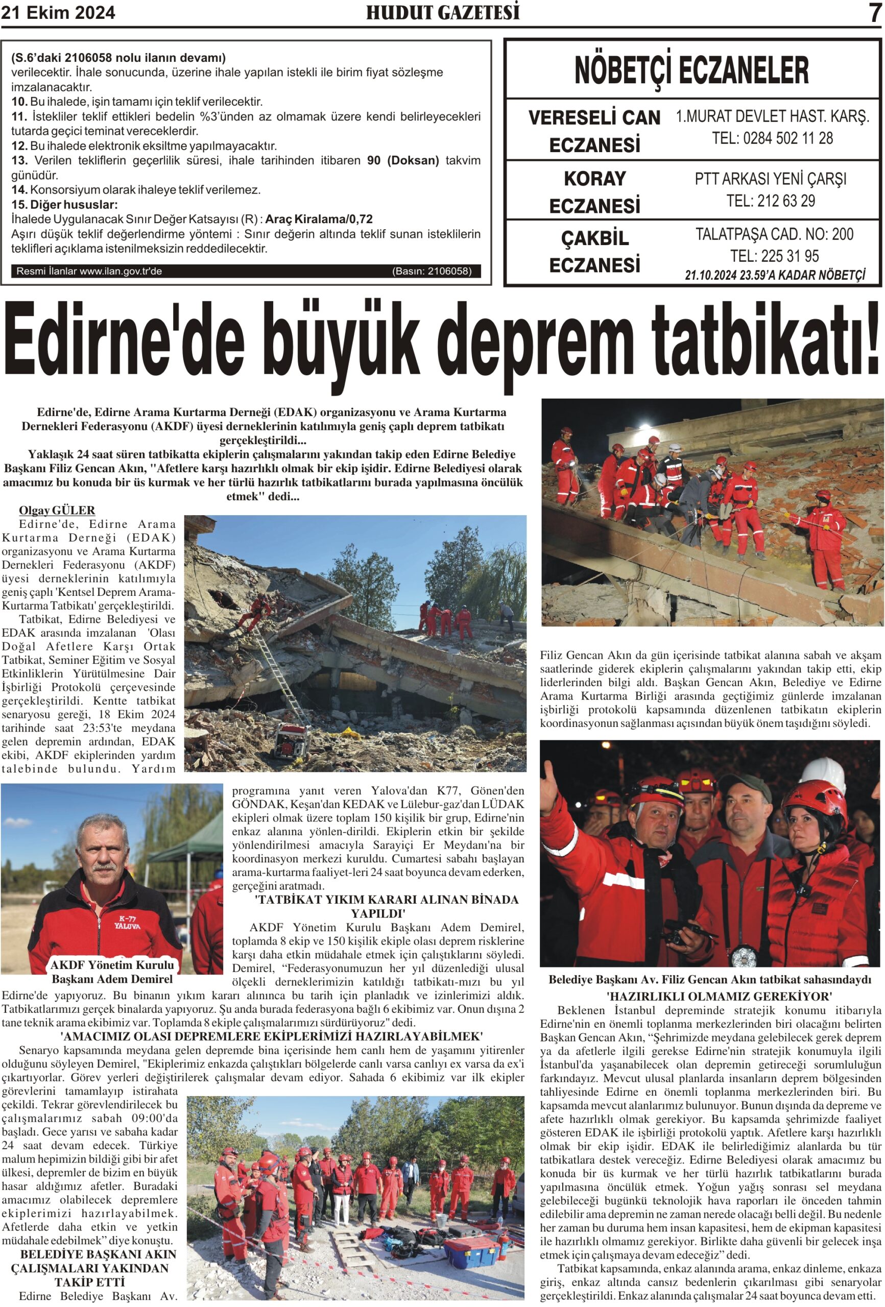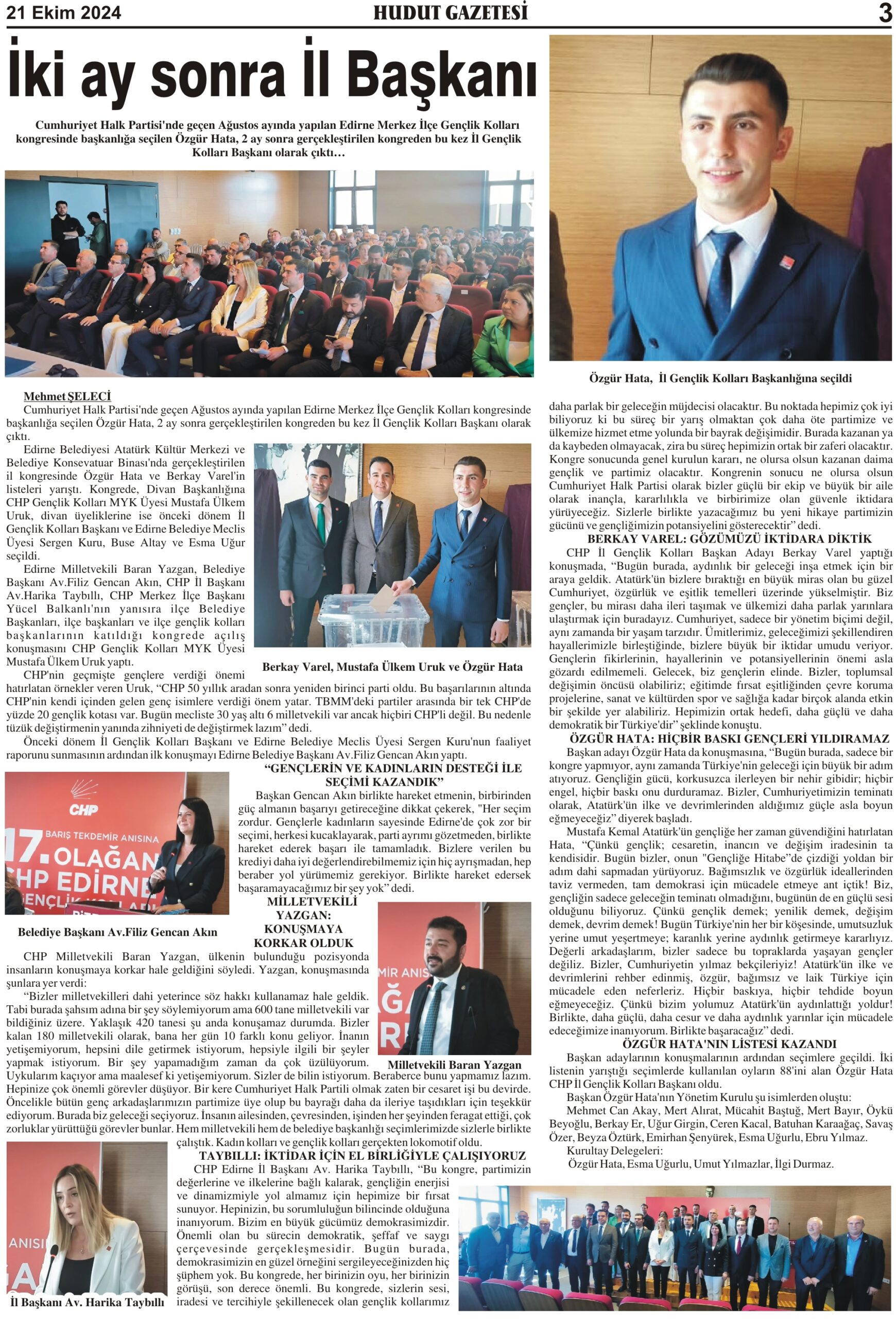 21 Ekim 2024 Pazartesi Hudut Gazetesi