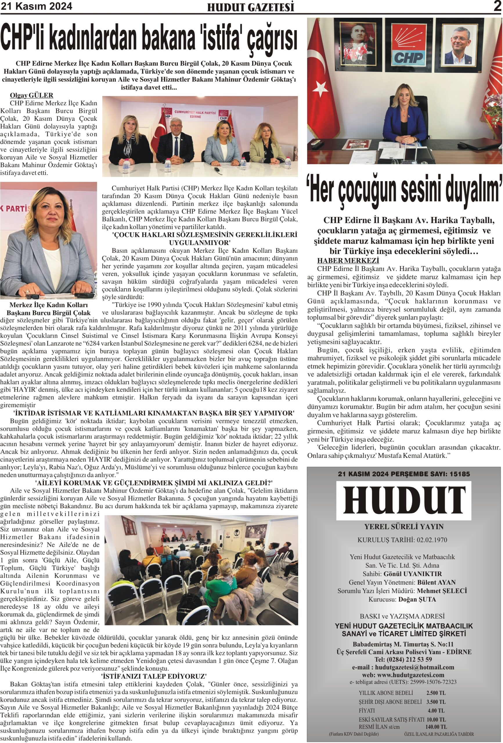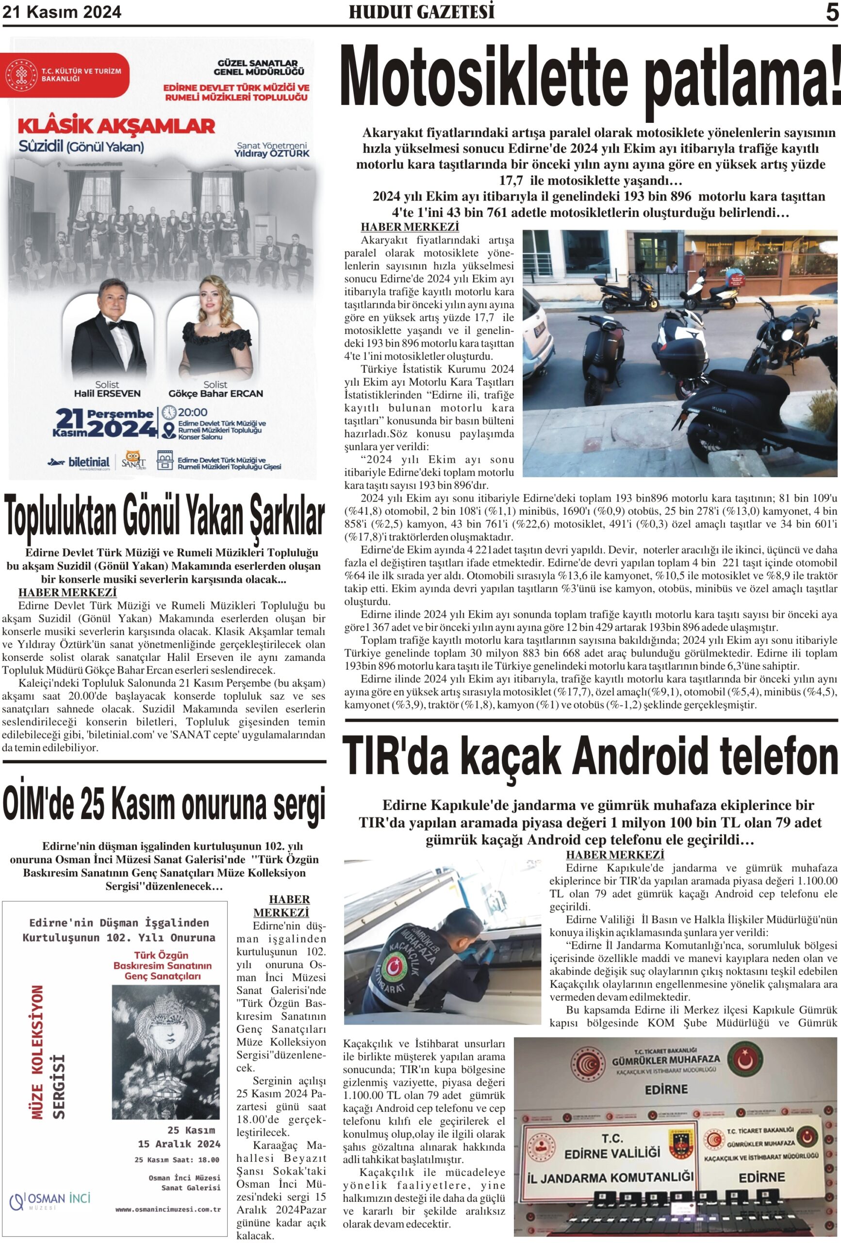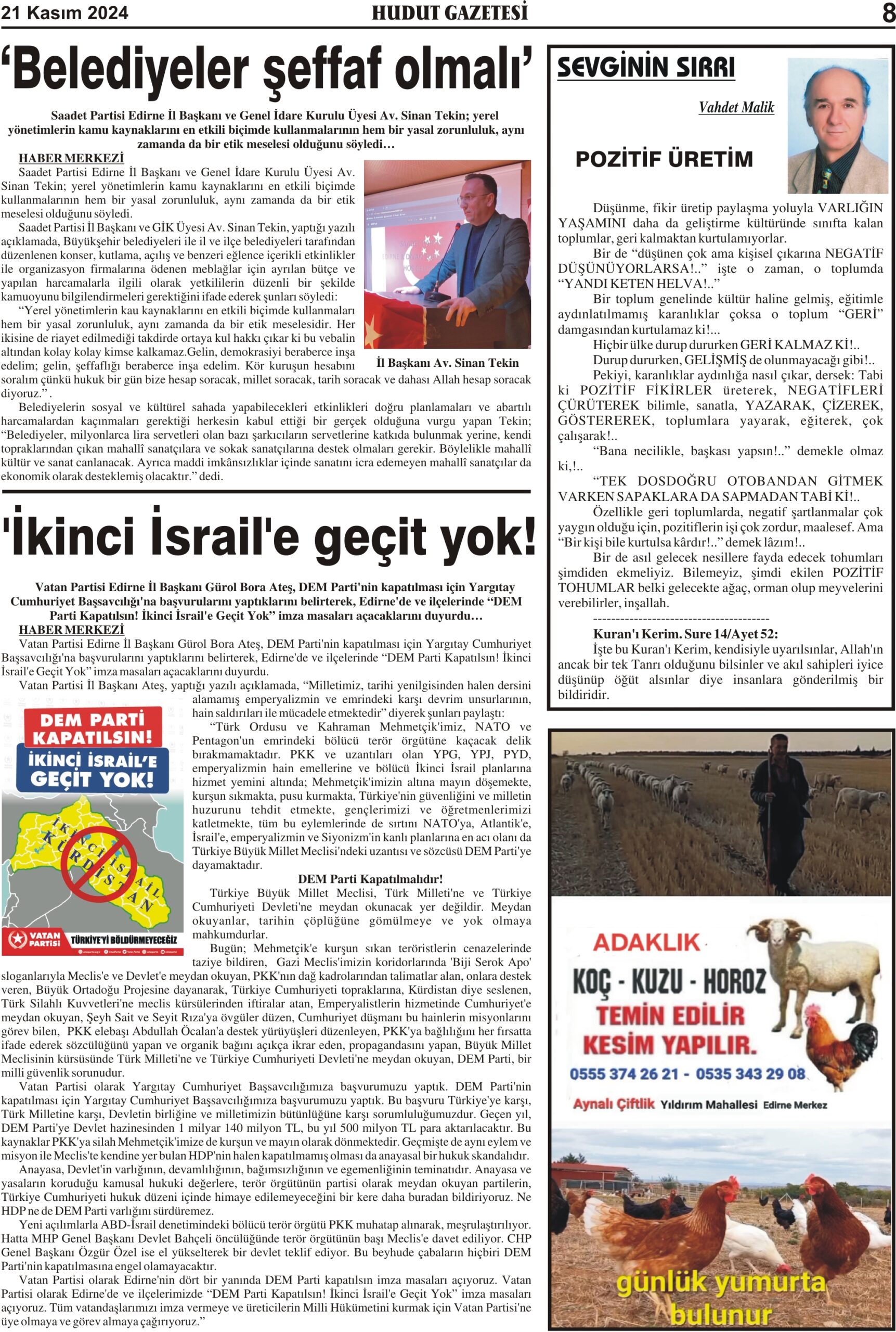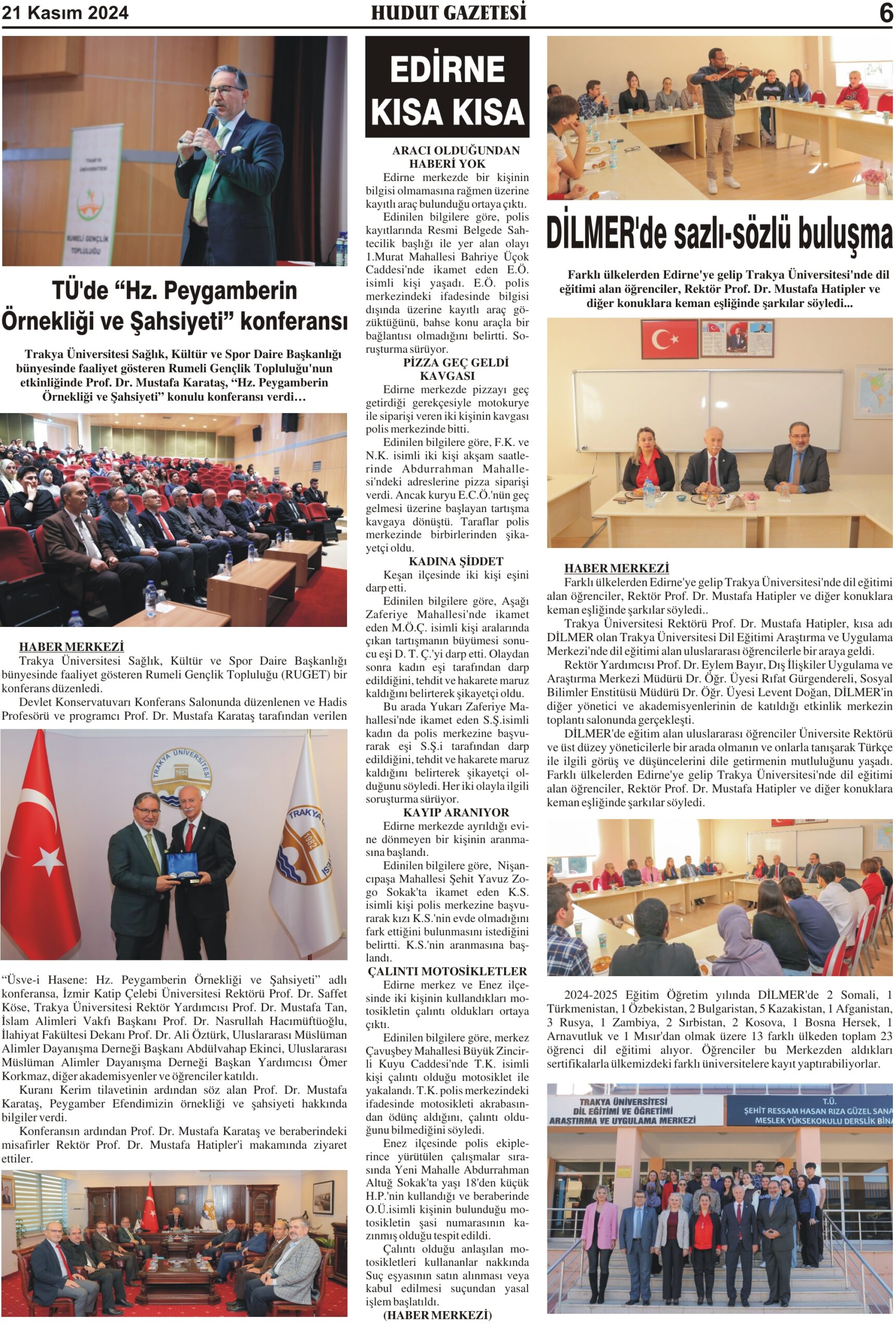 21 Kasım 2024 Perşembe Hudut Gazetesi