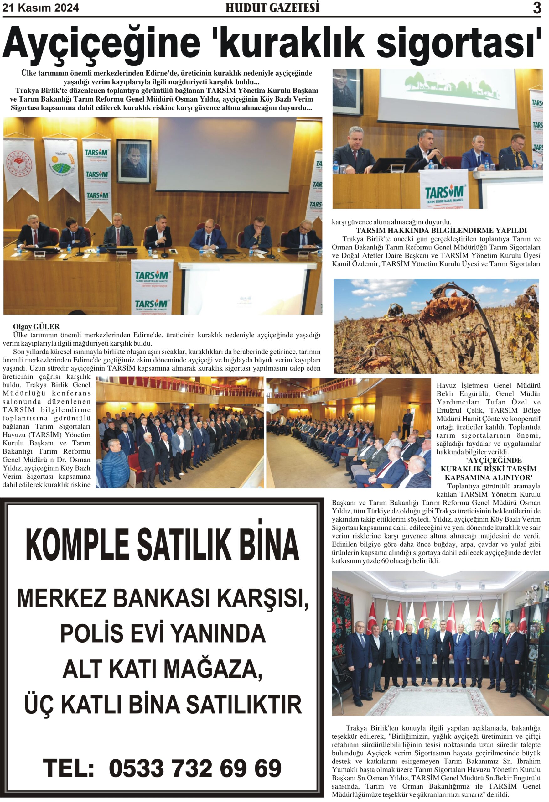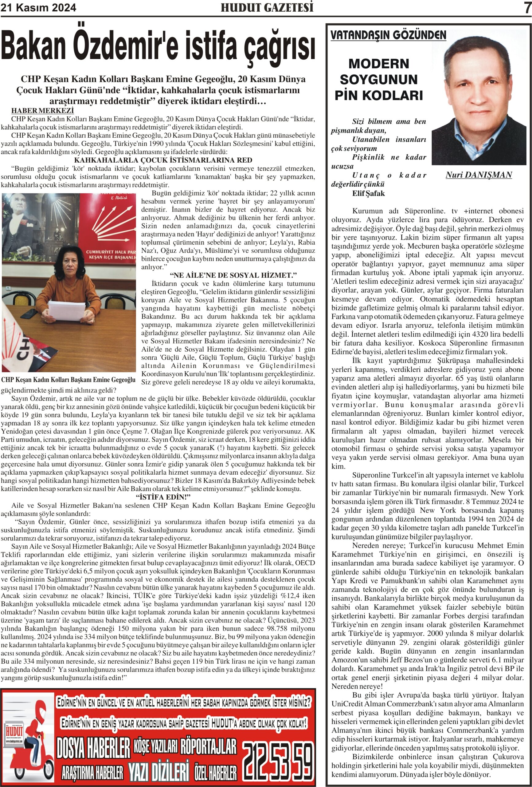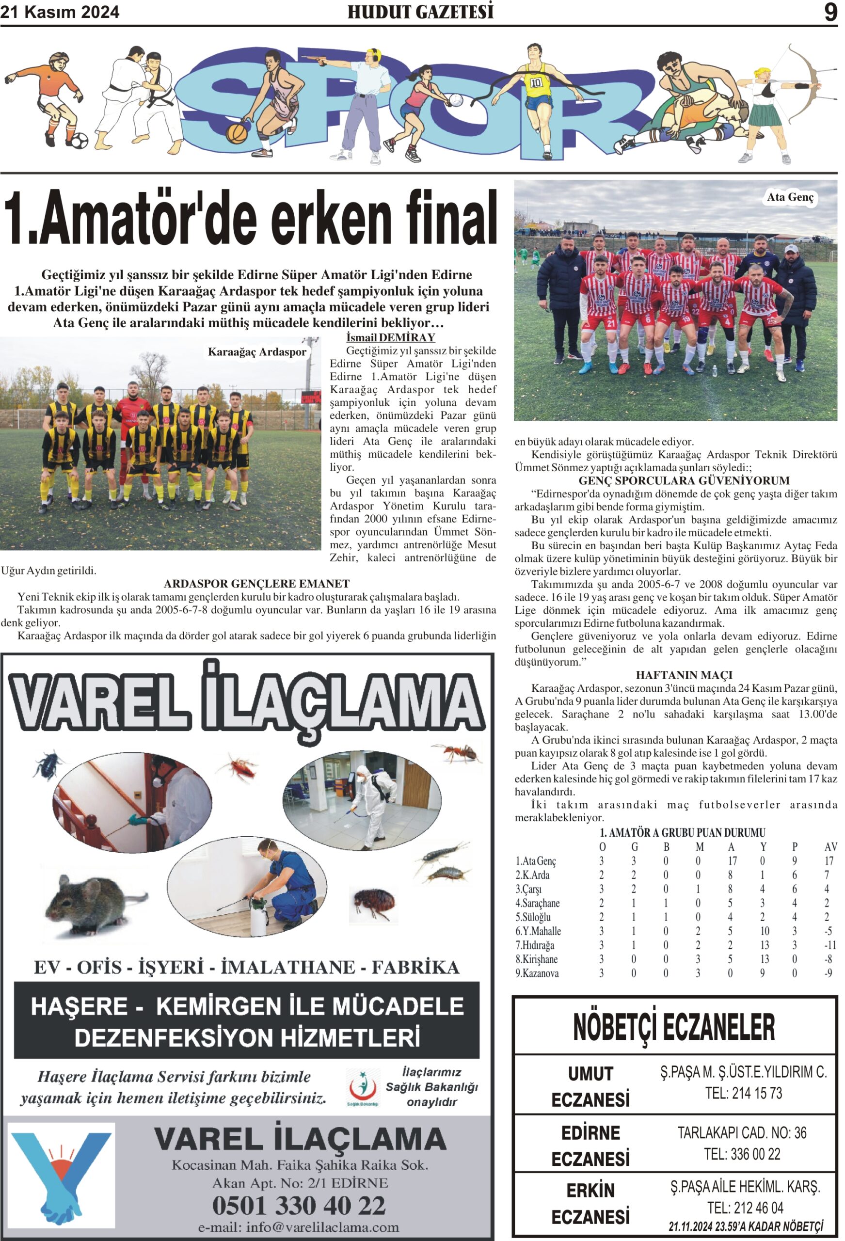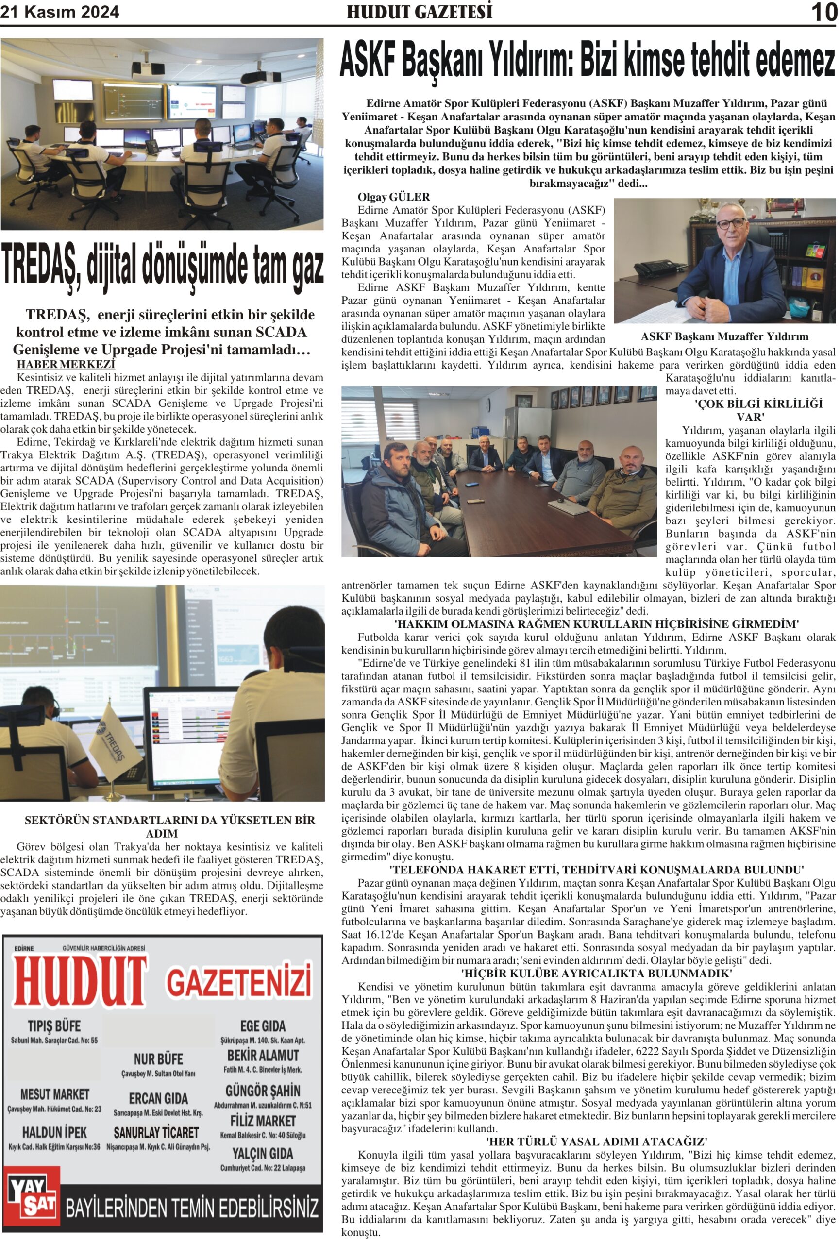 21 Kasım 2024 Perşembe Hudut Gazetesi