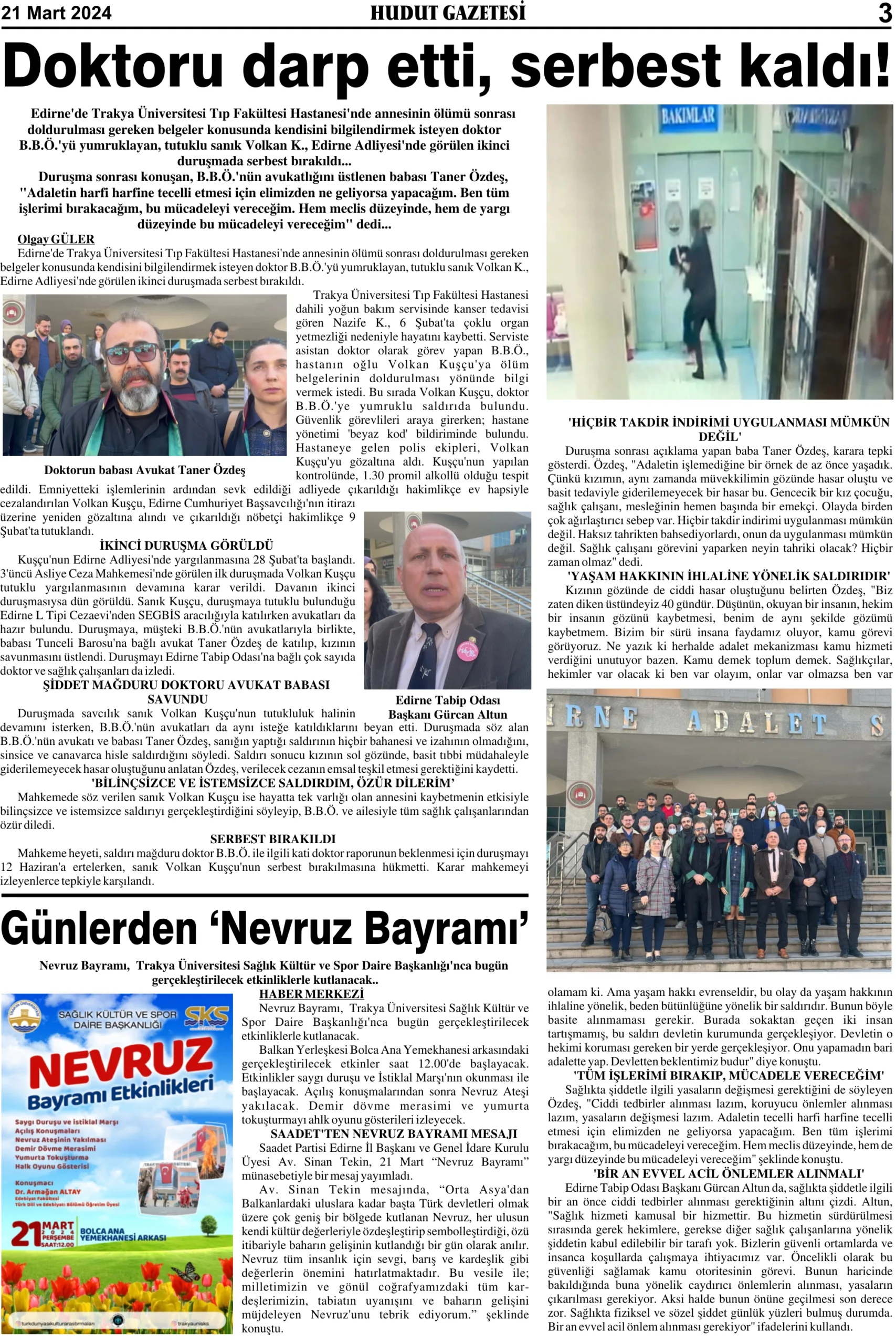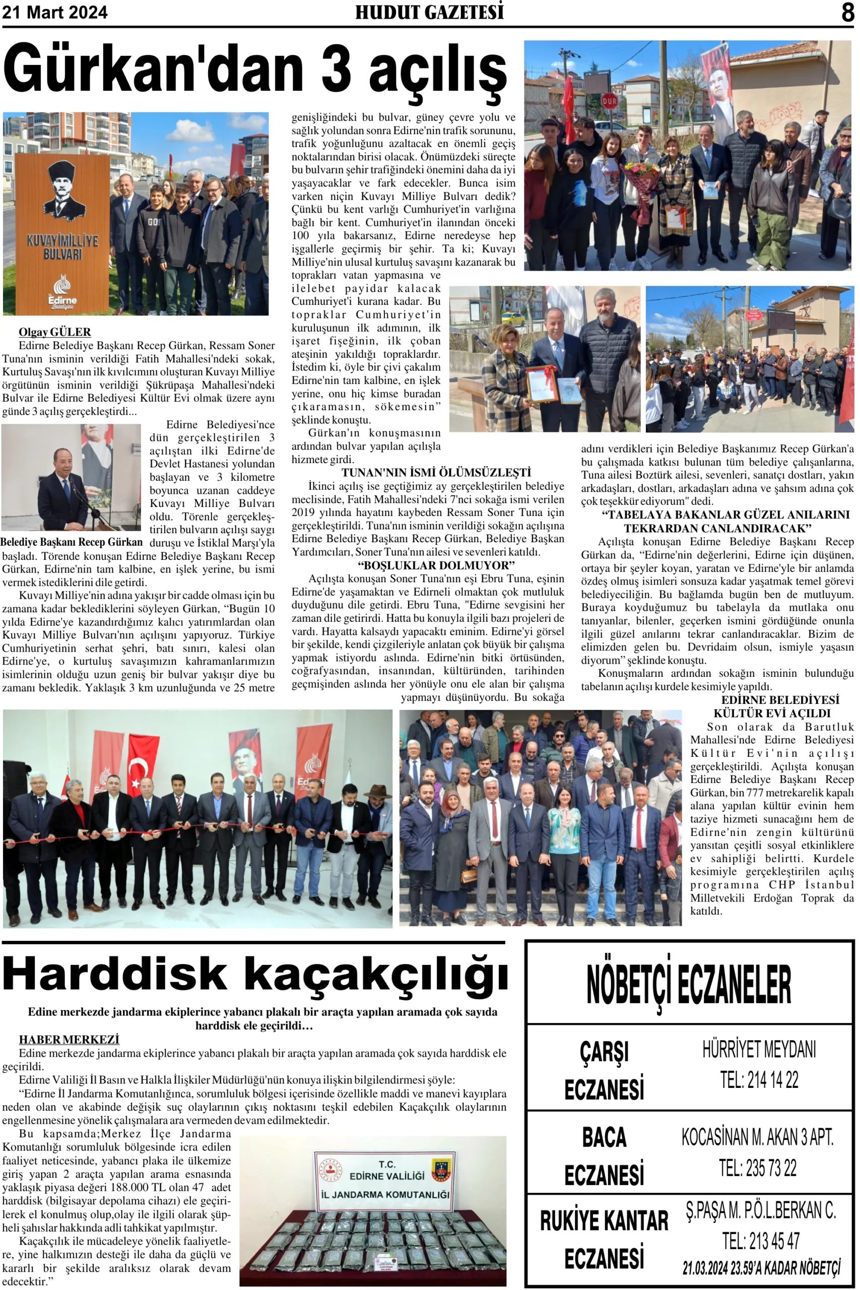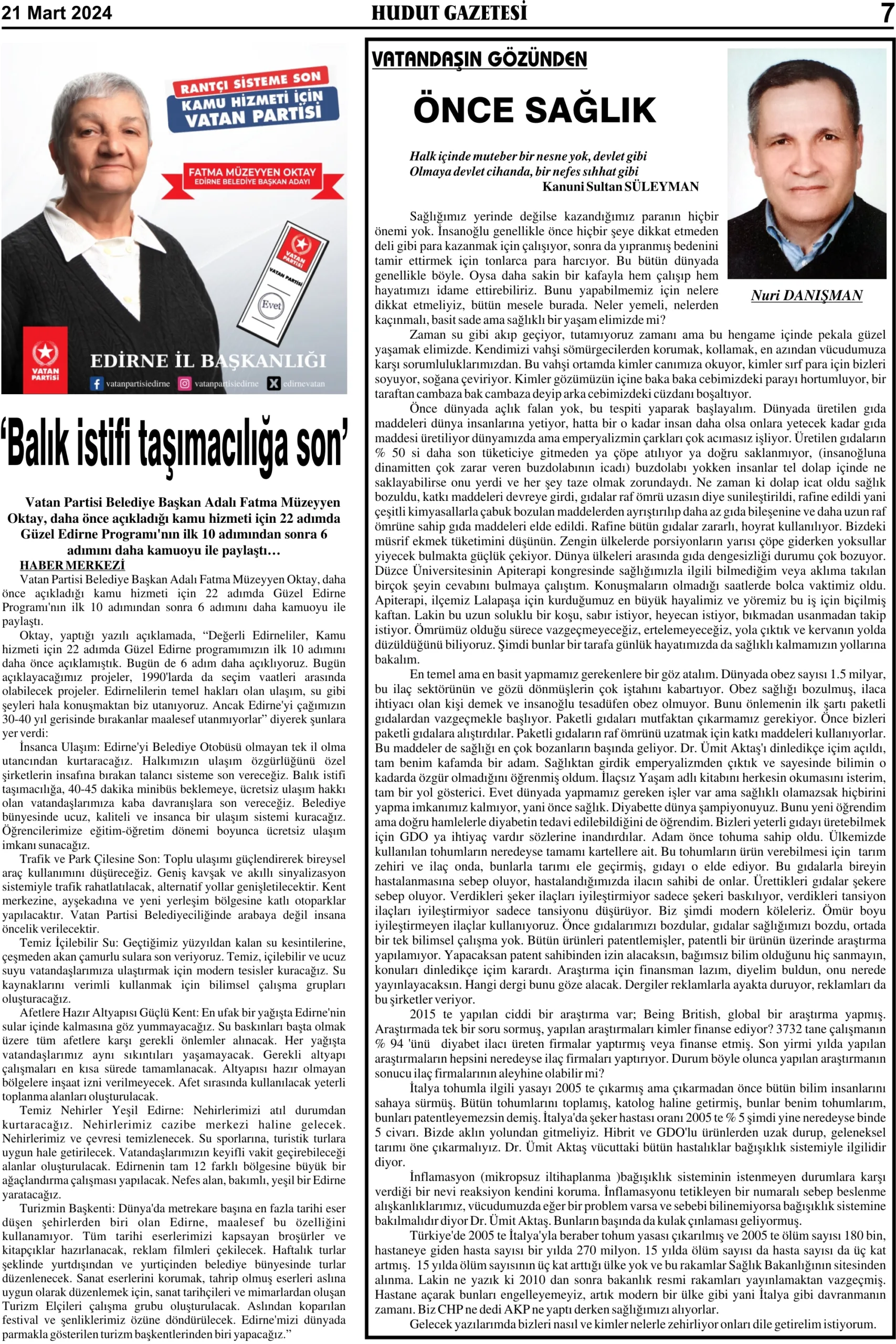 21 Mart 2024 Perşembe Hudut Gazetesi