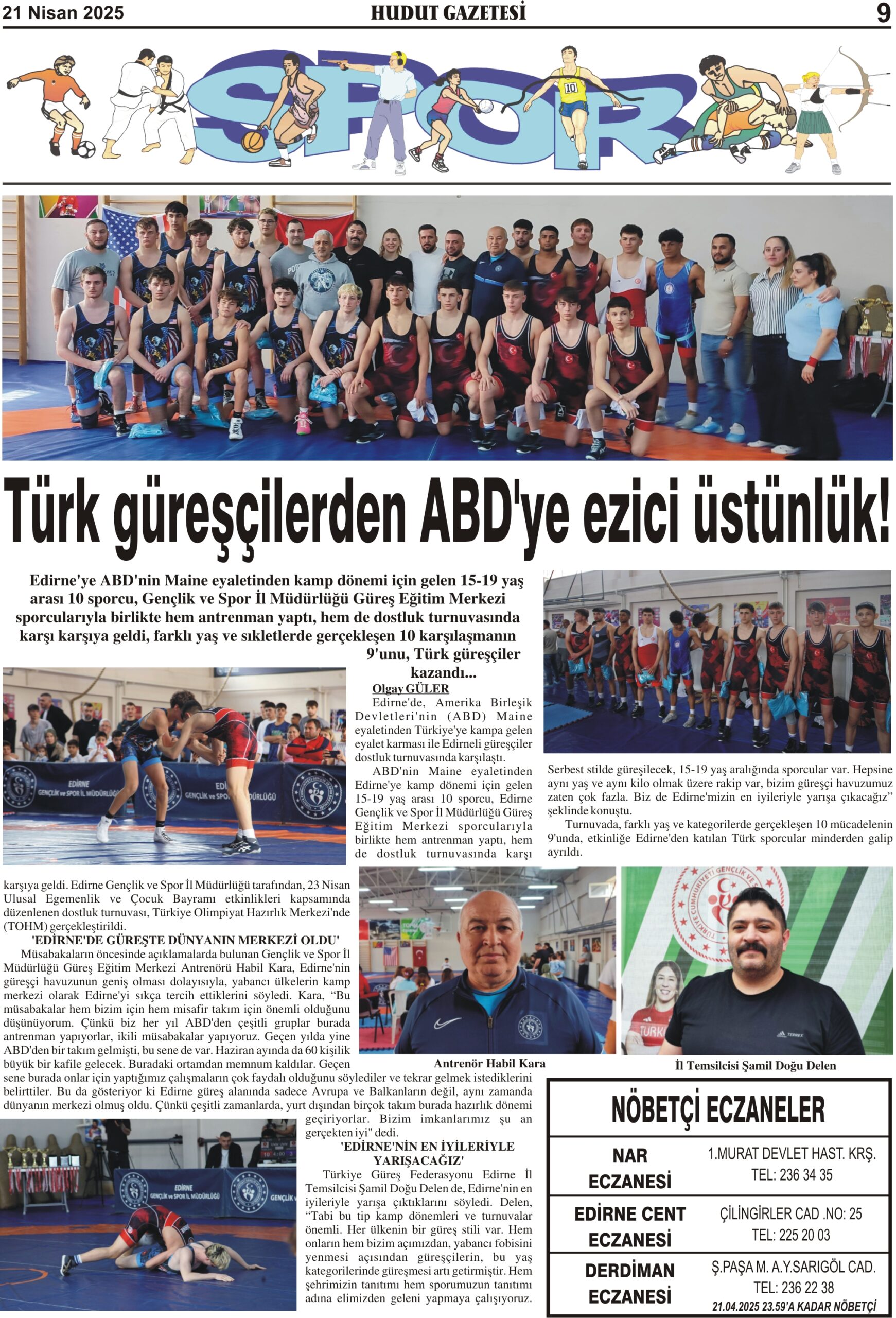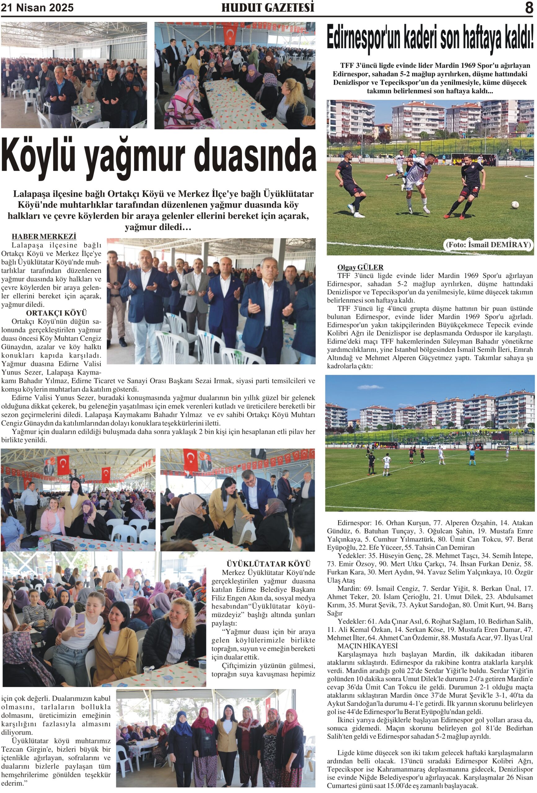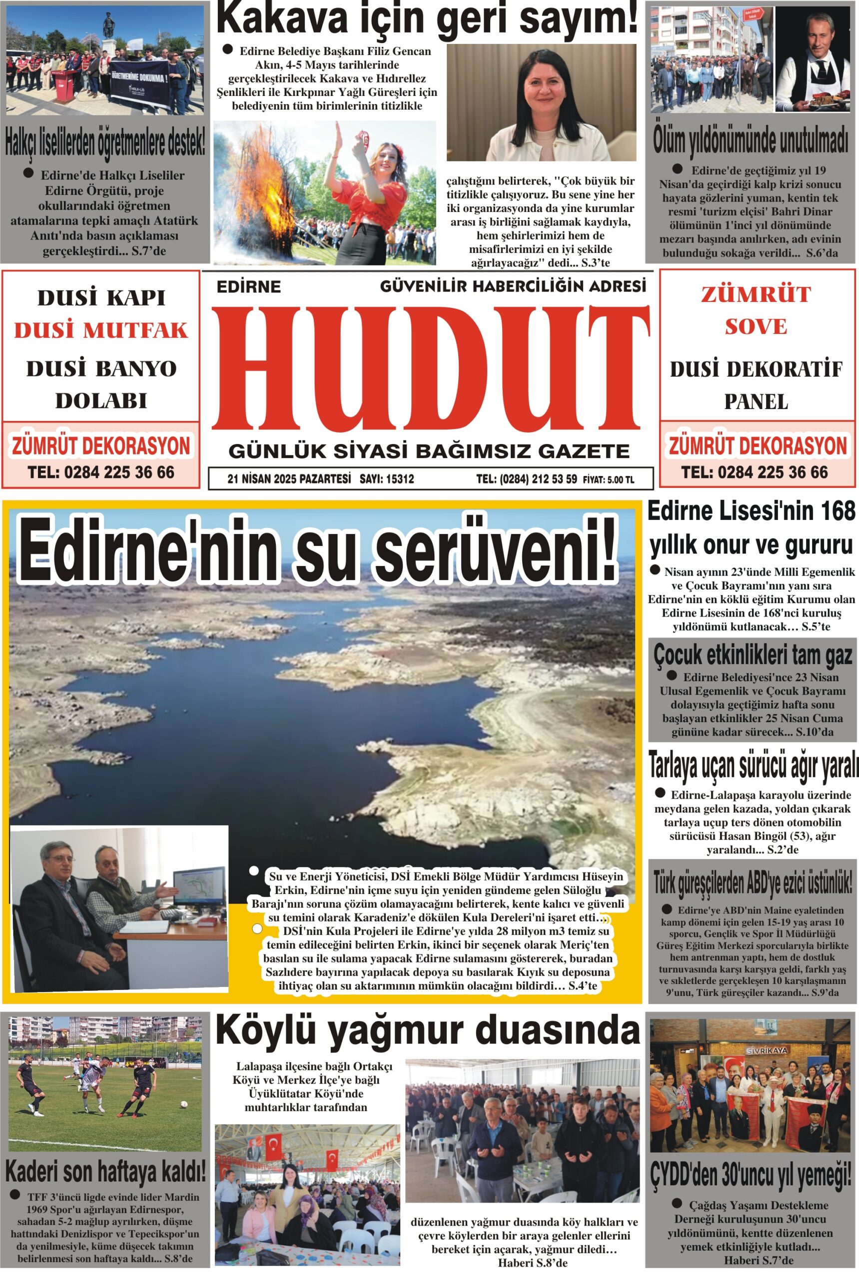 21 Nisan 2025 Pazartesi Hudut Gazetesi