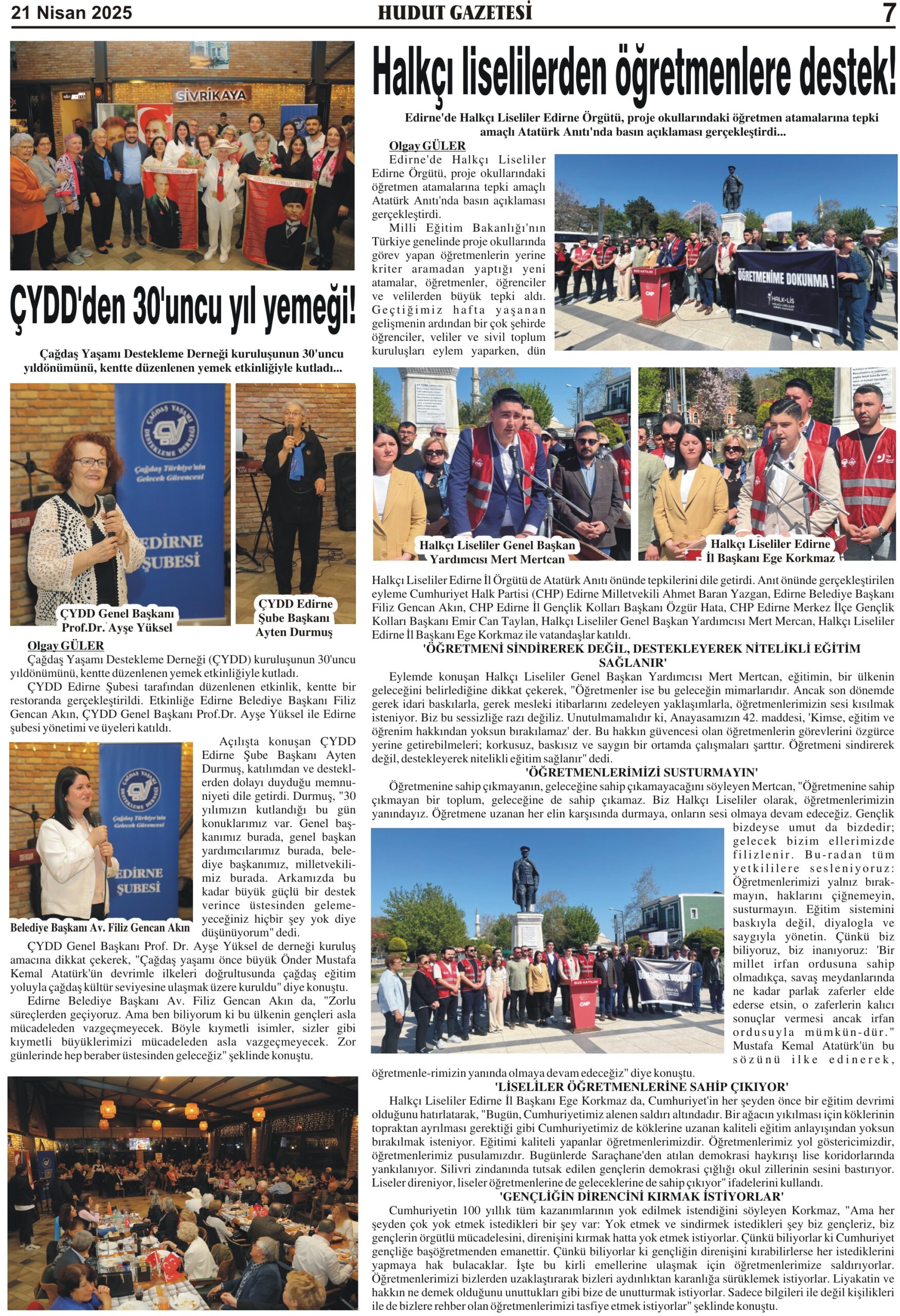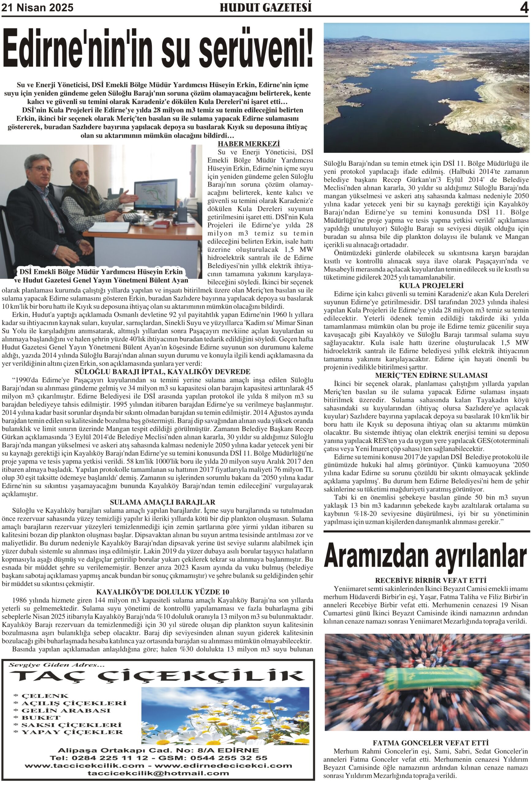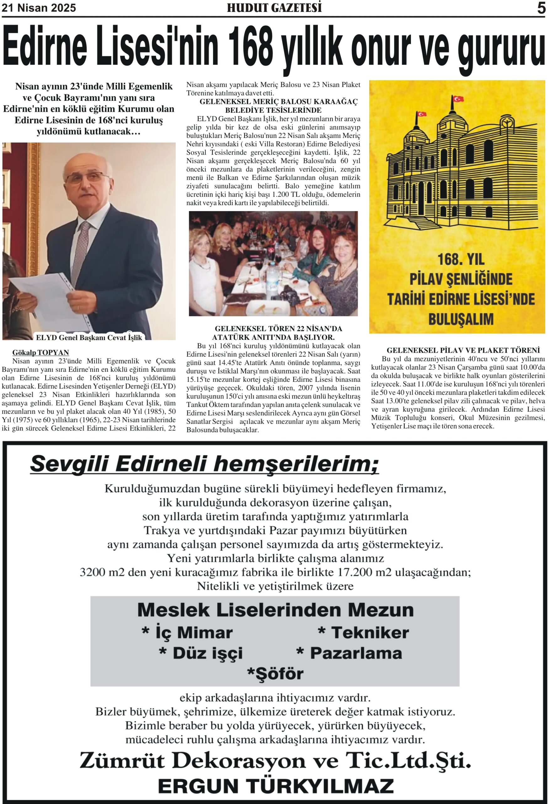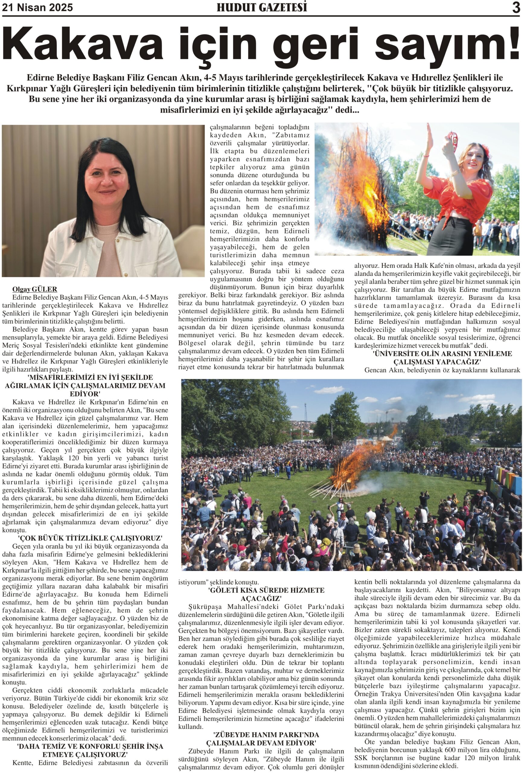 21 Nisan 2025 Pazartesi Hudut Gazetesi