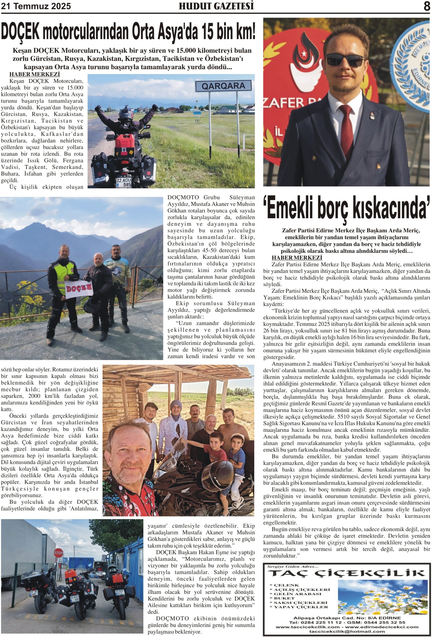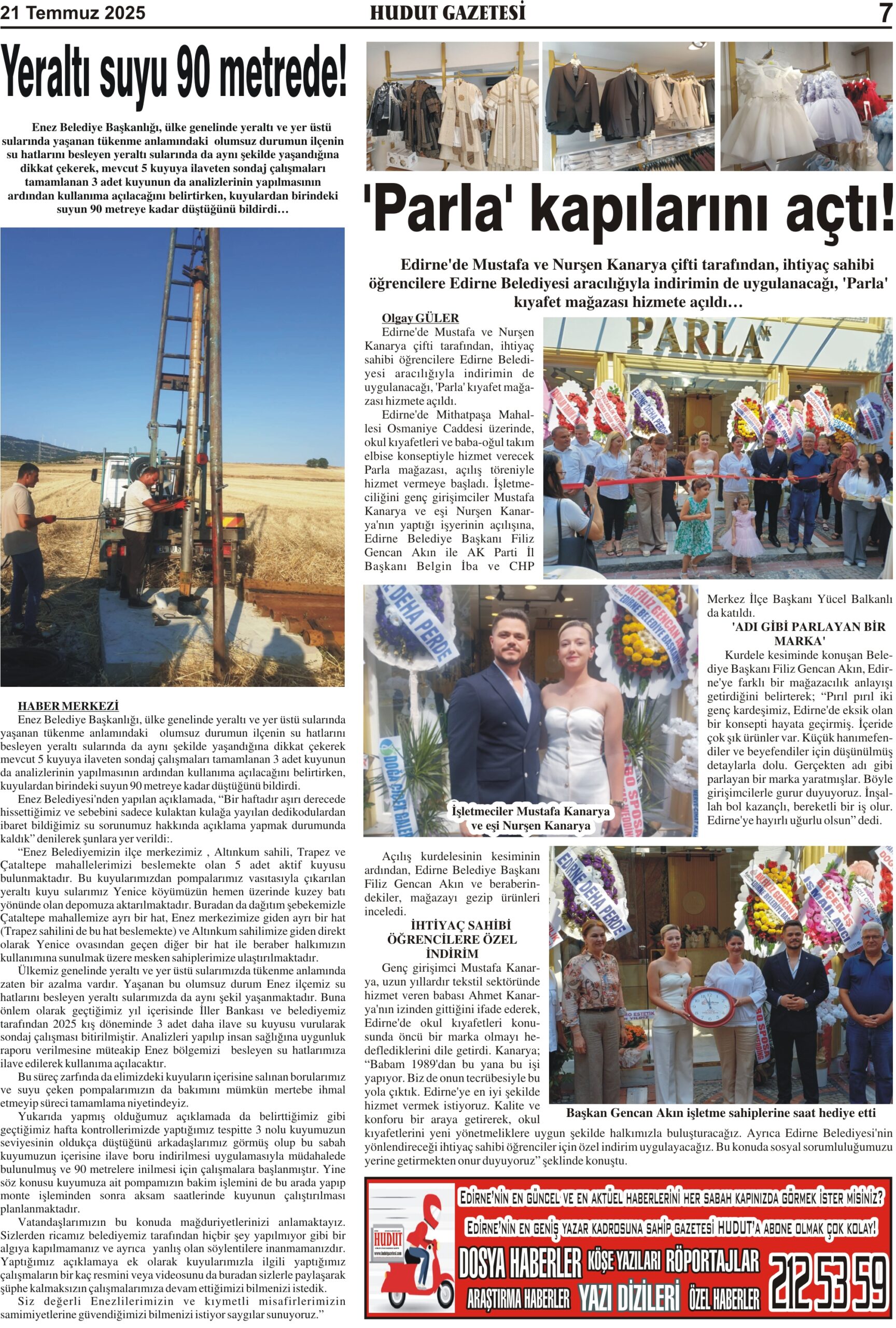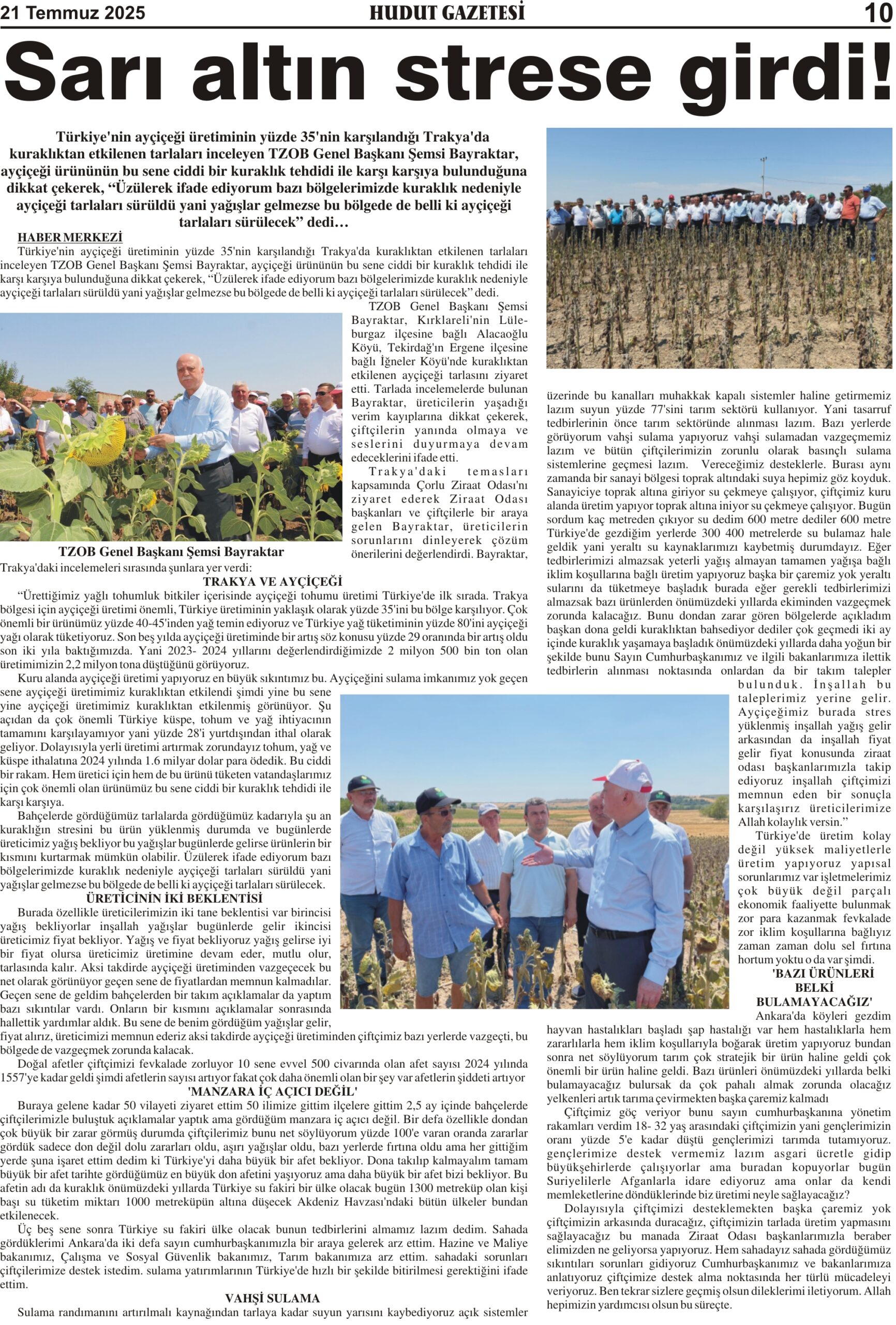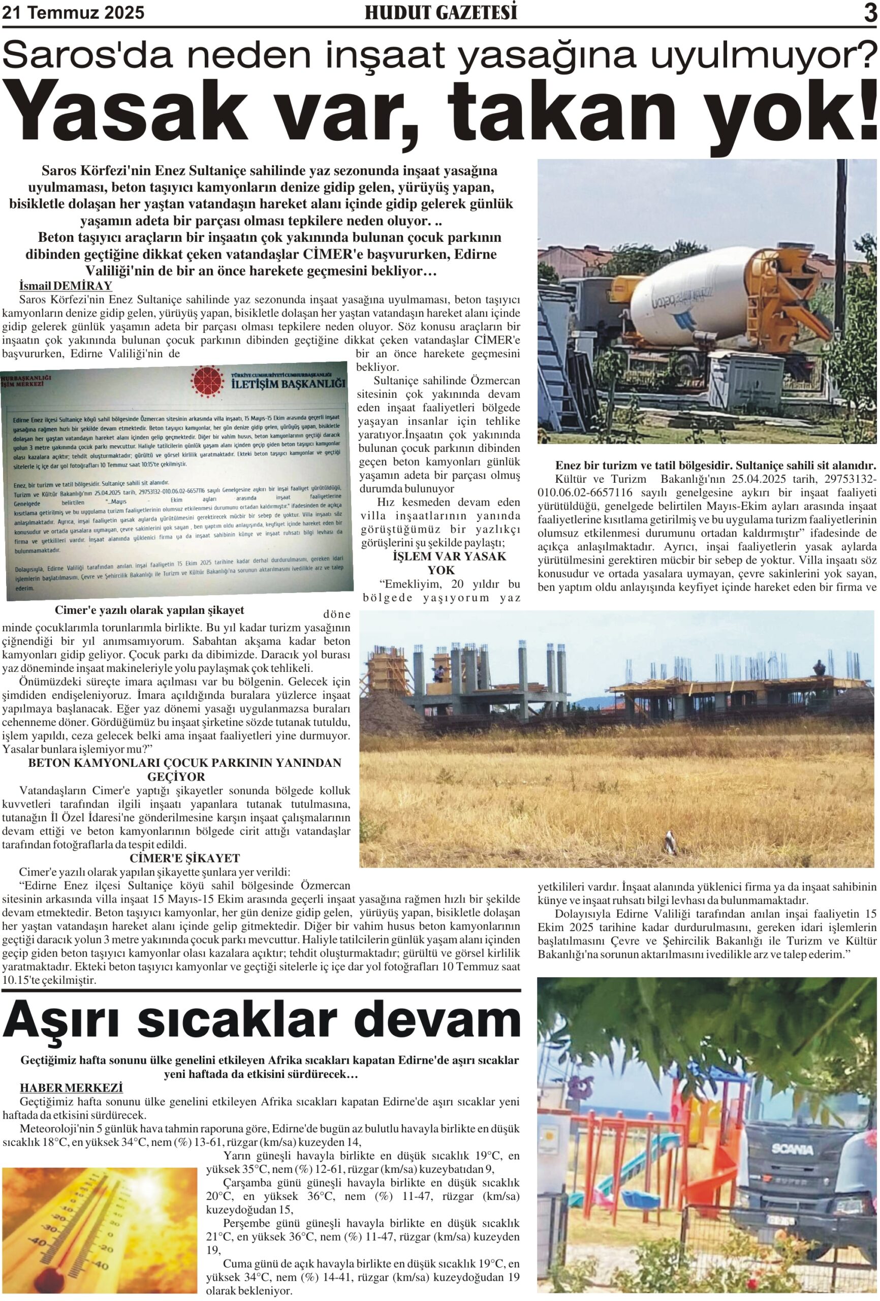 21 Temmuz 2025 Pazartesi Hudut Gazetesi