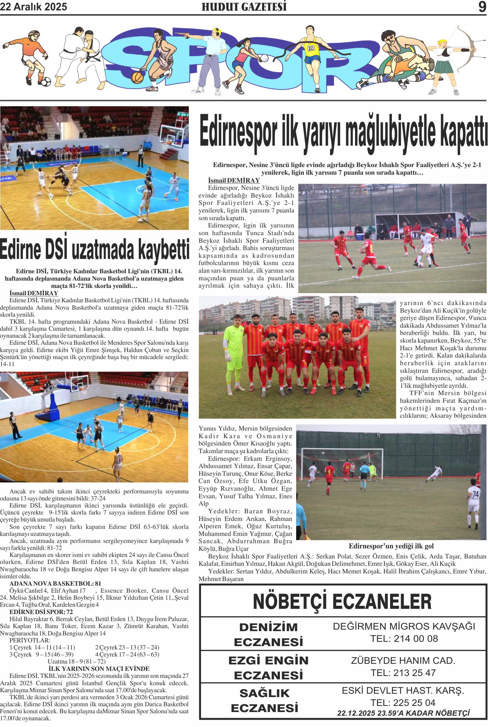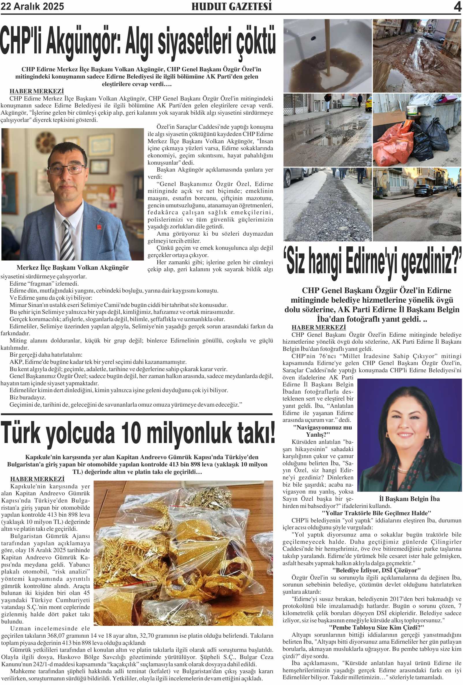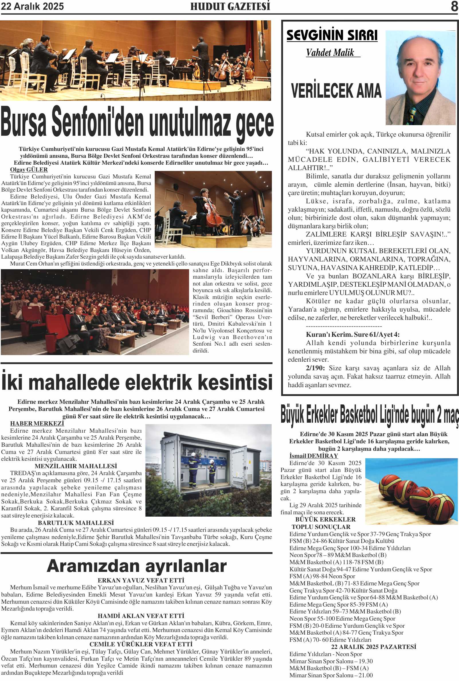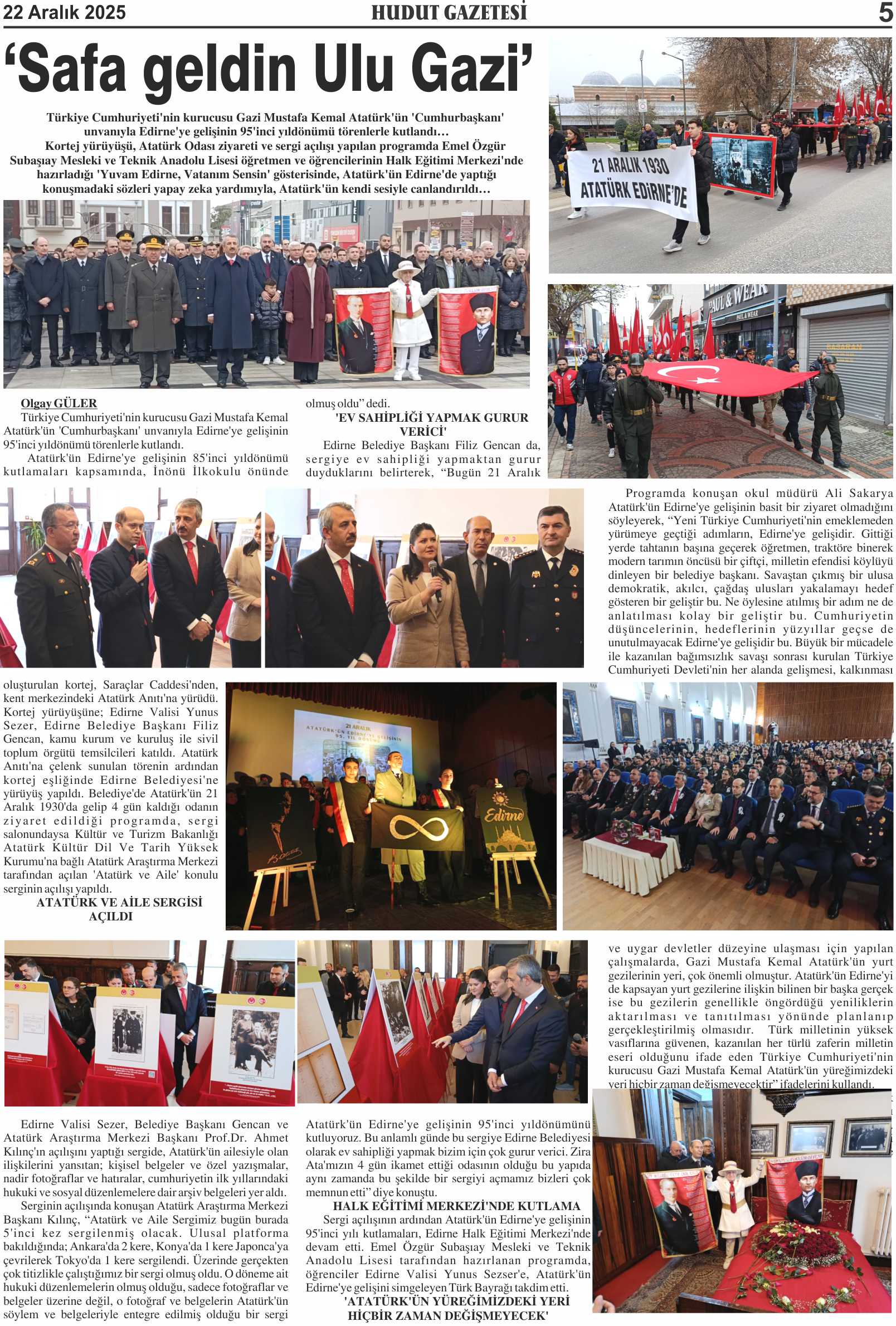 22 Aralık 2025 Pazartesi Hudut Gazetesi