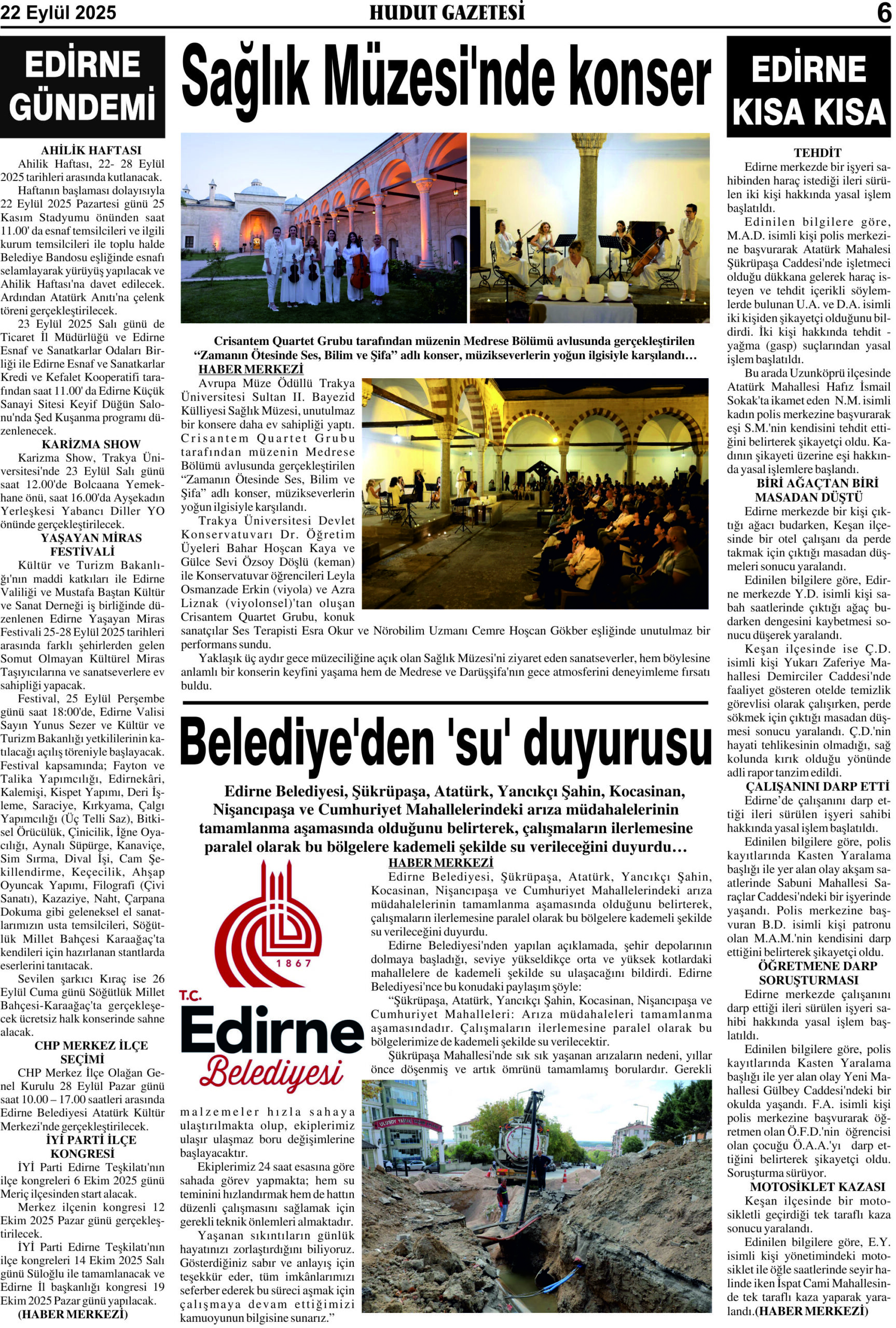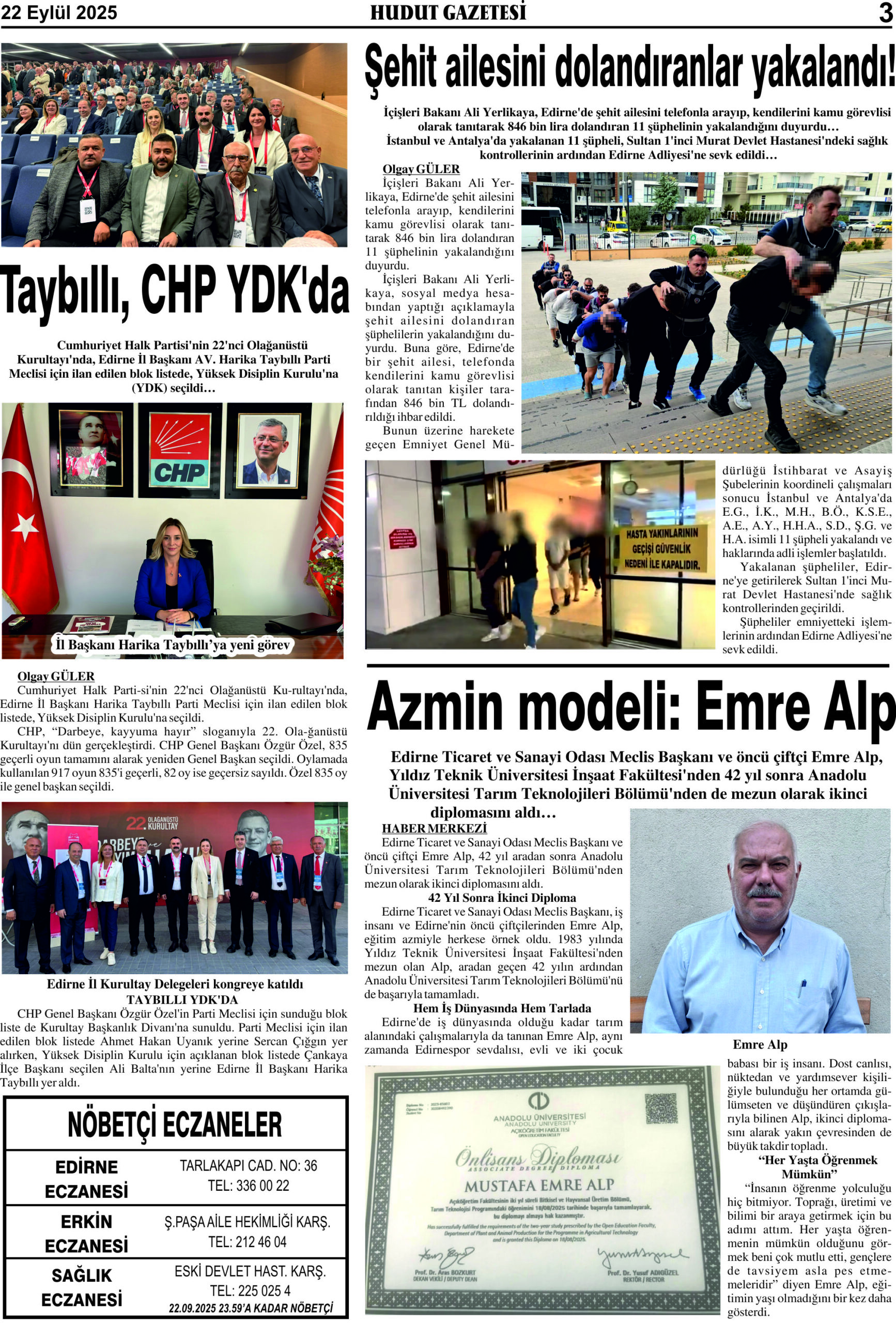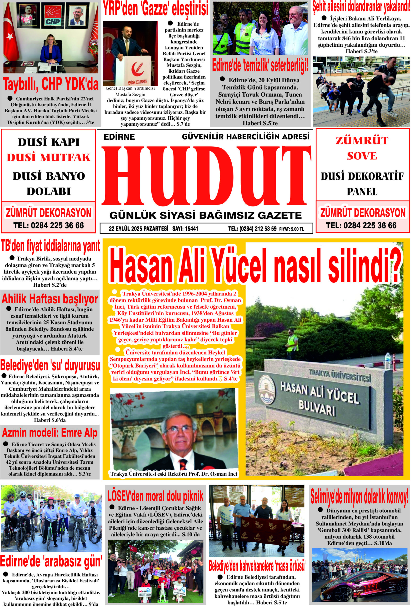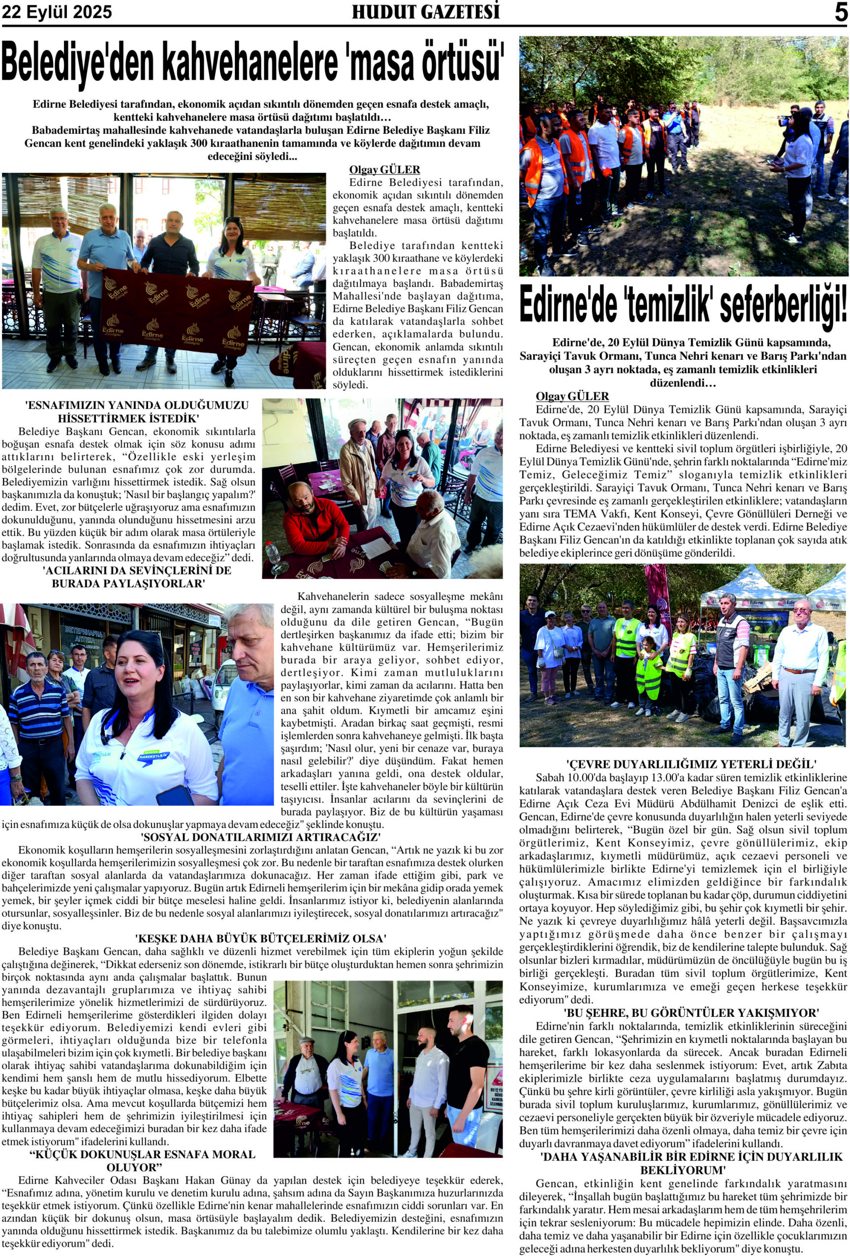 22 Eylül 2025 Pazartesi Hudut Gazetesi