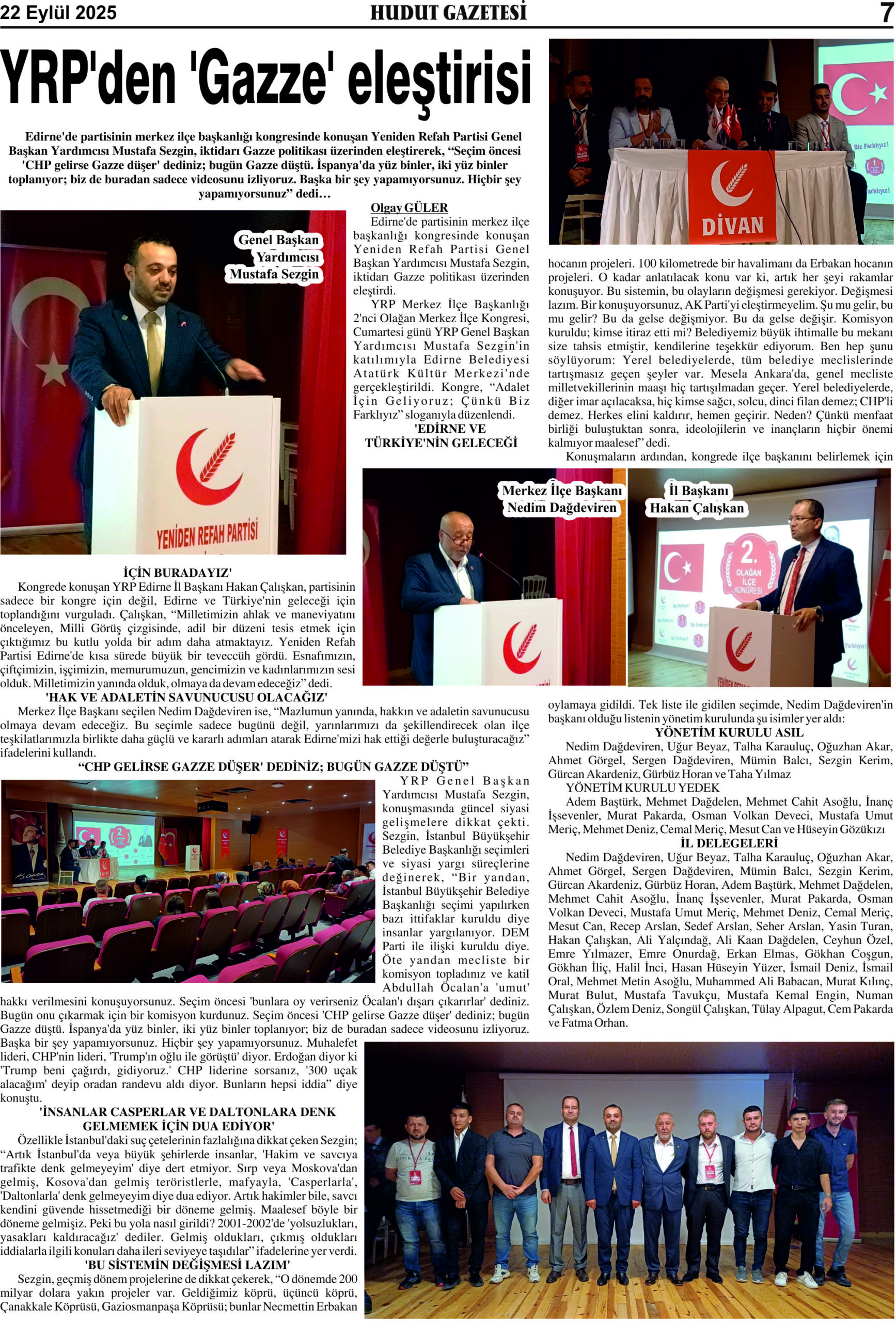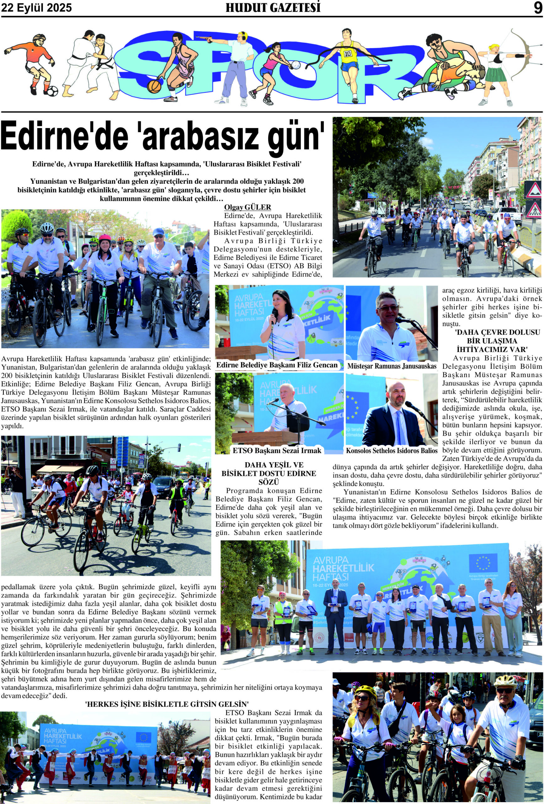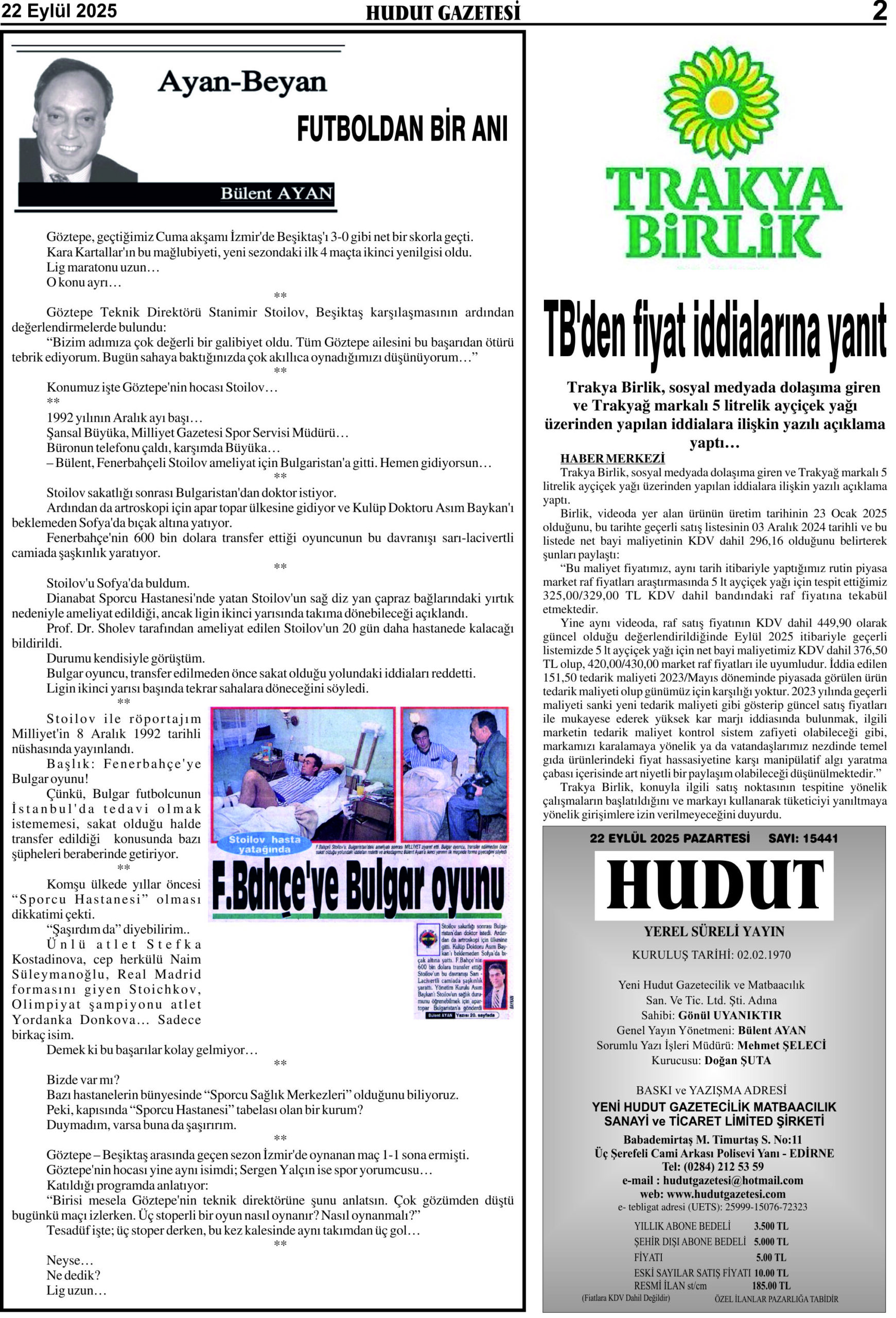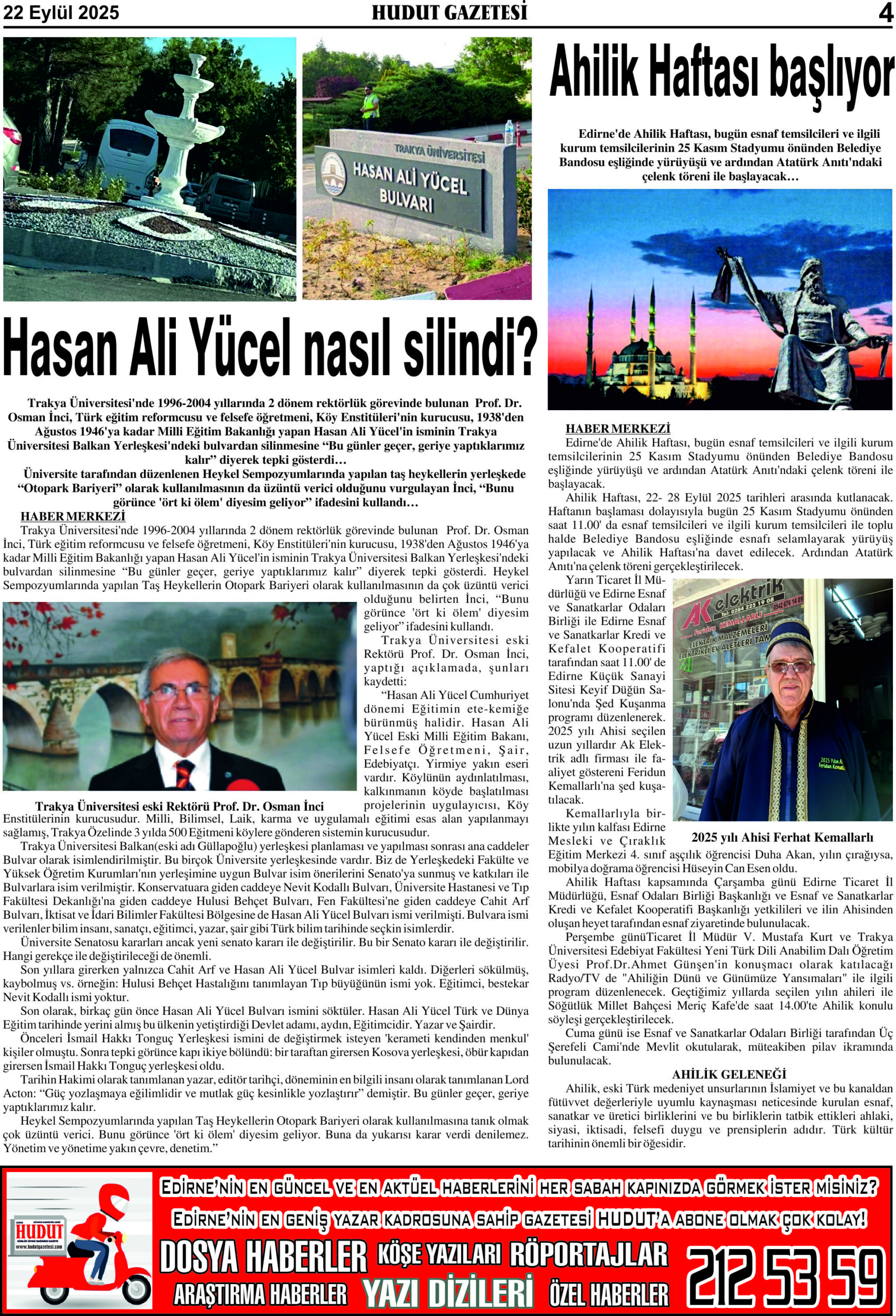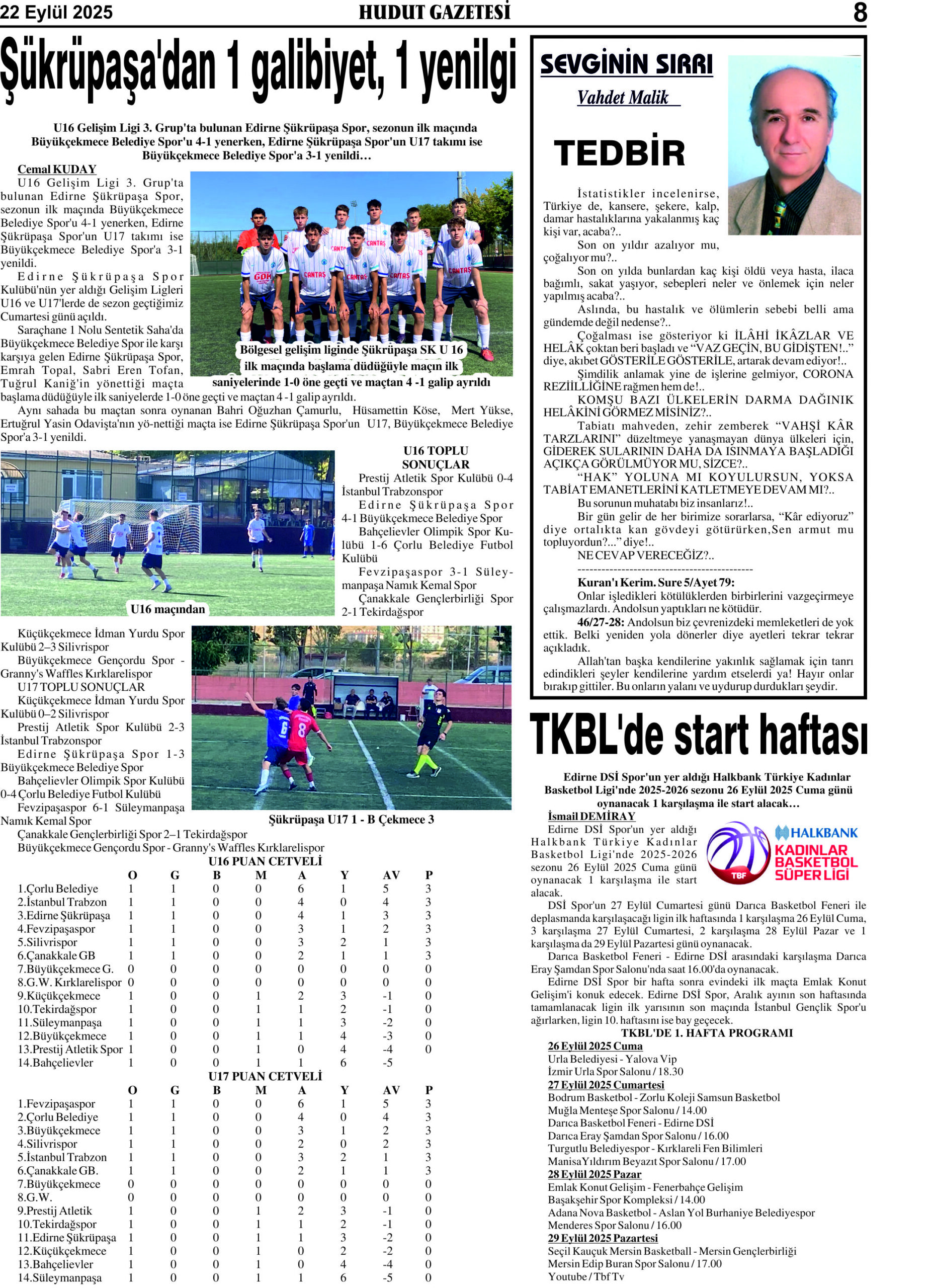 22 Eylül 2025 Pazartesi Hudut Gazetesi