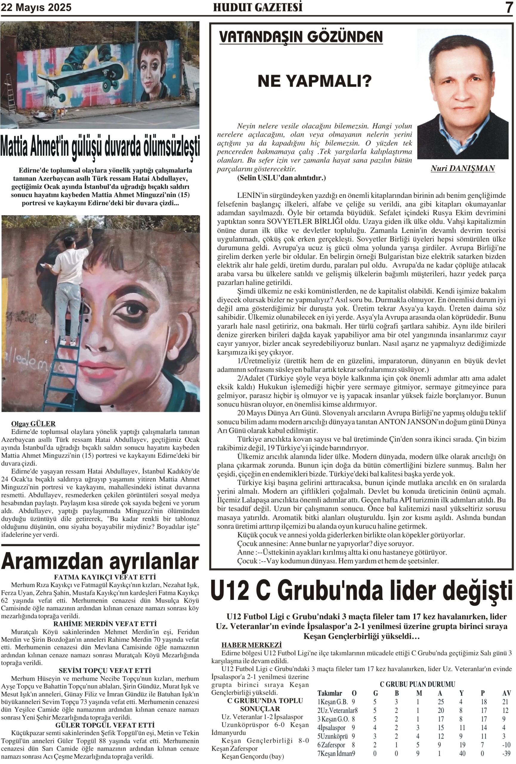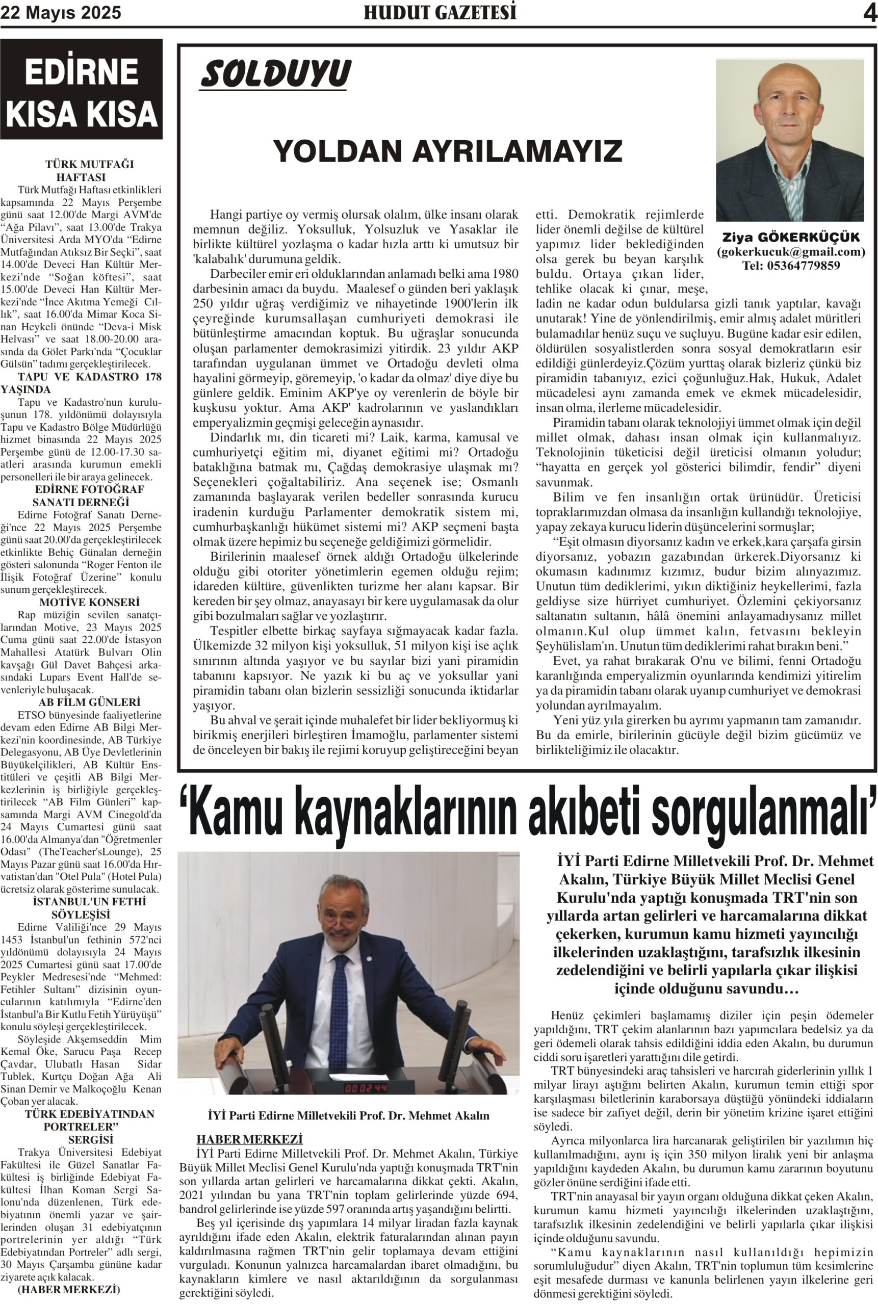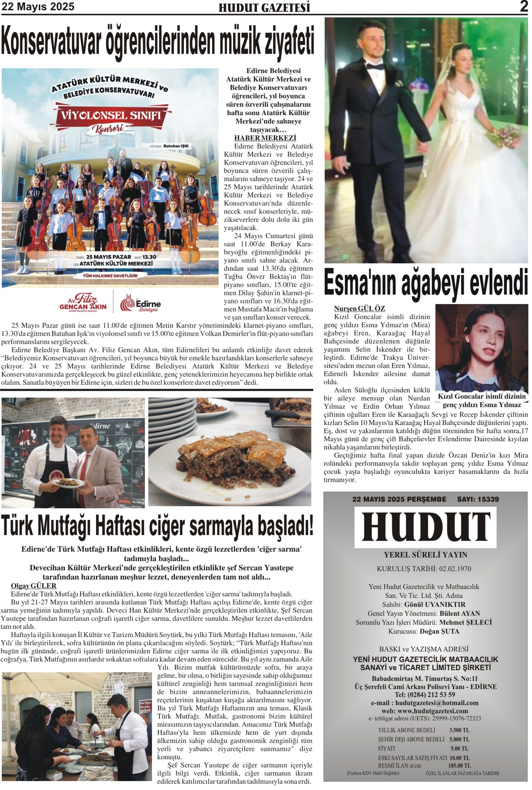 22 Mayıs 2025 Perşembe Hudut Gazetesi