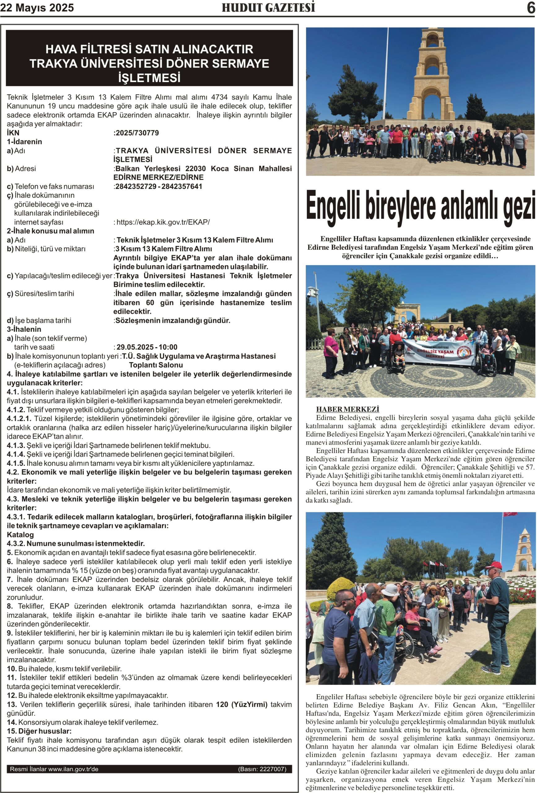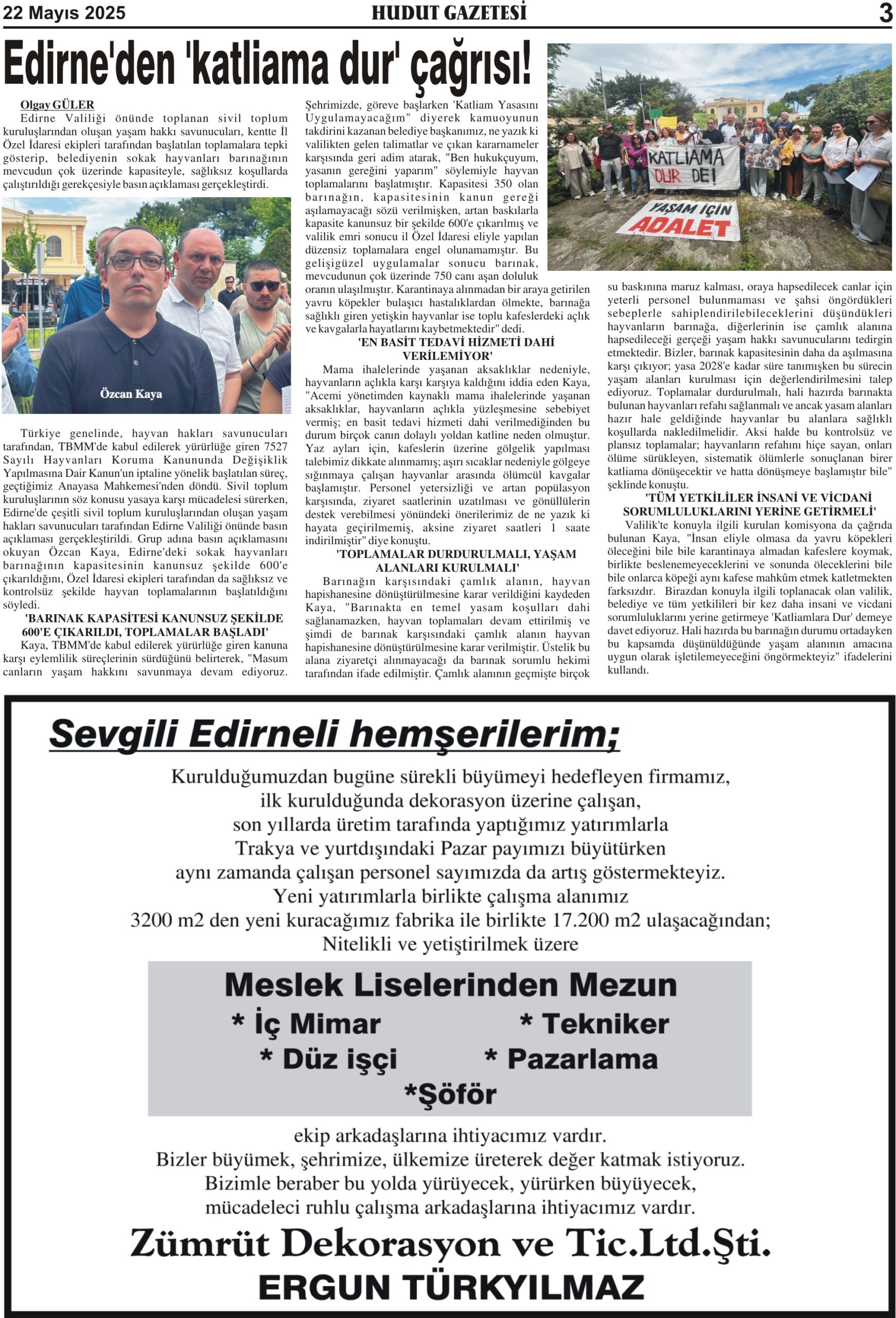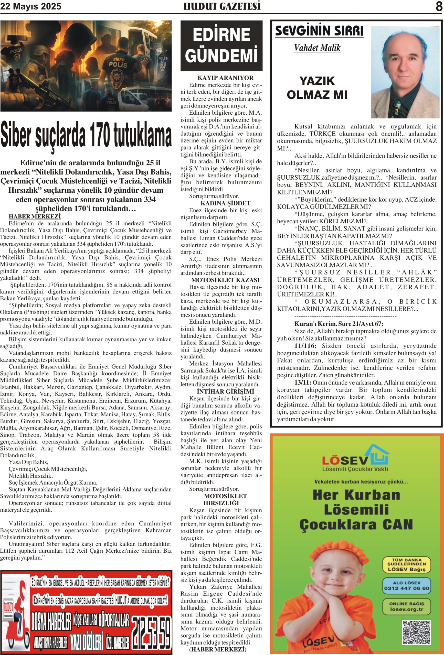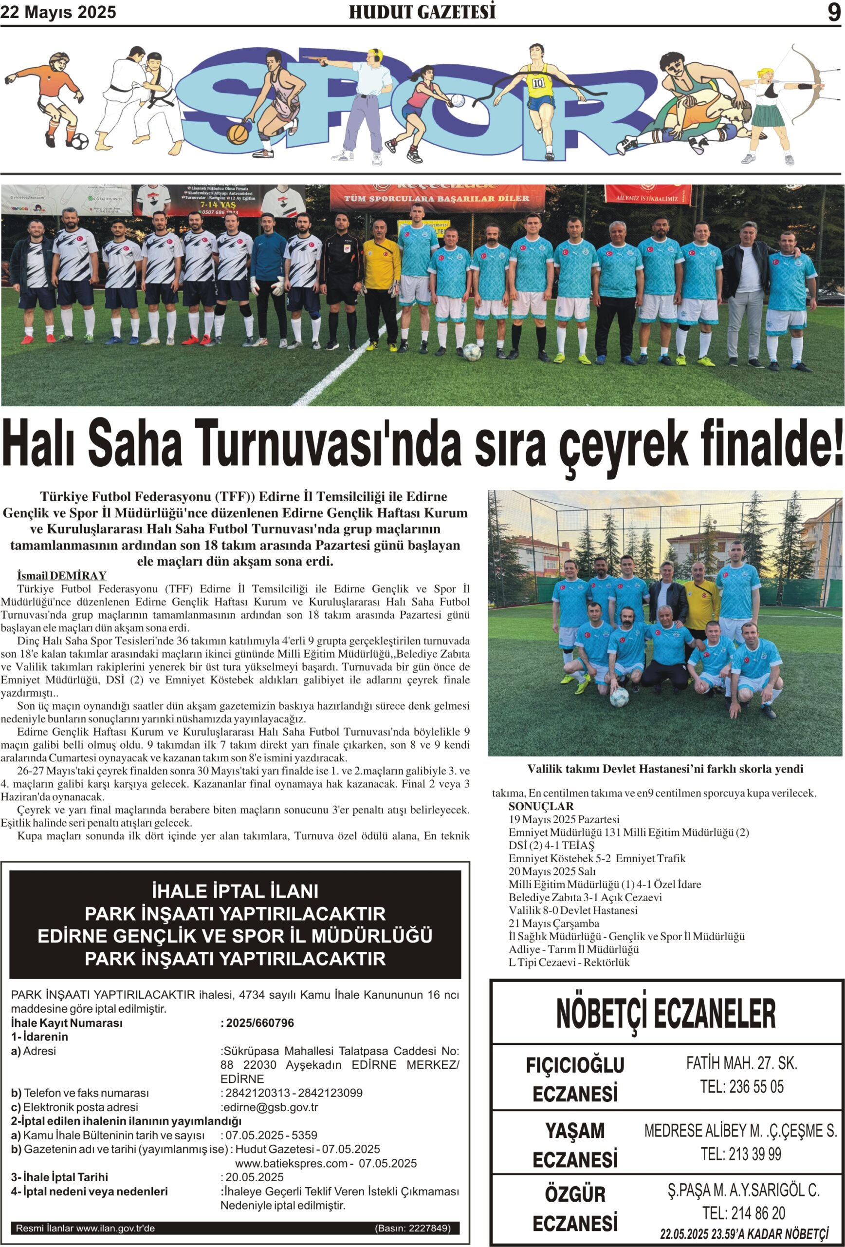 22 Mayıs 2025 Perşembe Hudut Gazetesi