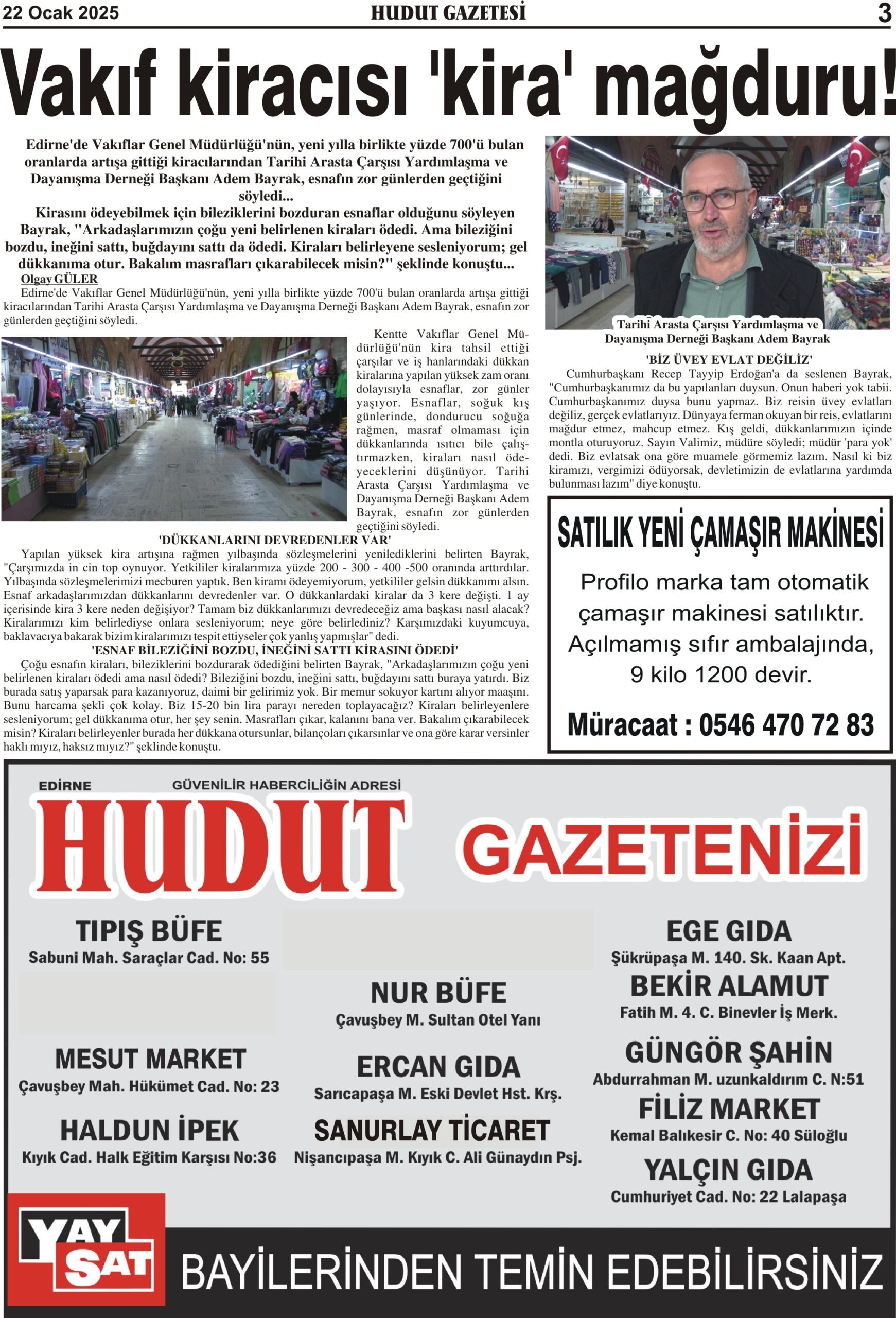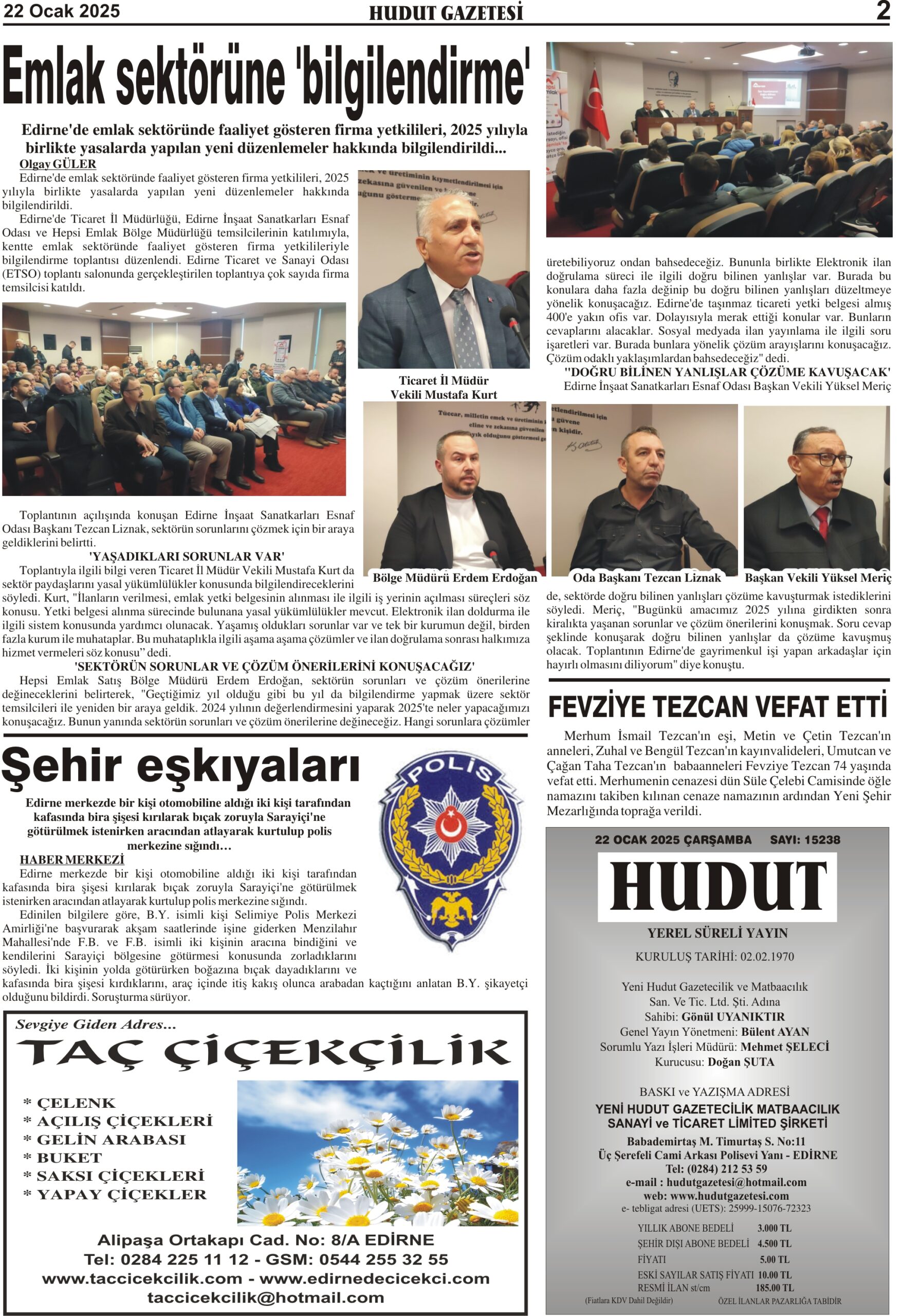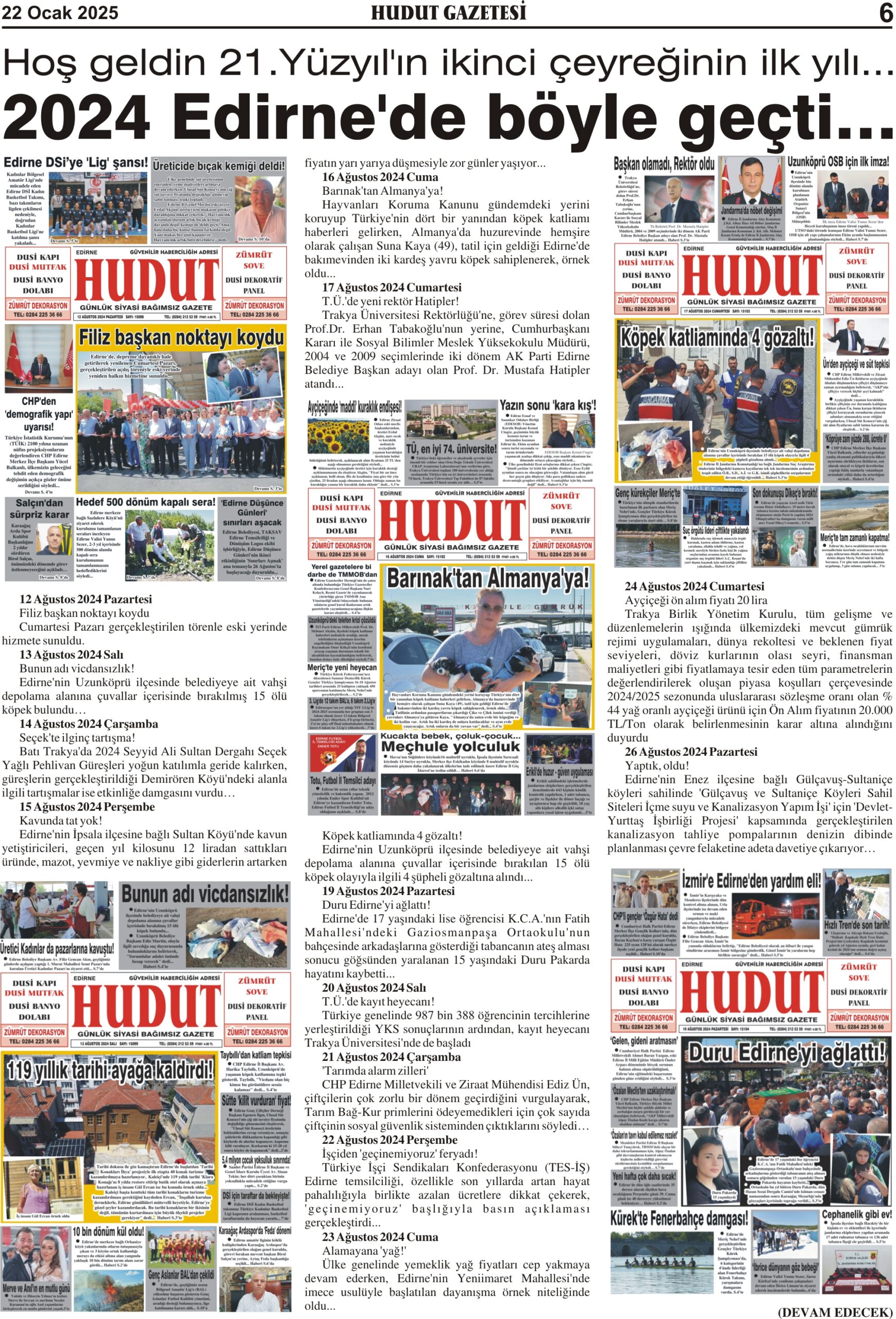 22 Ocak 2025 Çarşamba Hudut Gazetesi