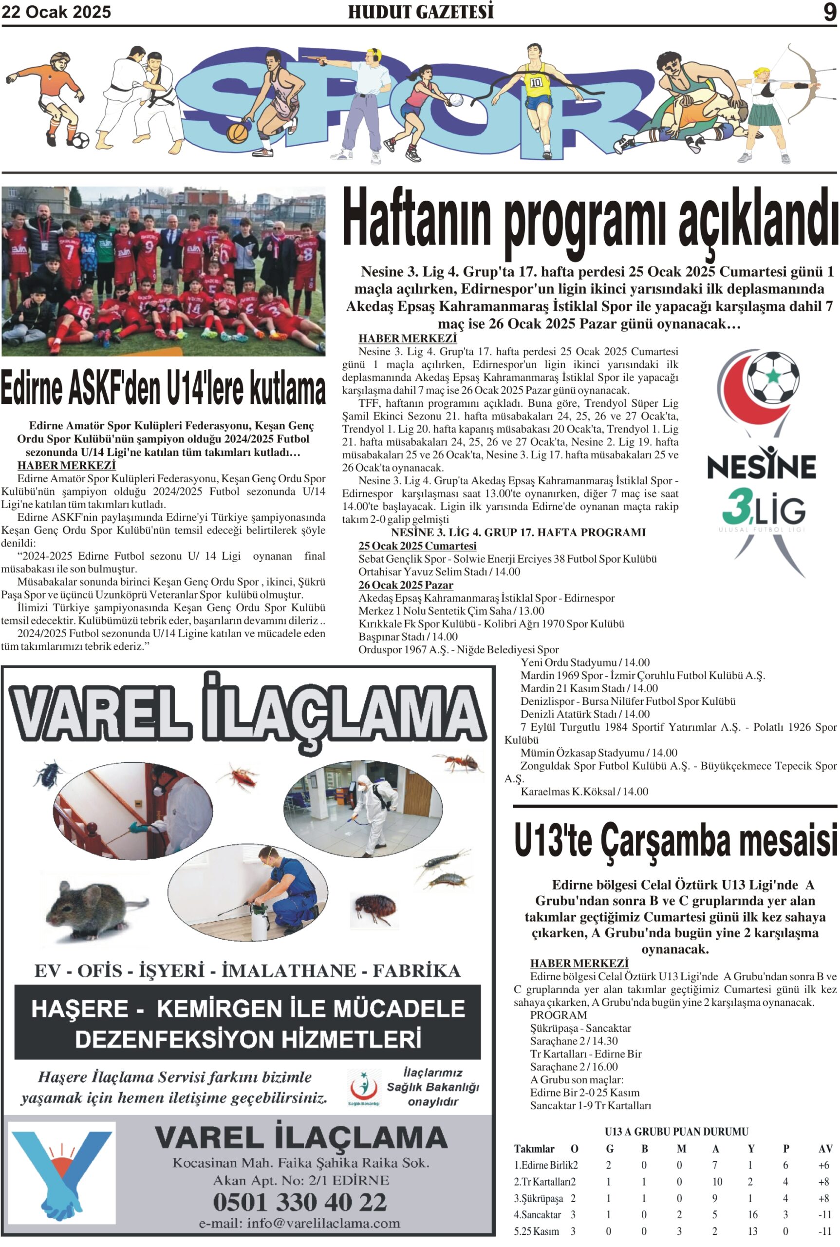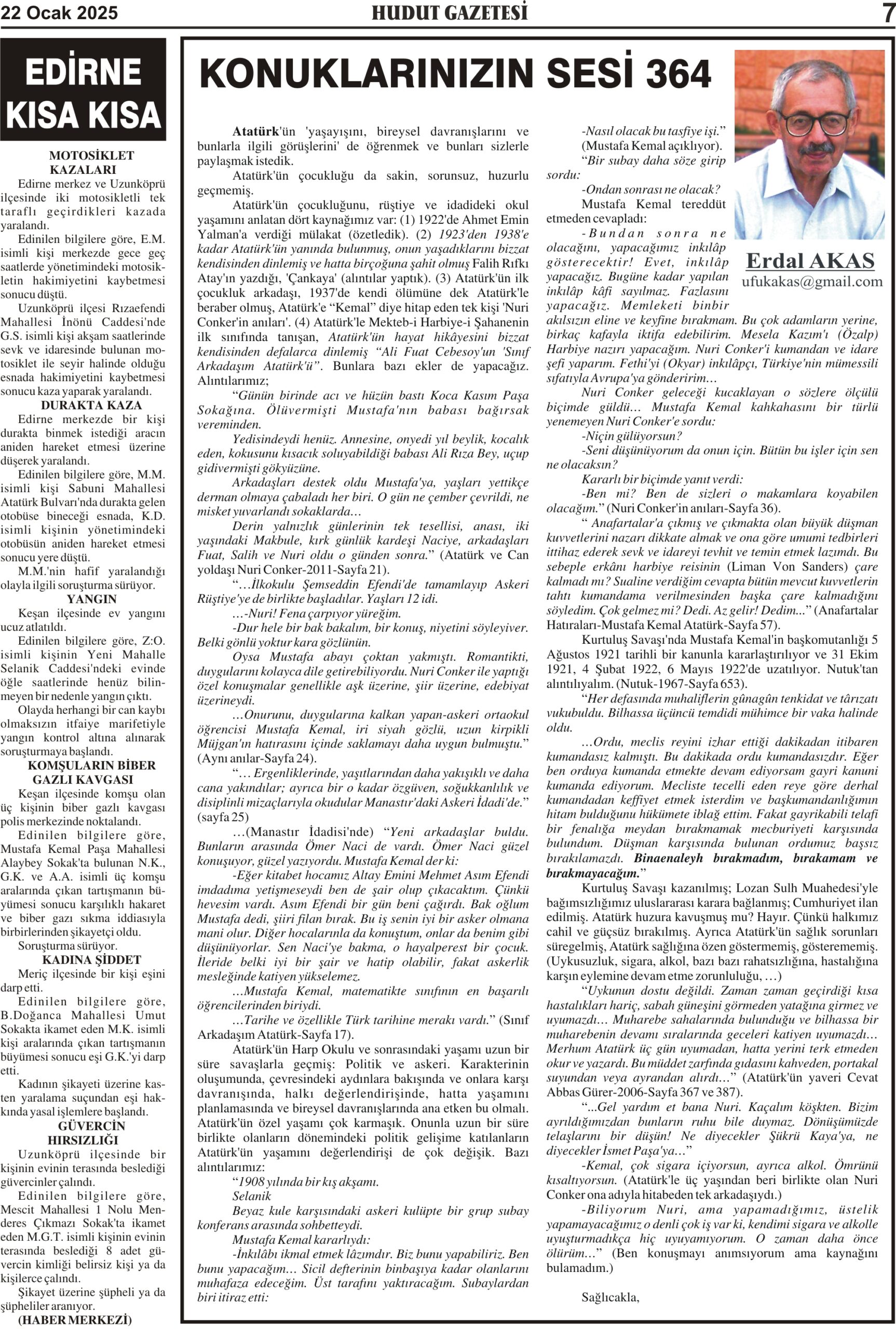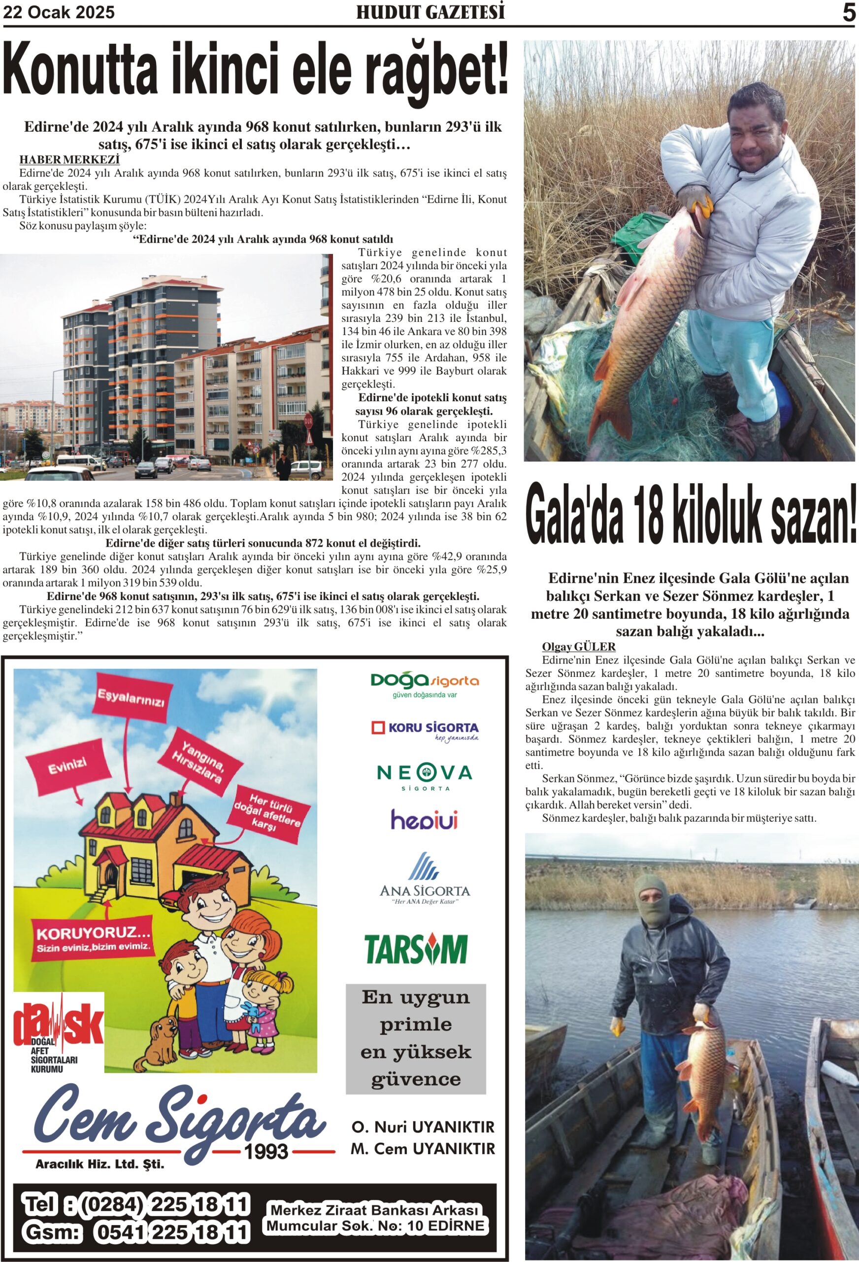 22 Ocak 2025 Çarşamba Hudut Gazetesi