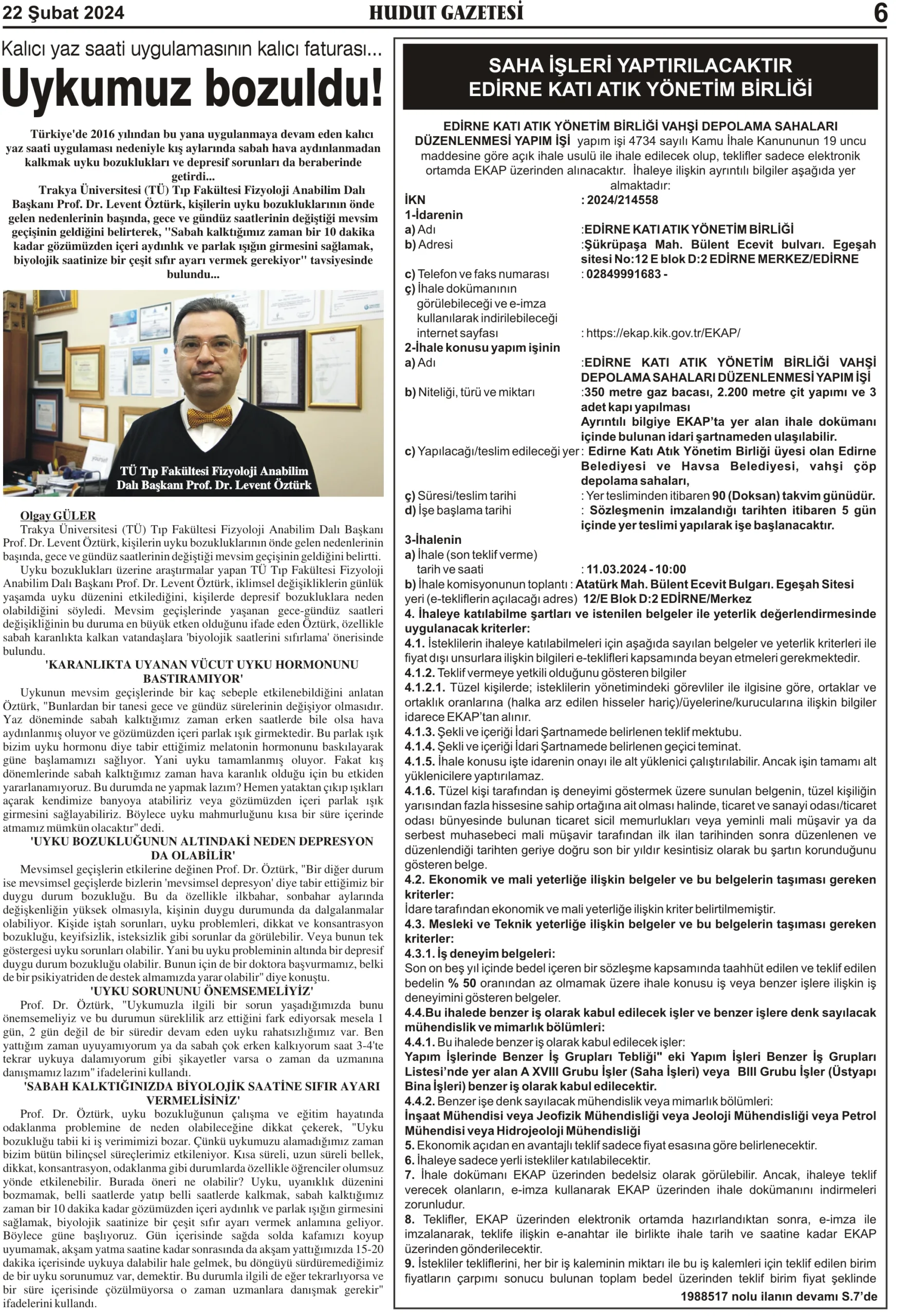 22 Şubat 2024 Perşembe Hudut Gazetesi