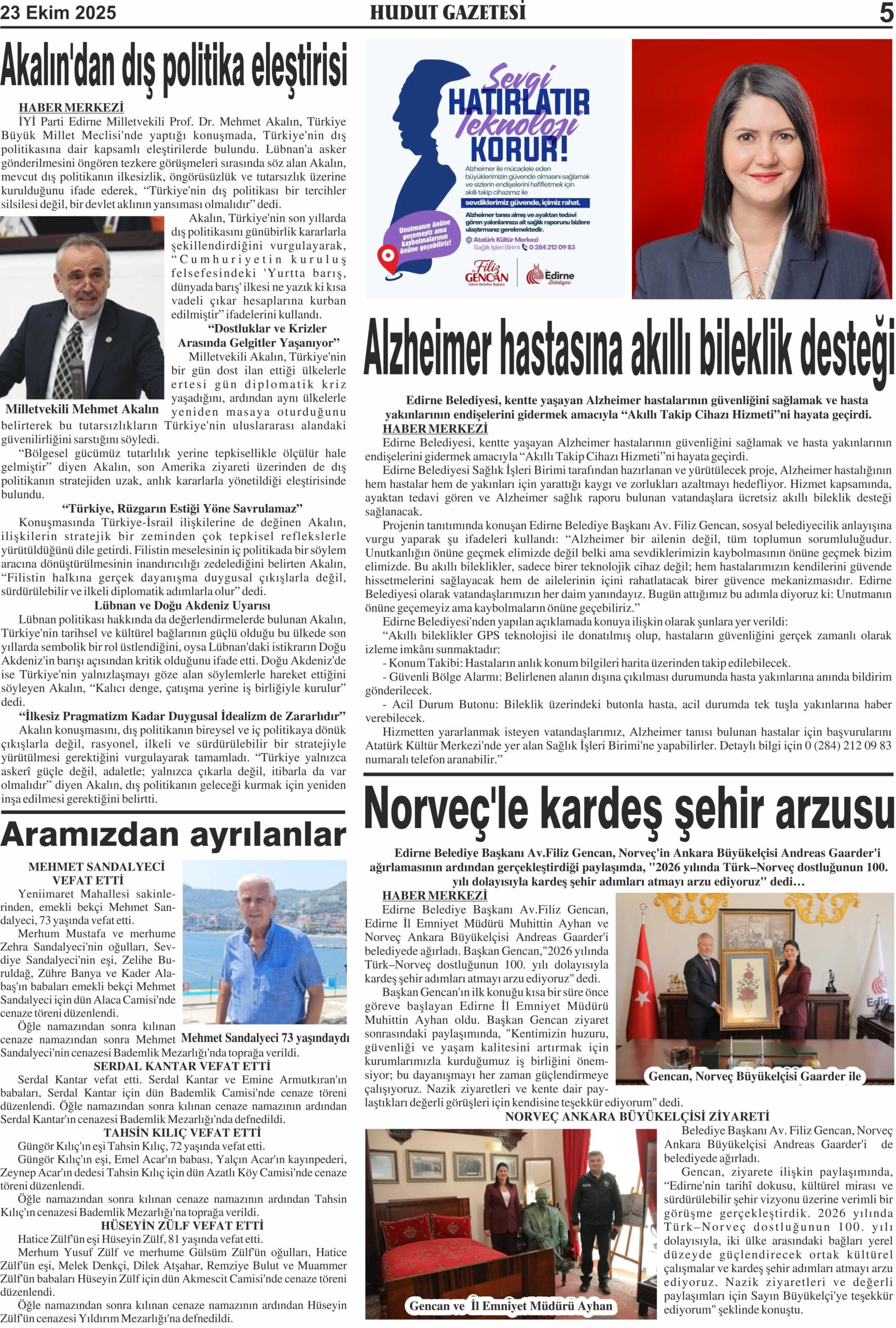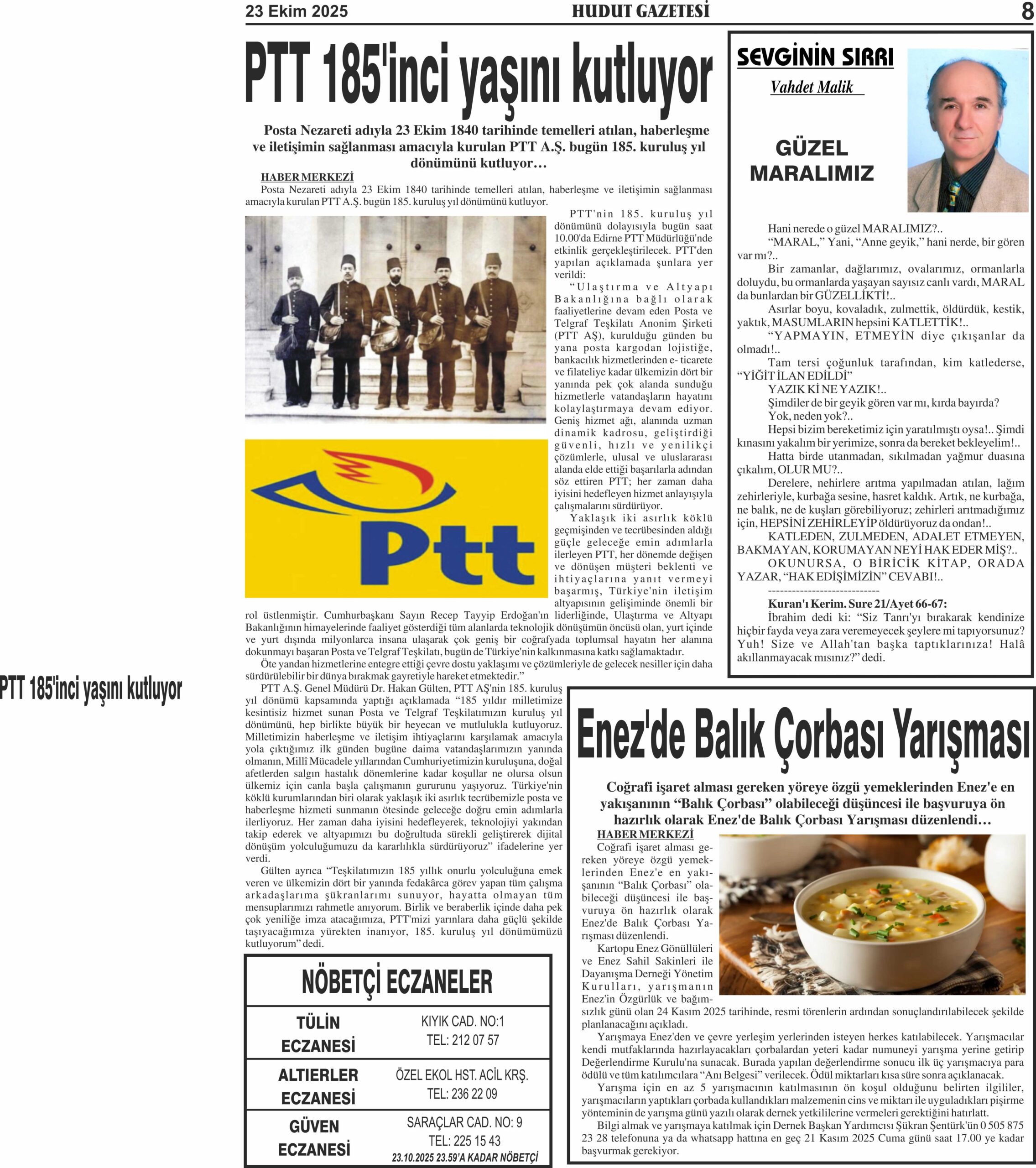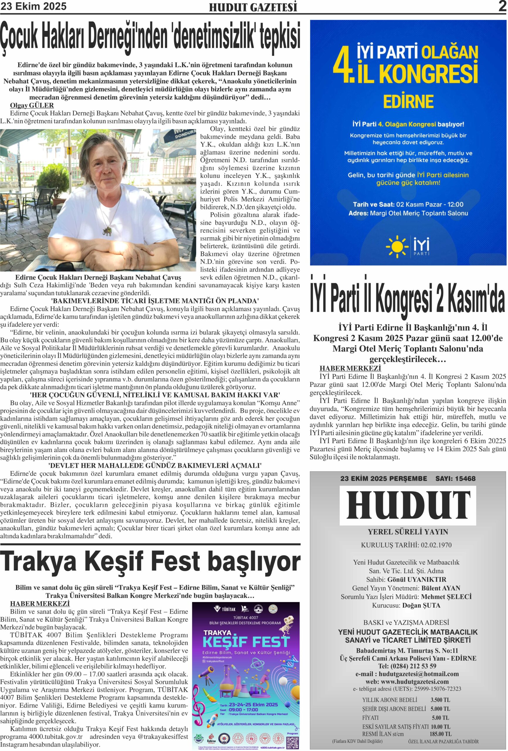 23 Ekim 2025 Perşembe Hudut Gazetesi