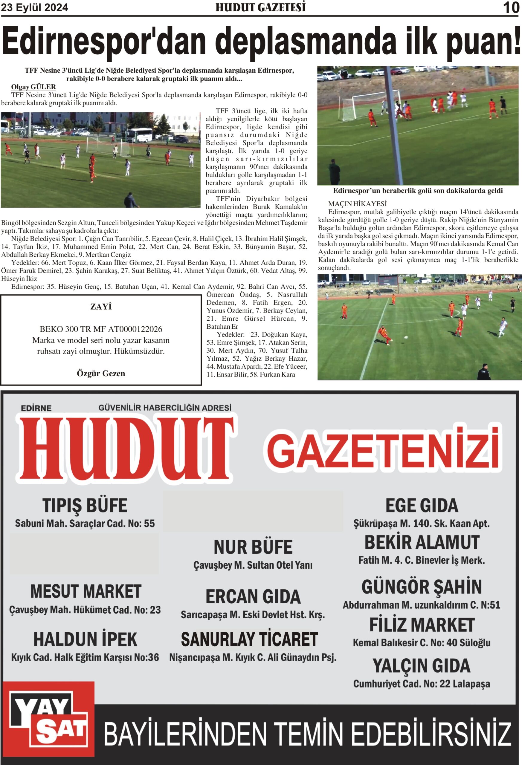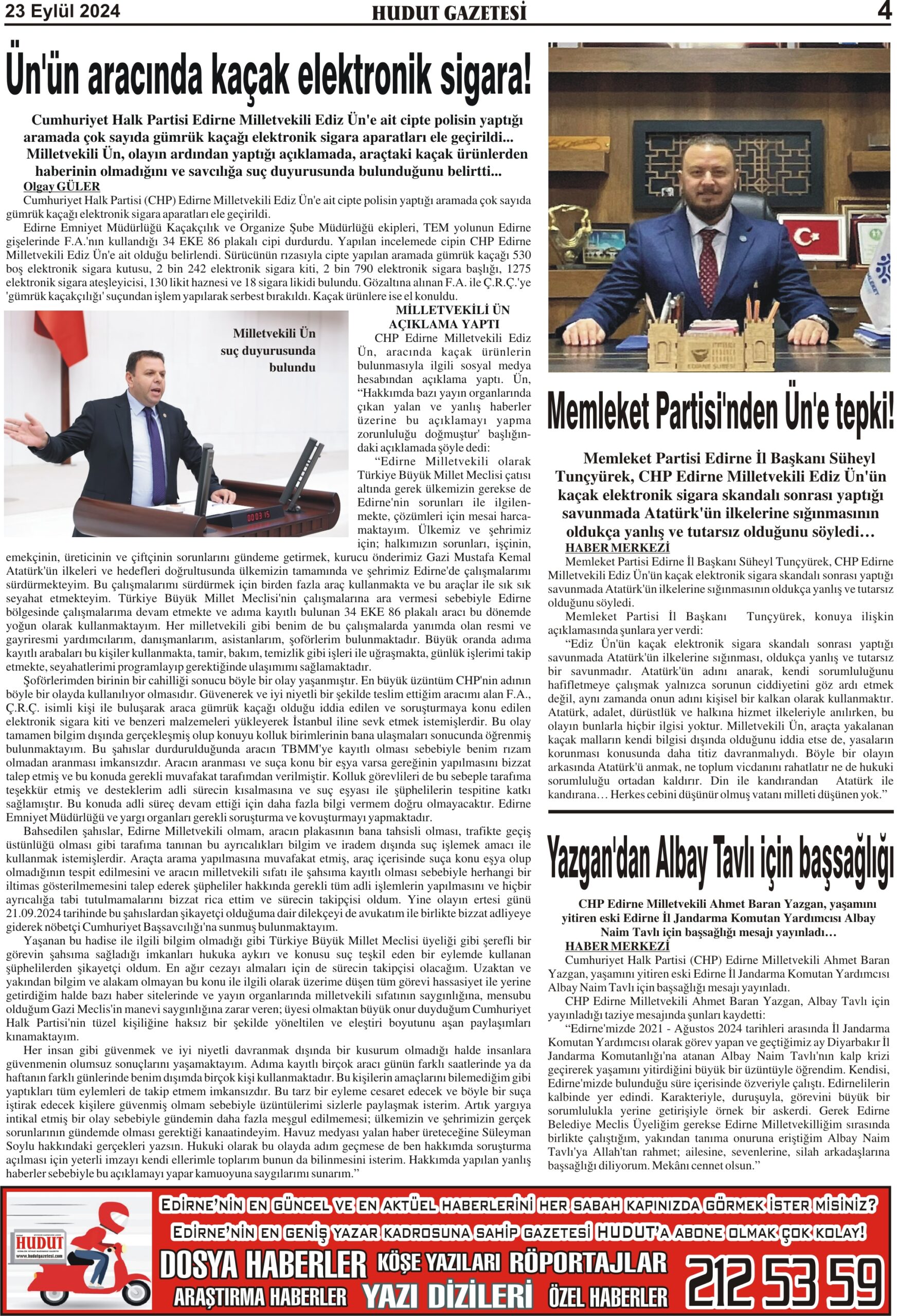 28 Ocak 2026 Çarşamba Hudut Gazetesi