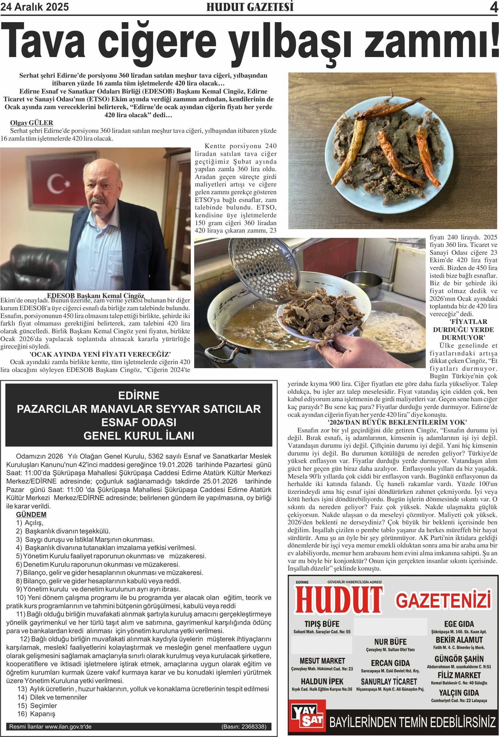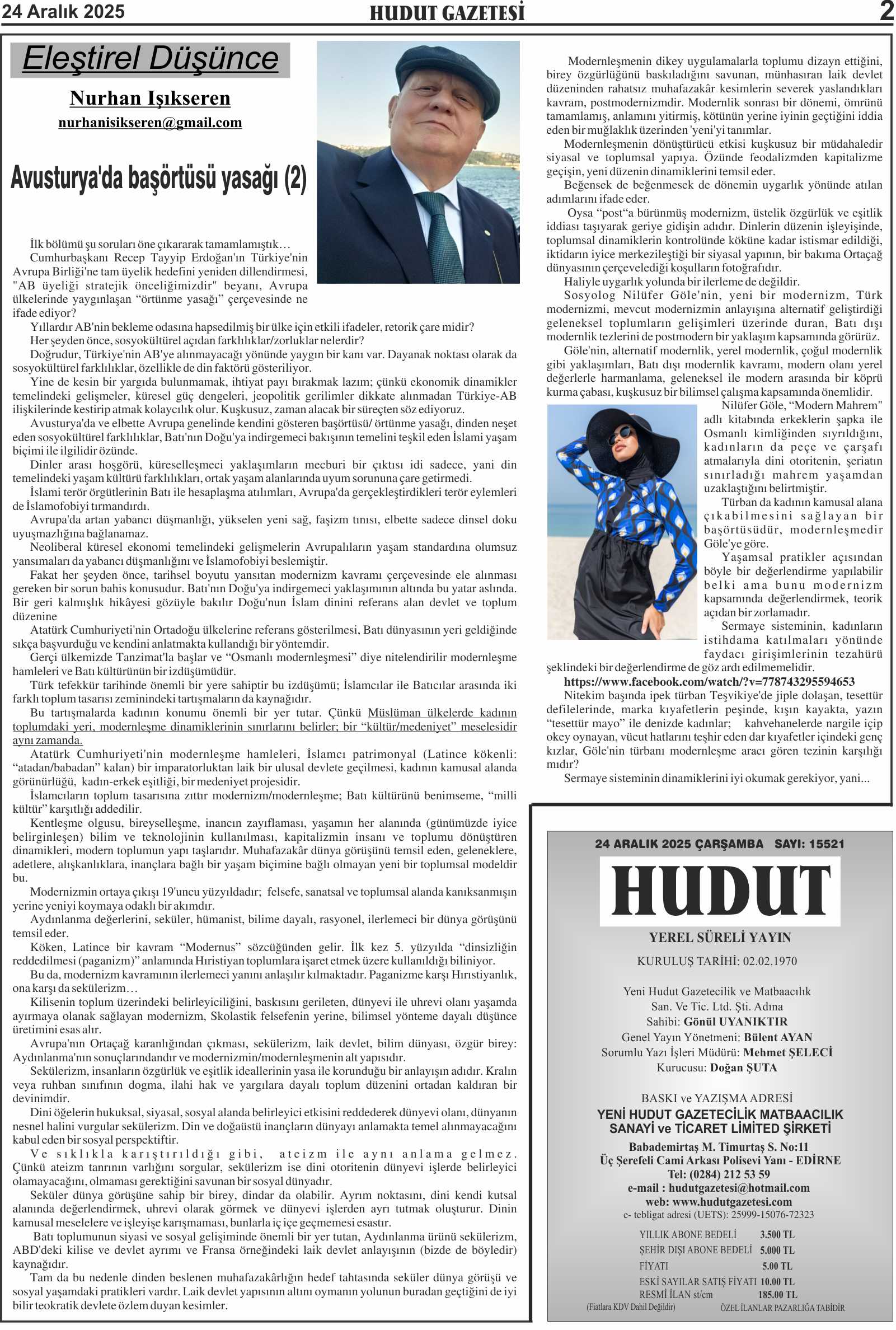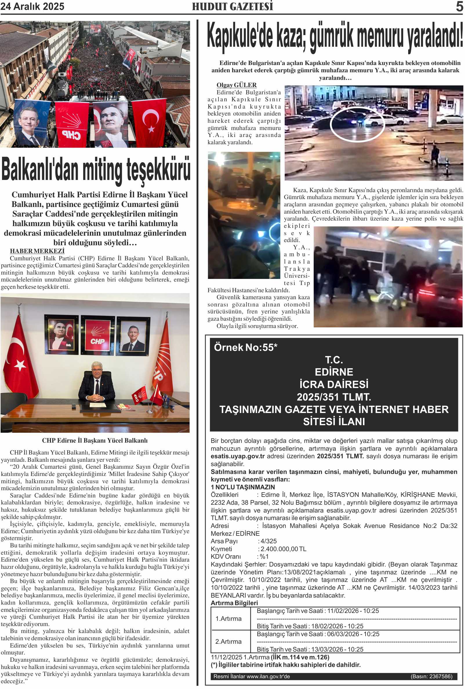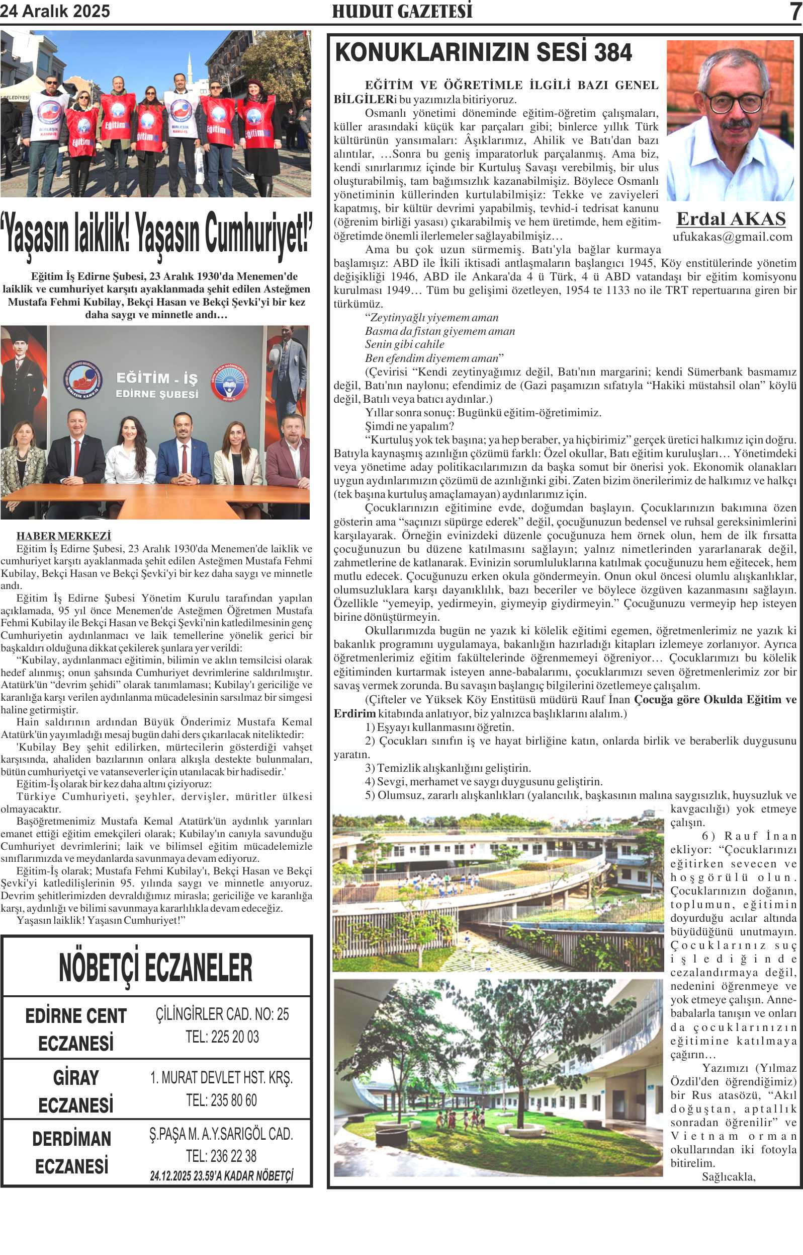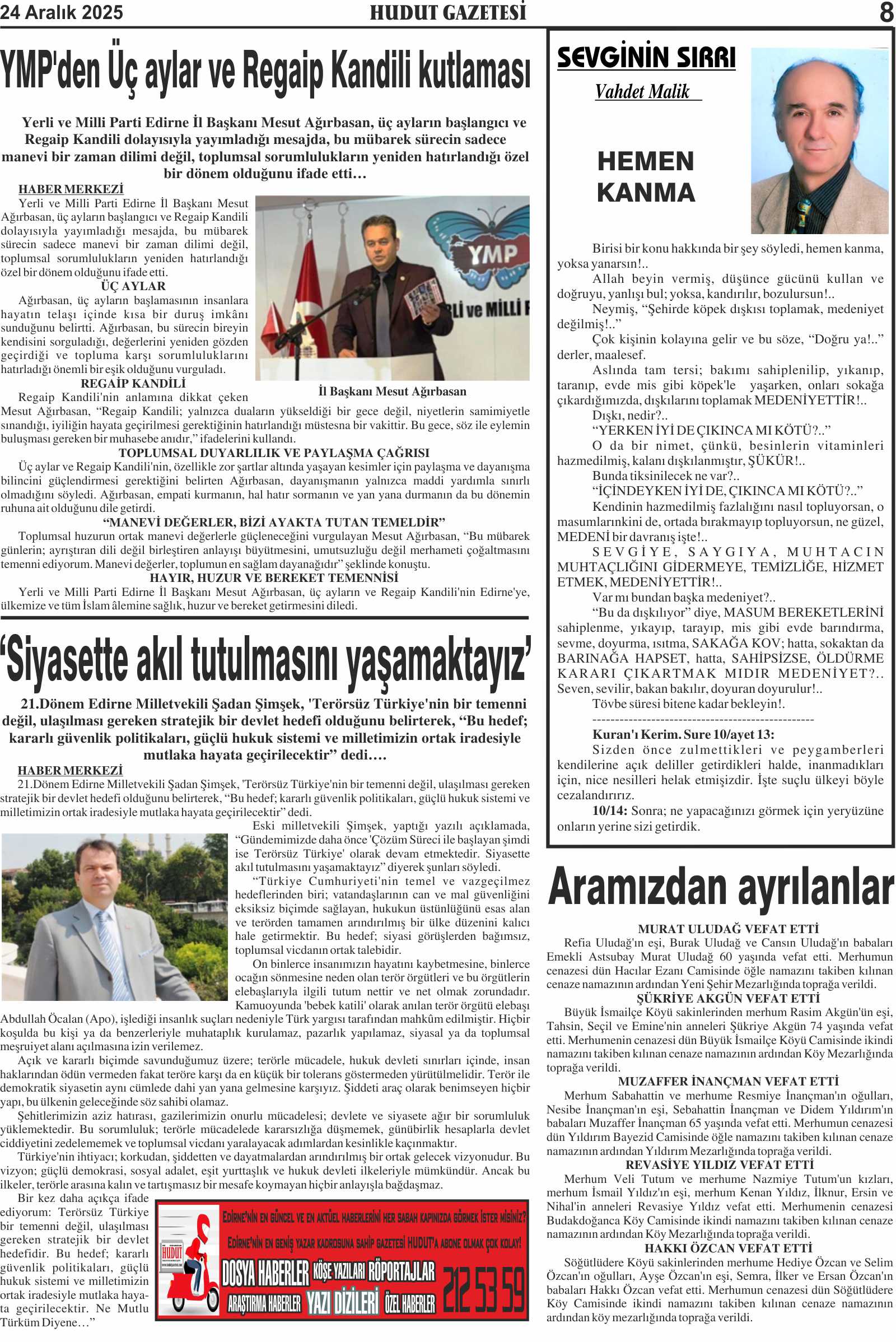 24 Aralık 2025 Çarşamba Hudut Gazetesi