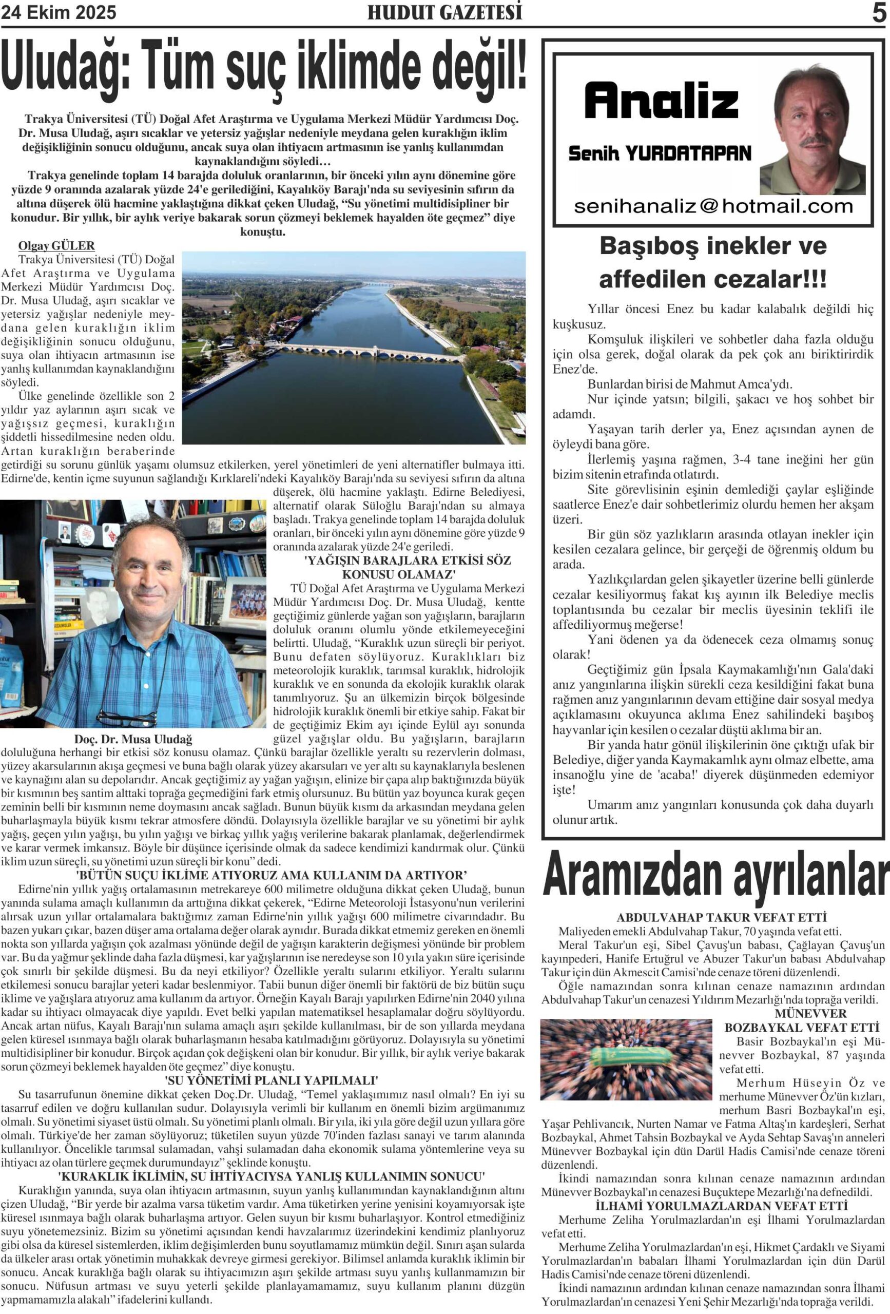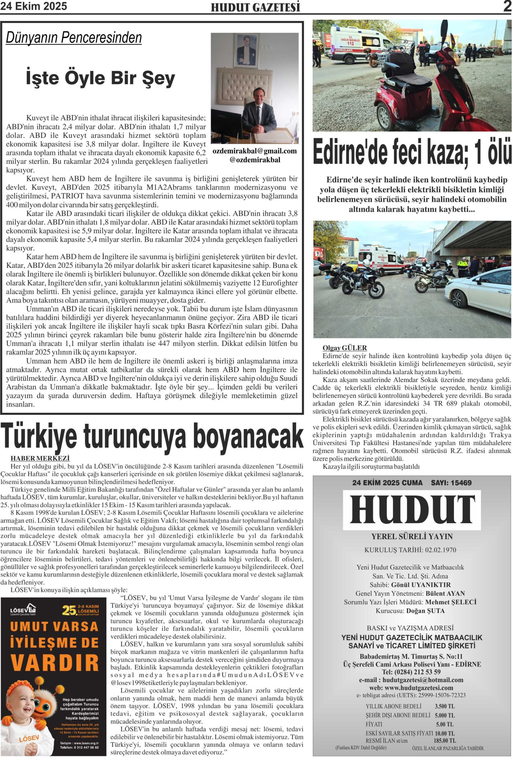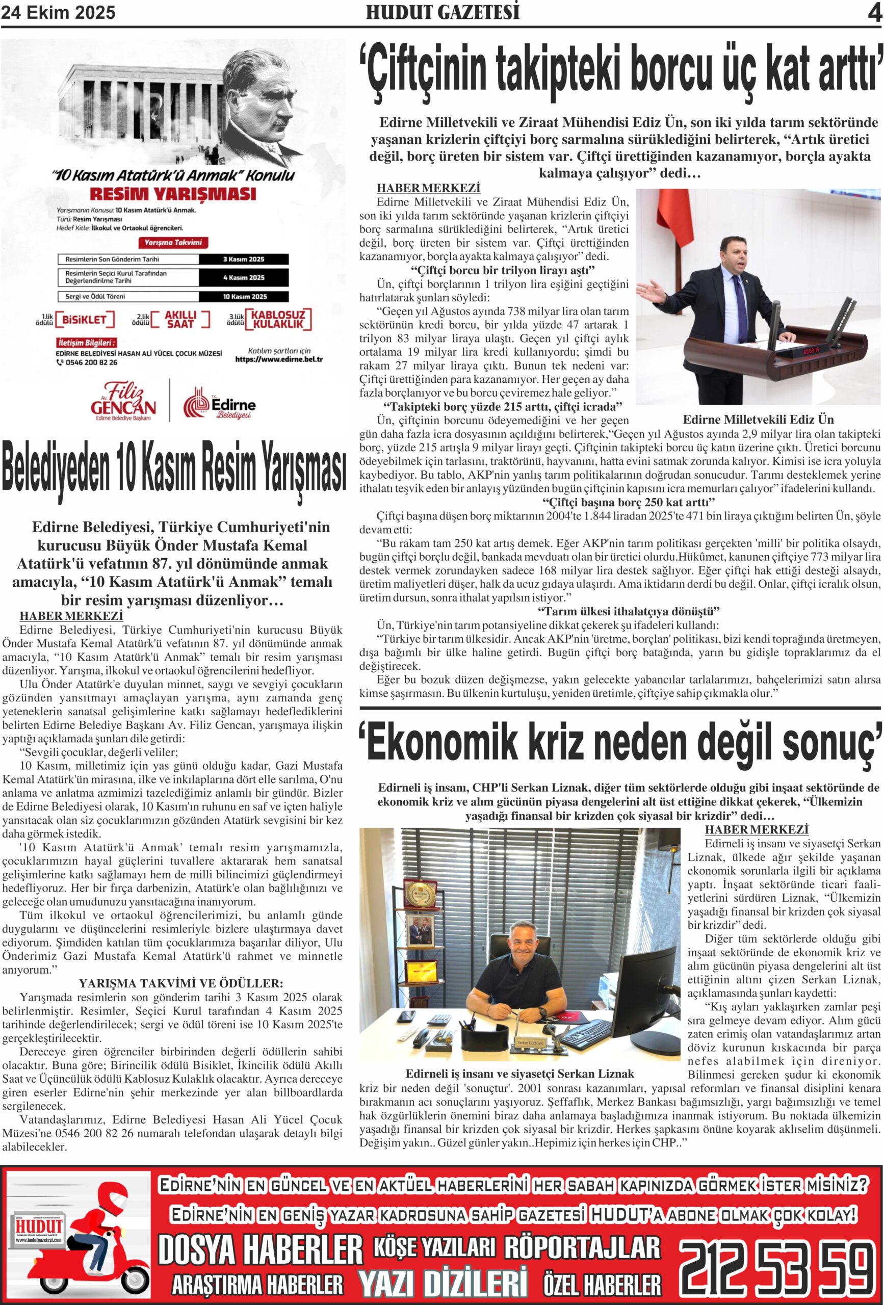 24 Ekim 2025 Cuma Hudut Gazetesi