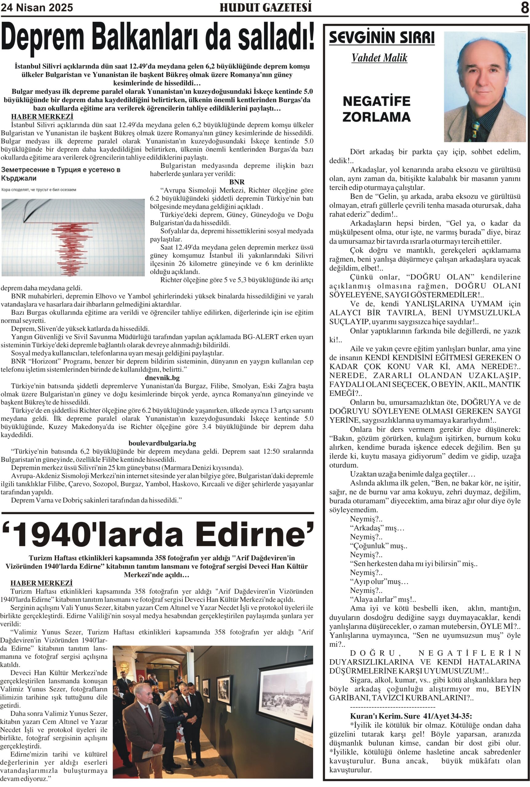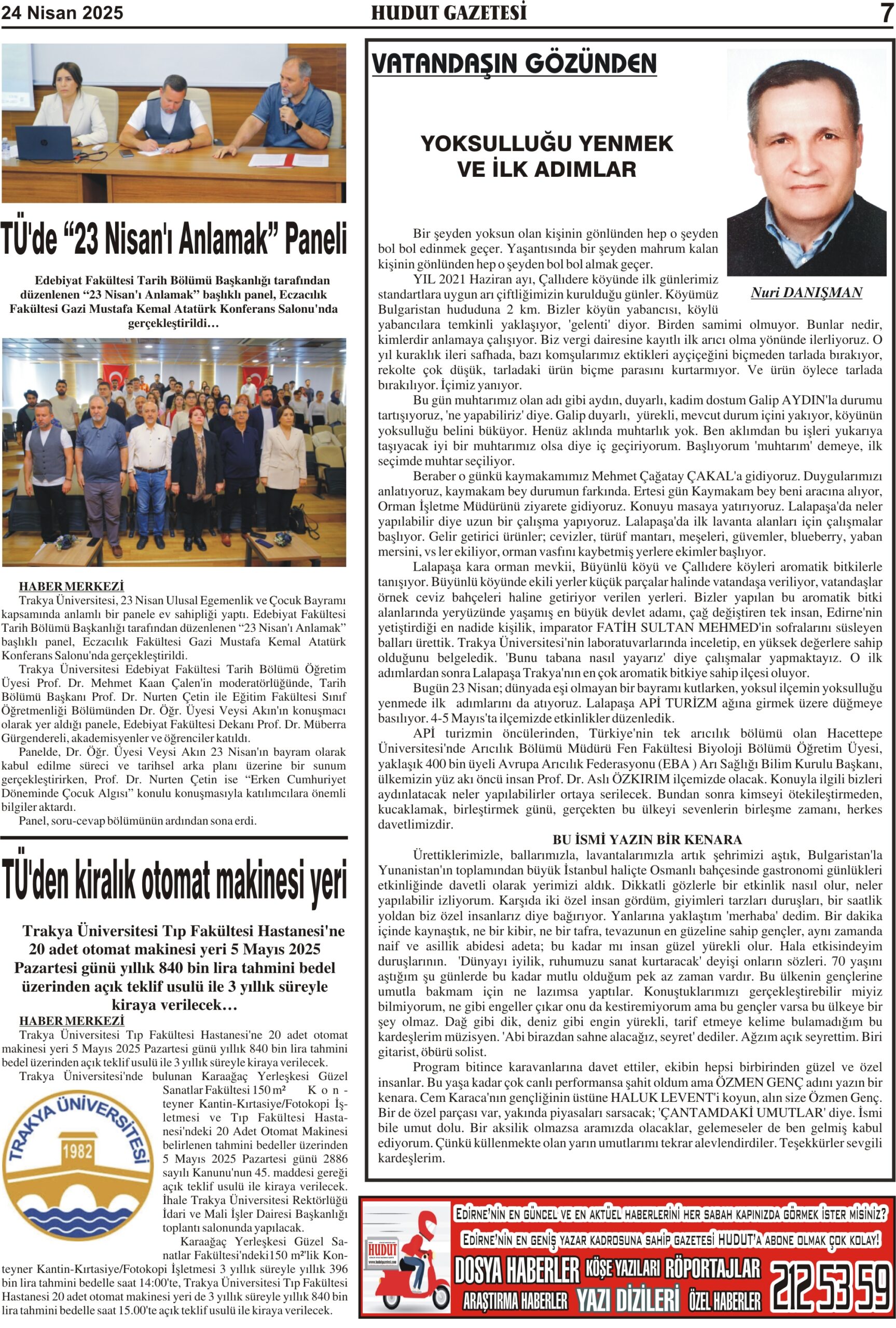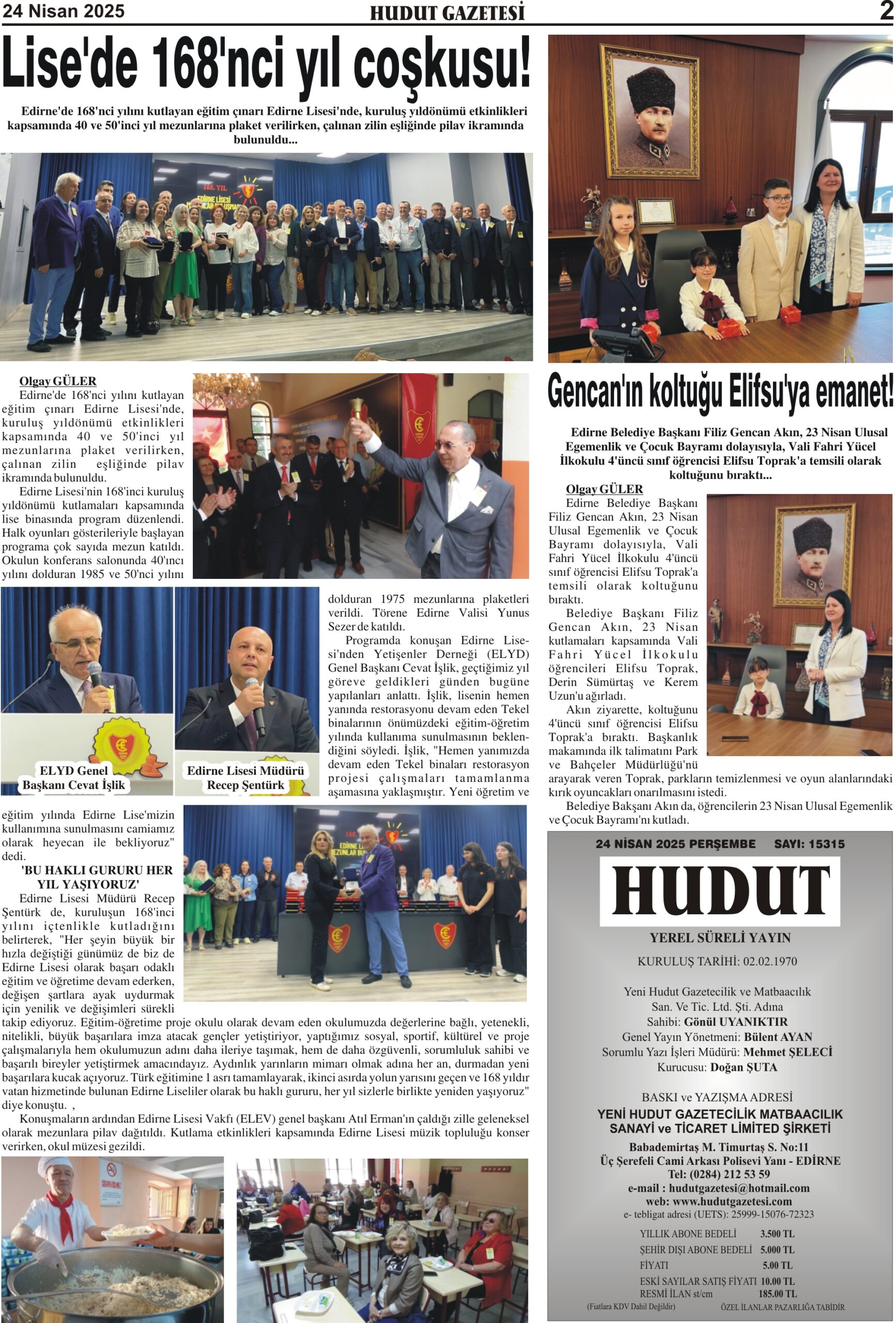 24 Nisan 2025 Perşembe Hudut Gazetesi