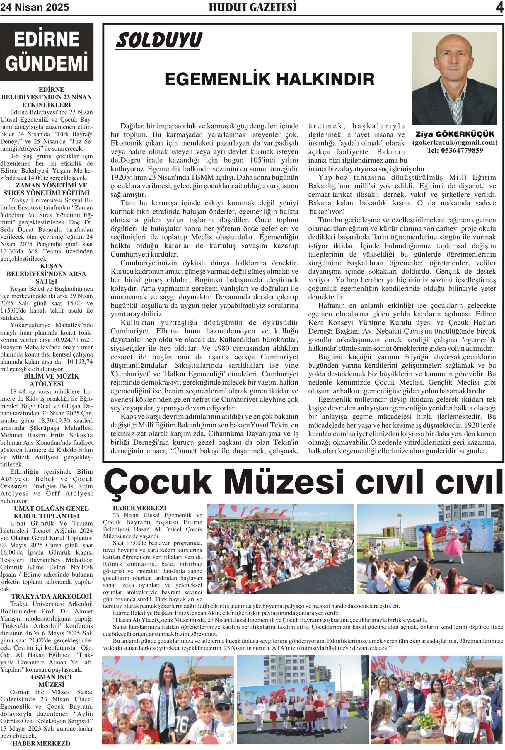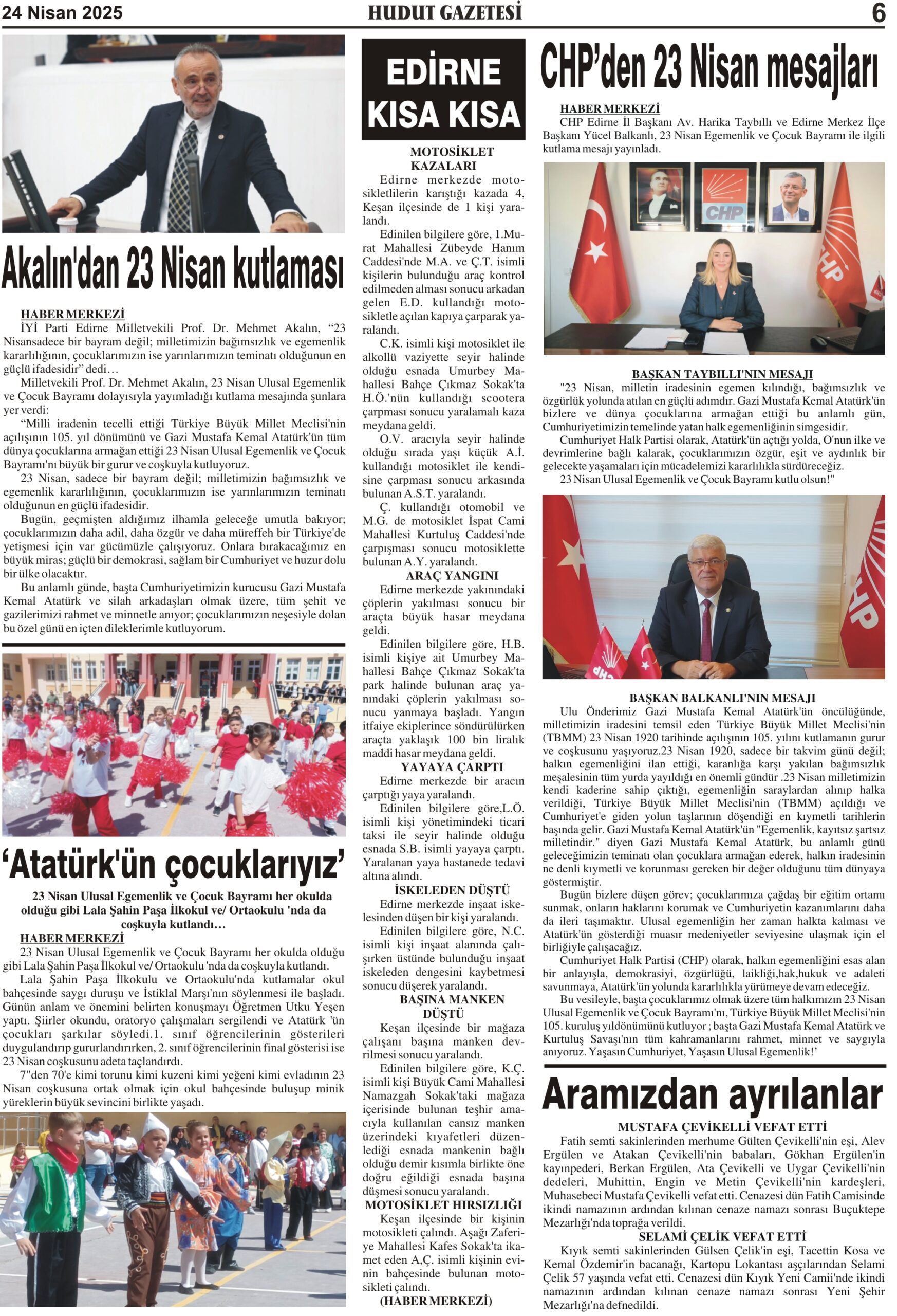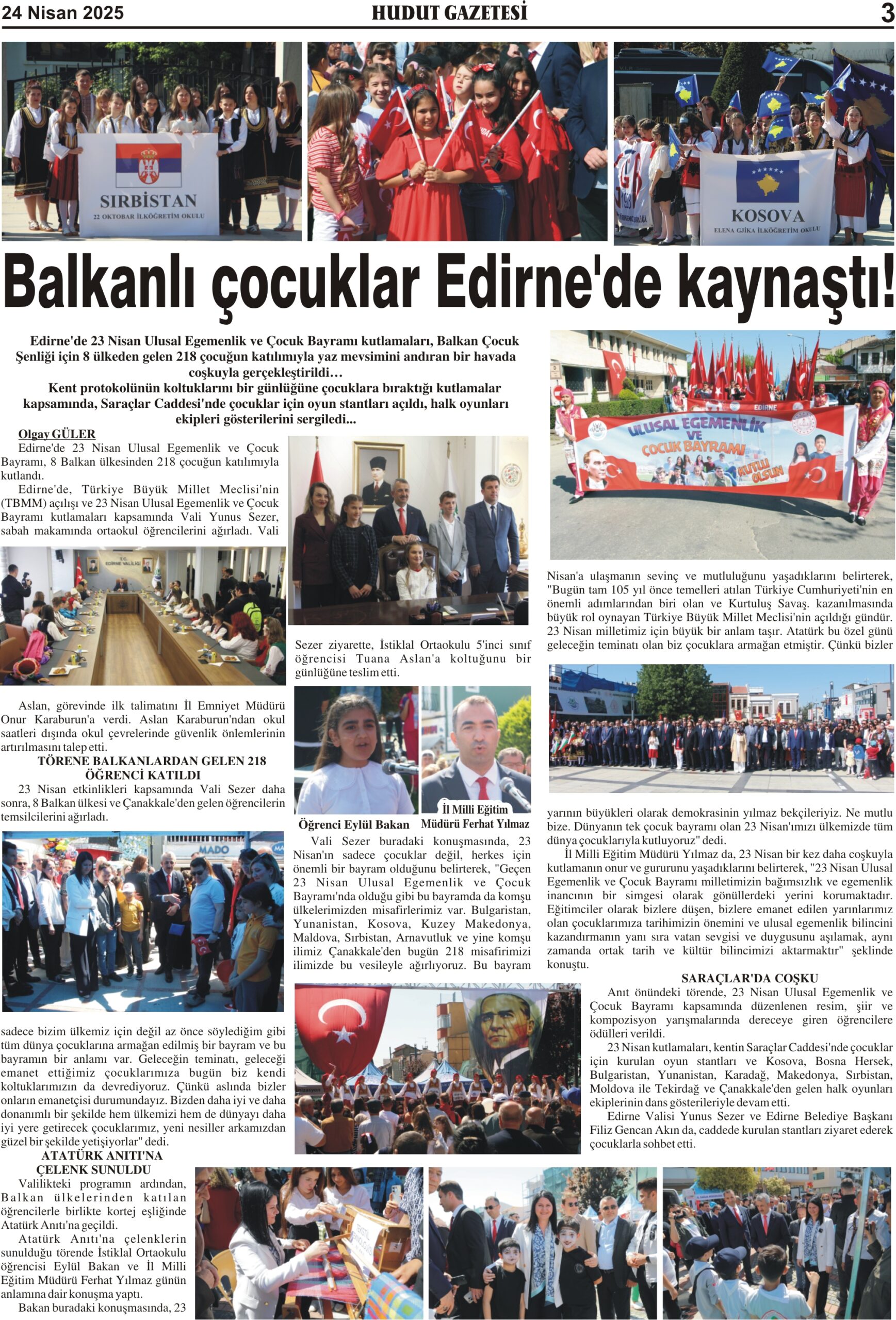 24 Nisan 2025 Perşembe Hudut Gazetesi