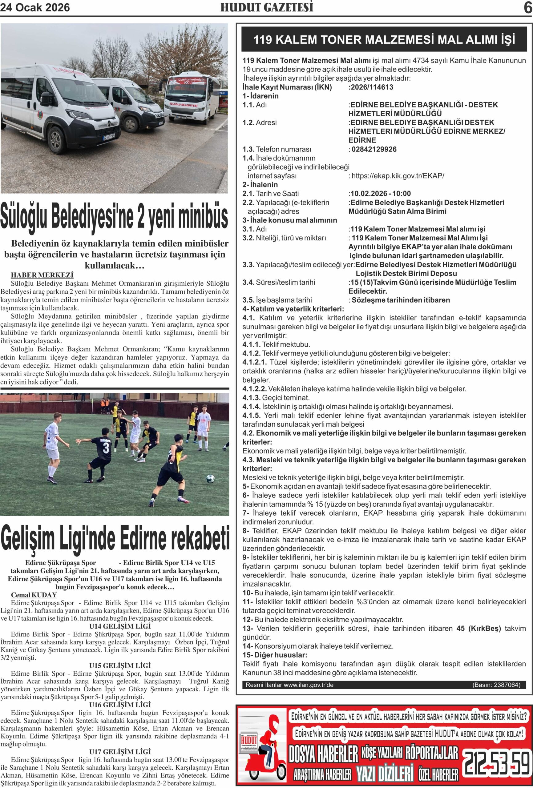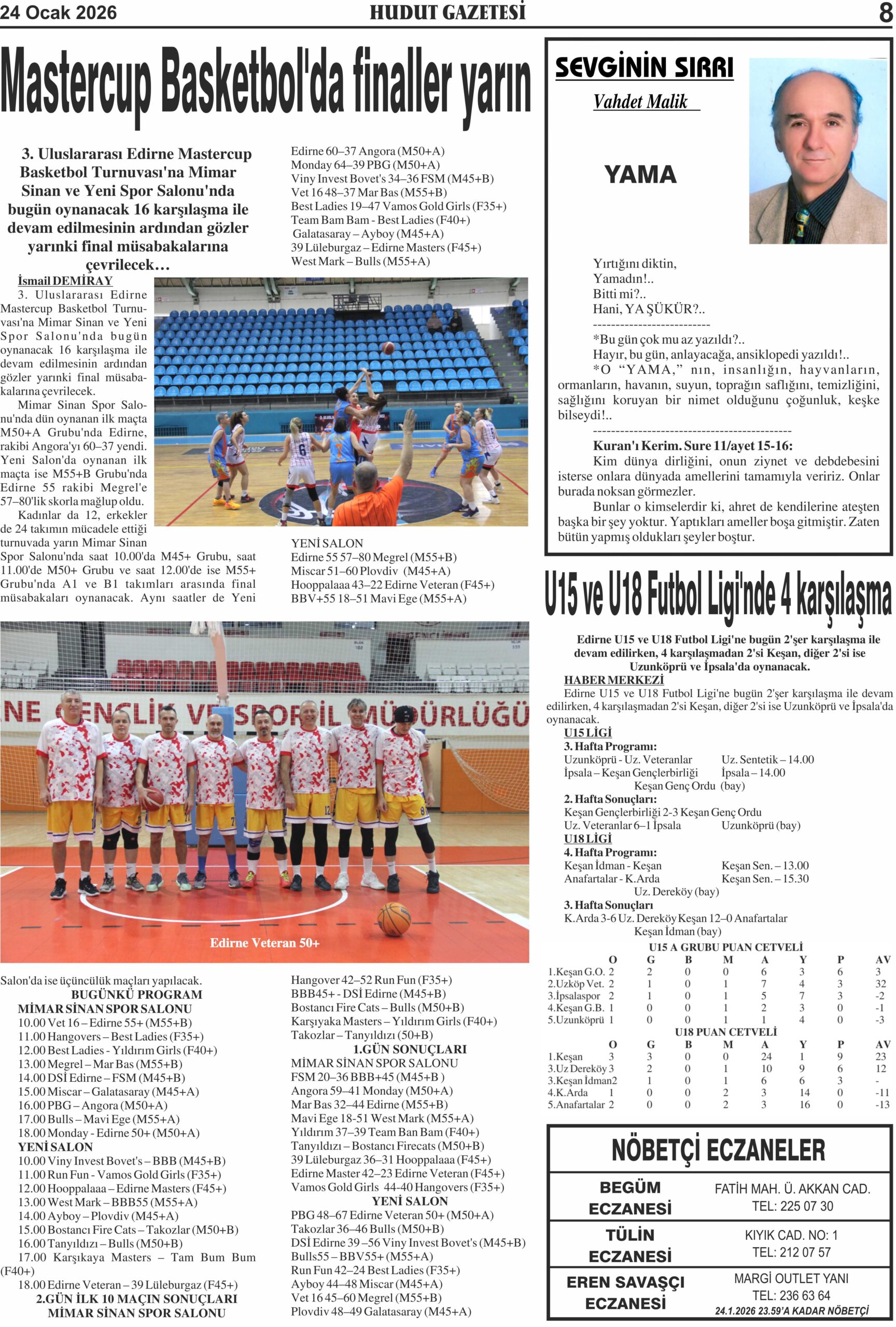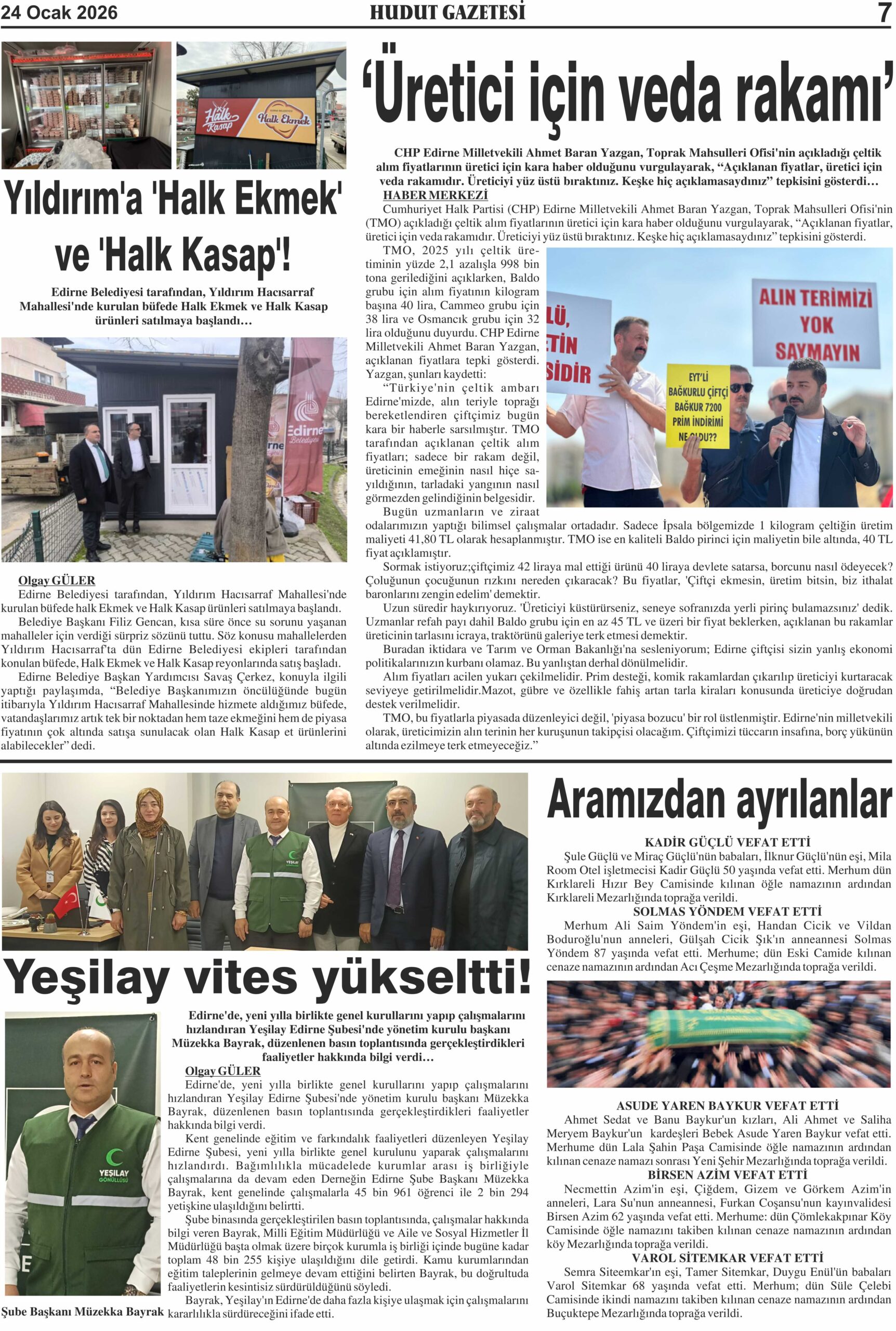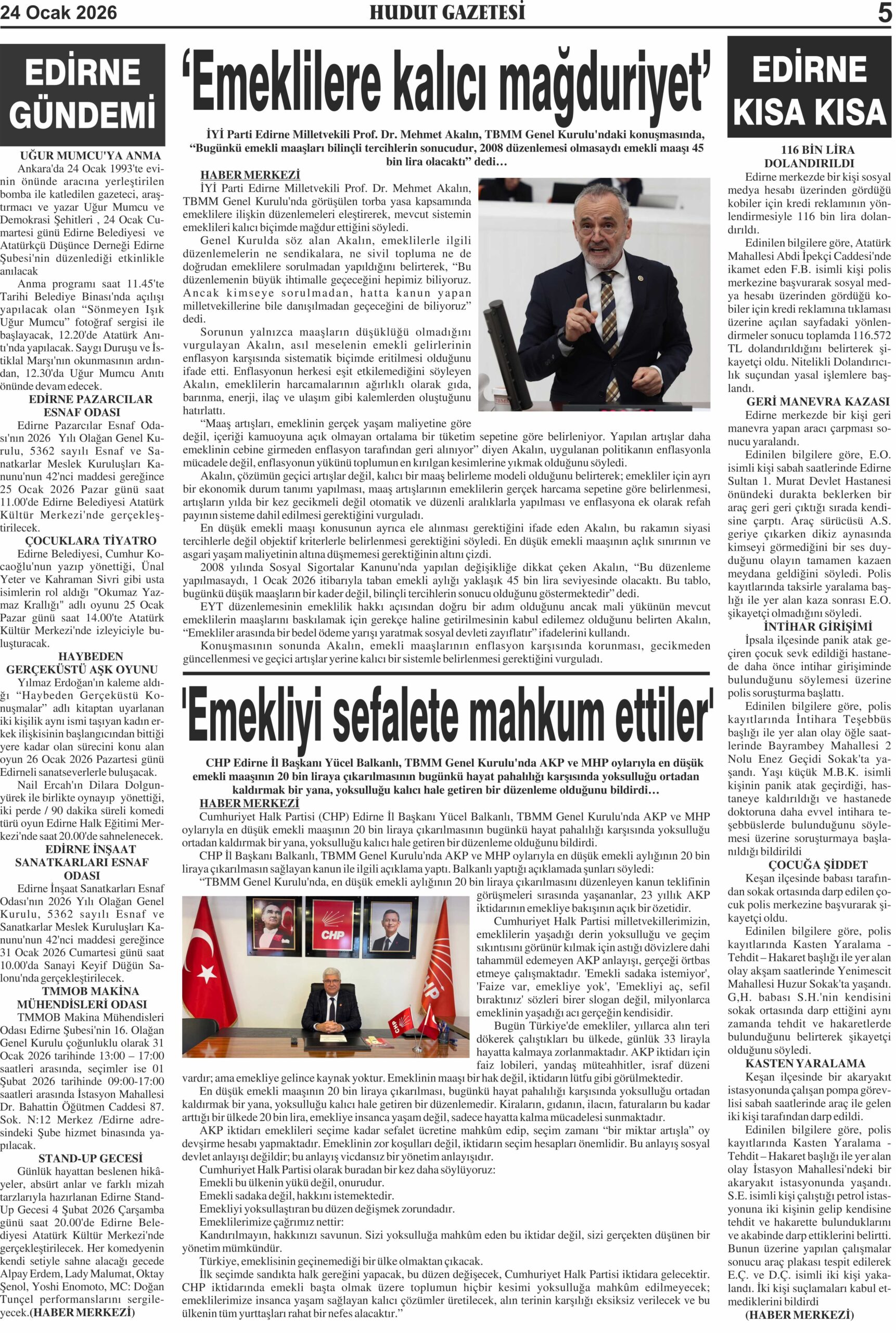 24 Ocak 2026 Cumartesi Hudut Gazetesi