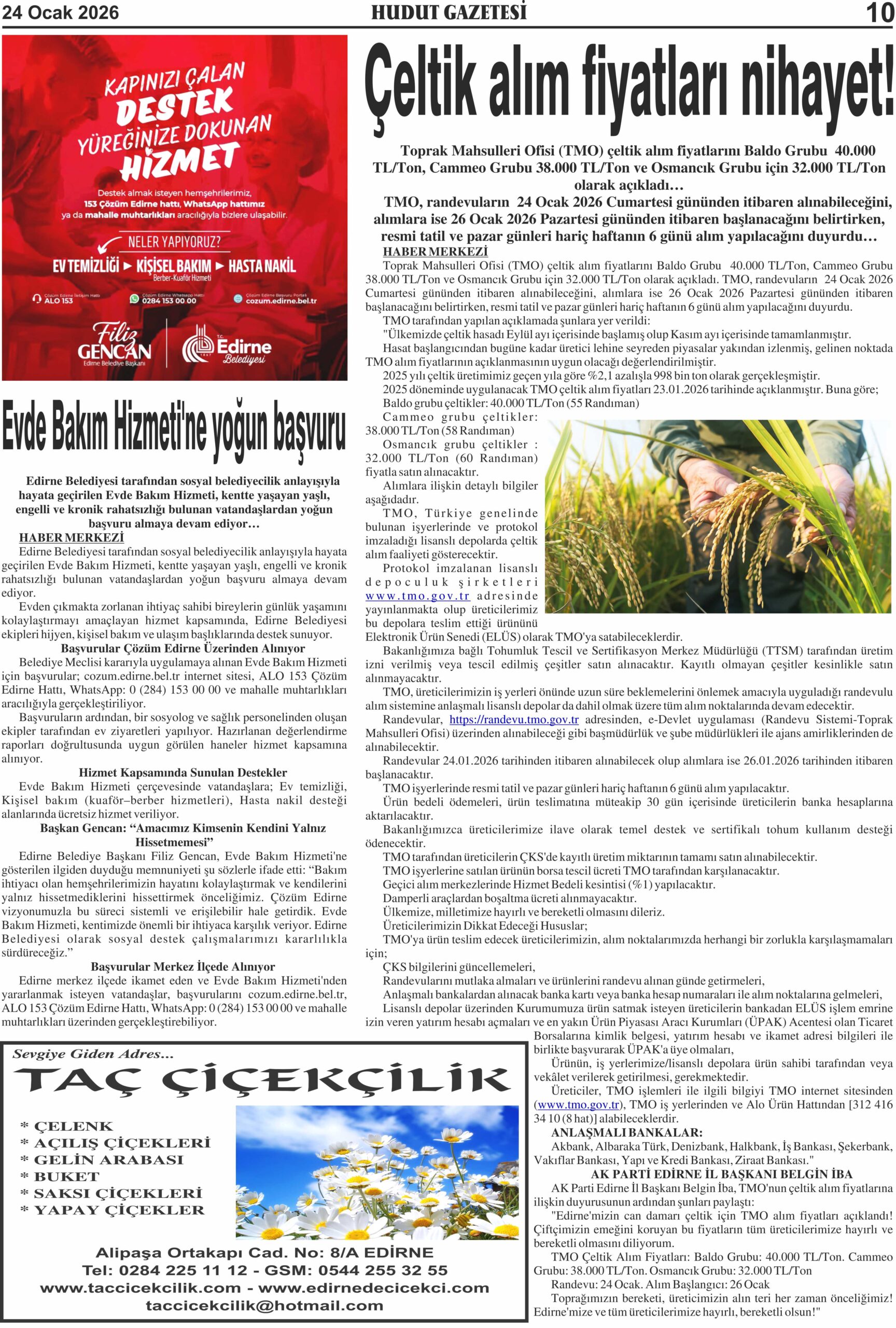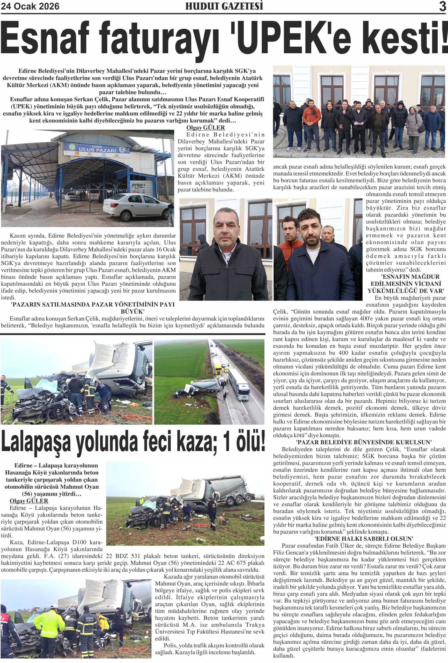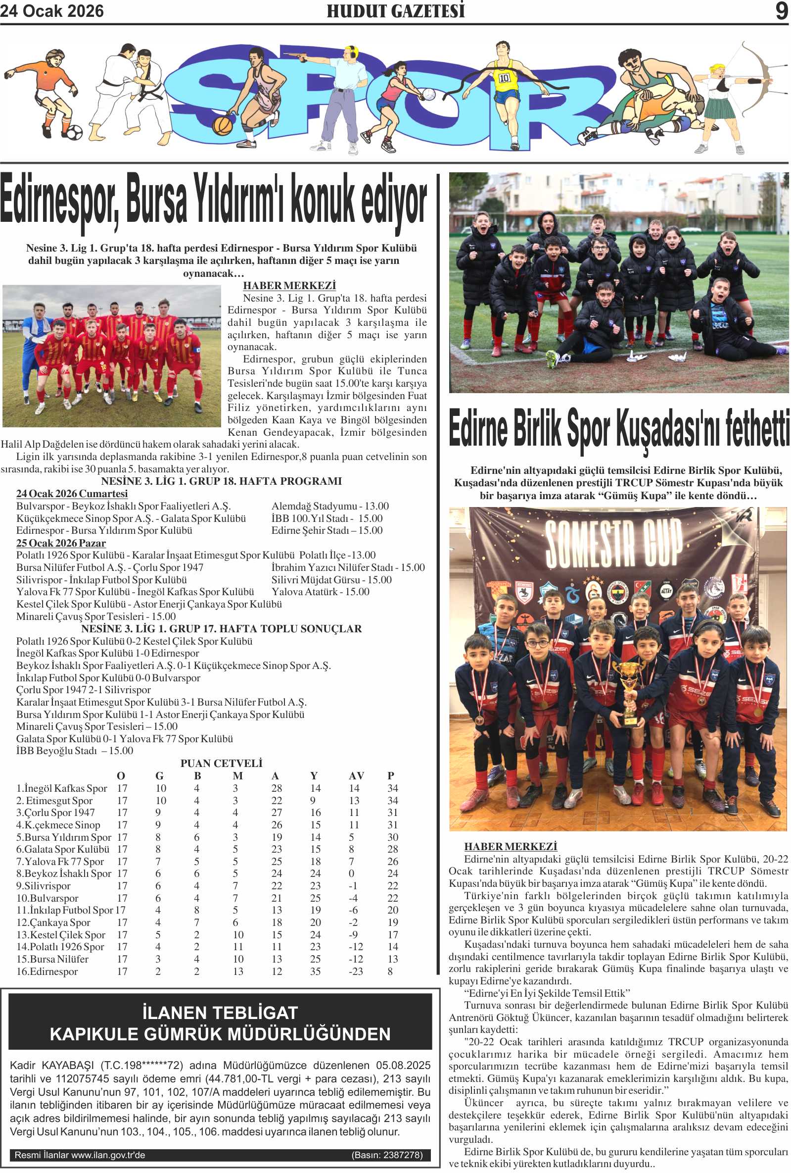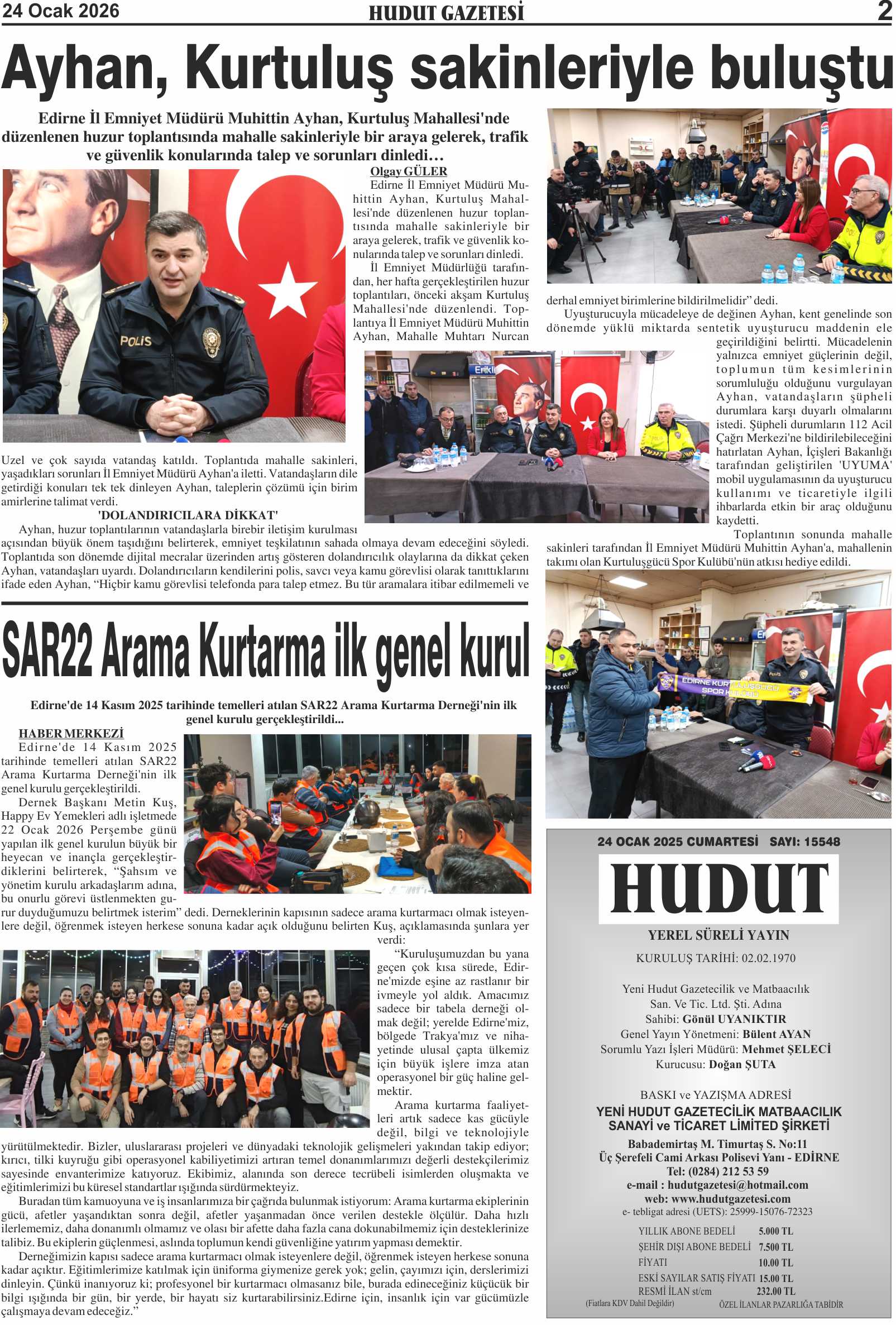 24 Ocak 2026 Cumartesi Hudut Gazetesi