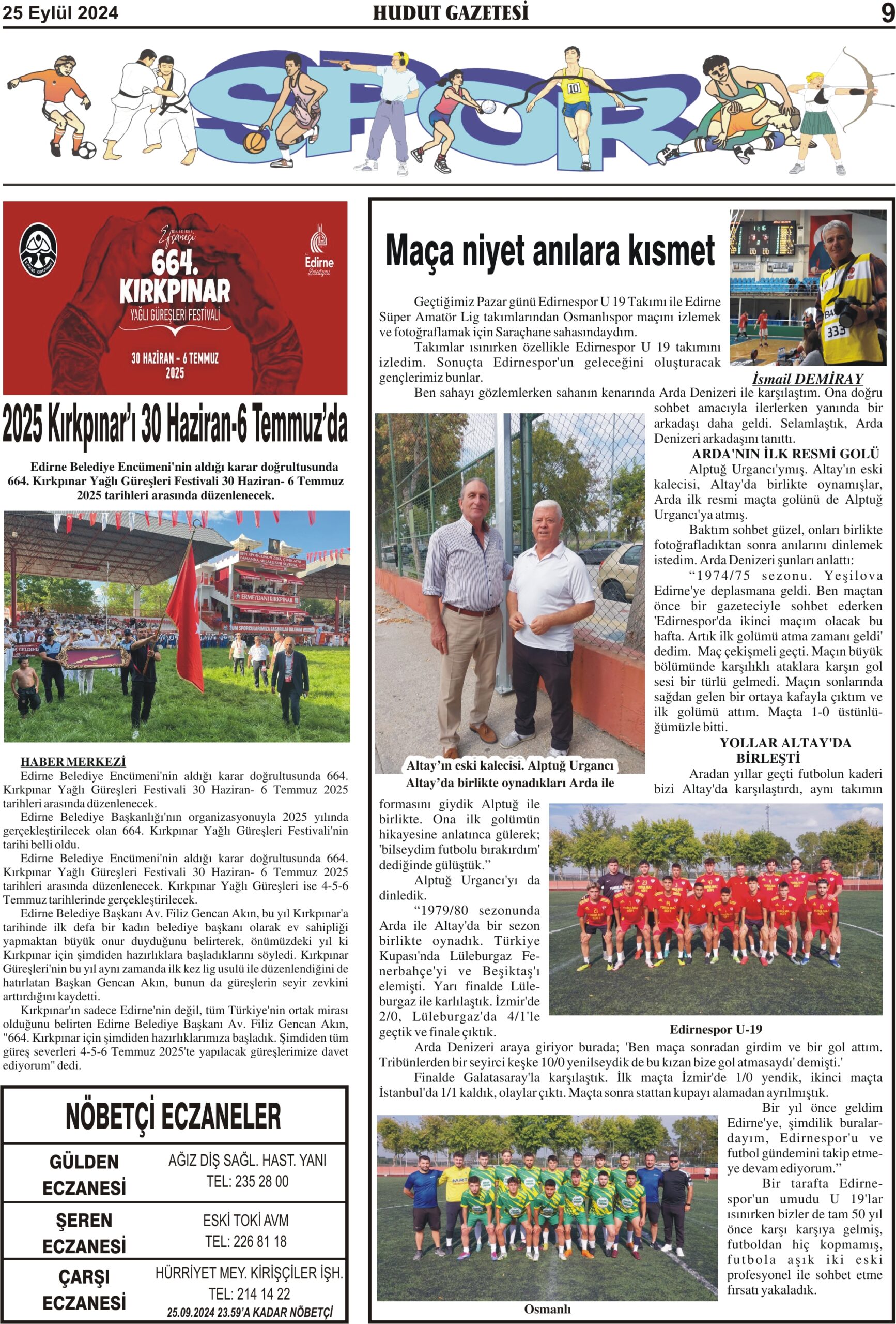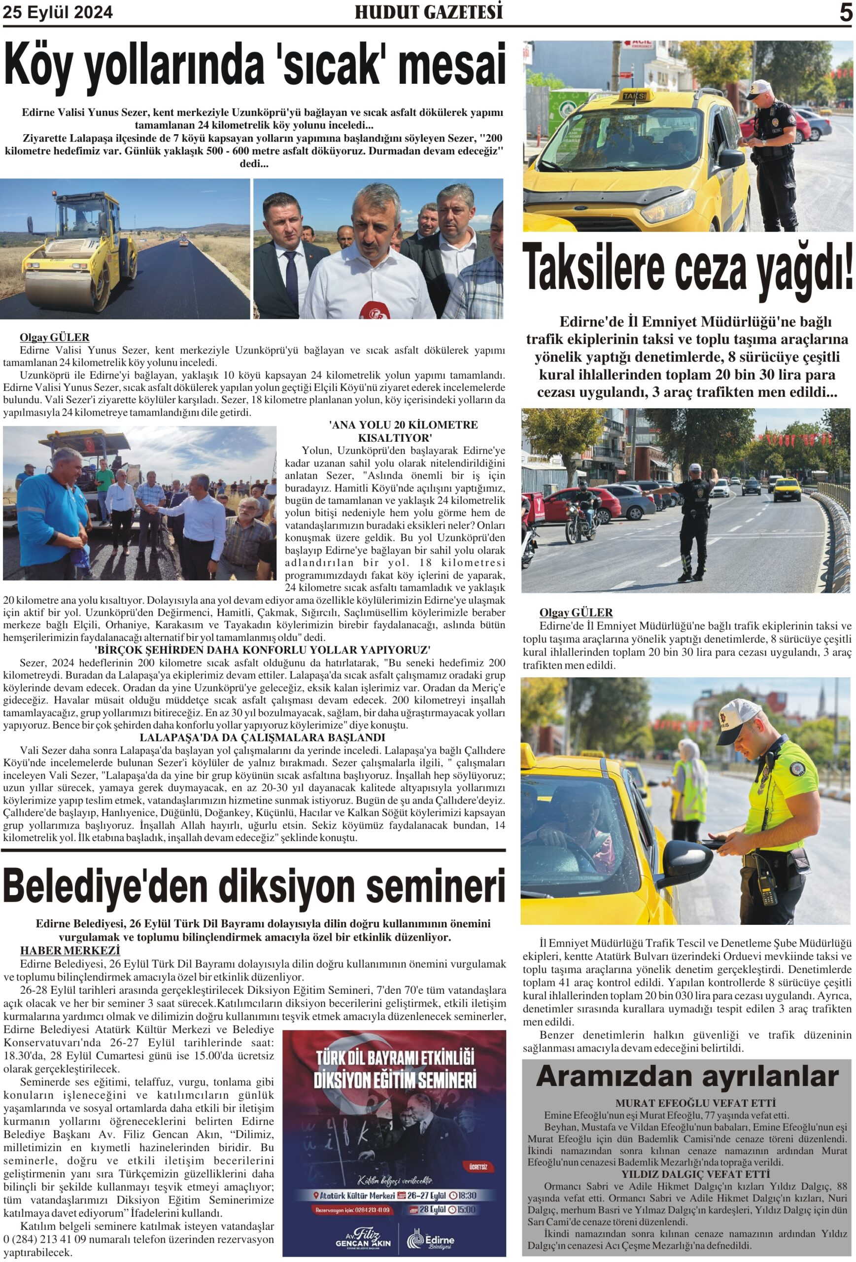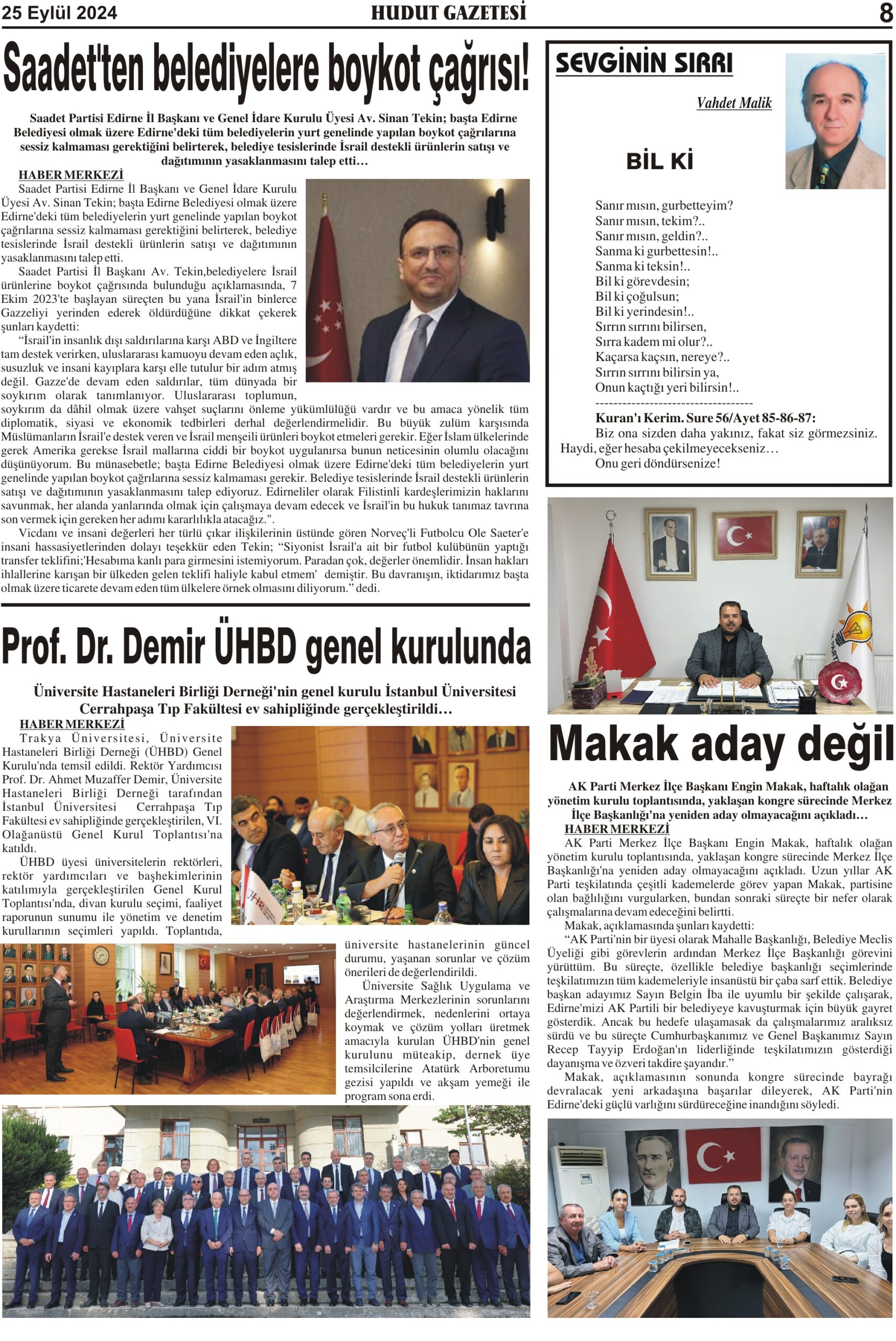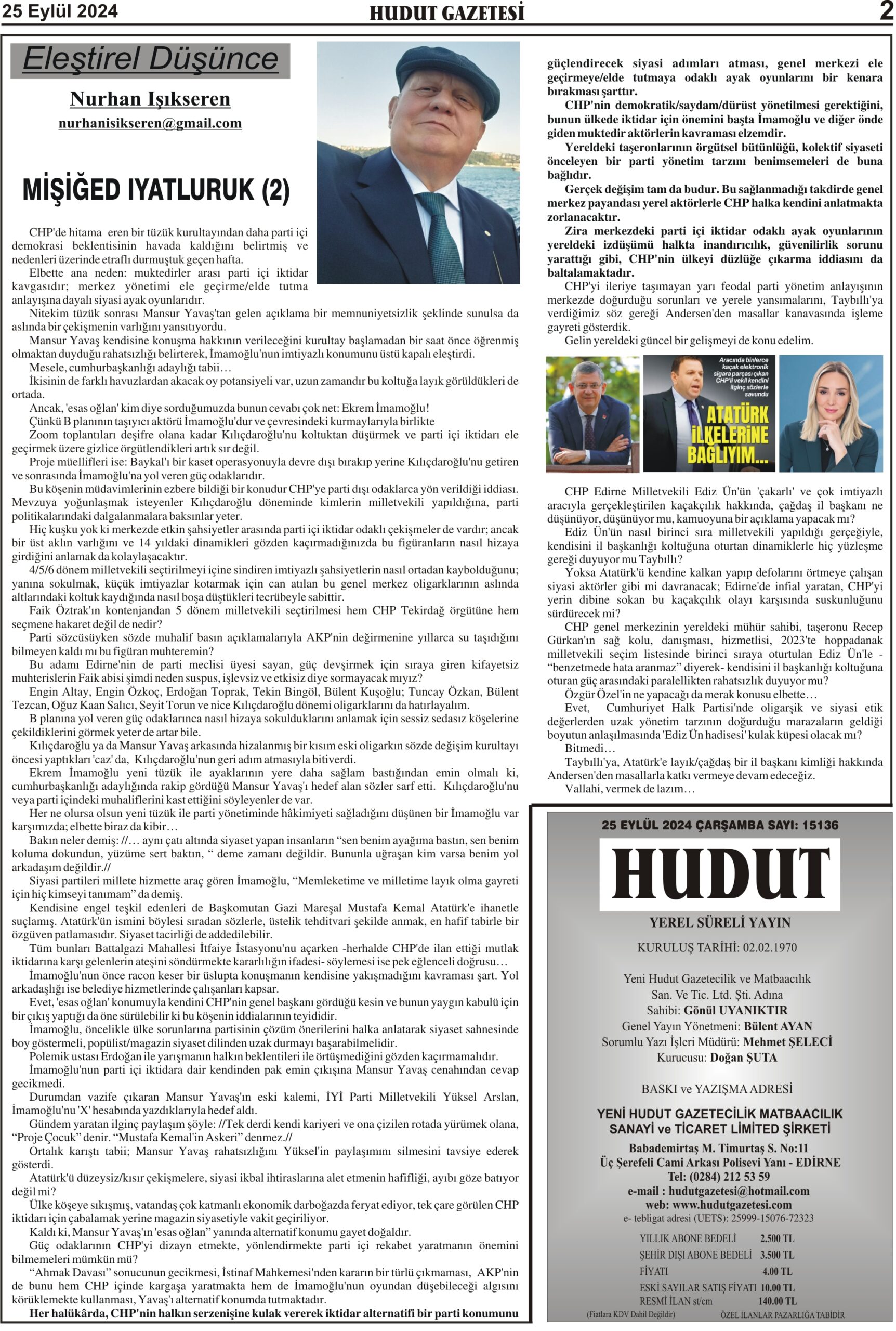 25 Eylül 2024 Çarşamba Hudut Gazetesi