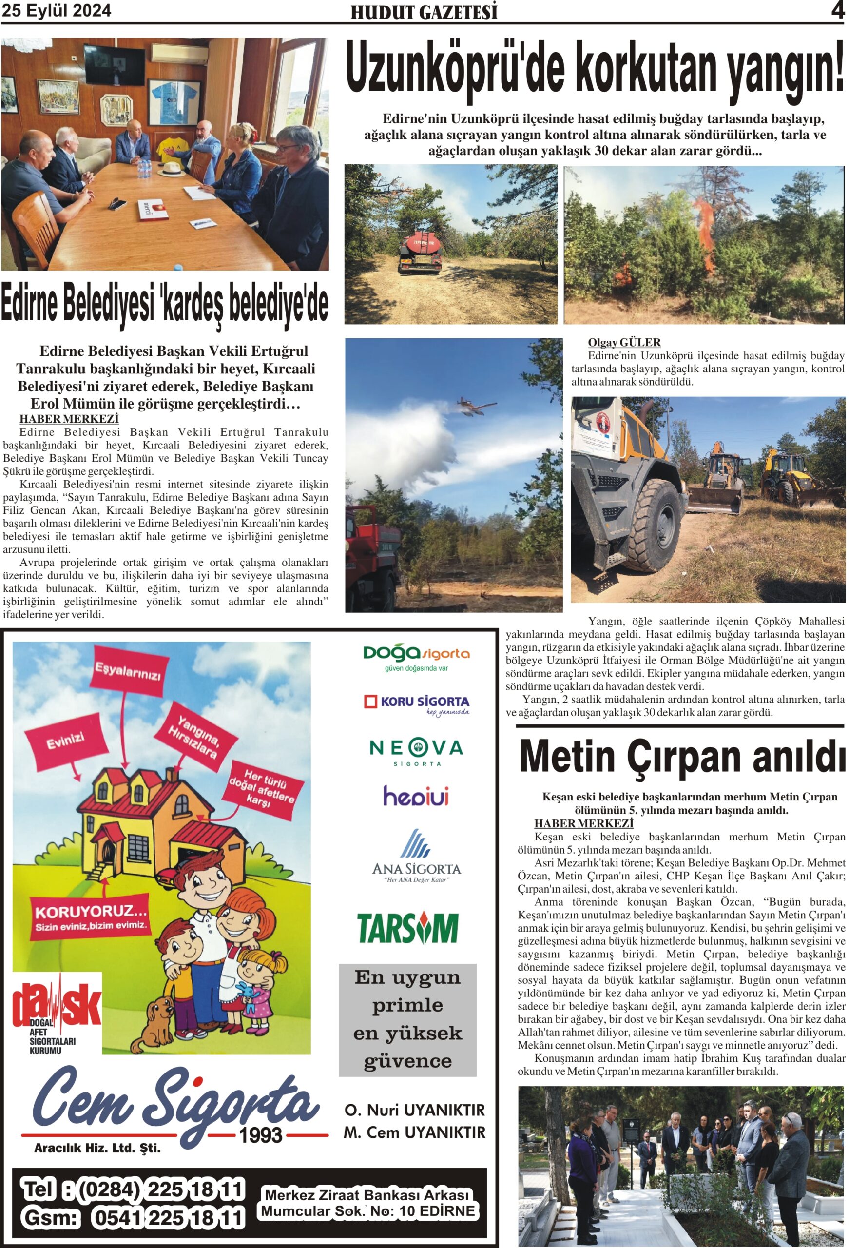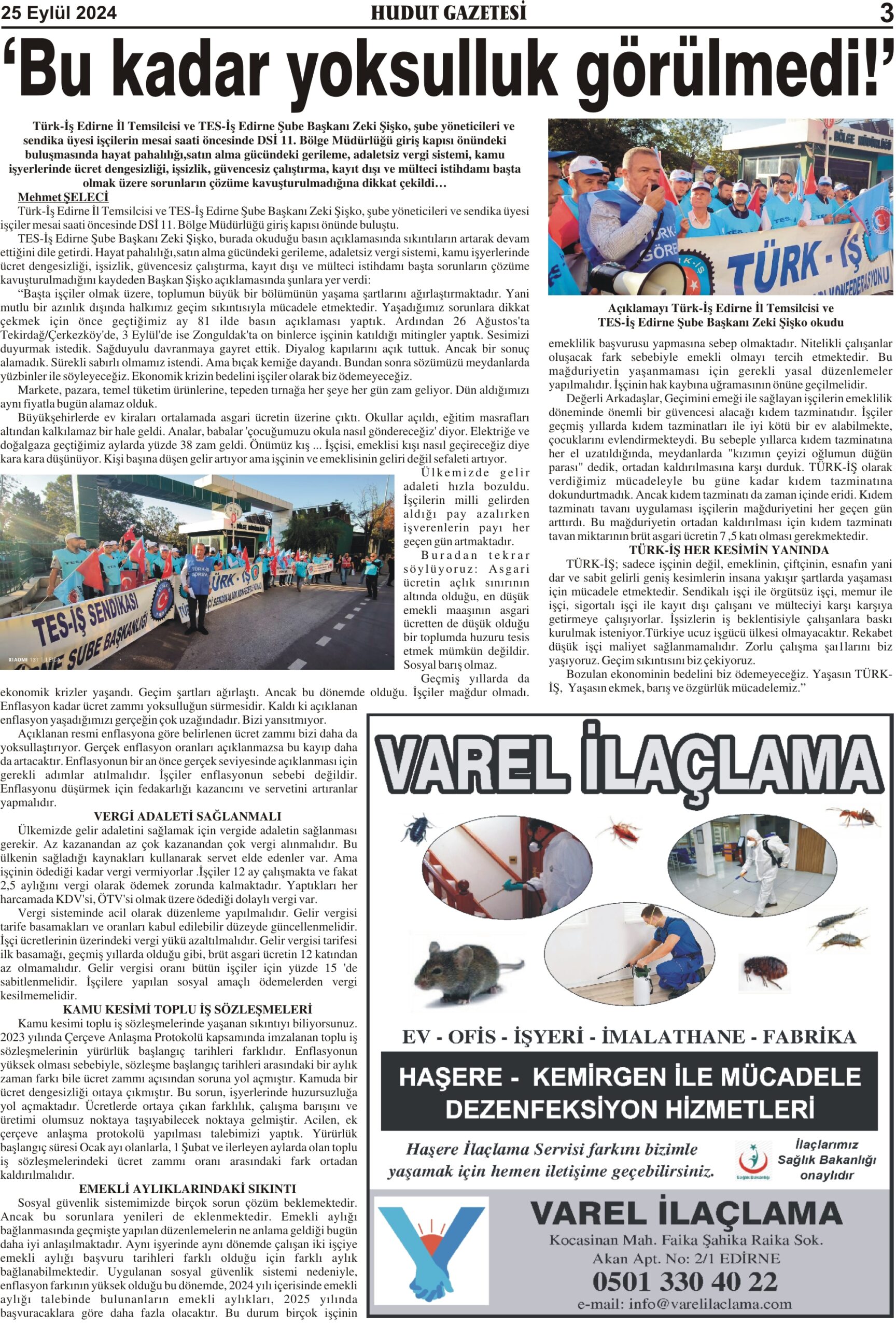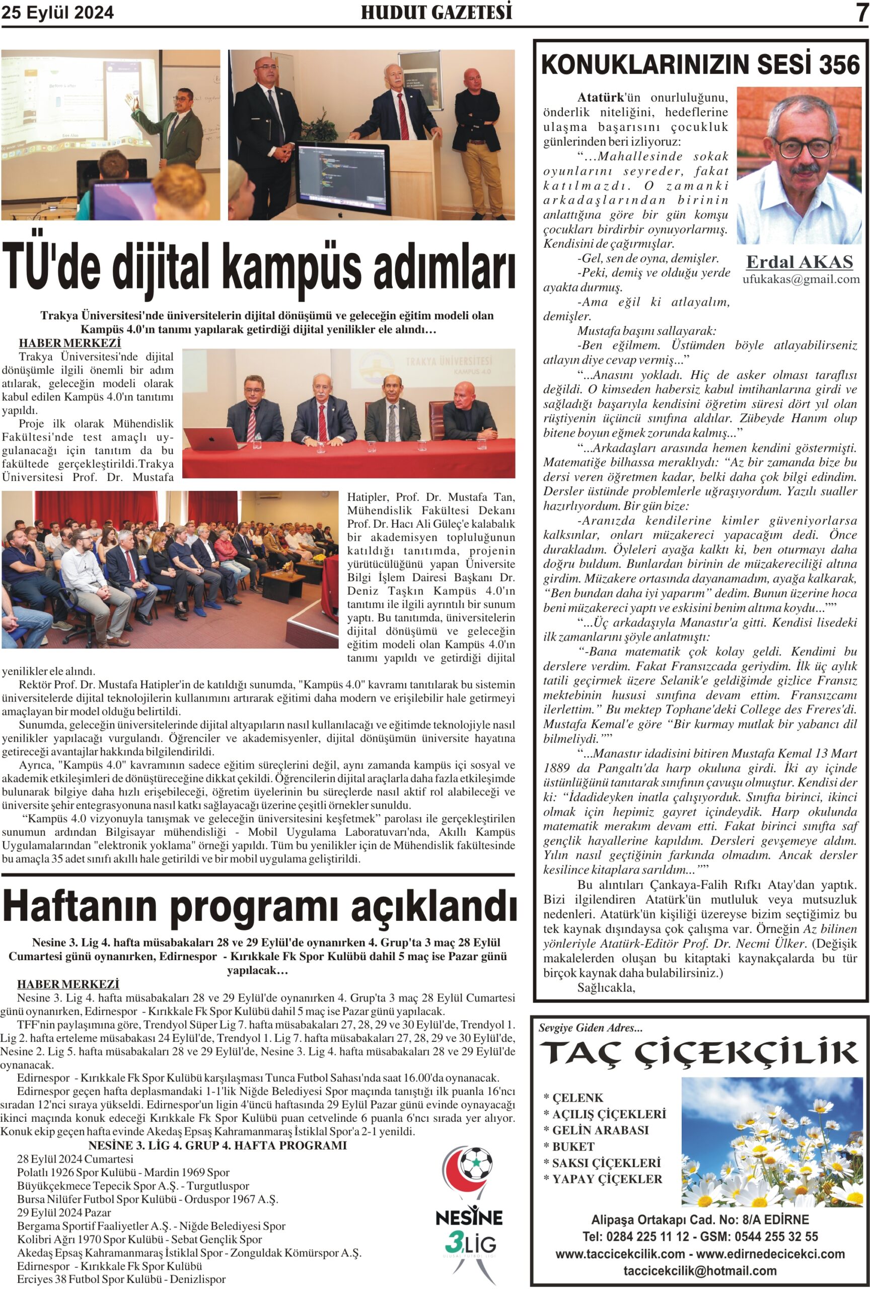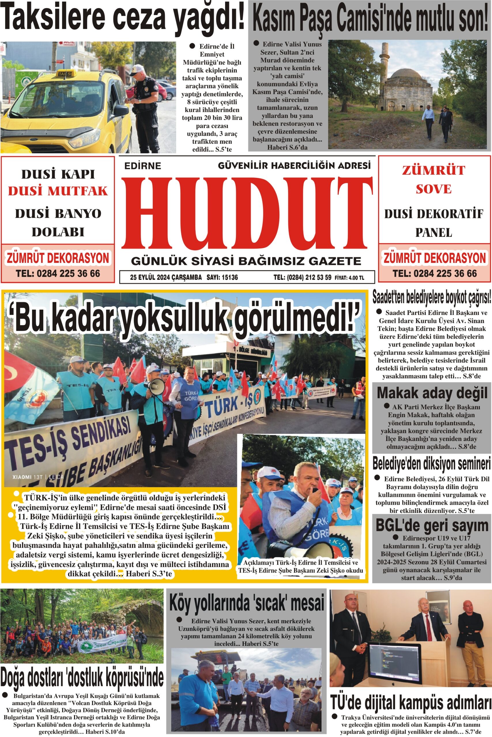 25 Eylül 2024 Çarşamba Hudut Gazetesi