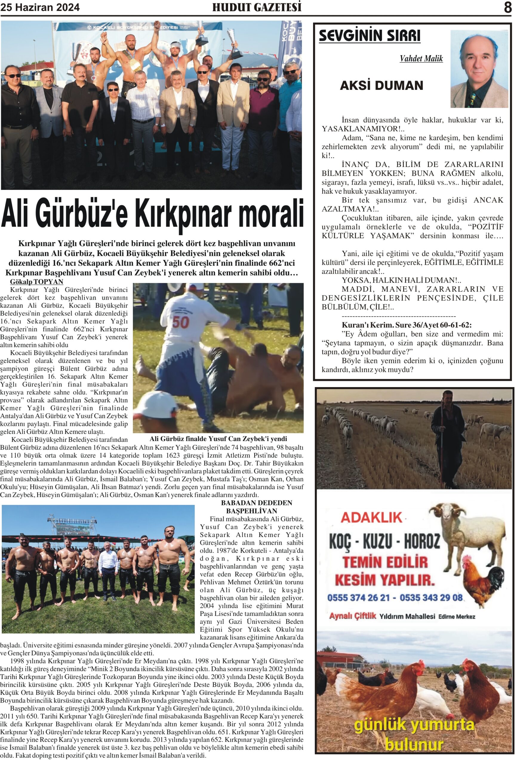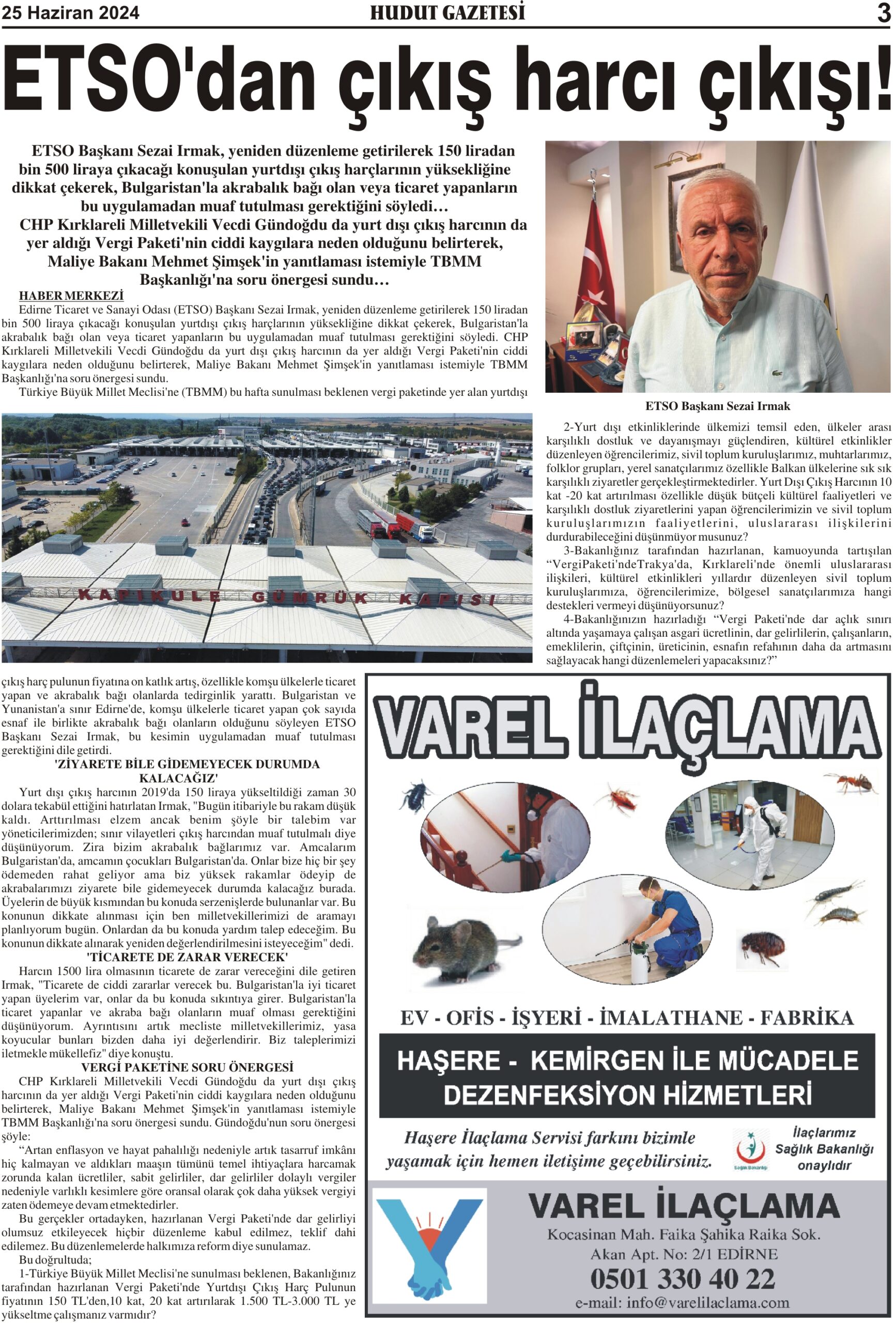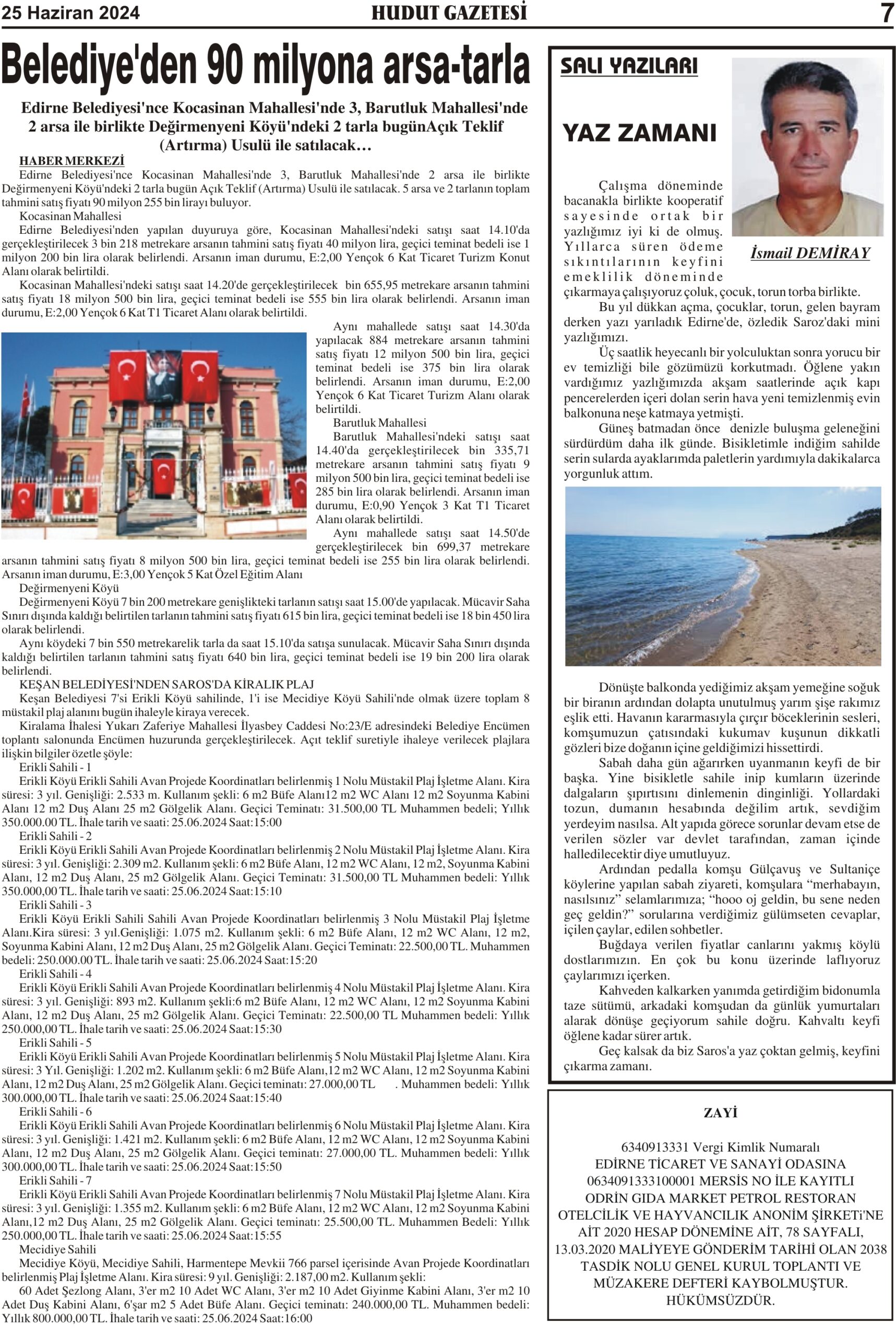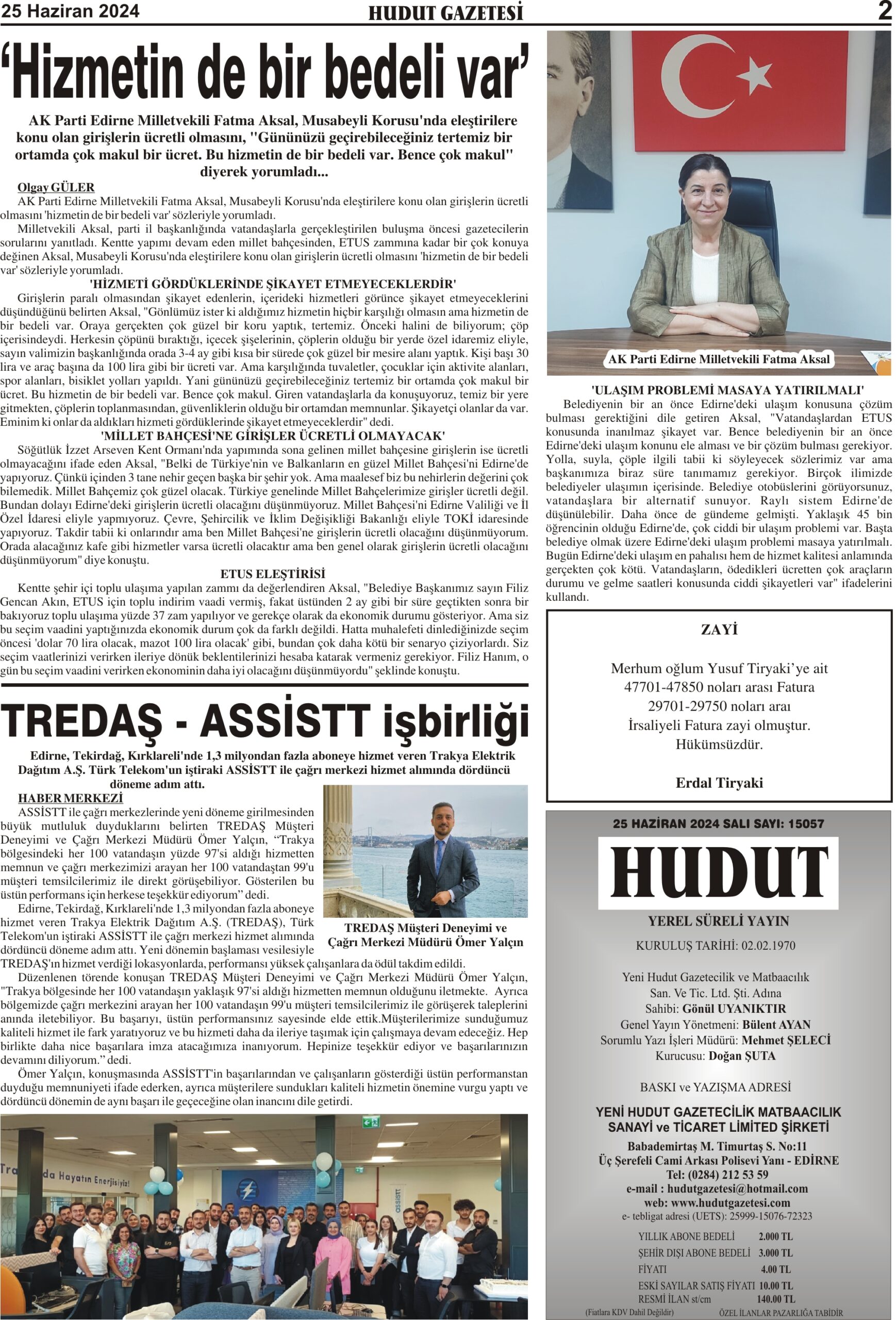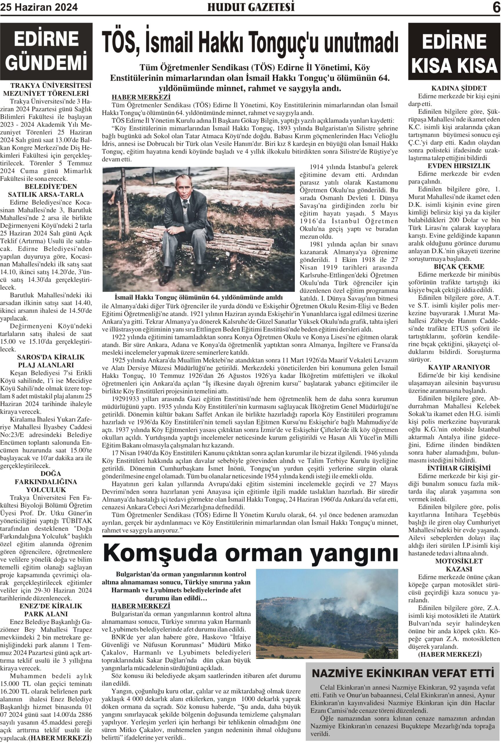 25 Haziran 2024 Salı Hudut Gazetesi