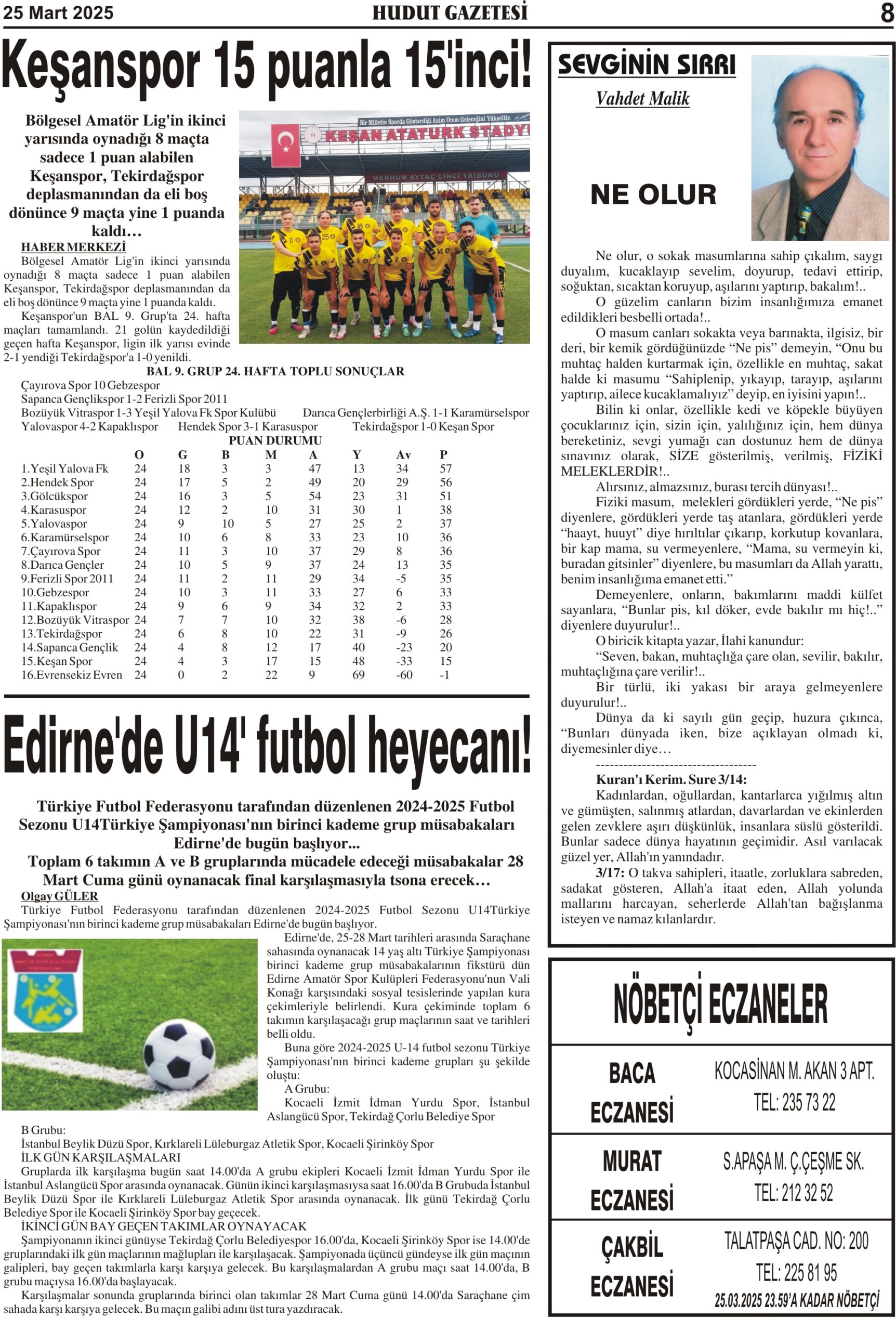 25 Mart 2025 Salı Hudut Gazetesi