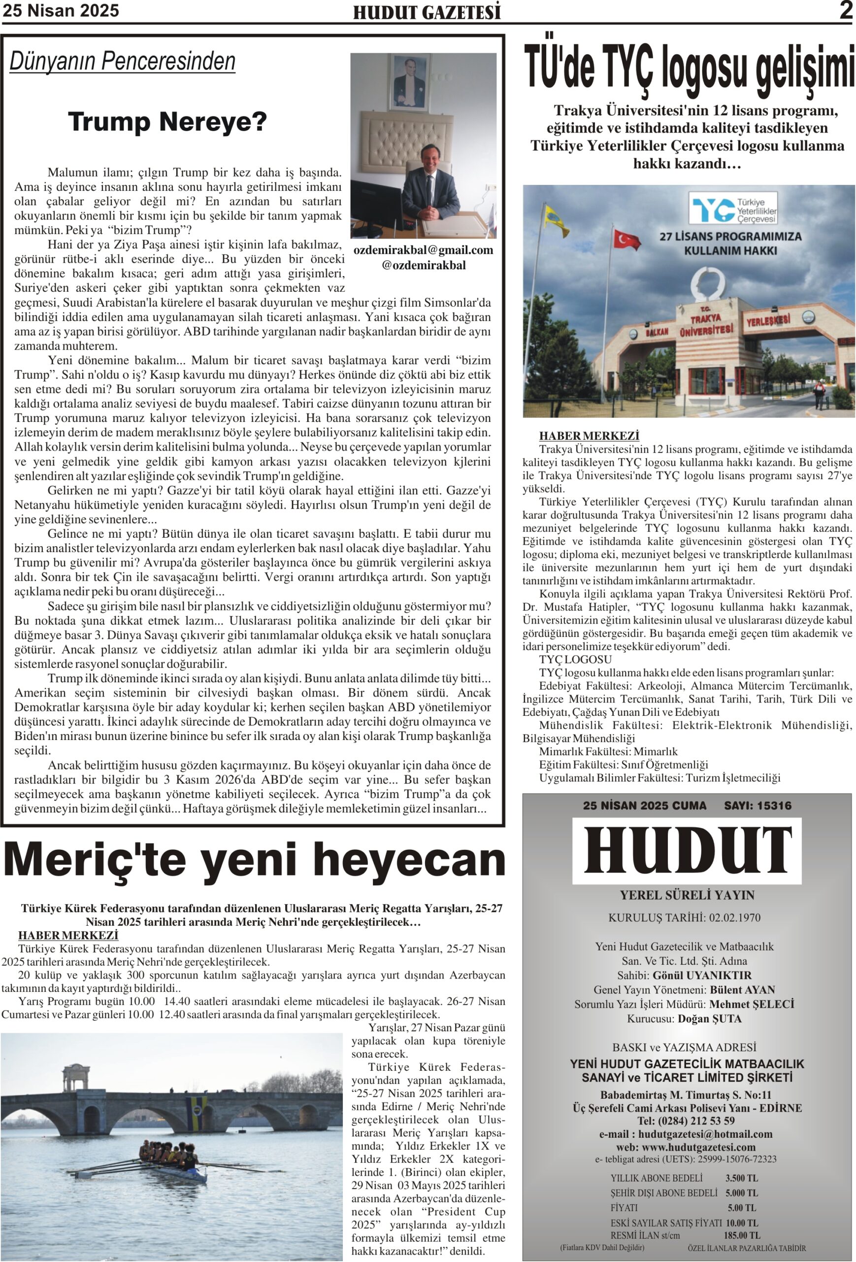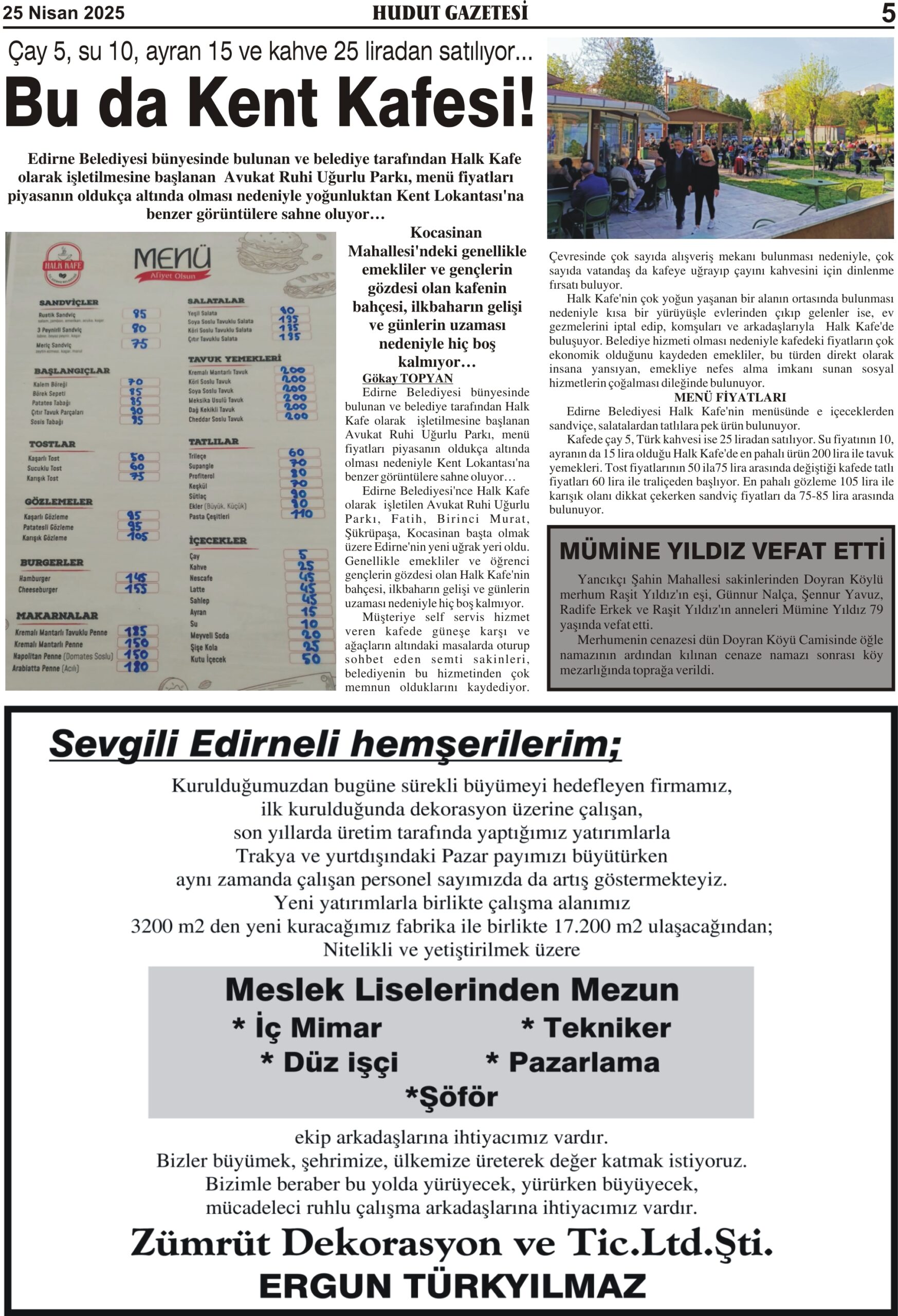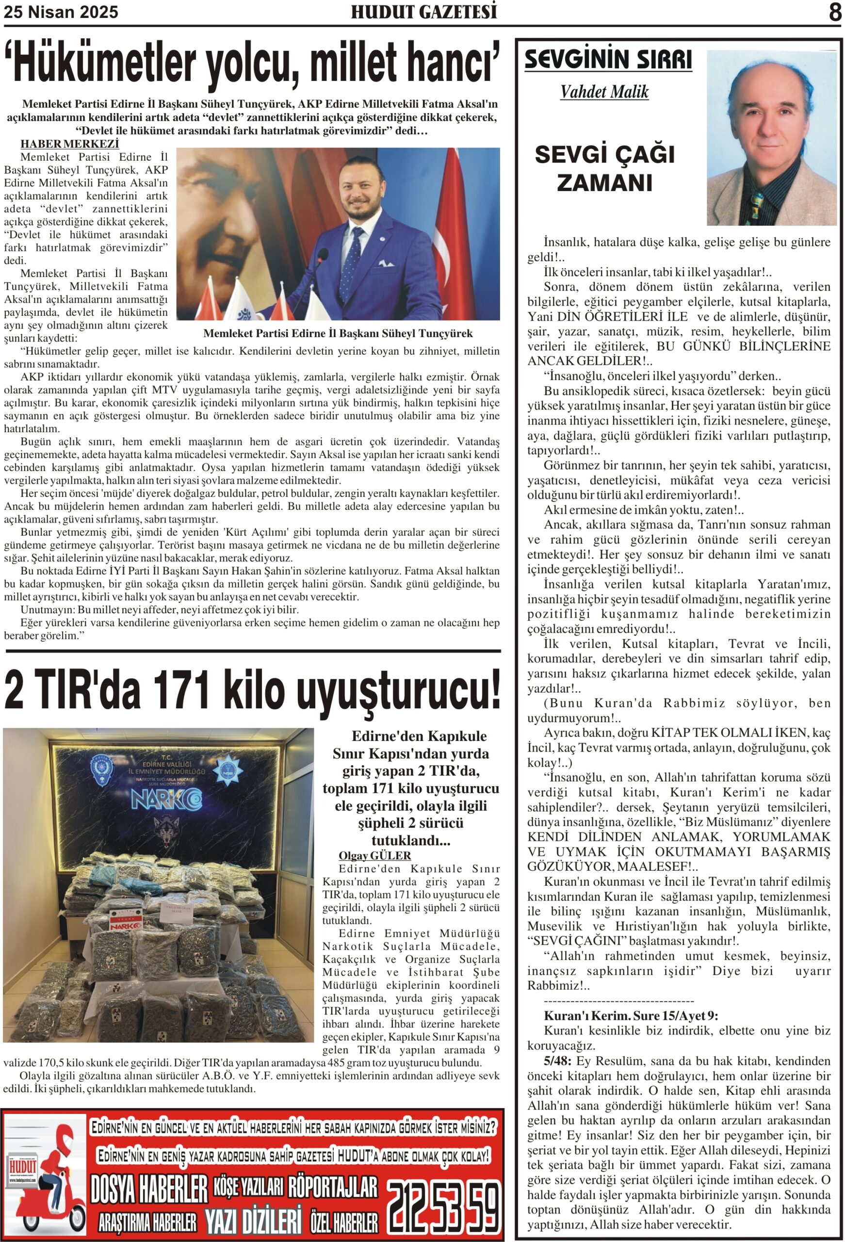 25 Nisan 2025 Cuma Hudut Gazetesi