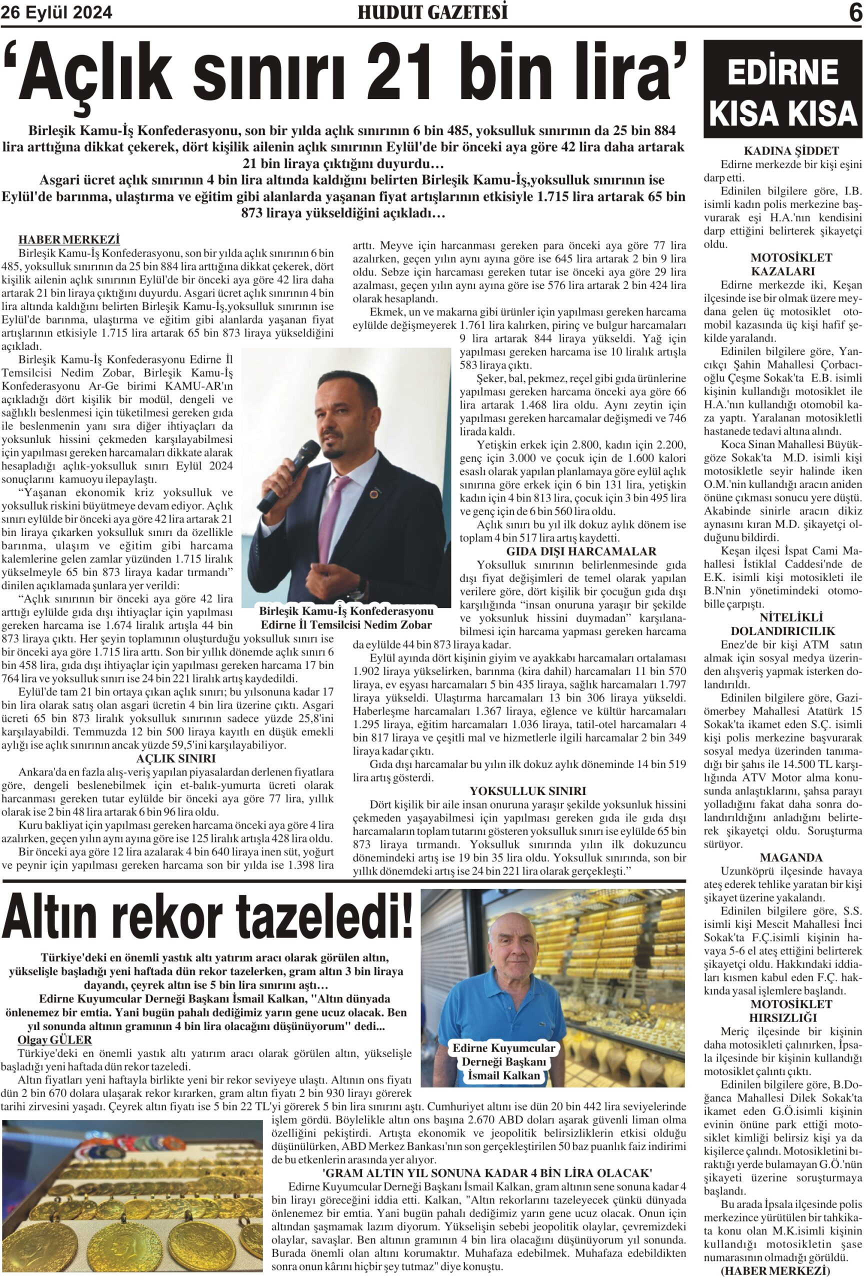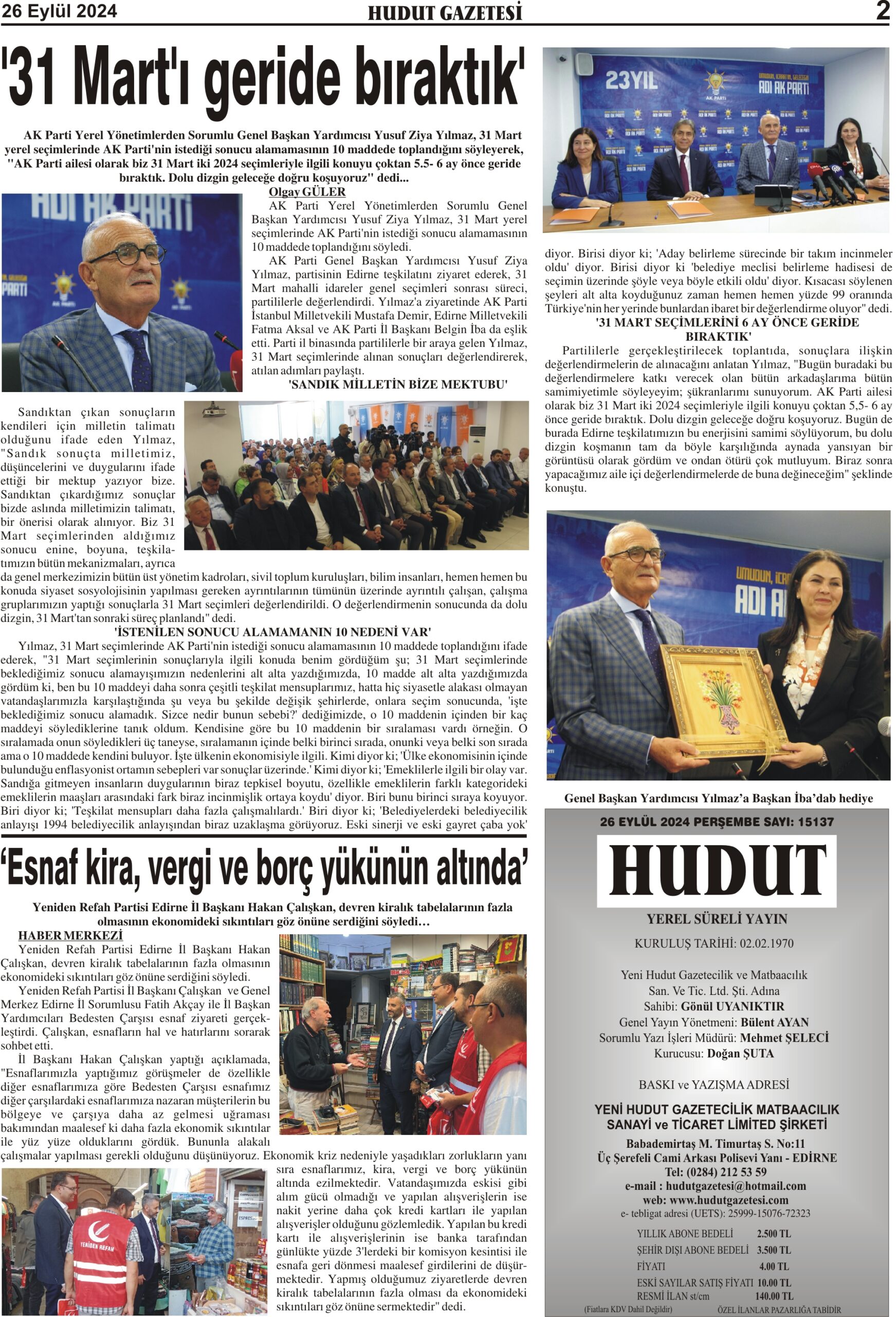 31 Ocak 2026 Cumartesi Hudut Gazetesi