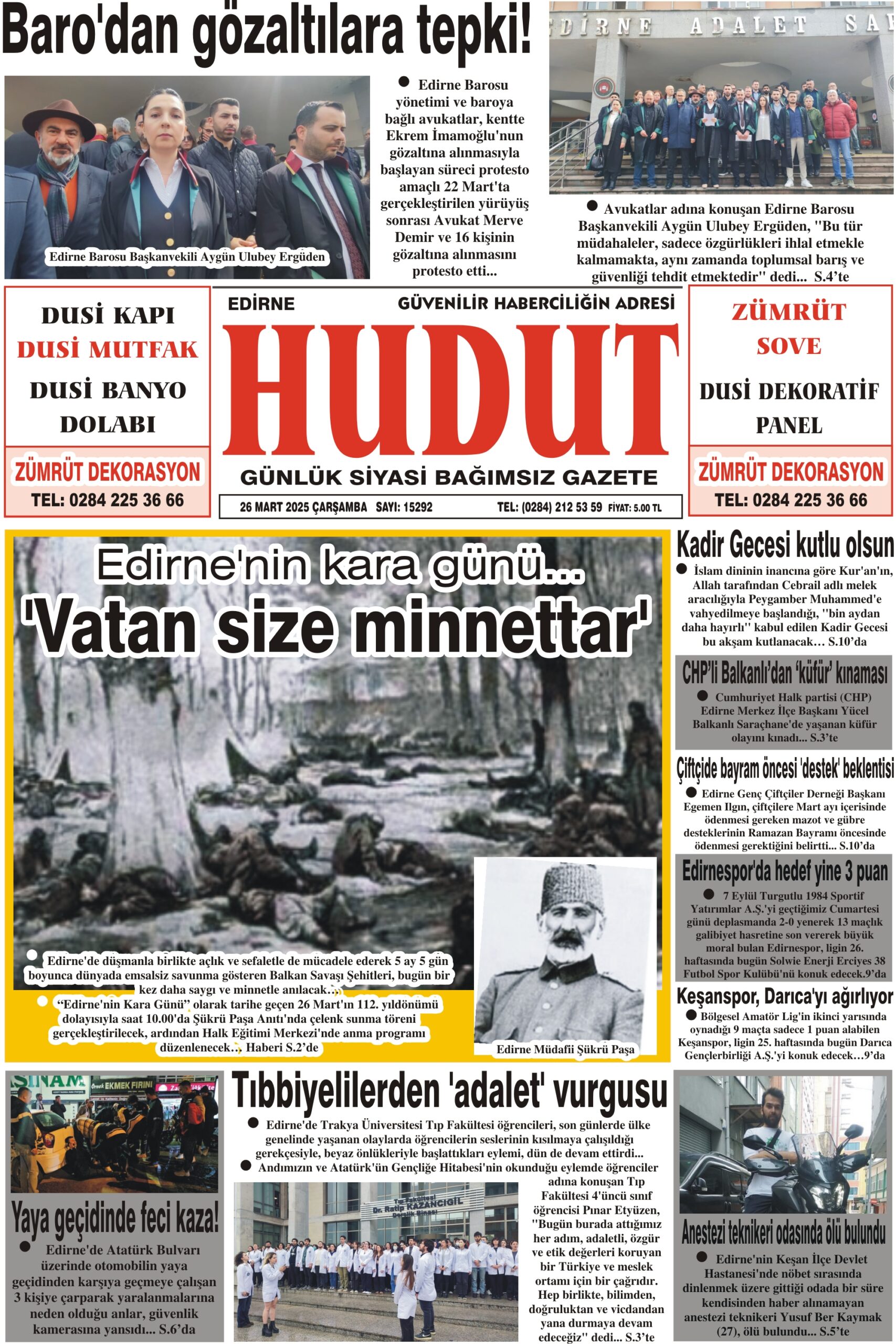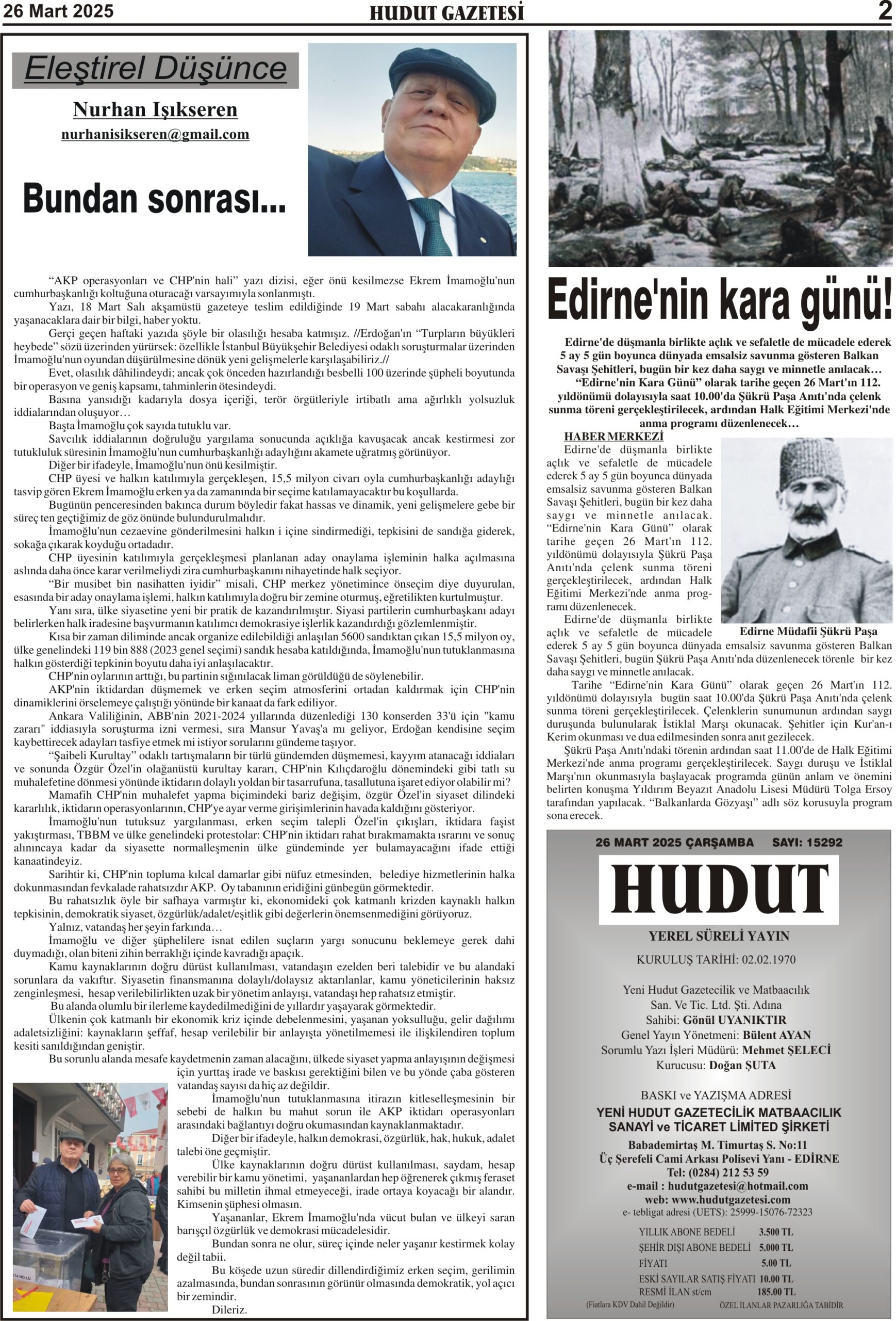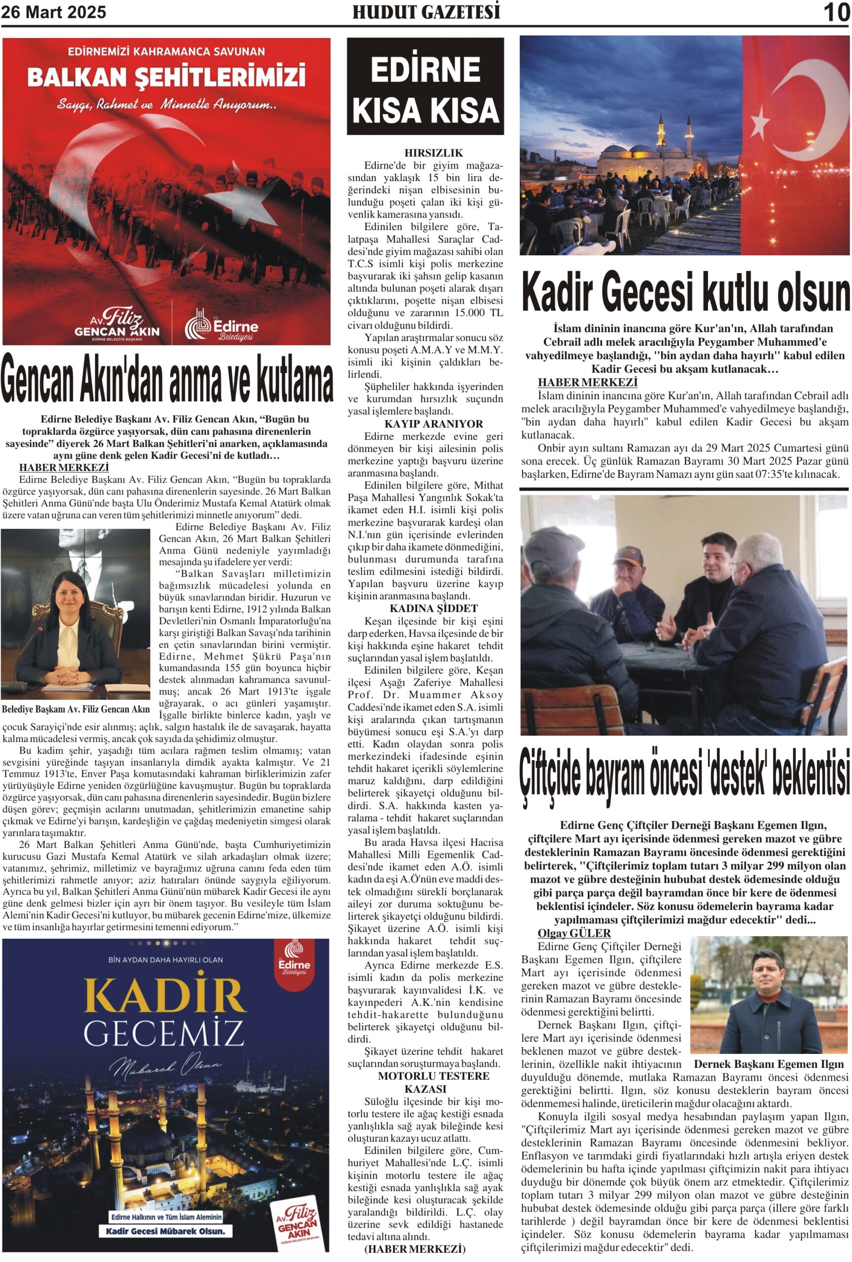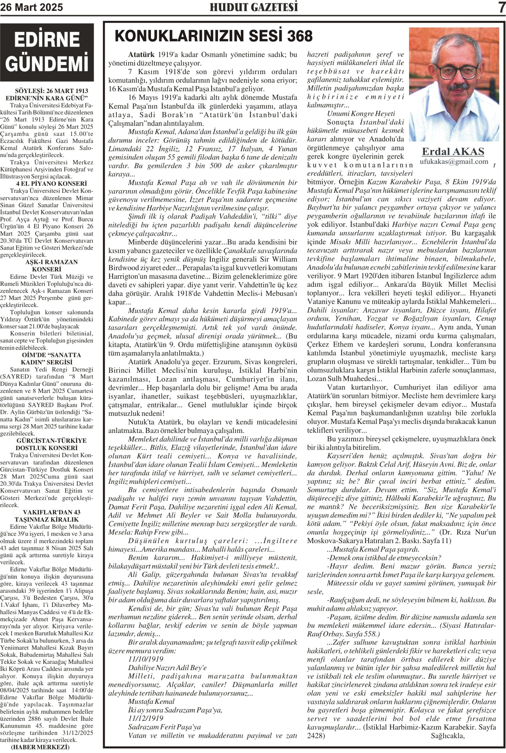 26 Mart 2025 Çarşamba Hudut Gazetesi