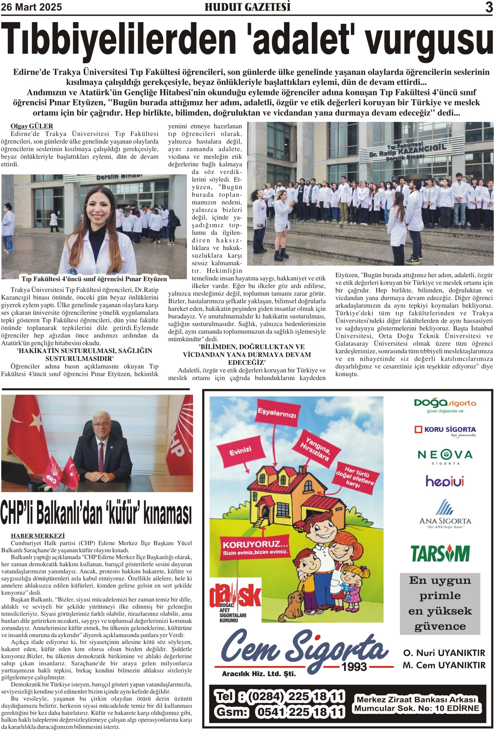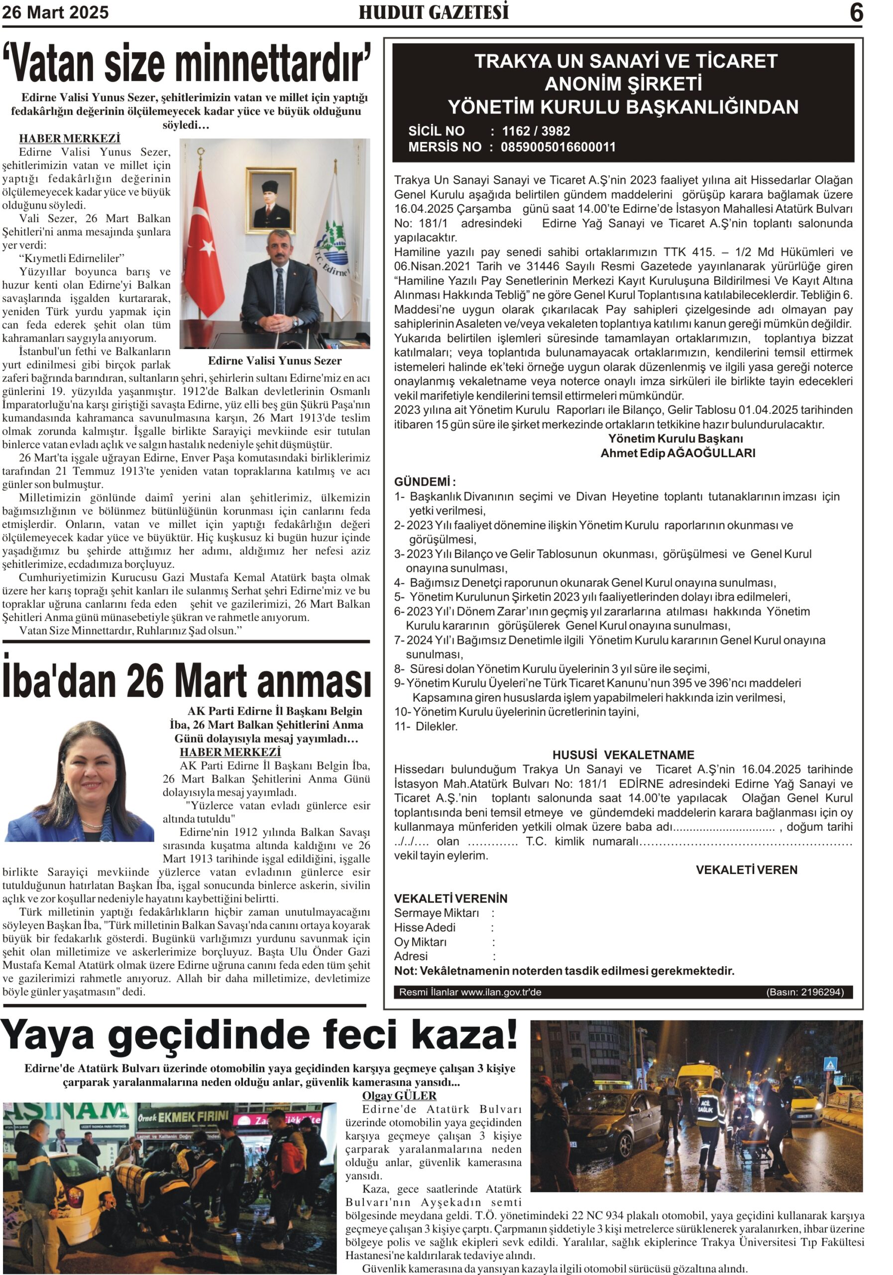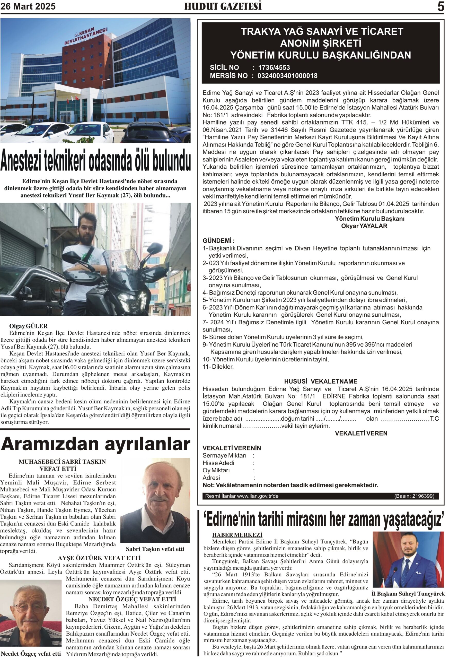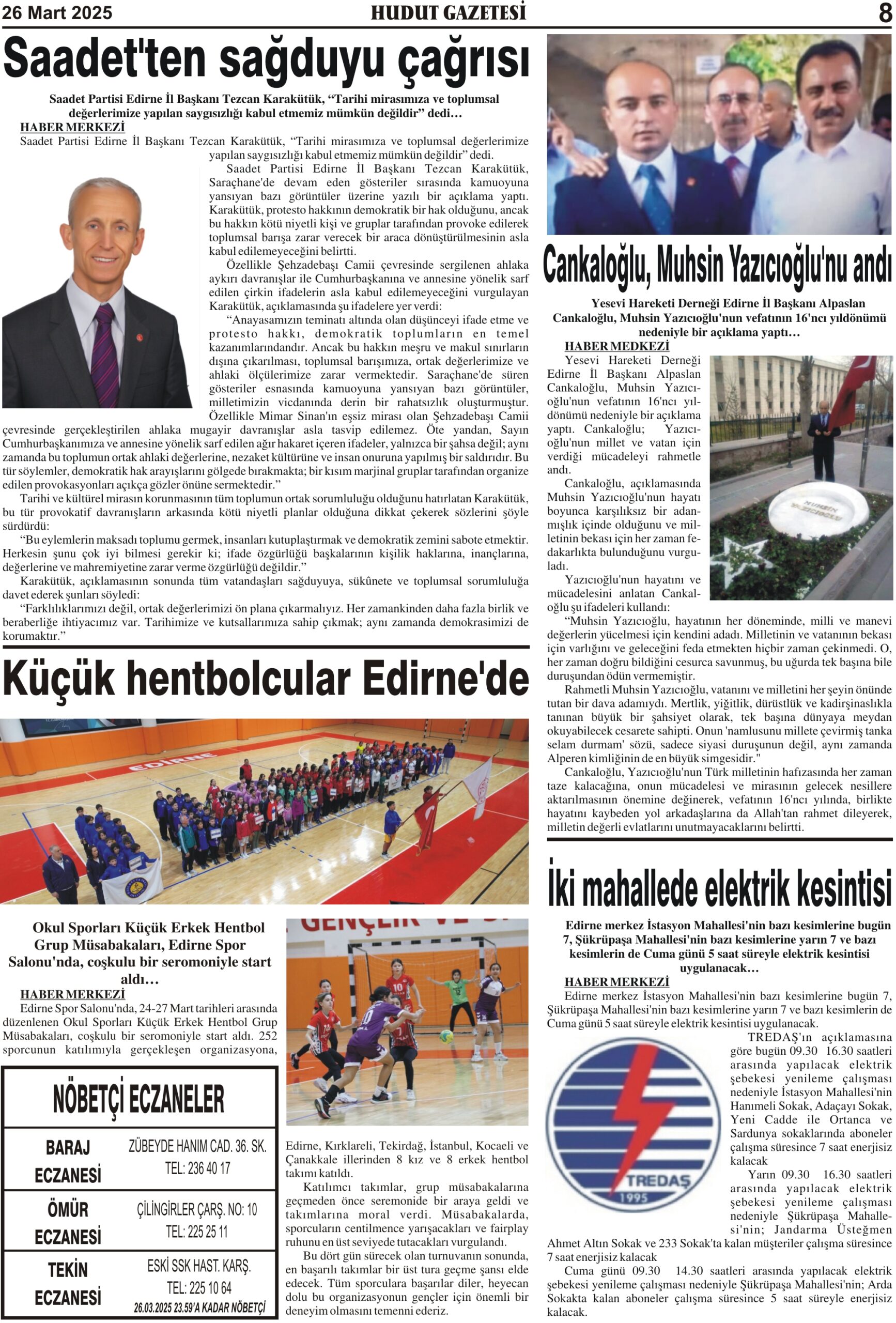 26 Mart 2025 Çarşamba Hudut Gazetesi