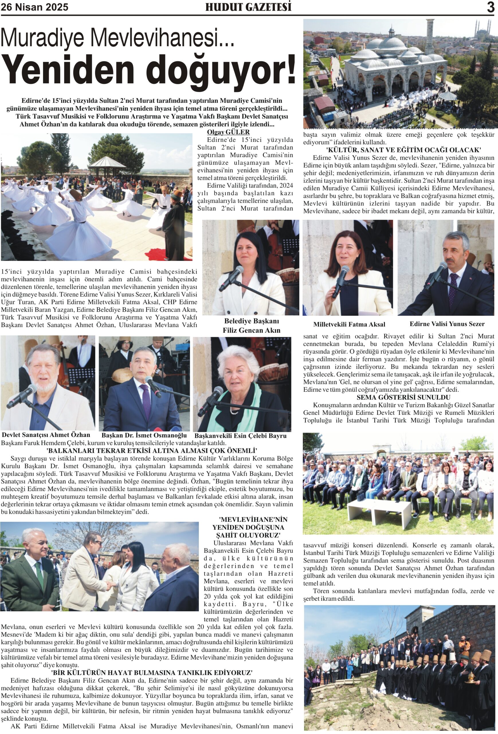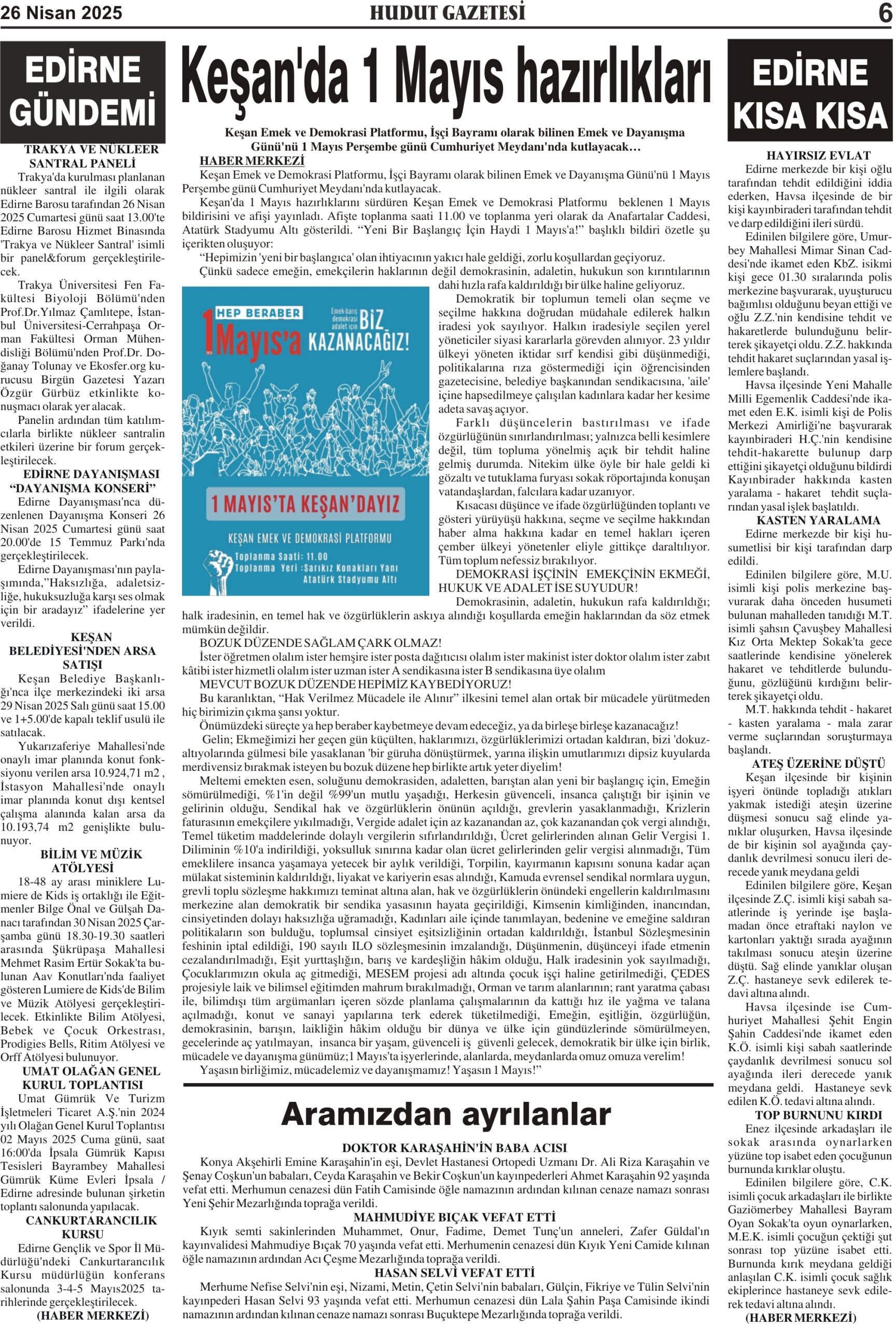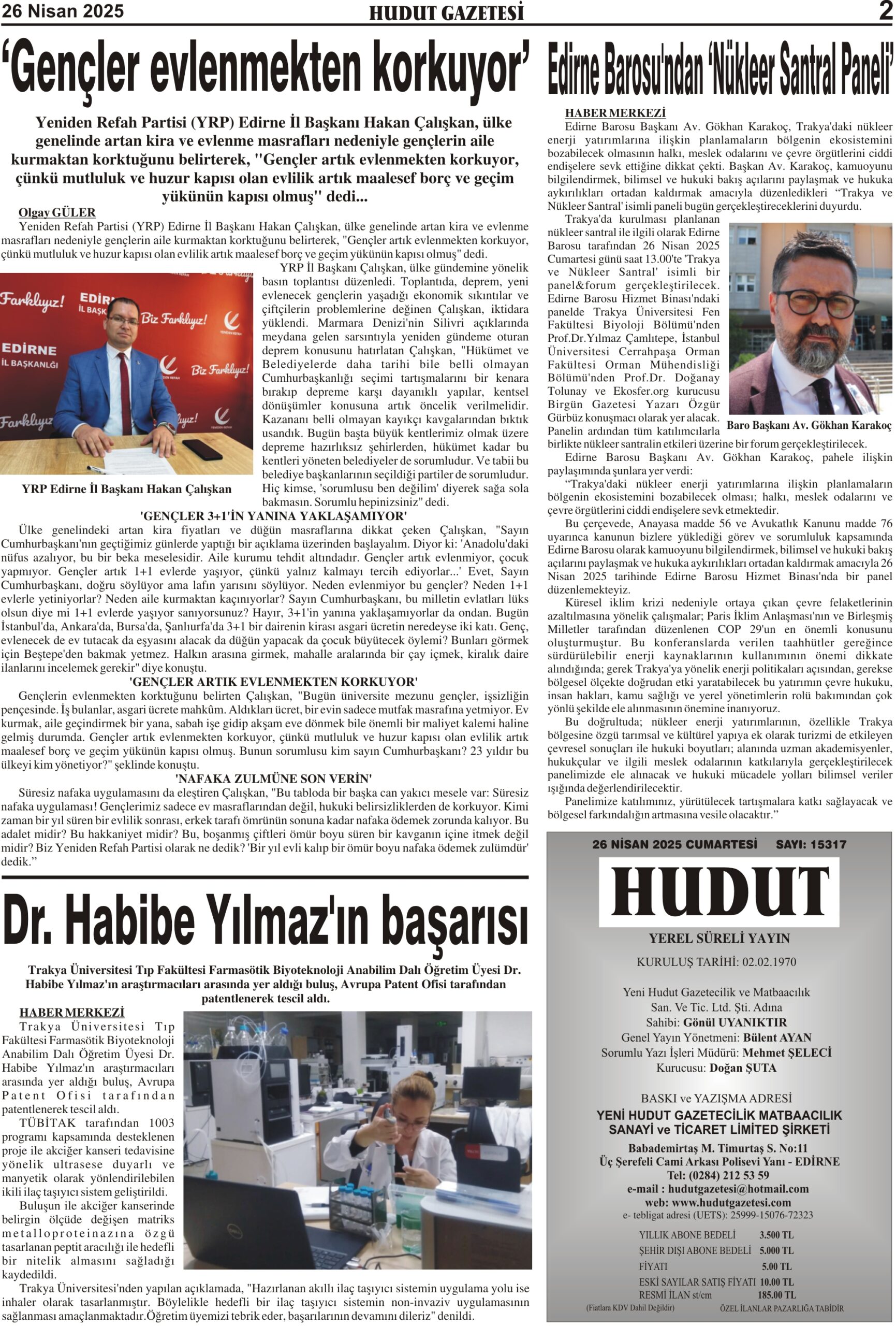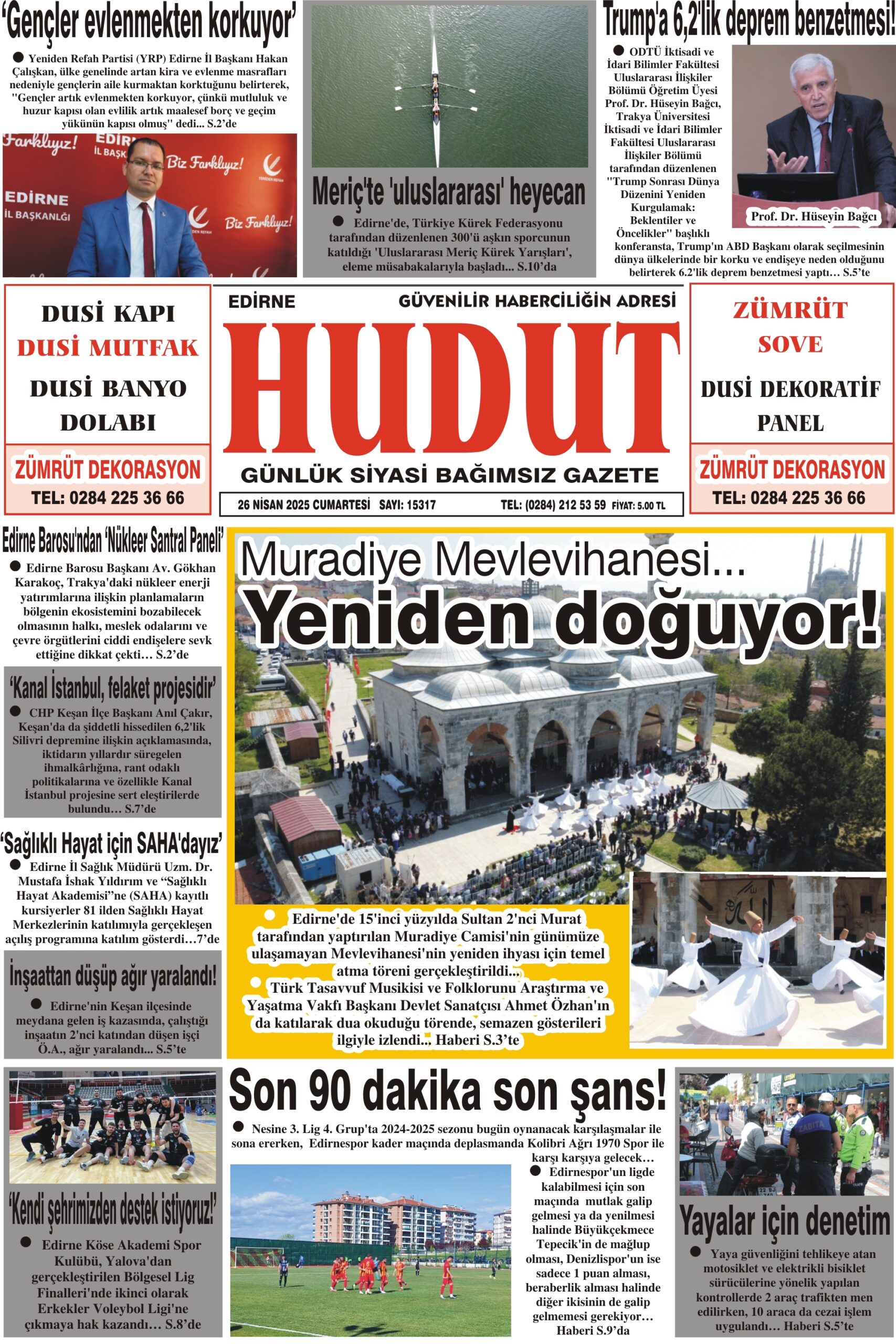 26 Nisan 2025 Cumartesi Hudut Gazetesi