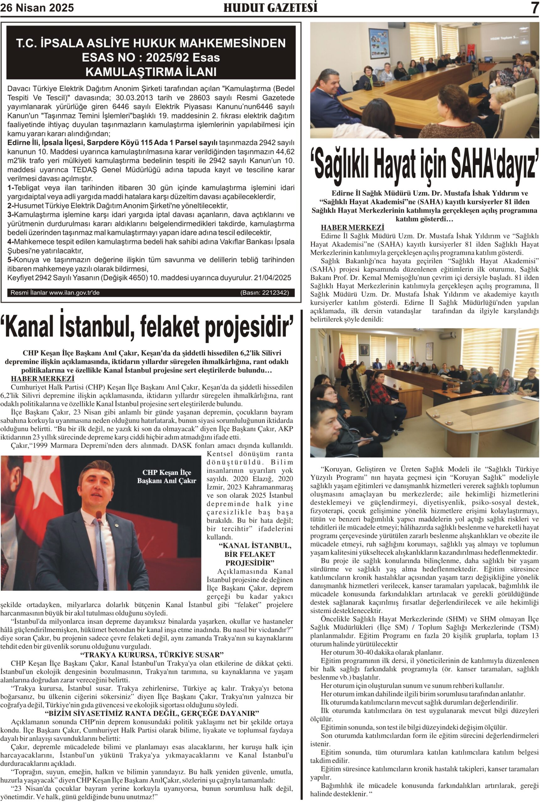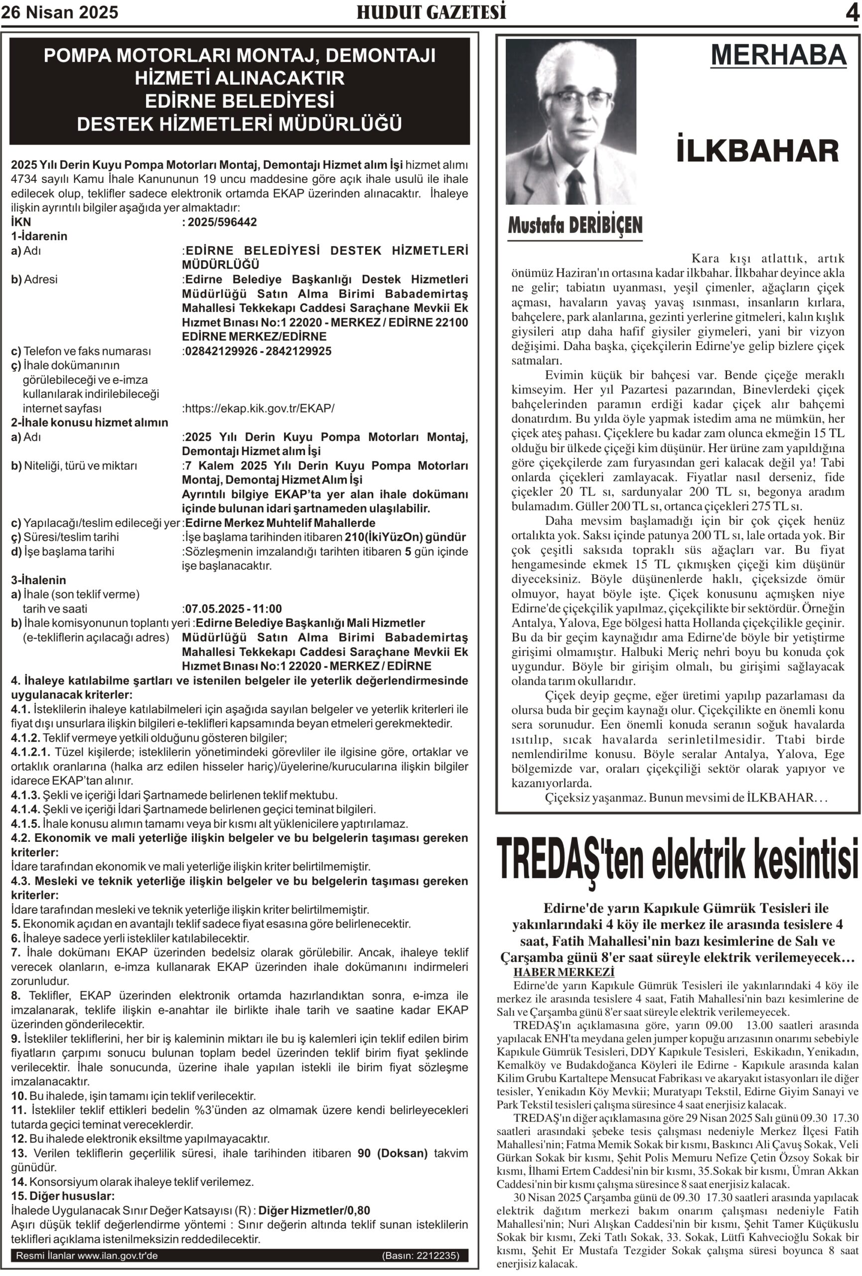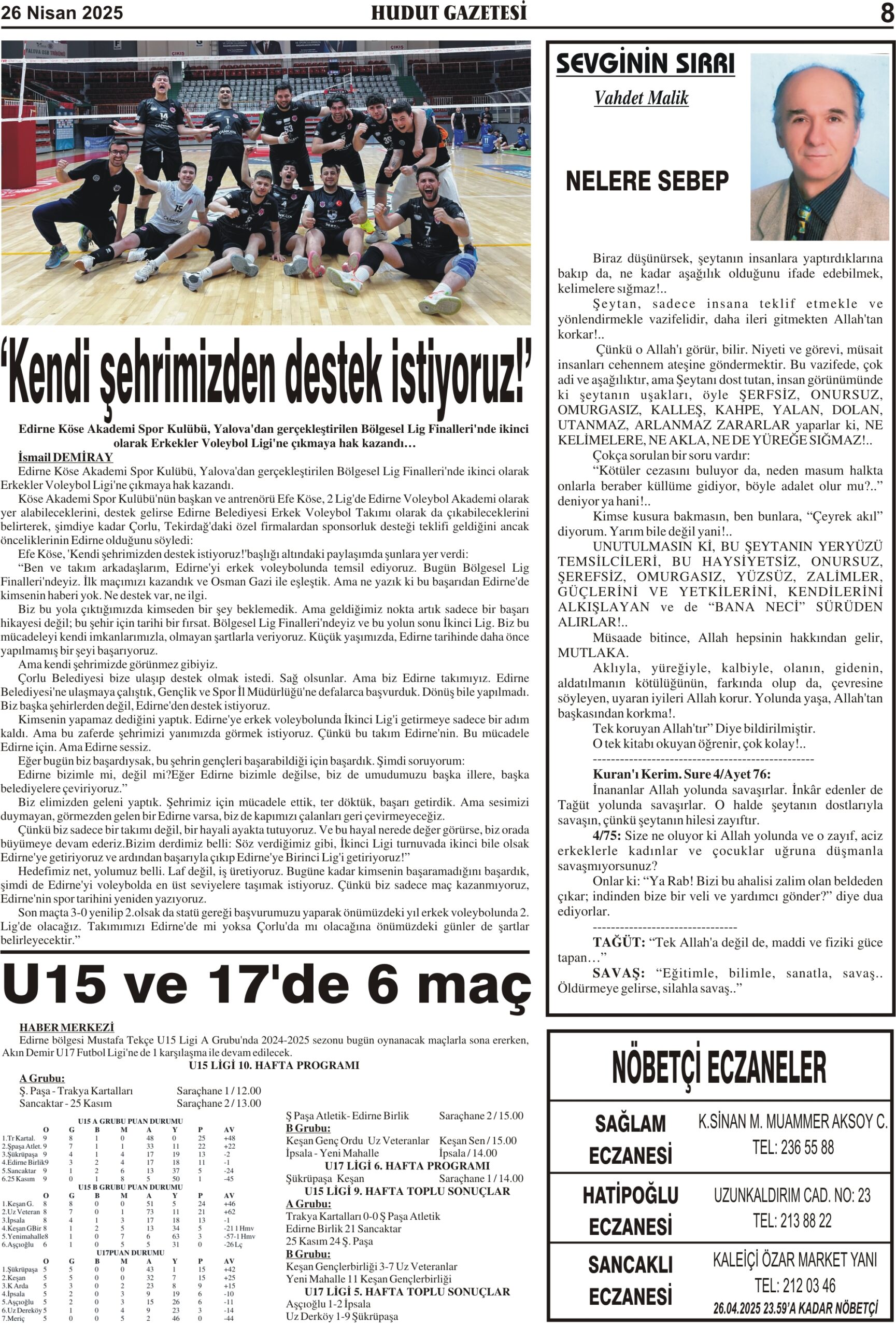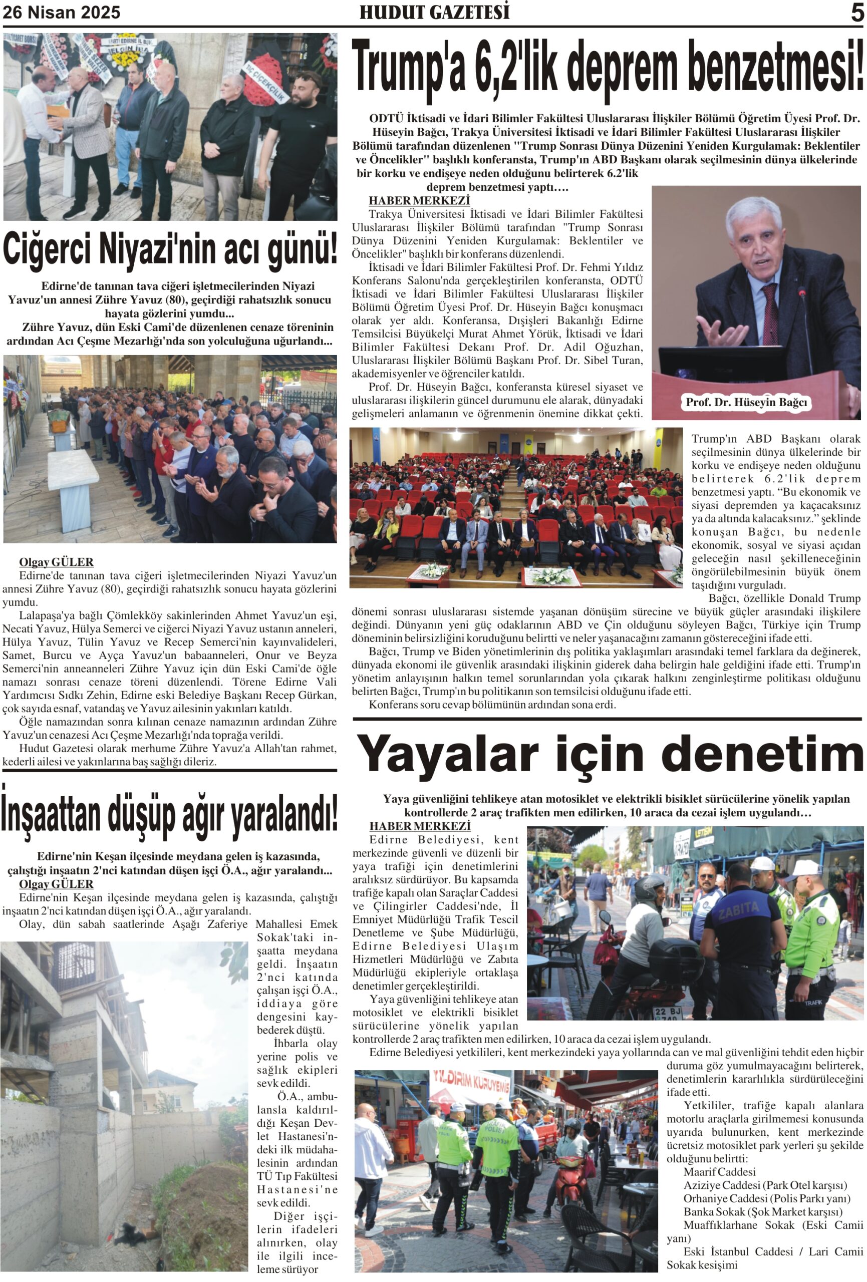 26 Nisan 2025 Cumartesi Hudut Gazetesi