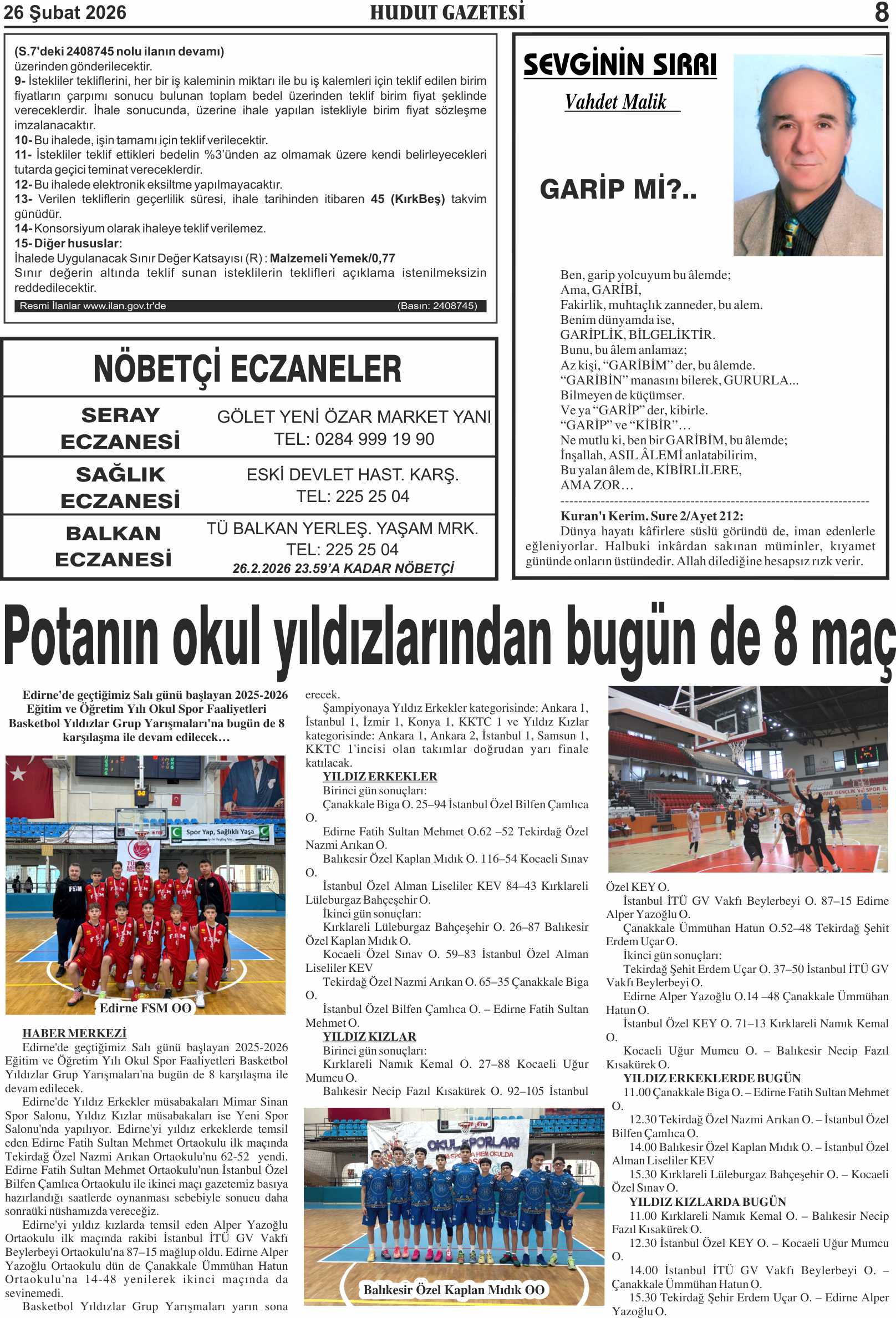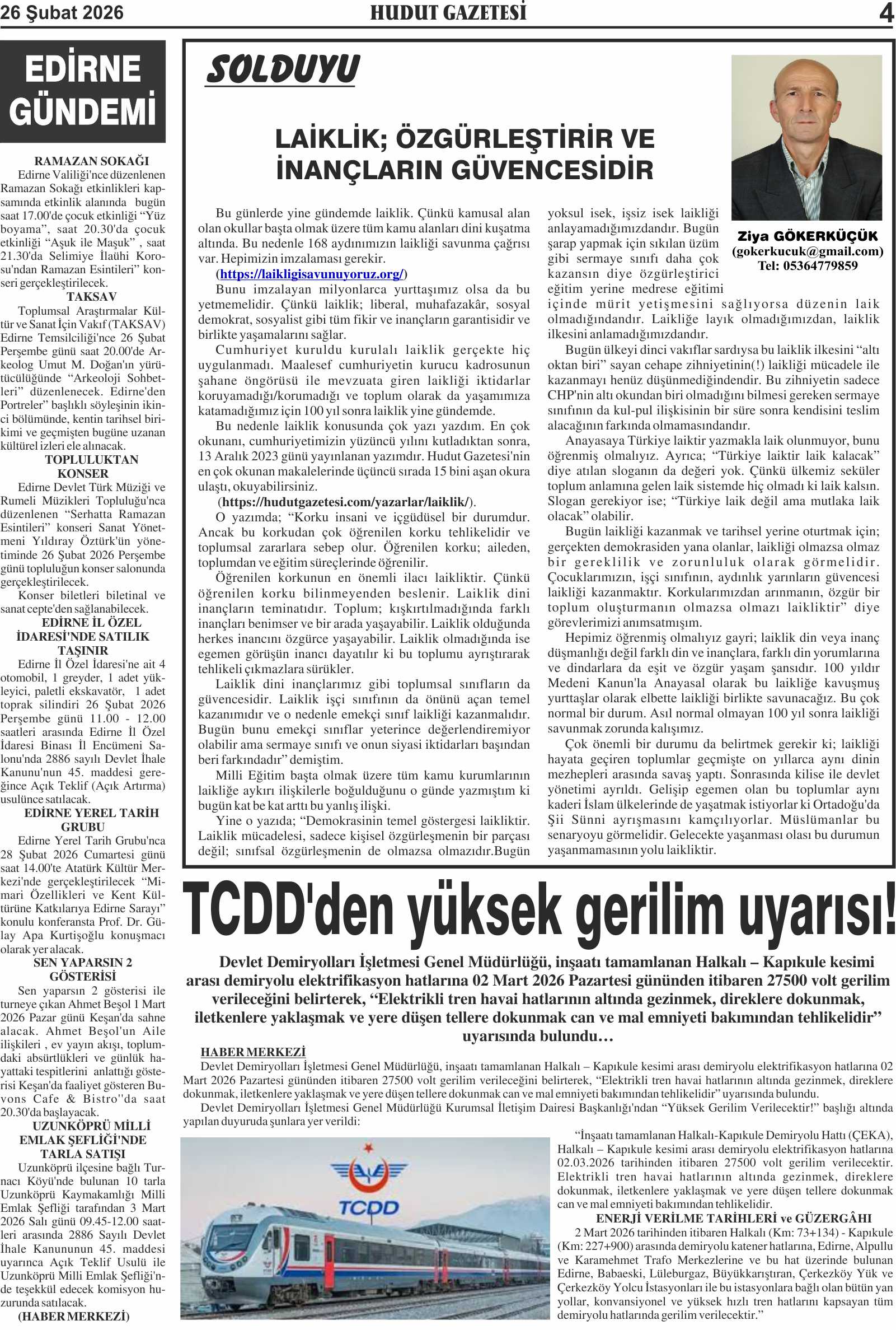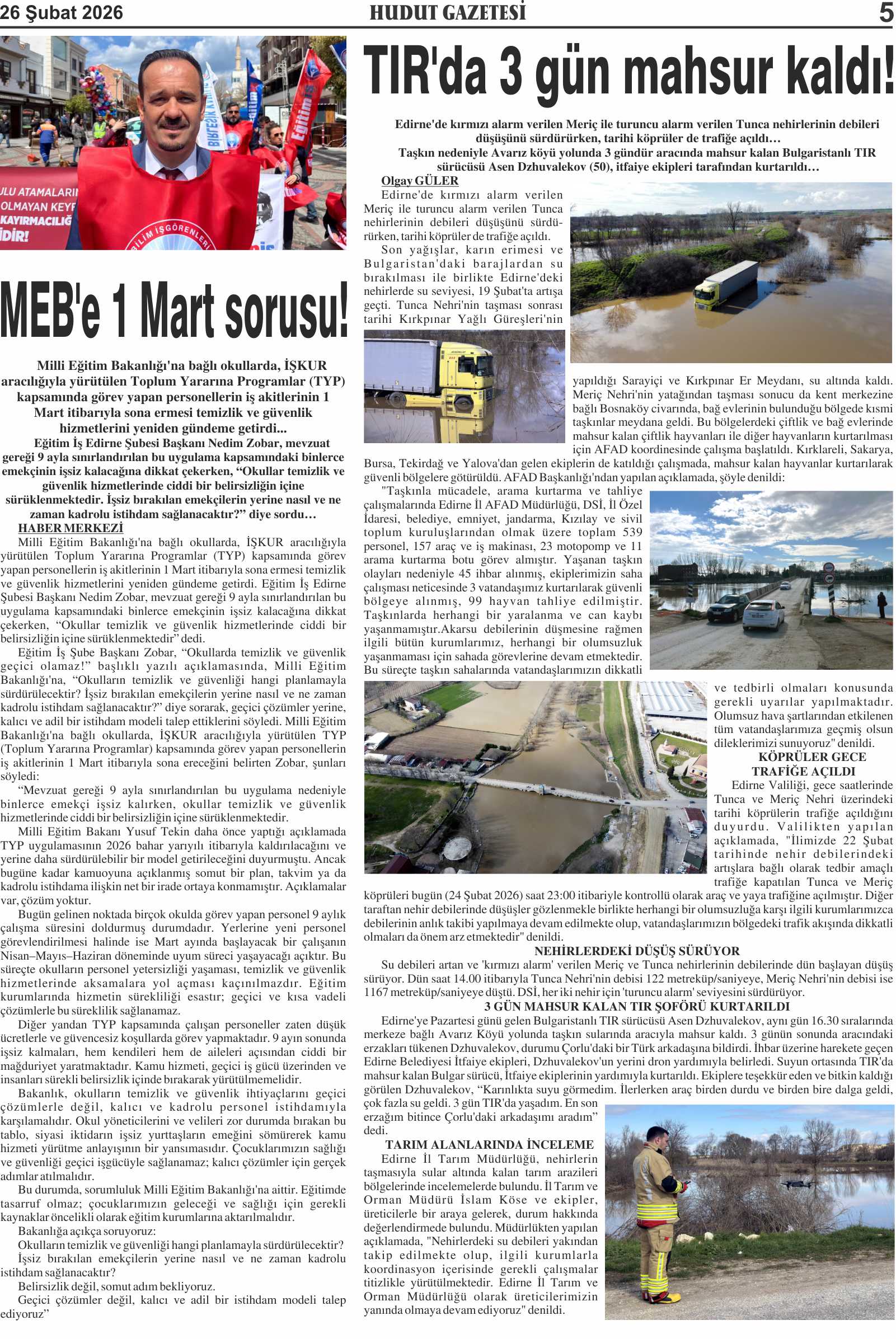 26 Şubat 2026 Perşembe Hudut Gazetesi