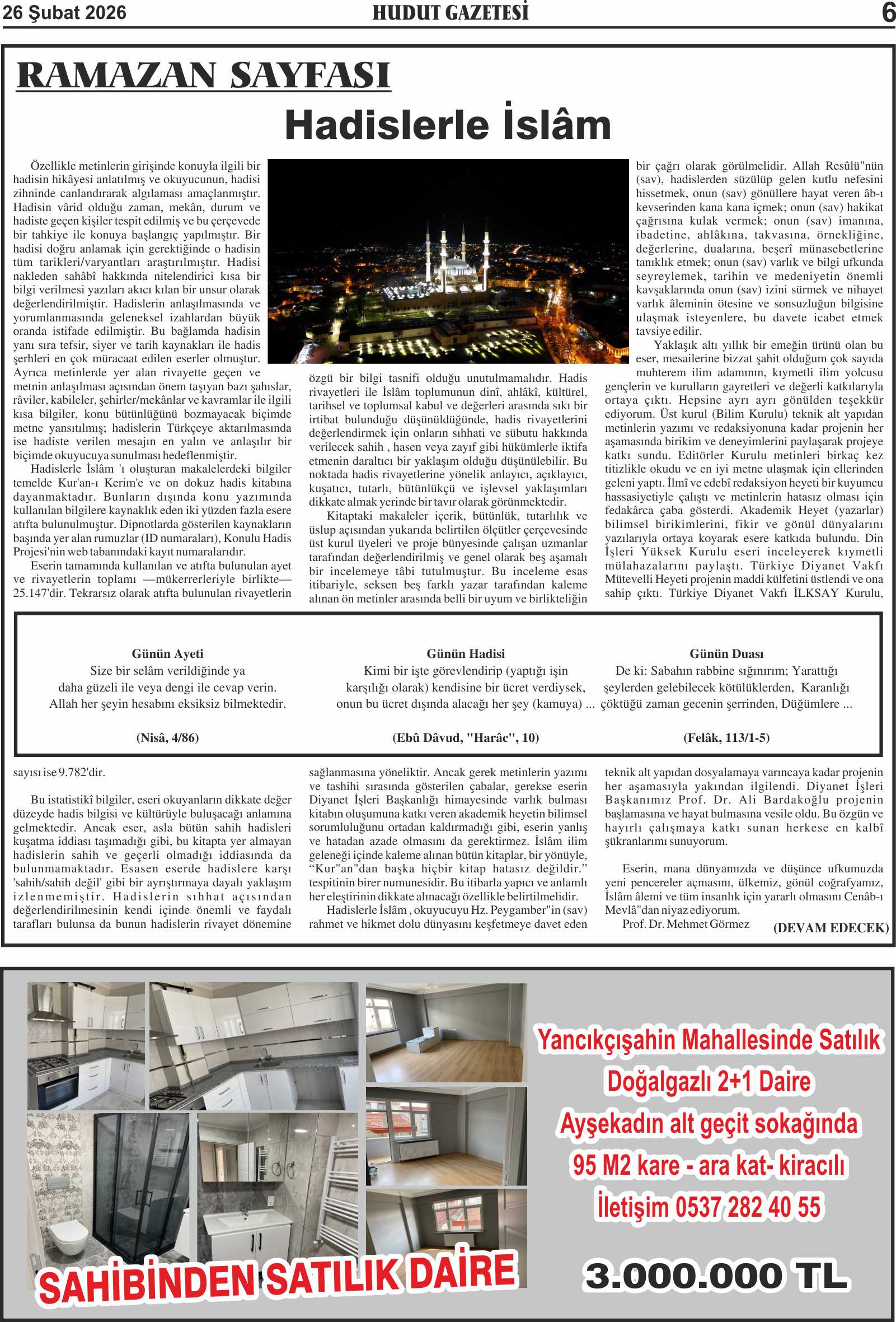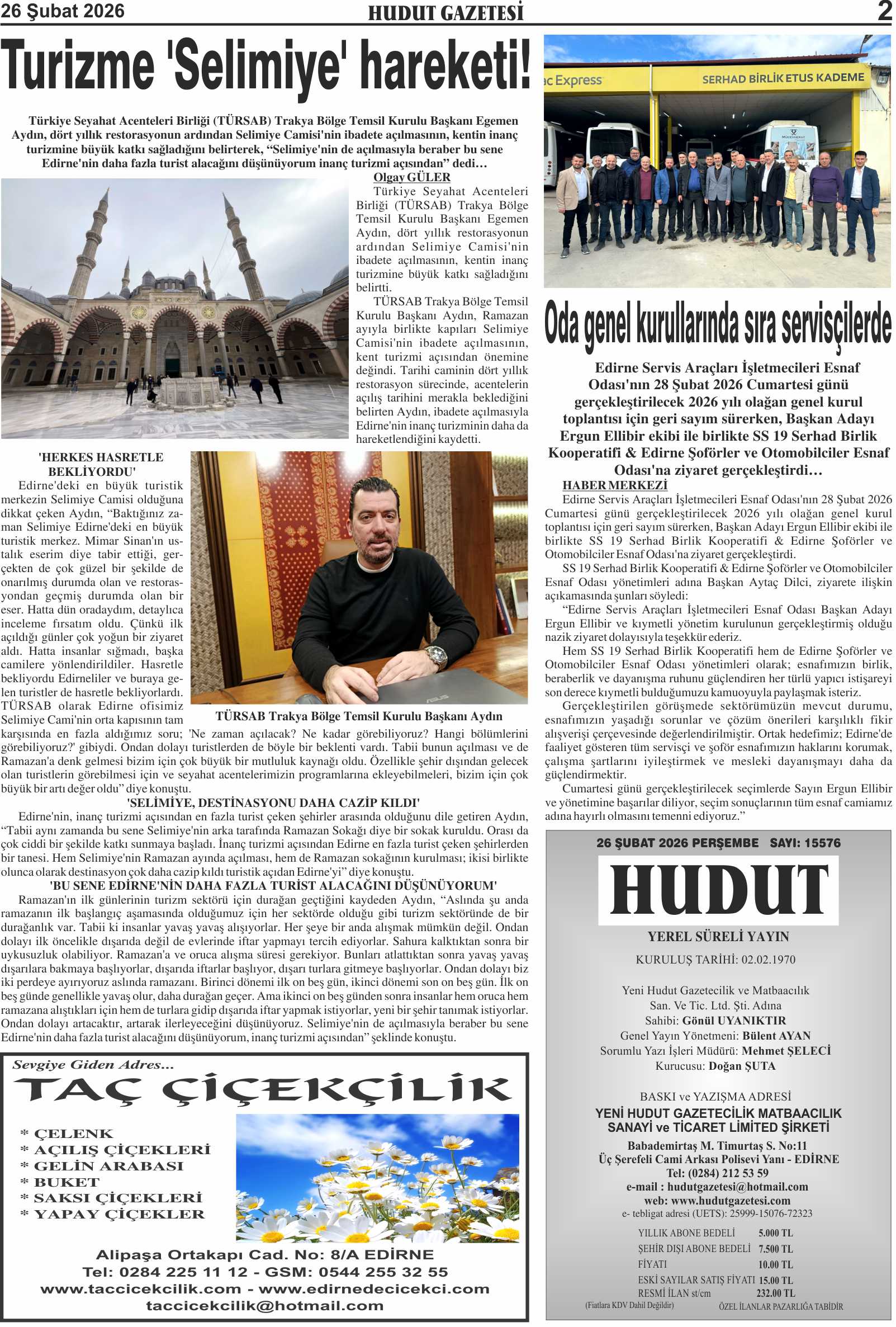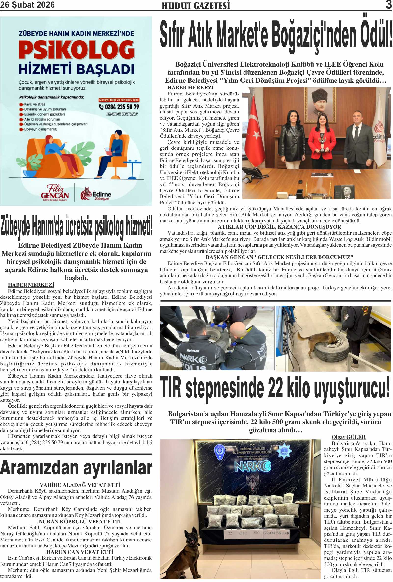 26 Şubat 2026 Perşembe Hudut Gazetesi