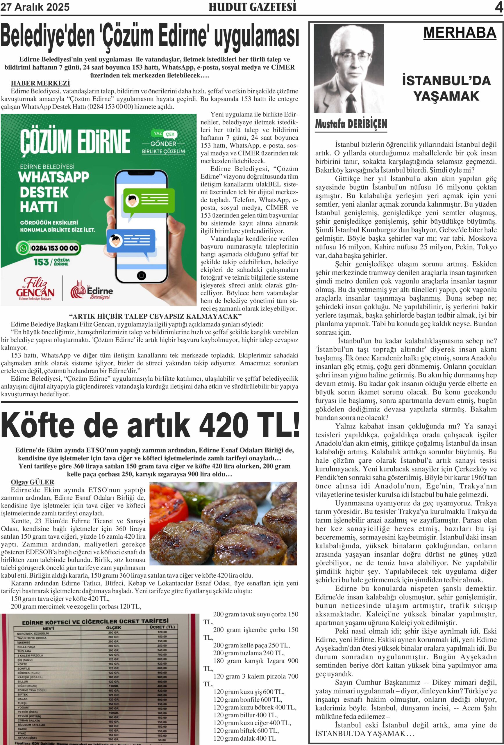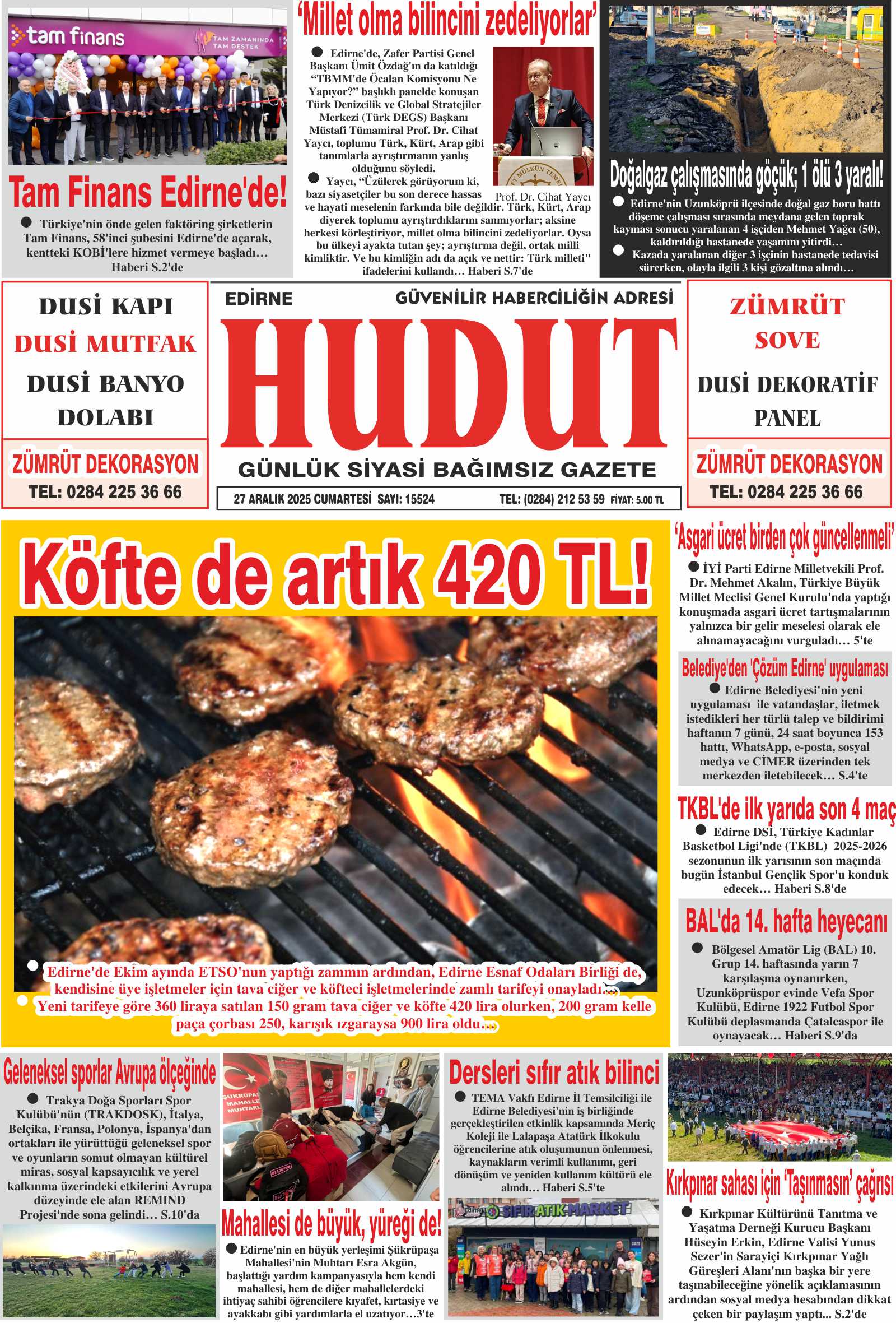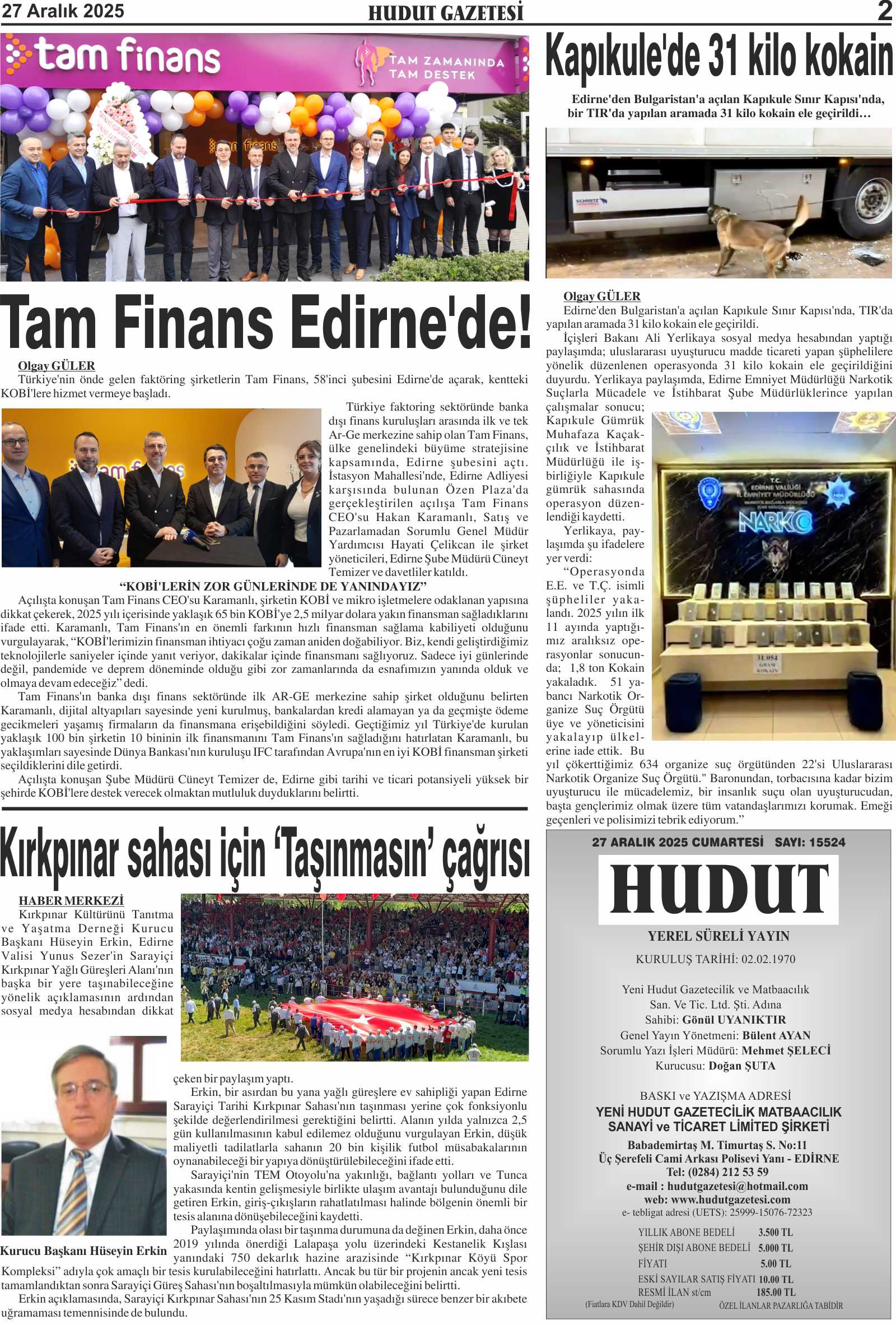 27 Aralık 2025 Cumartesi Hudut Gazetesi