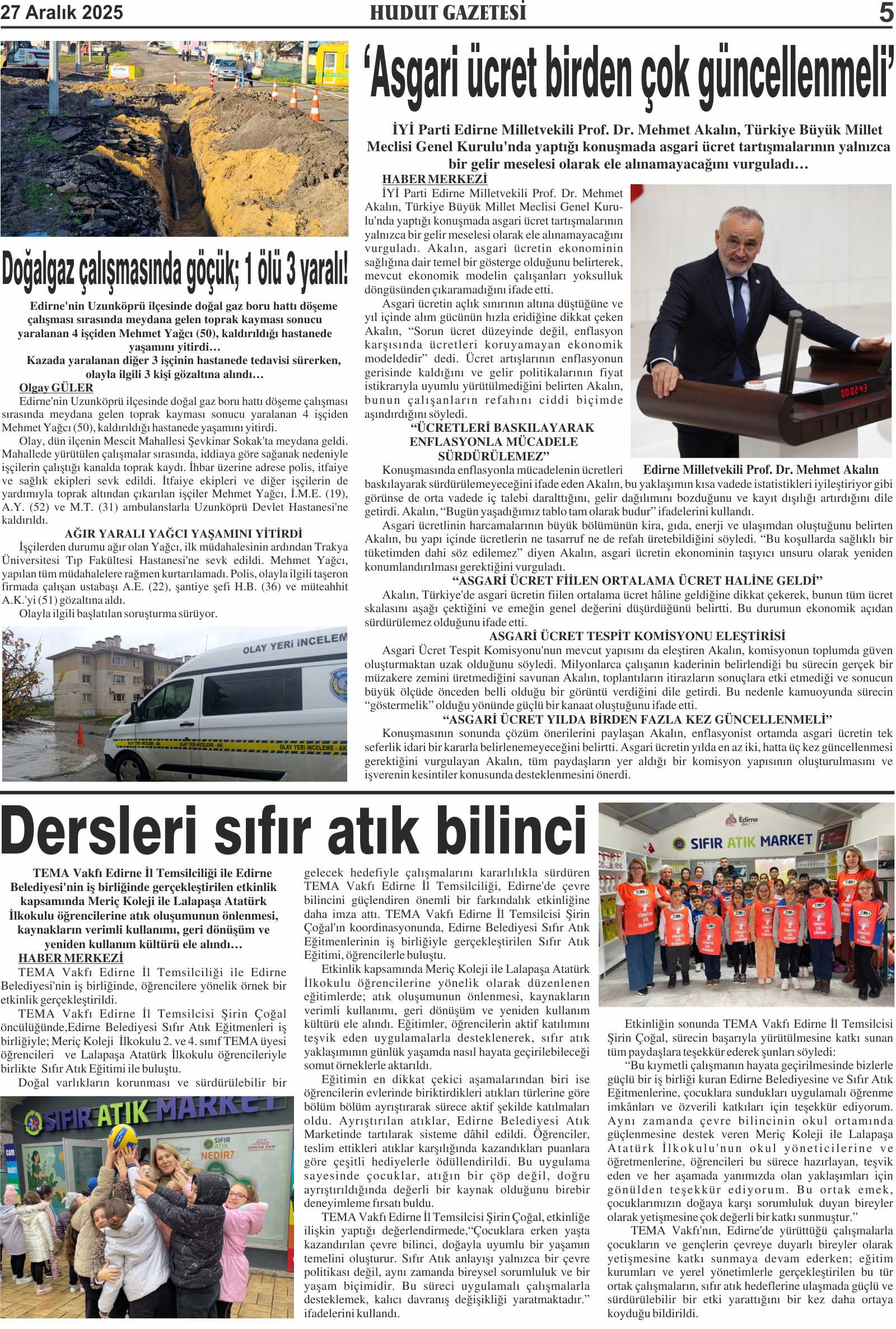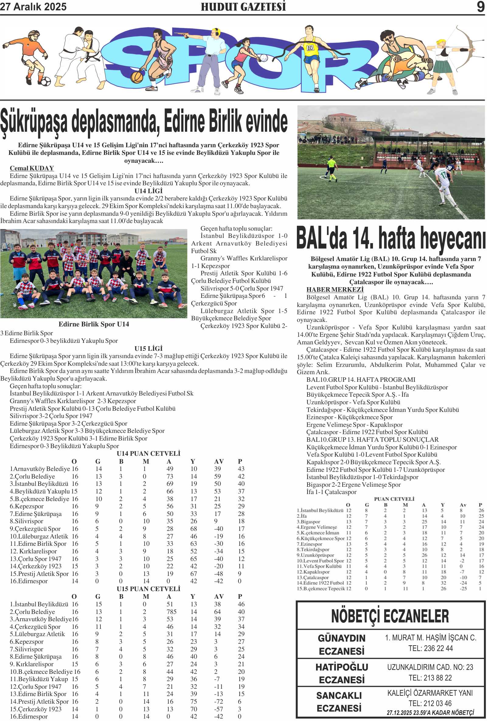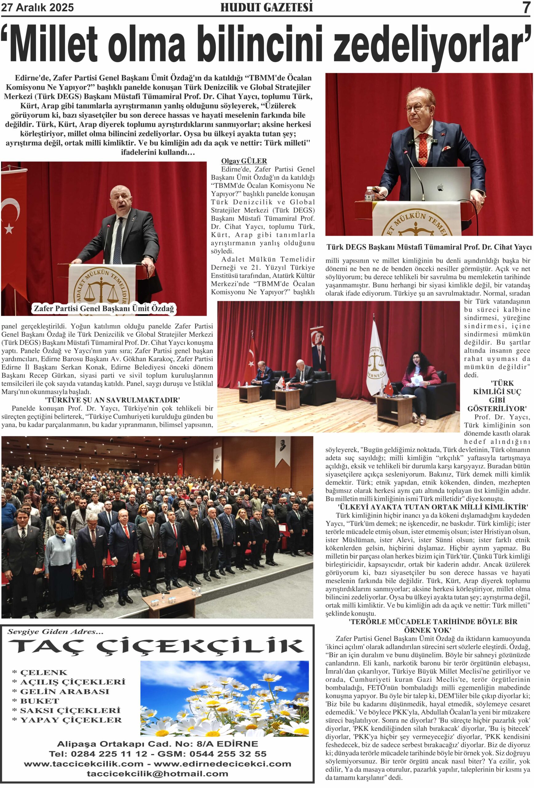 27 Aralık 2025 Cumartesi Hudut Gazetesi