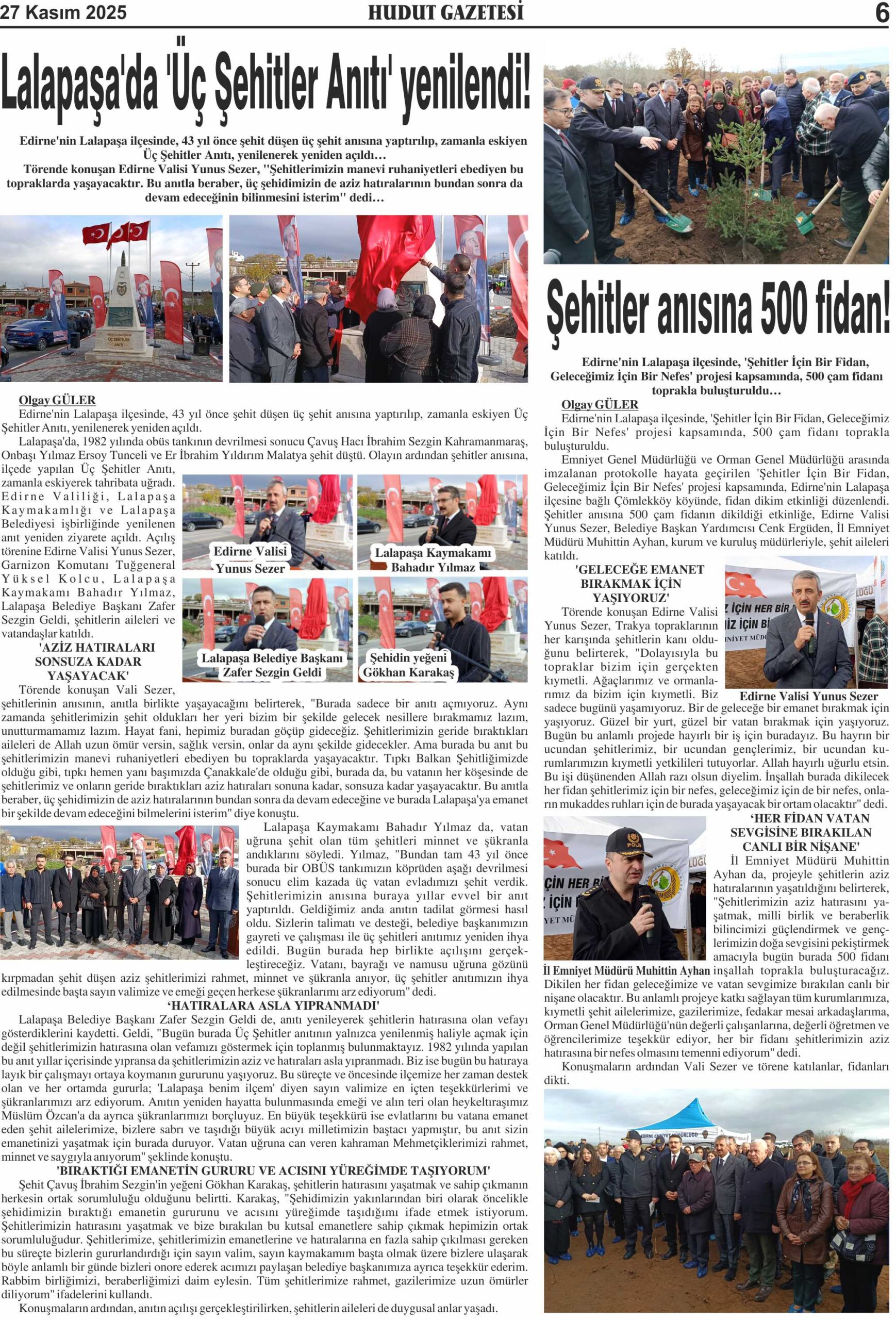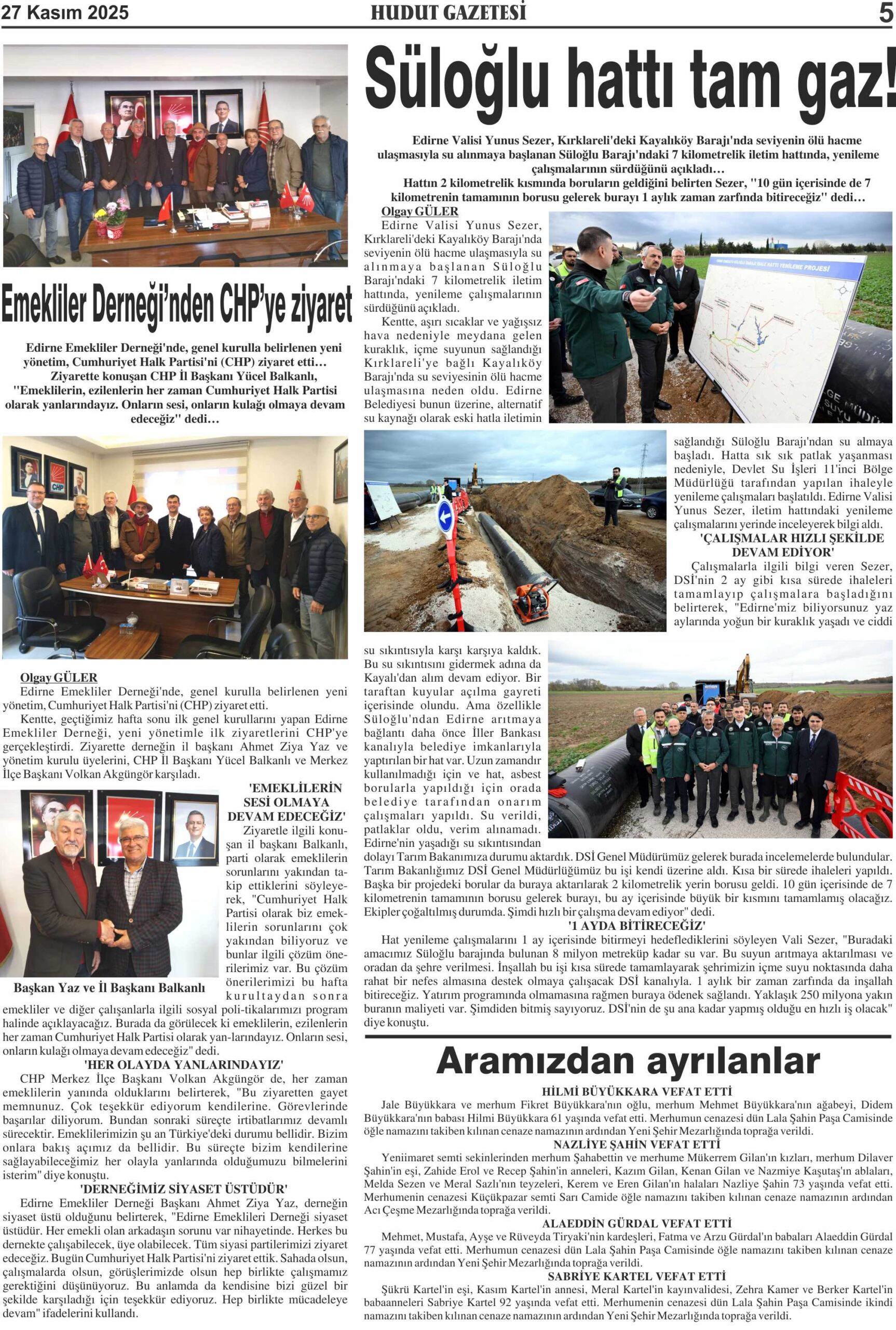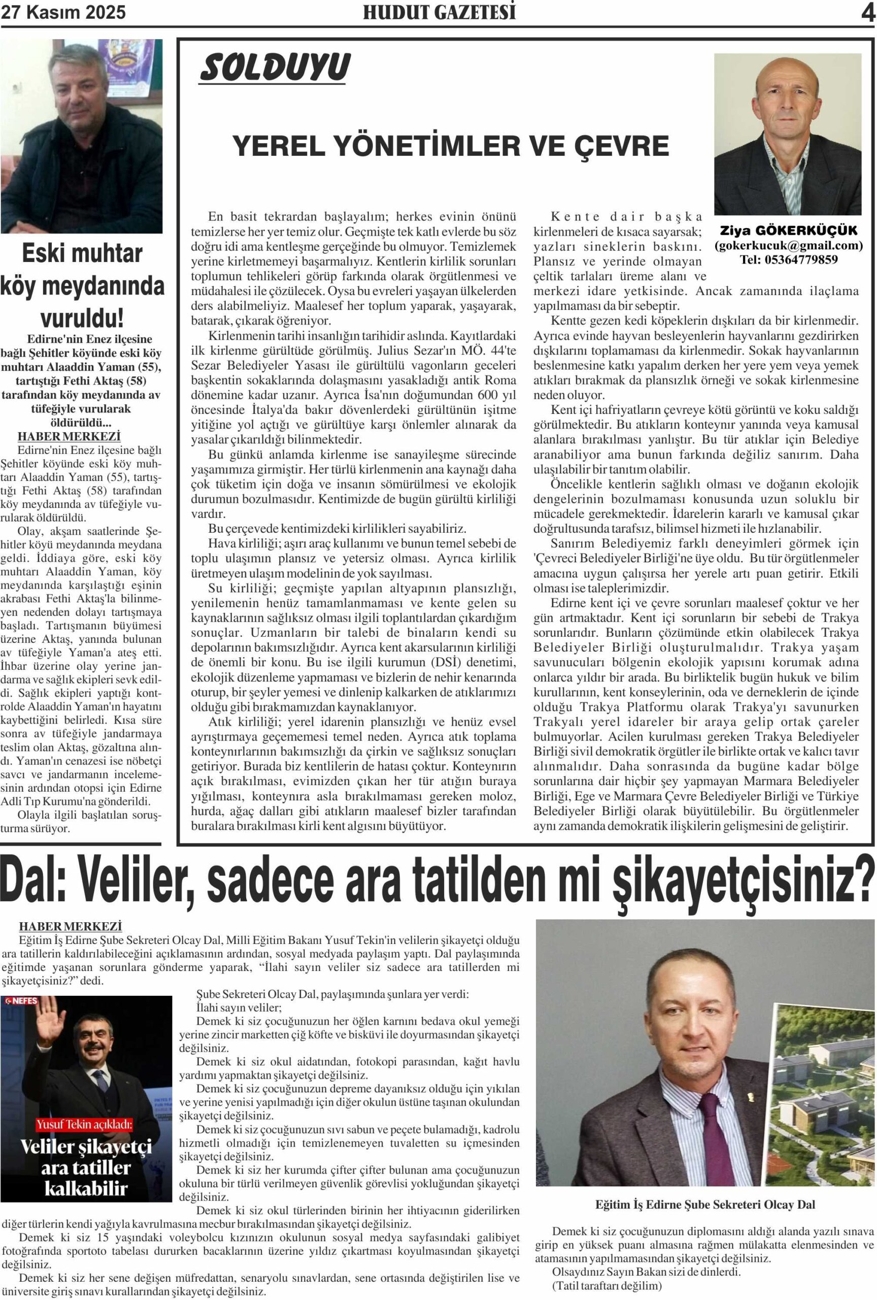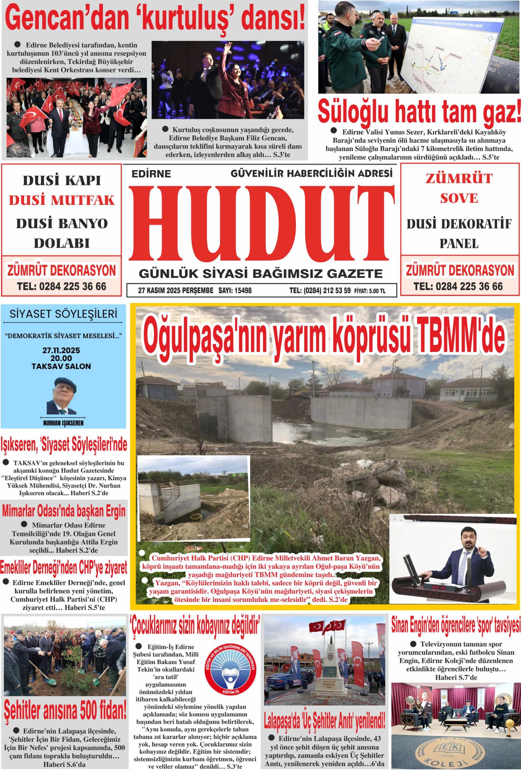 27 Kasım 2025 Perşembe Hudut Gazetesi