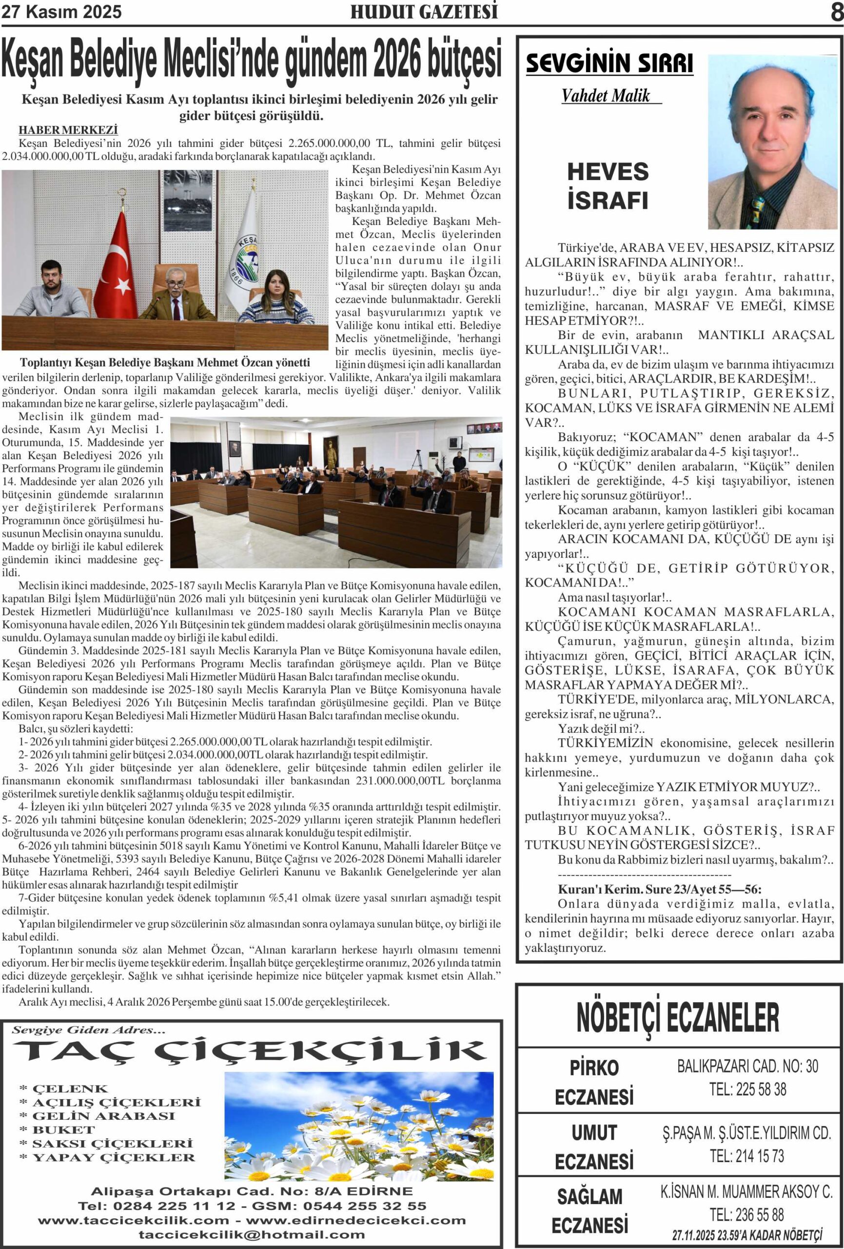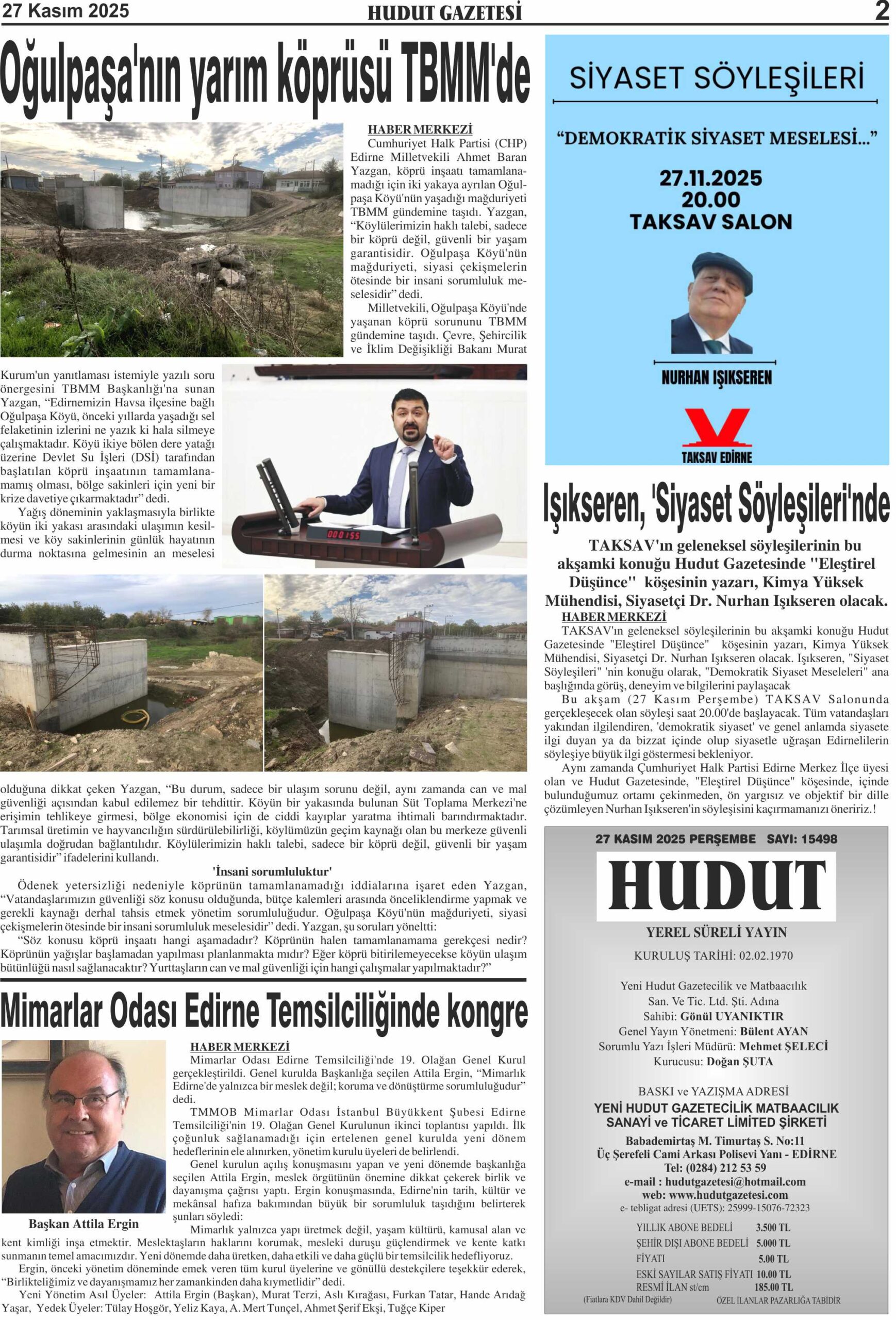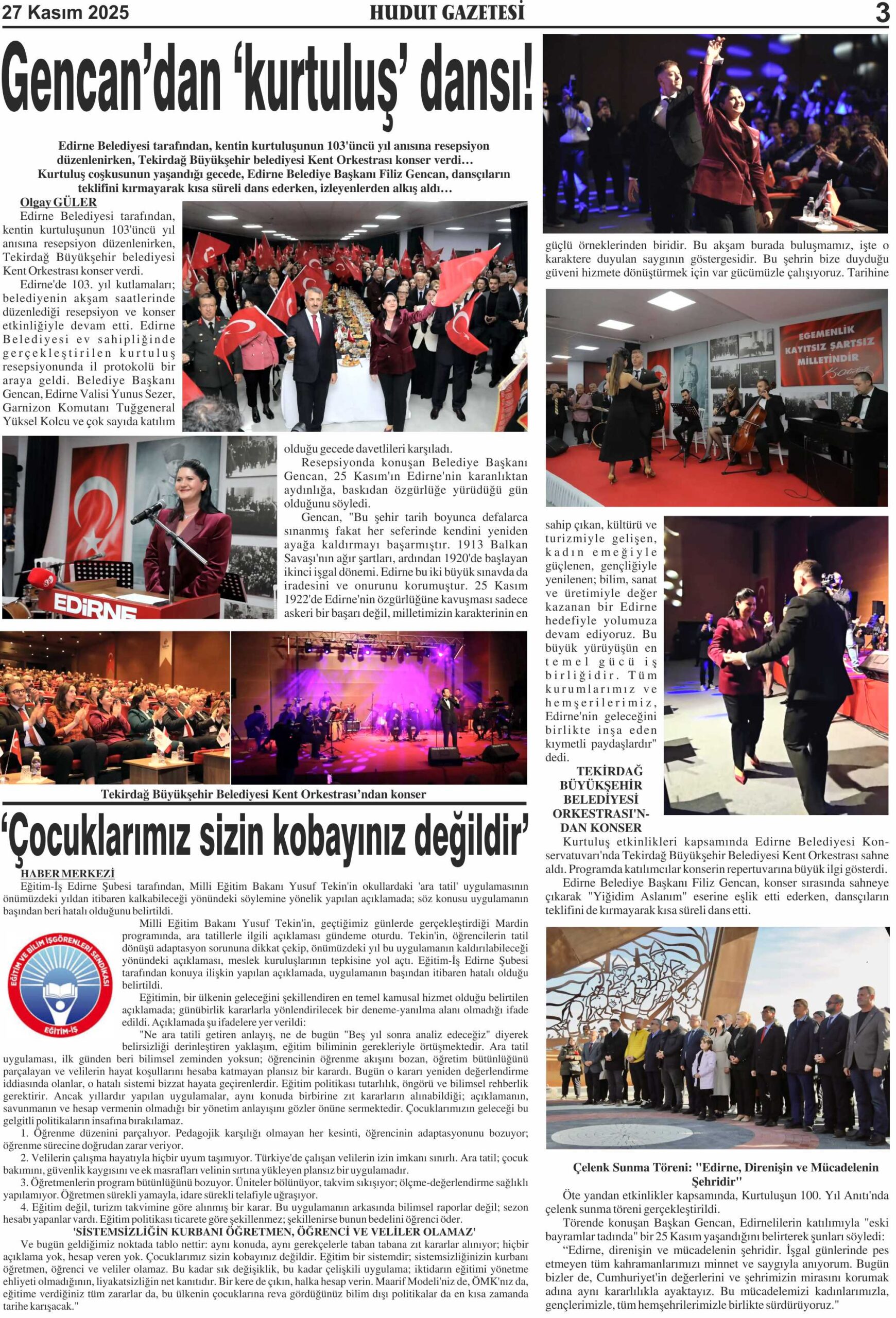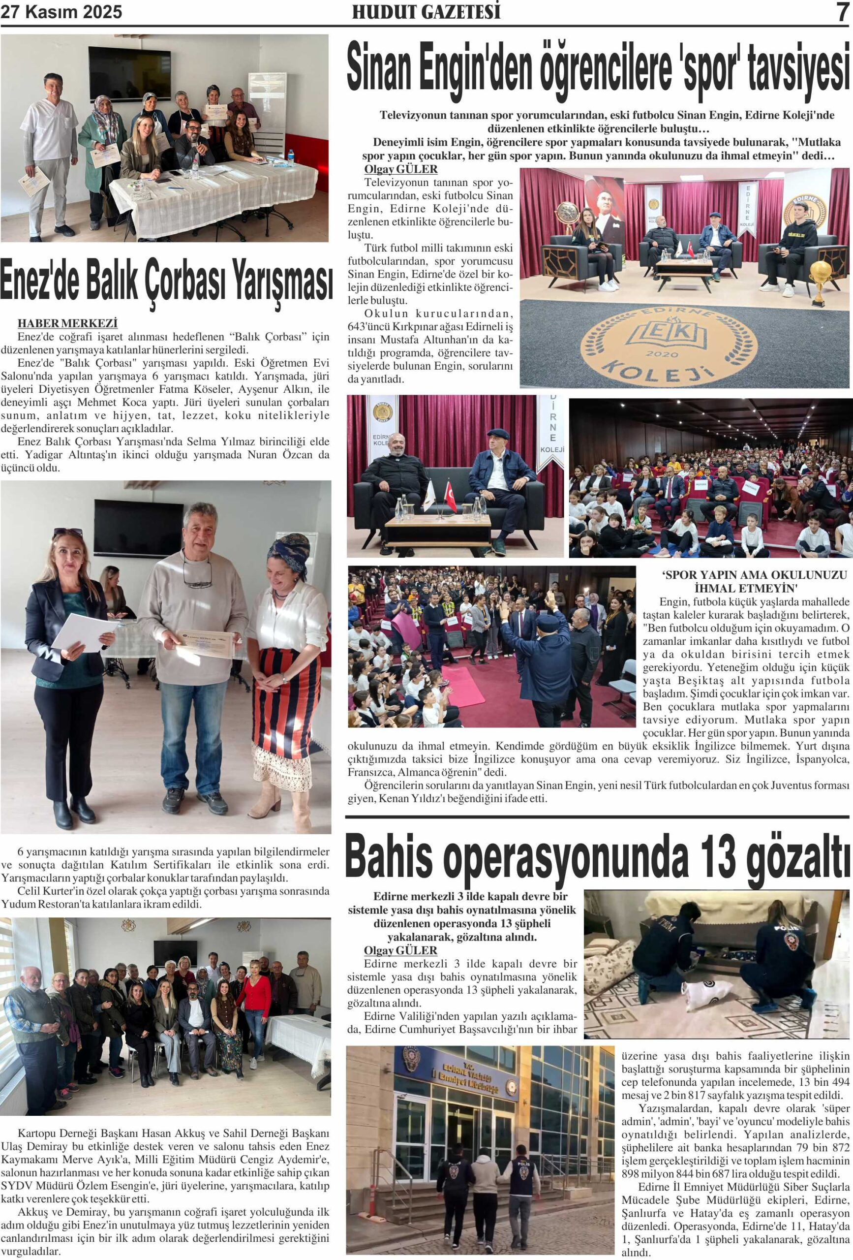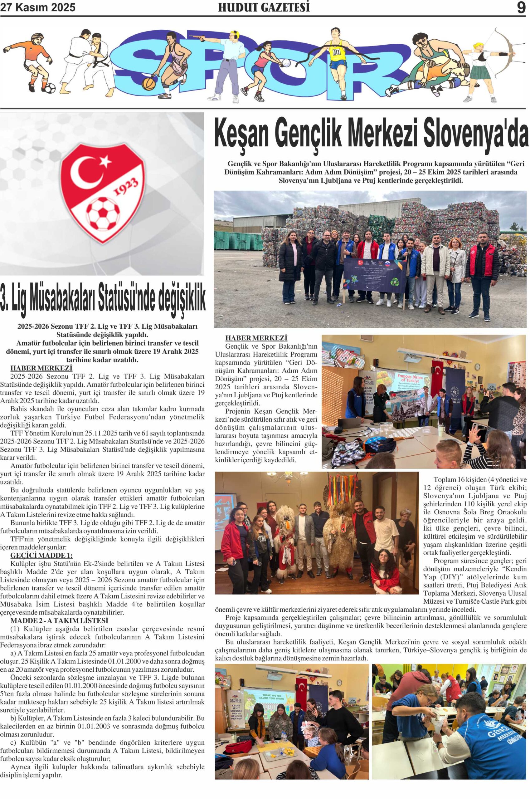27 Kasım 2025 Perşembe Hudut Gazetesi