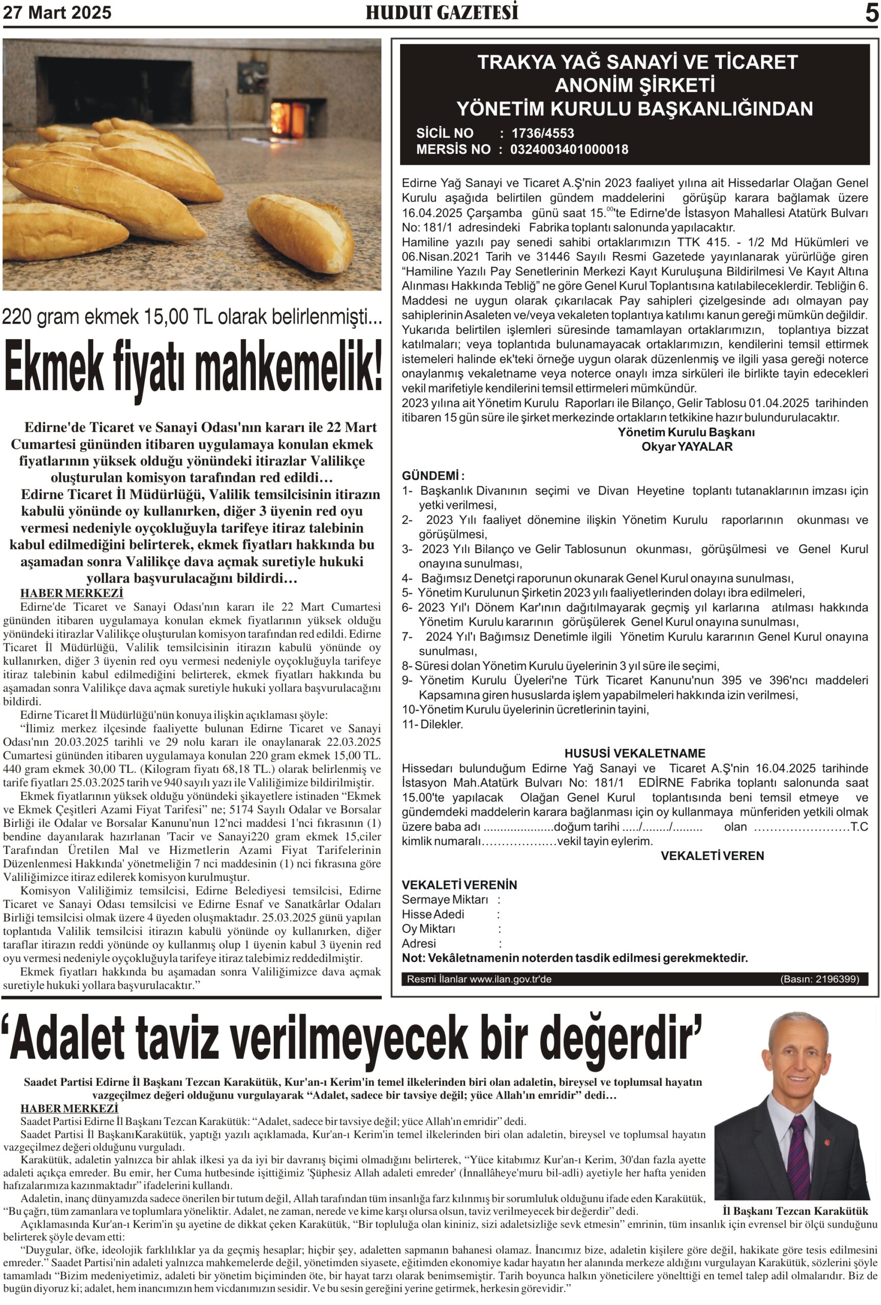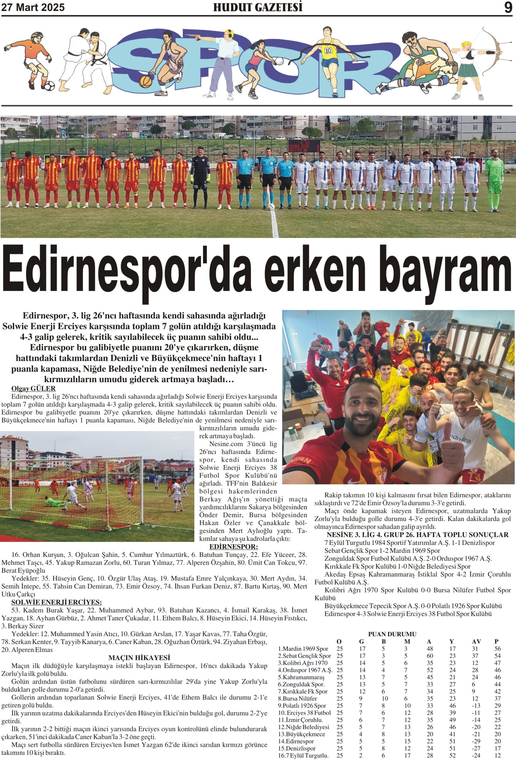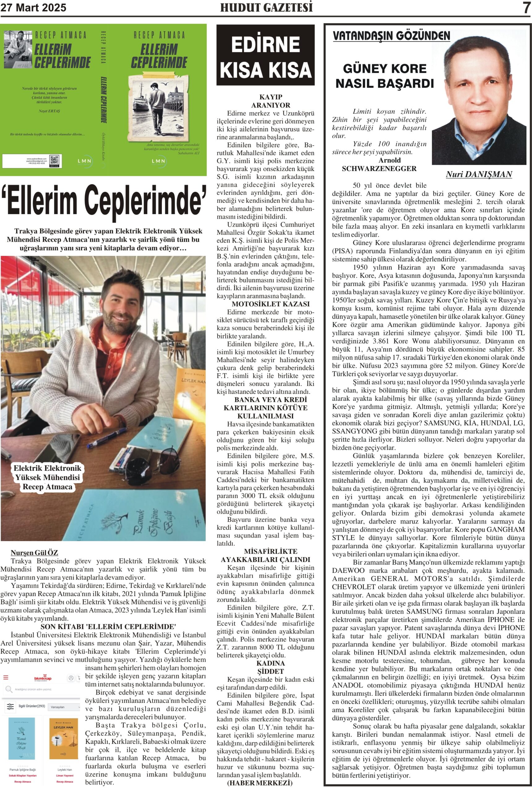 27 Mart 2025 Perşembe Hudut Gazetesi