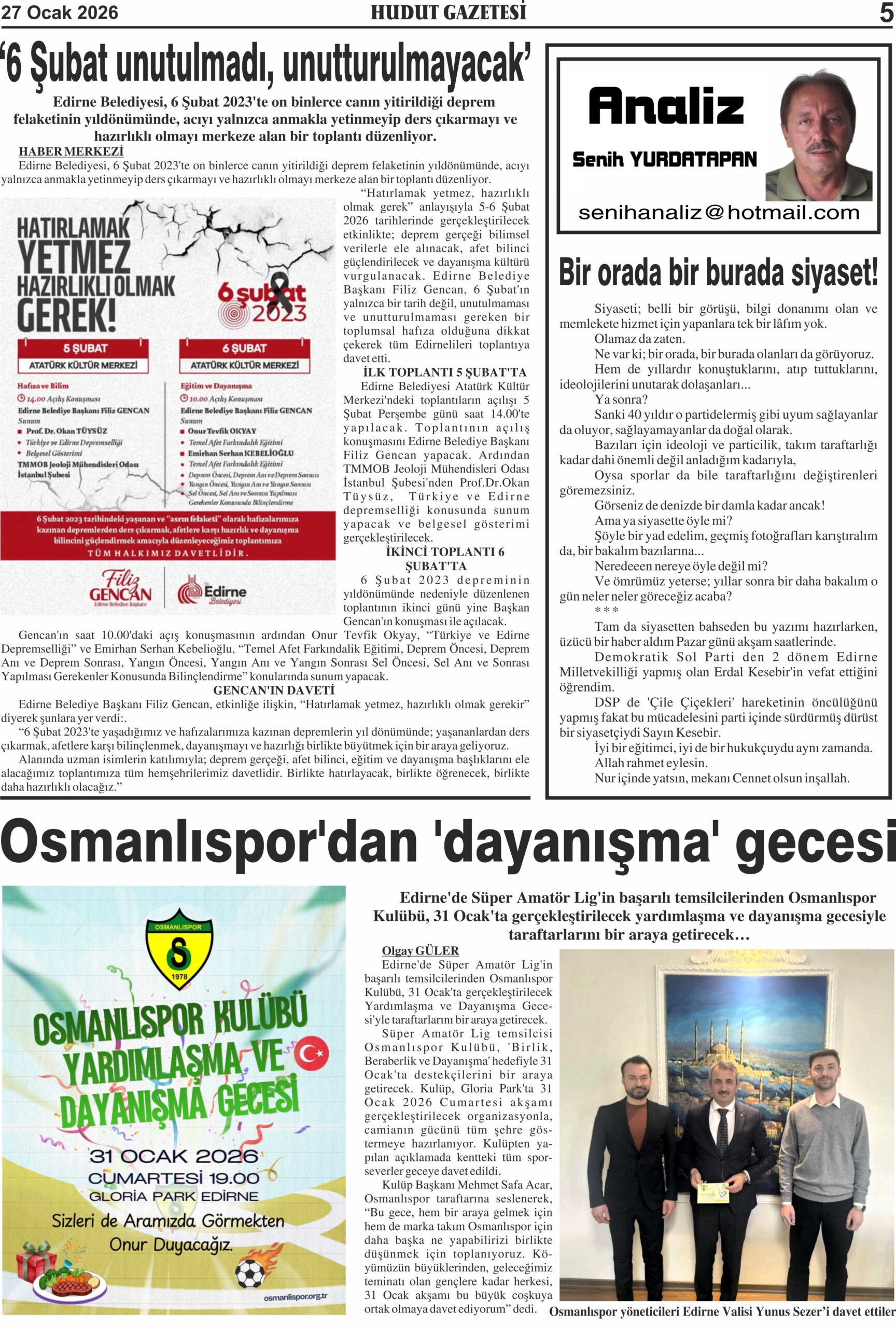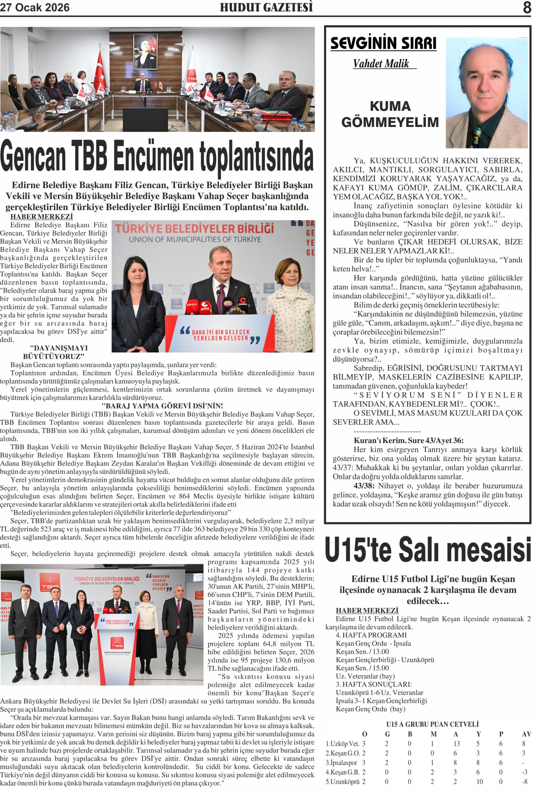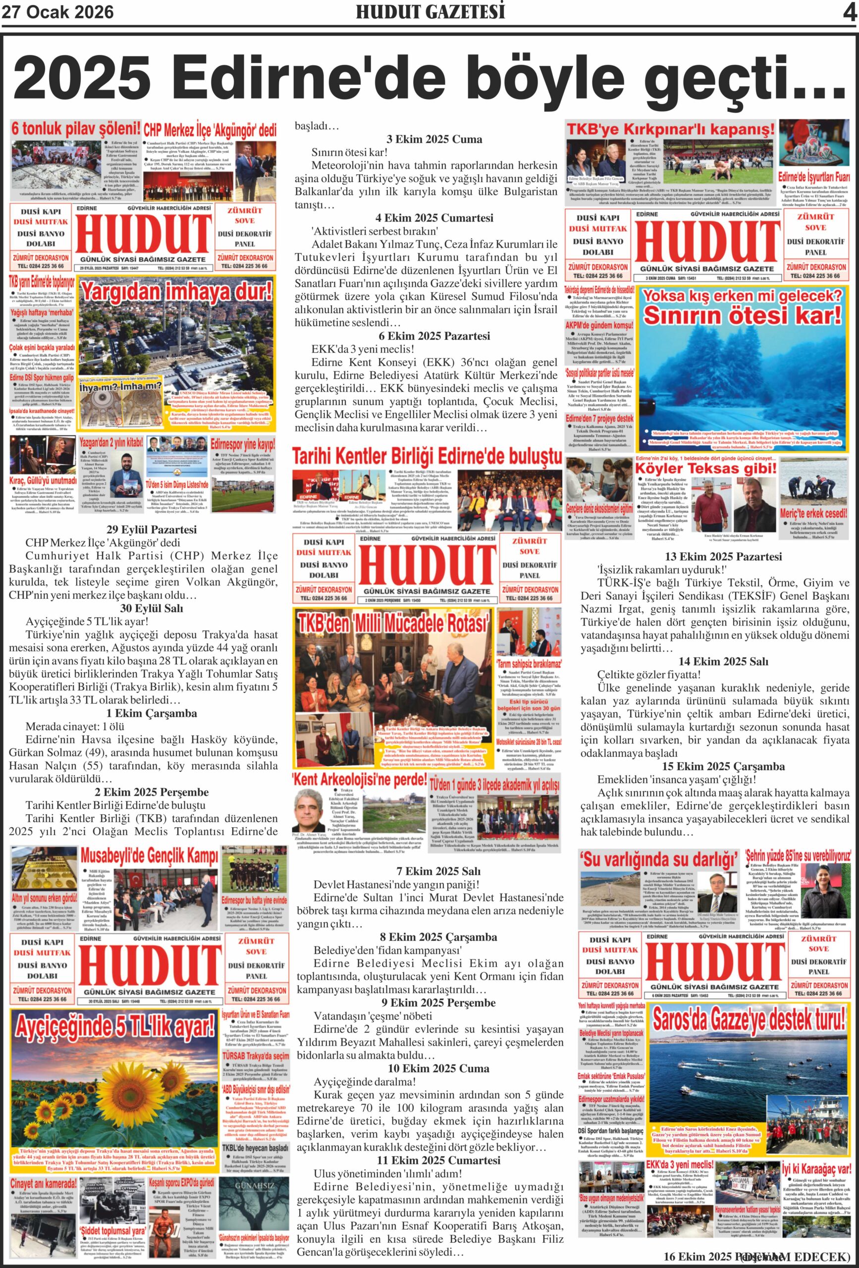 28 Ocak 2026 Çarşamba Hudut Gazetesi