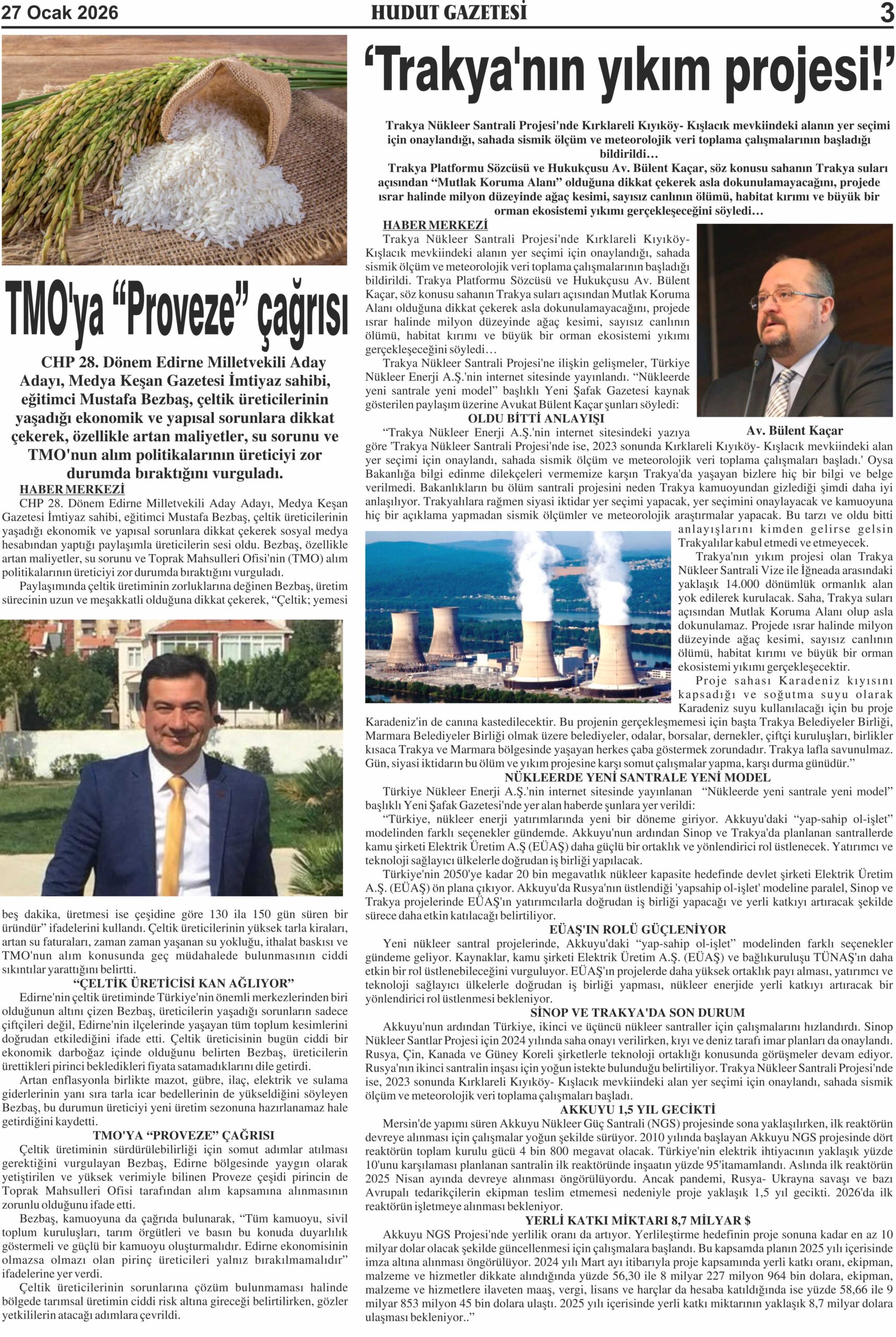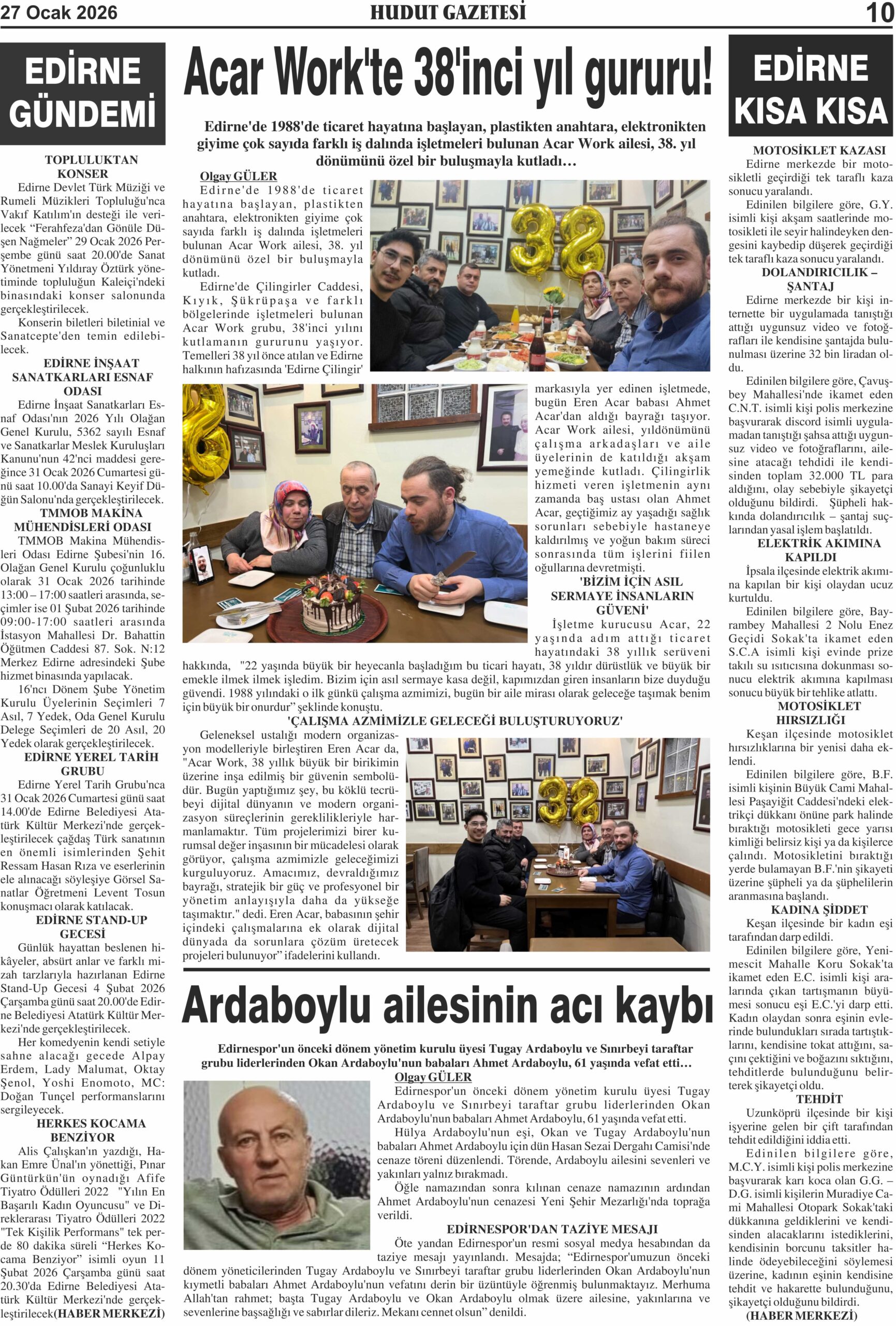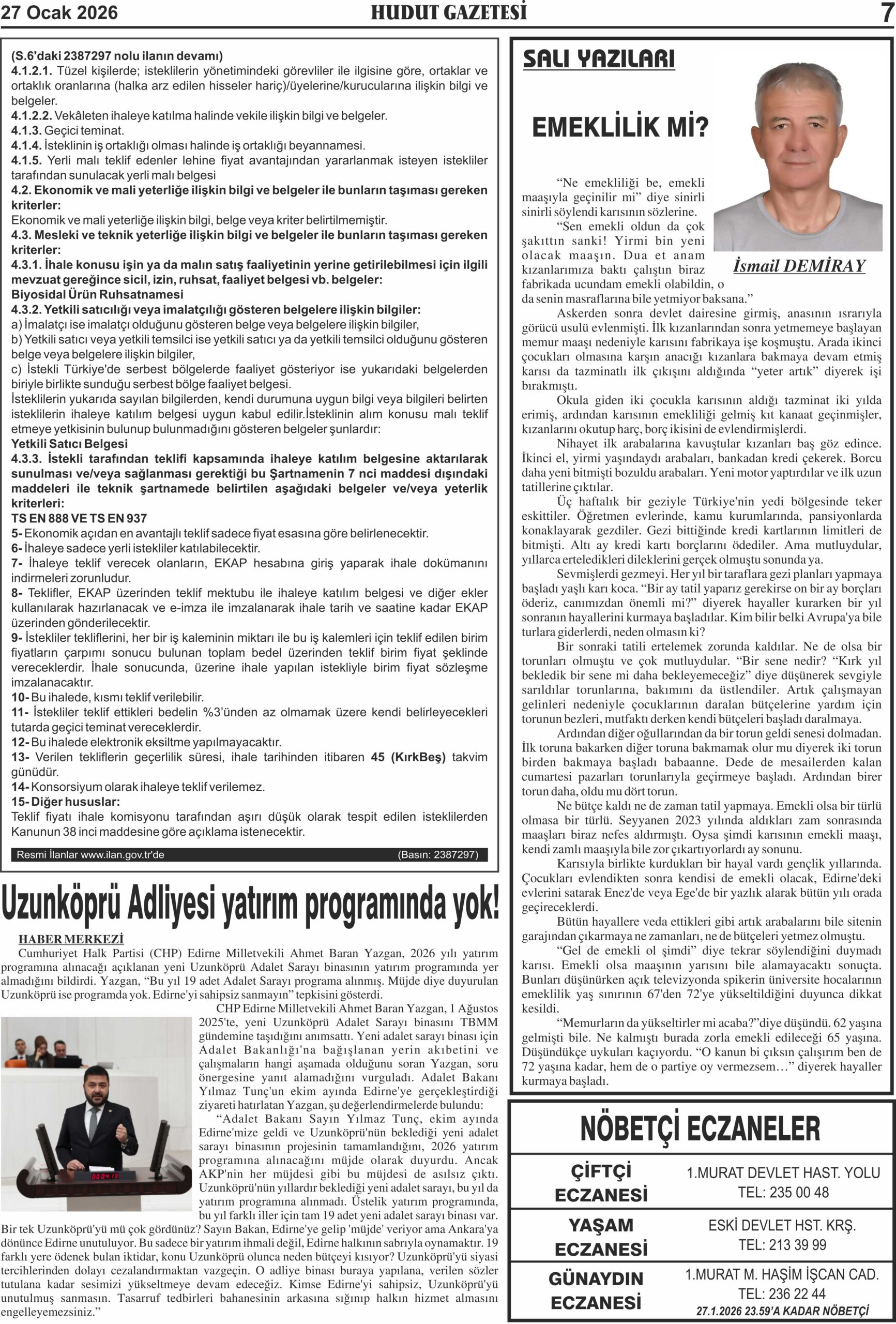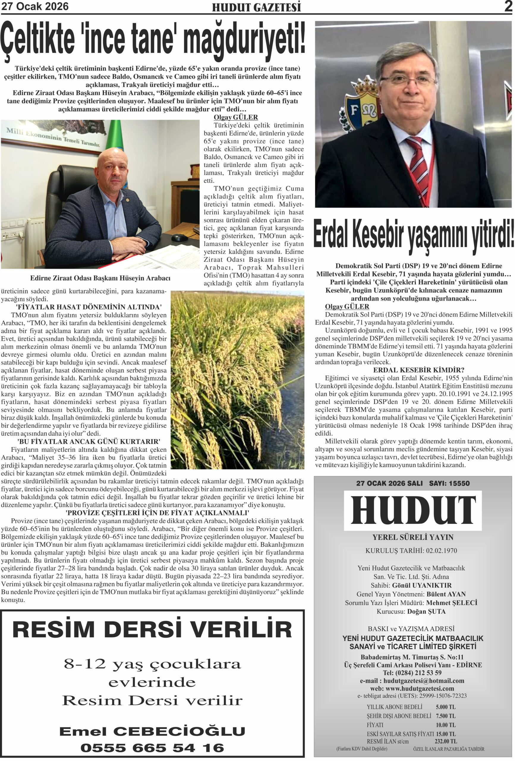 28 Ocak 2026 Çarşamba Hudut Gazetesi