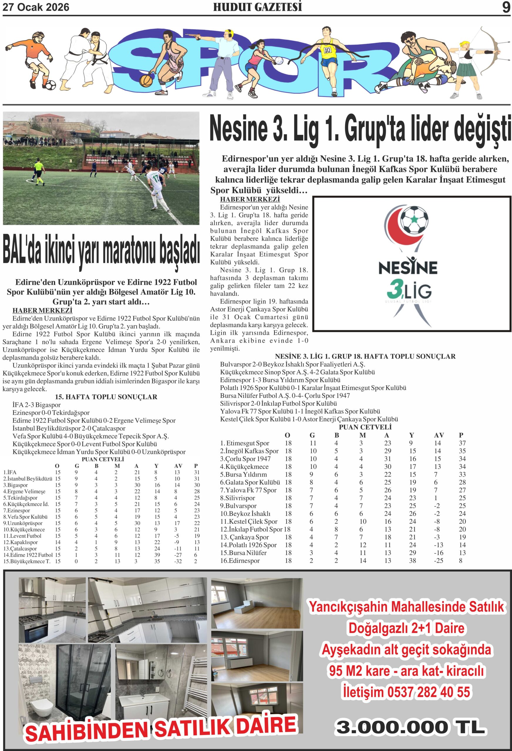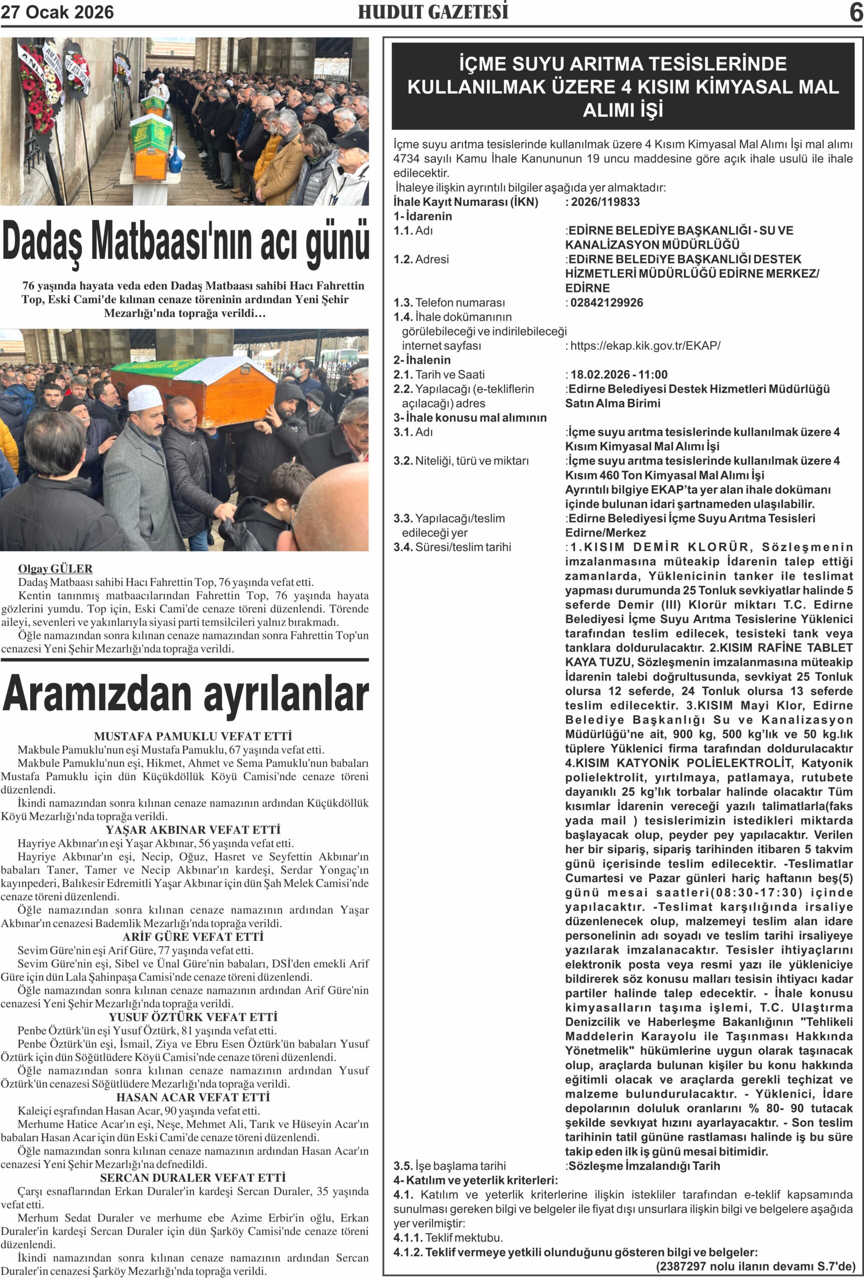 31 Ocak 2026 Cumartesi Hudut Gazetesi
